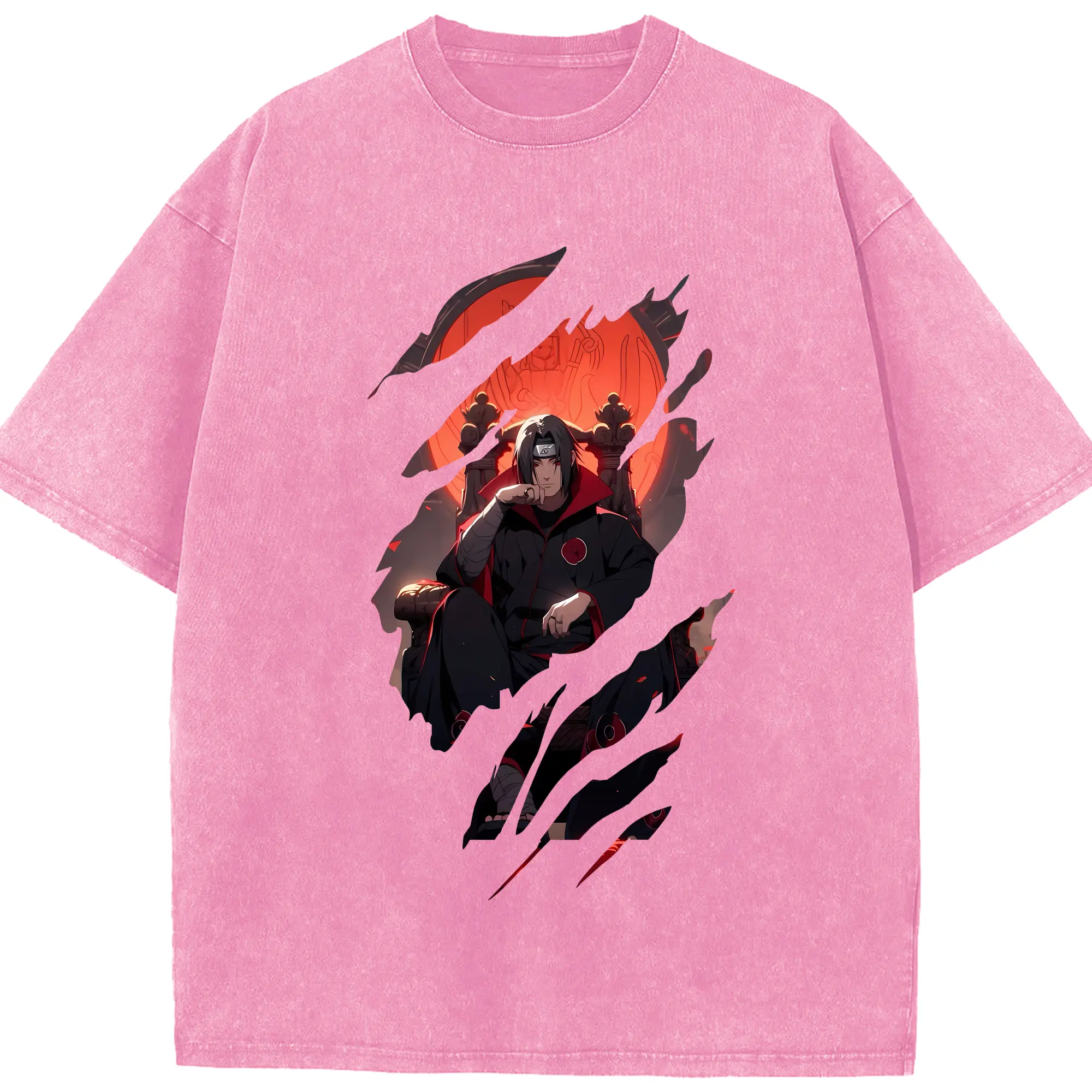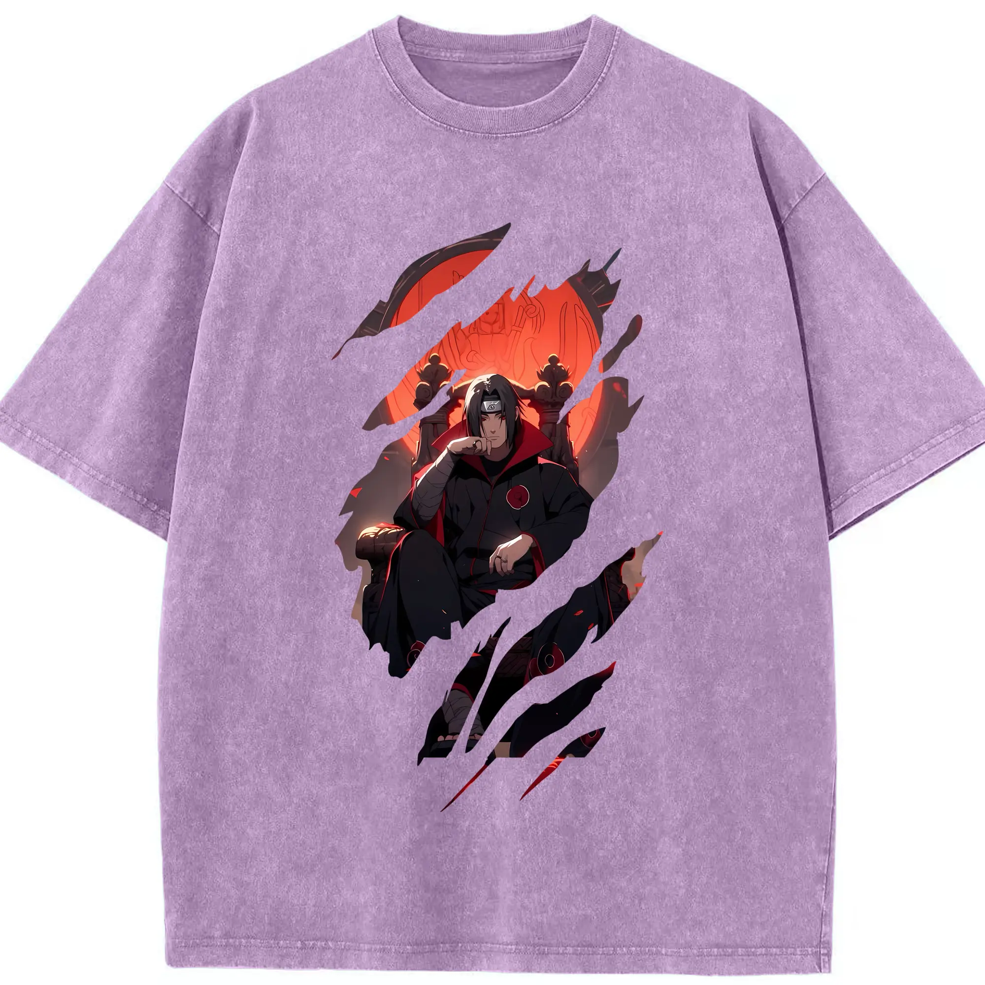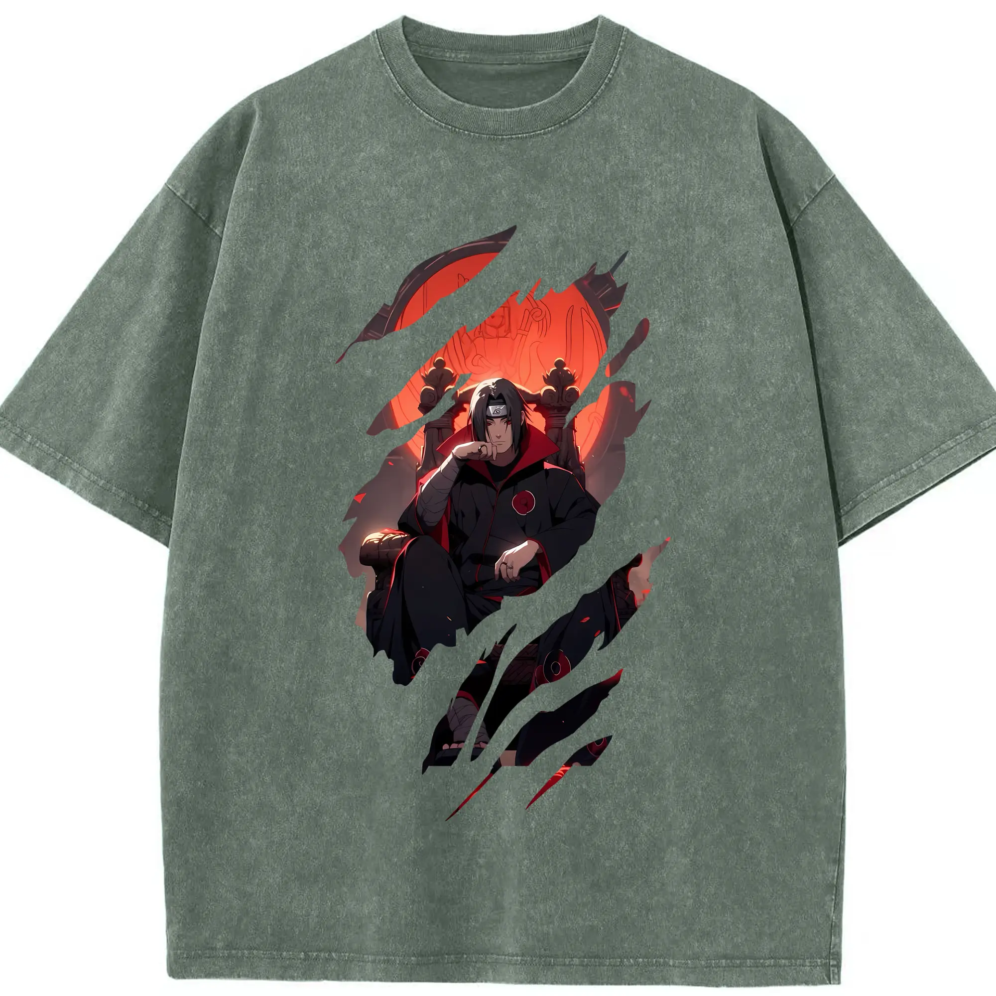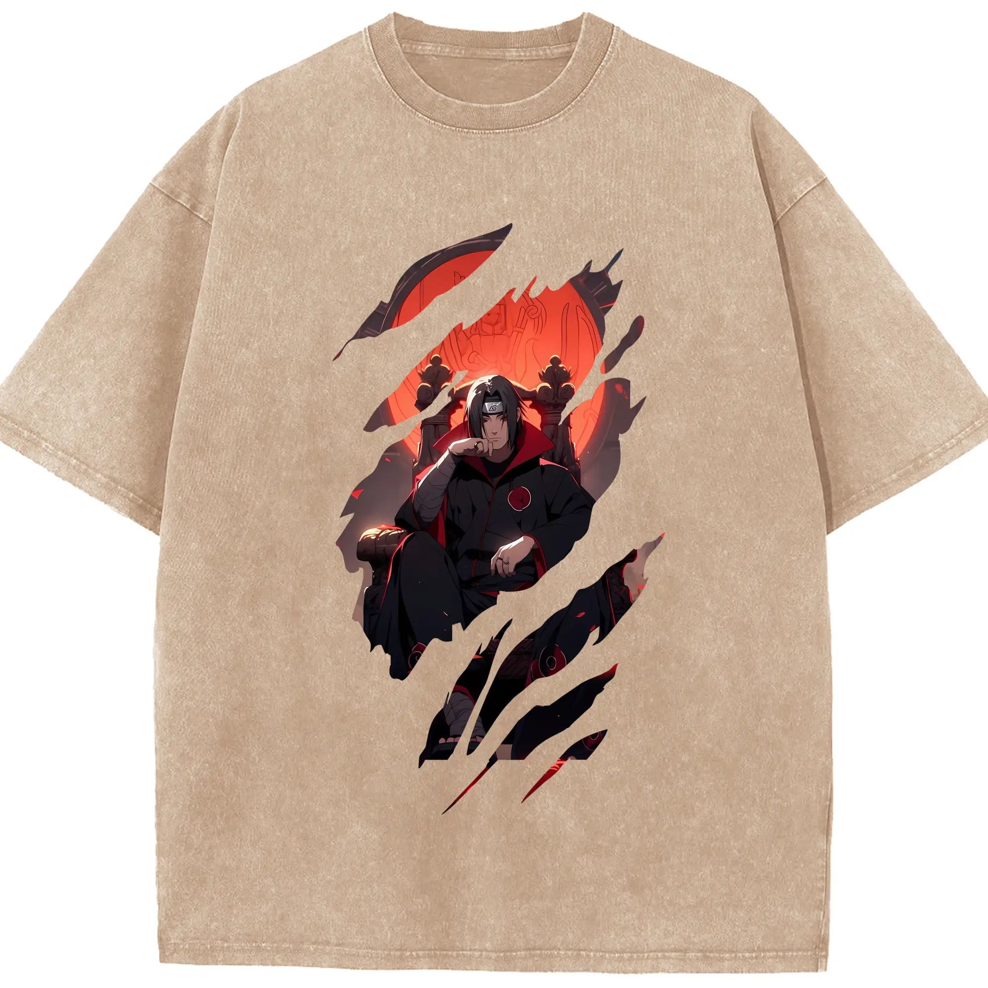 ナルト グッズ うちは イタチ - 綿100% ヴィンテージ風 半袖Tシャツ ・ 背面プリント ・ 柔らか肌触り ・ 通気性 快適 ・ スポーツ カジュアル 外出用