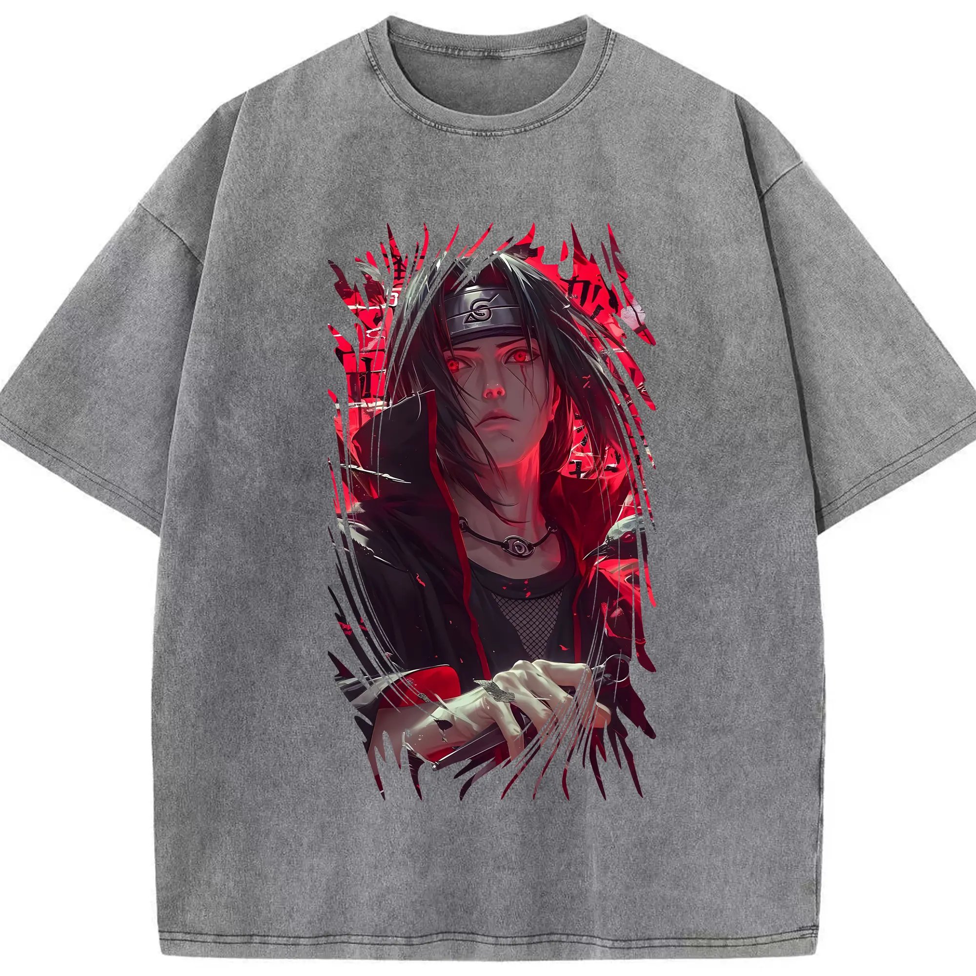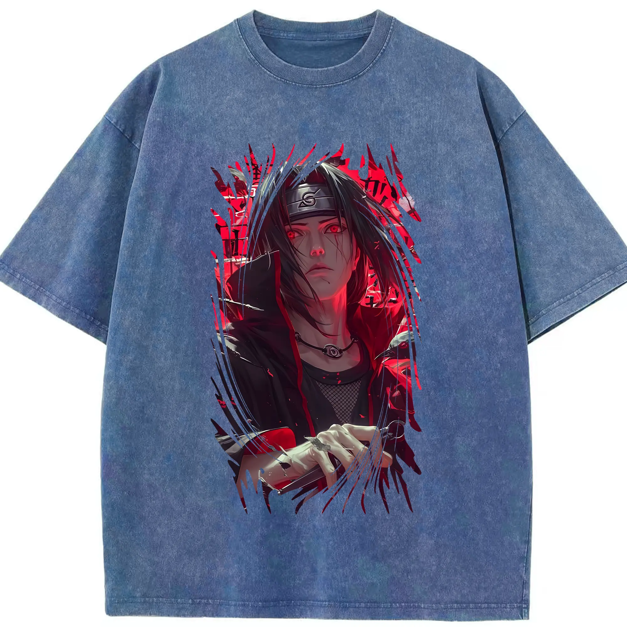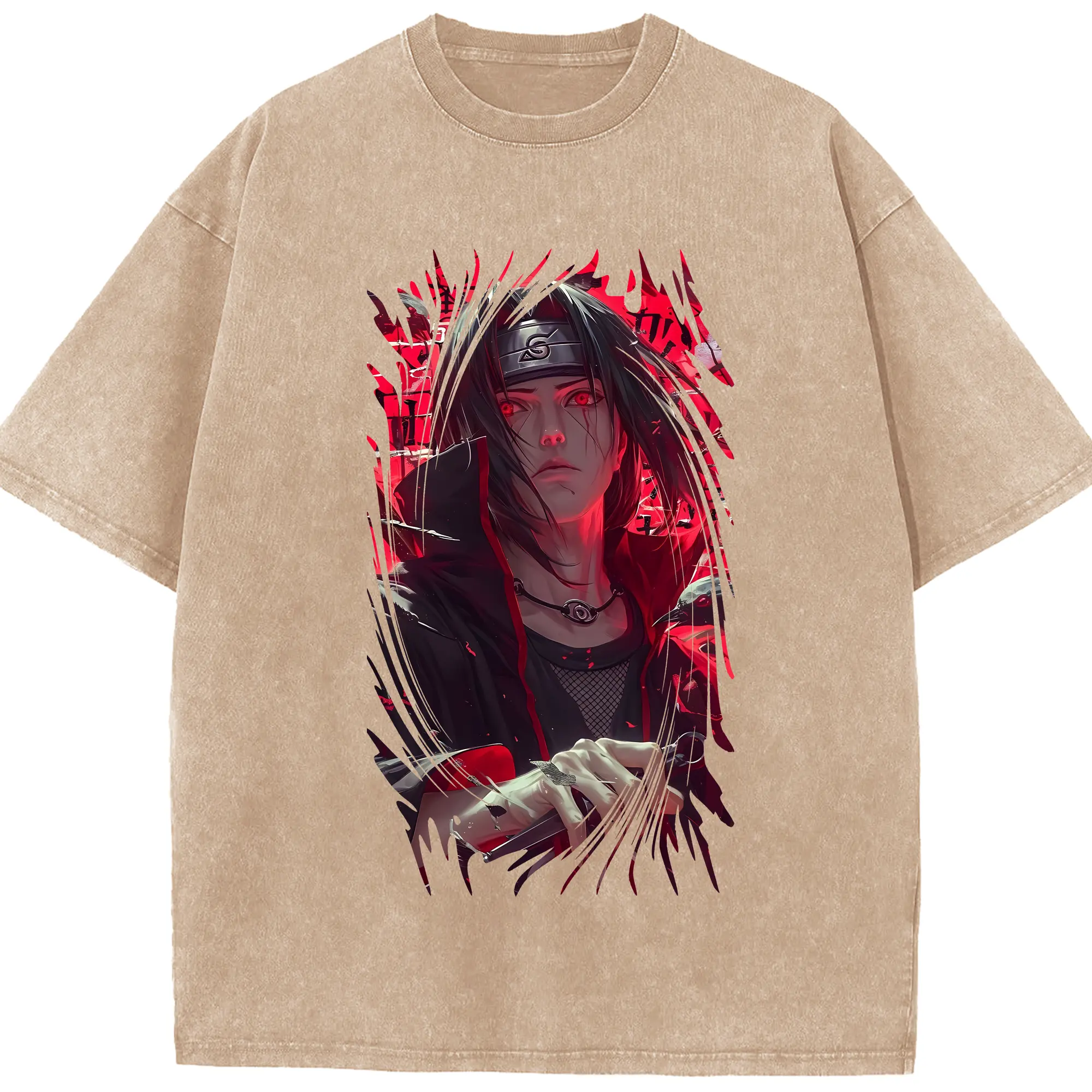 ナルト グッズ うちは イタチ - 綿100% ヴィンテージ風 半袖Tシャツ ・ 背面プリント ・ 柔らか肌触り ・ 通気性 快適 ・ スポーツ カジュアル 外出用
