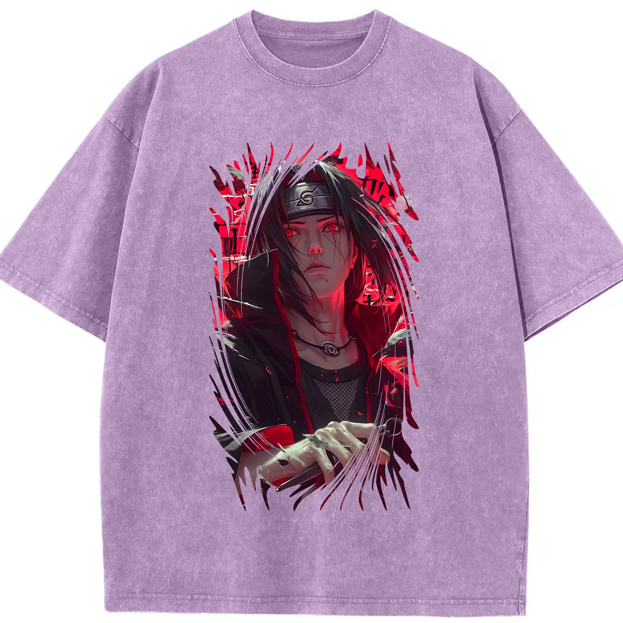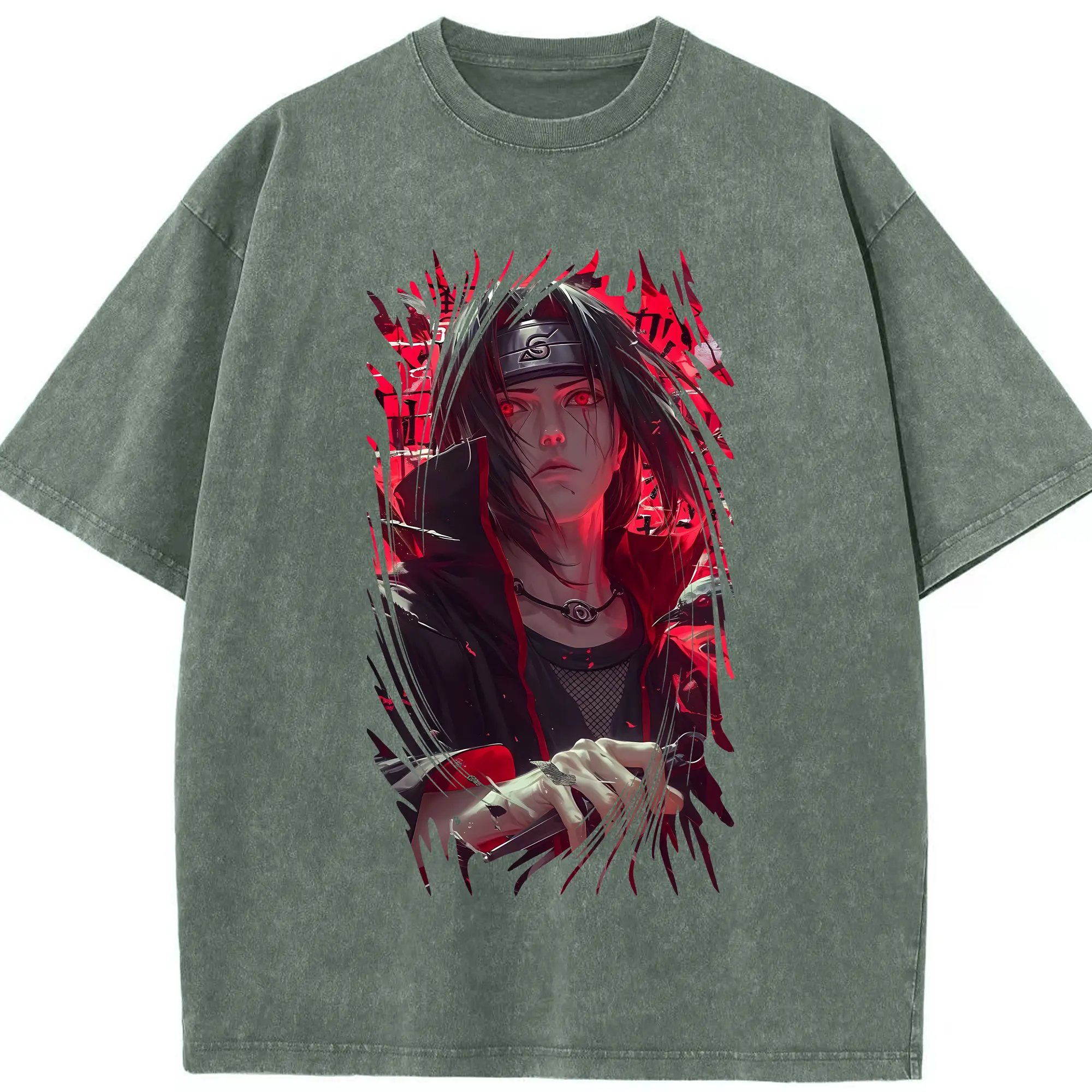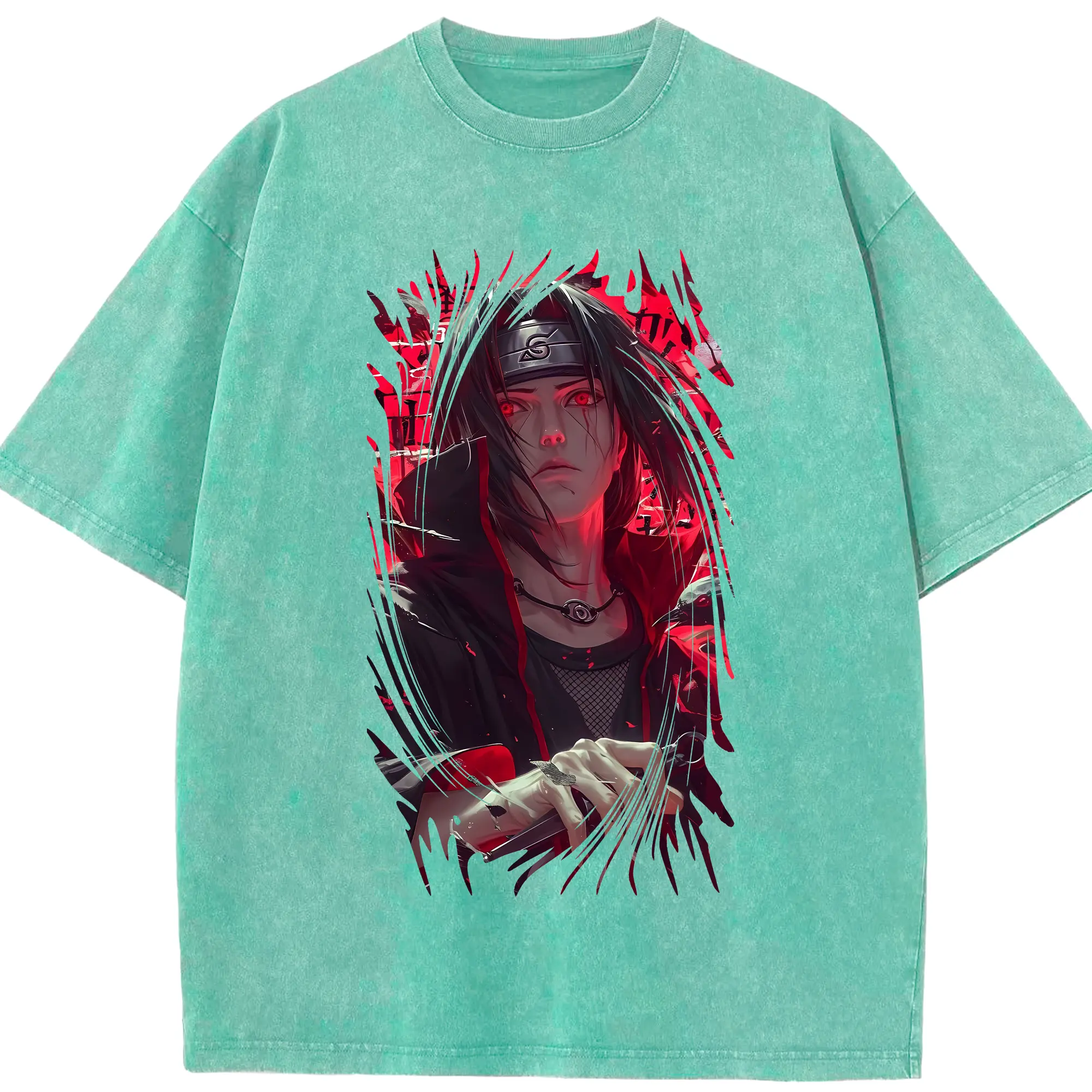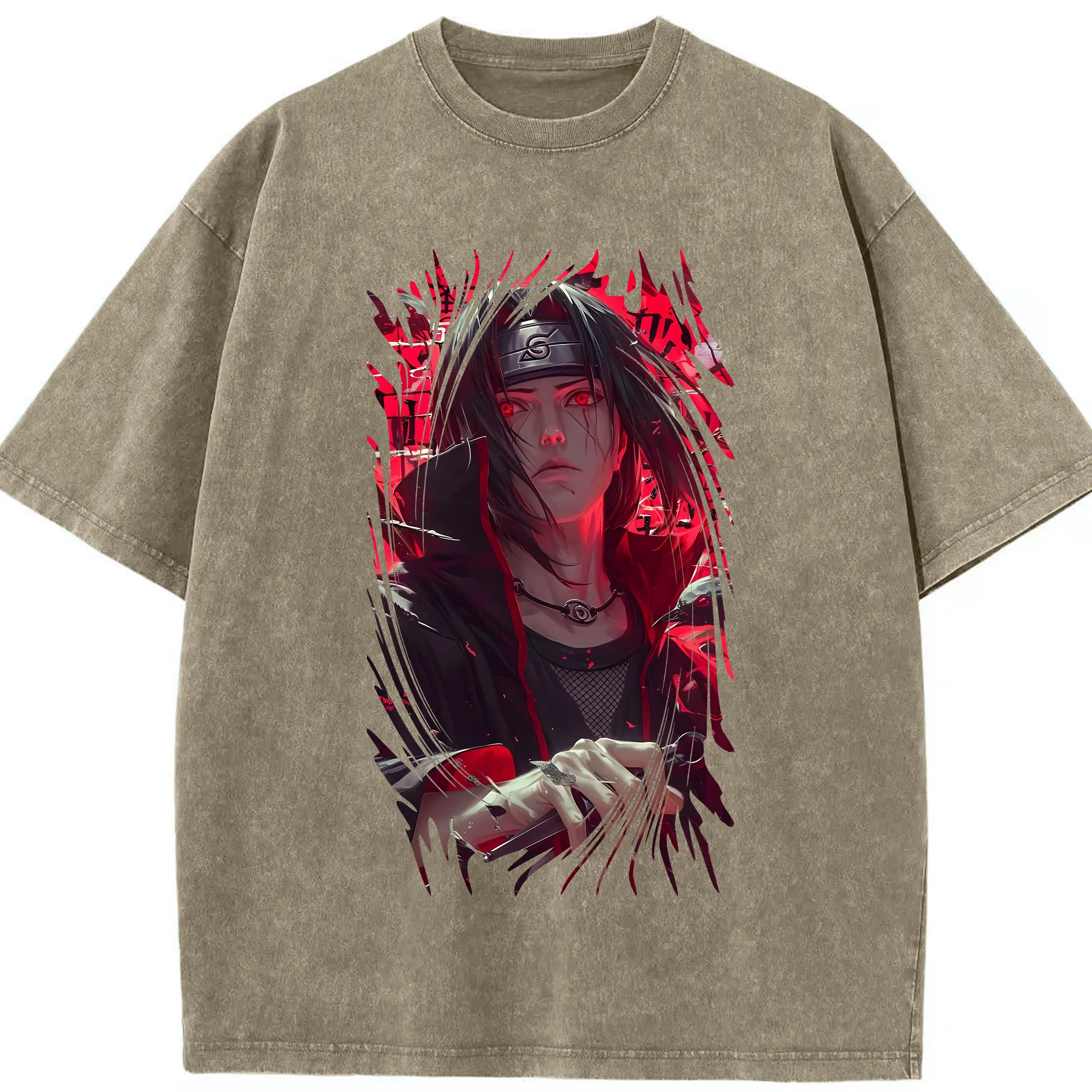 ナルト グッズ うちは イタチ - 綿100% ヴィンテージ風 半袖Tシャツ ・ 背面プリント ・ 柔らか肌触り ・ 通気性 快適 ・ スポーツ カジュアル 外出用