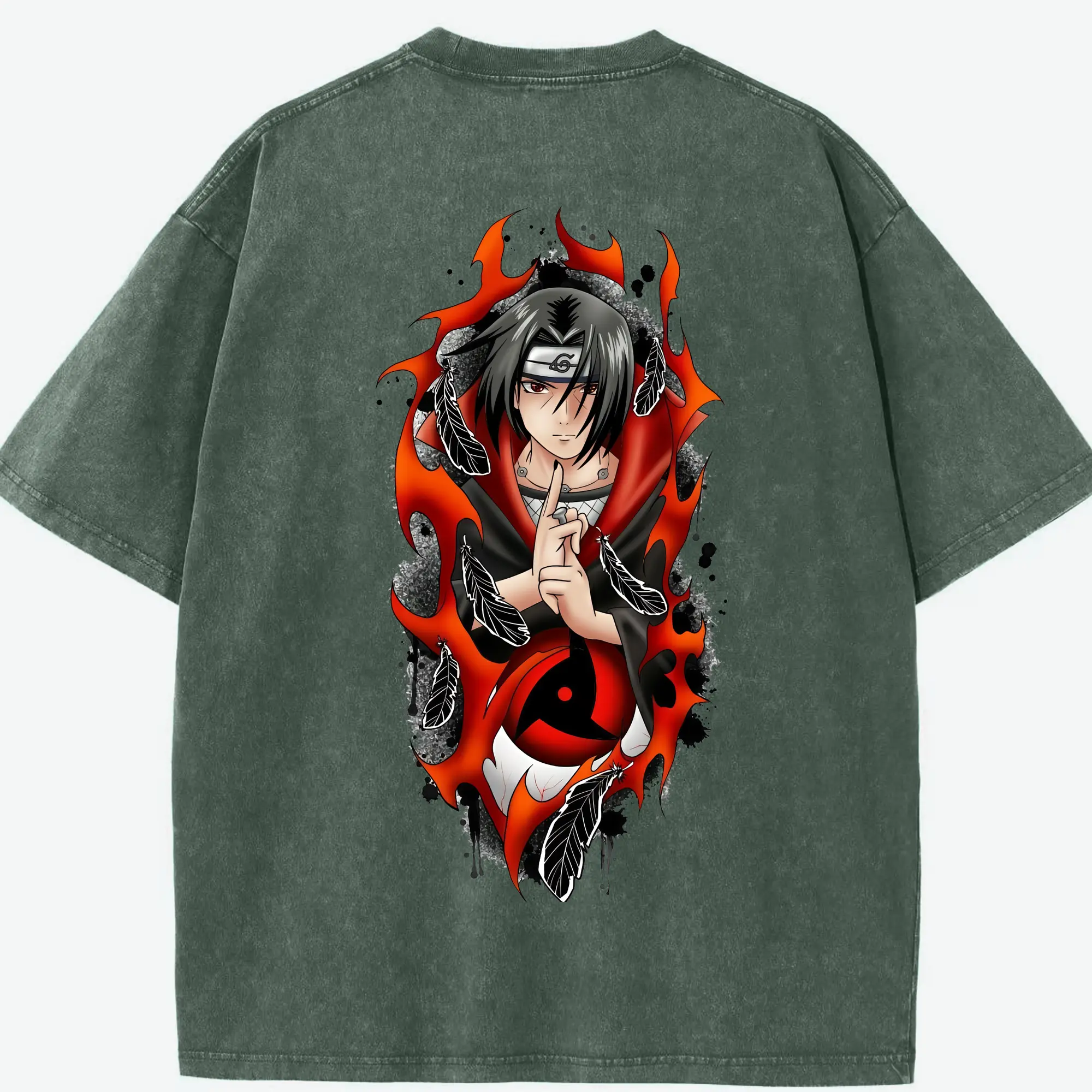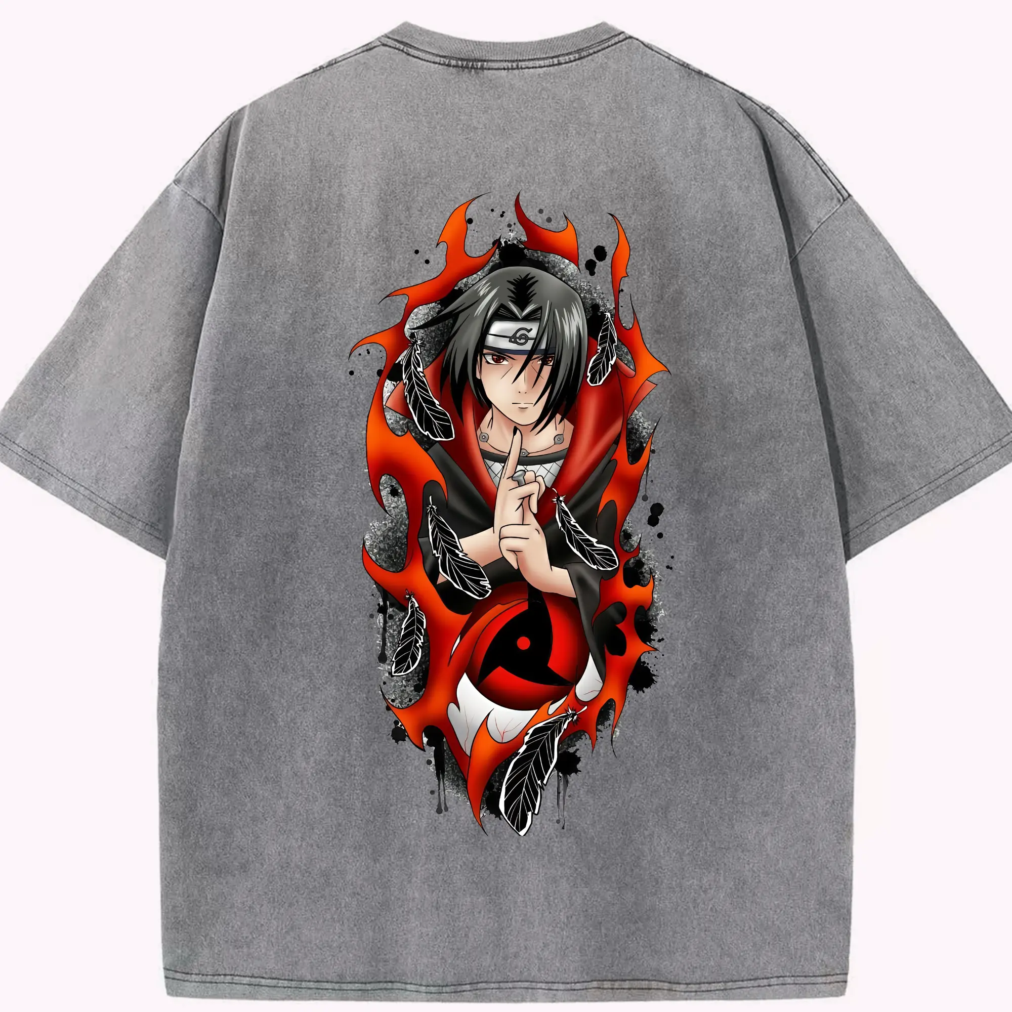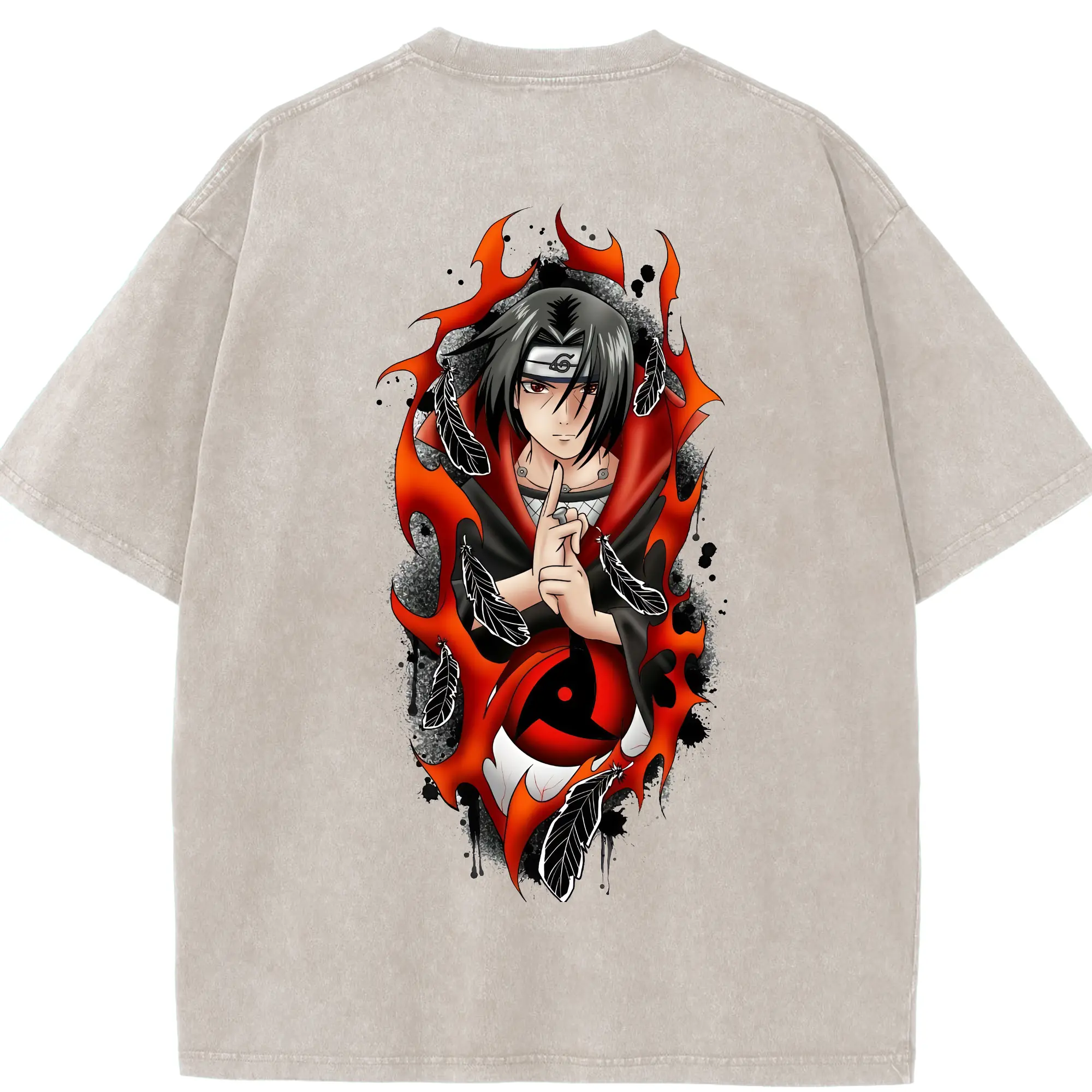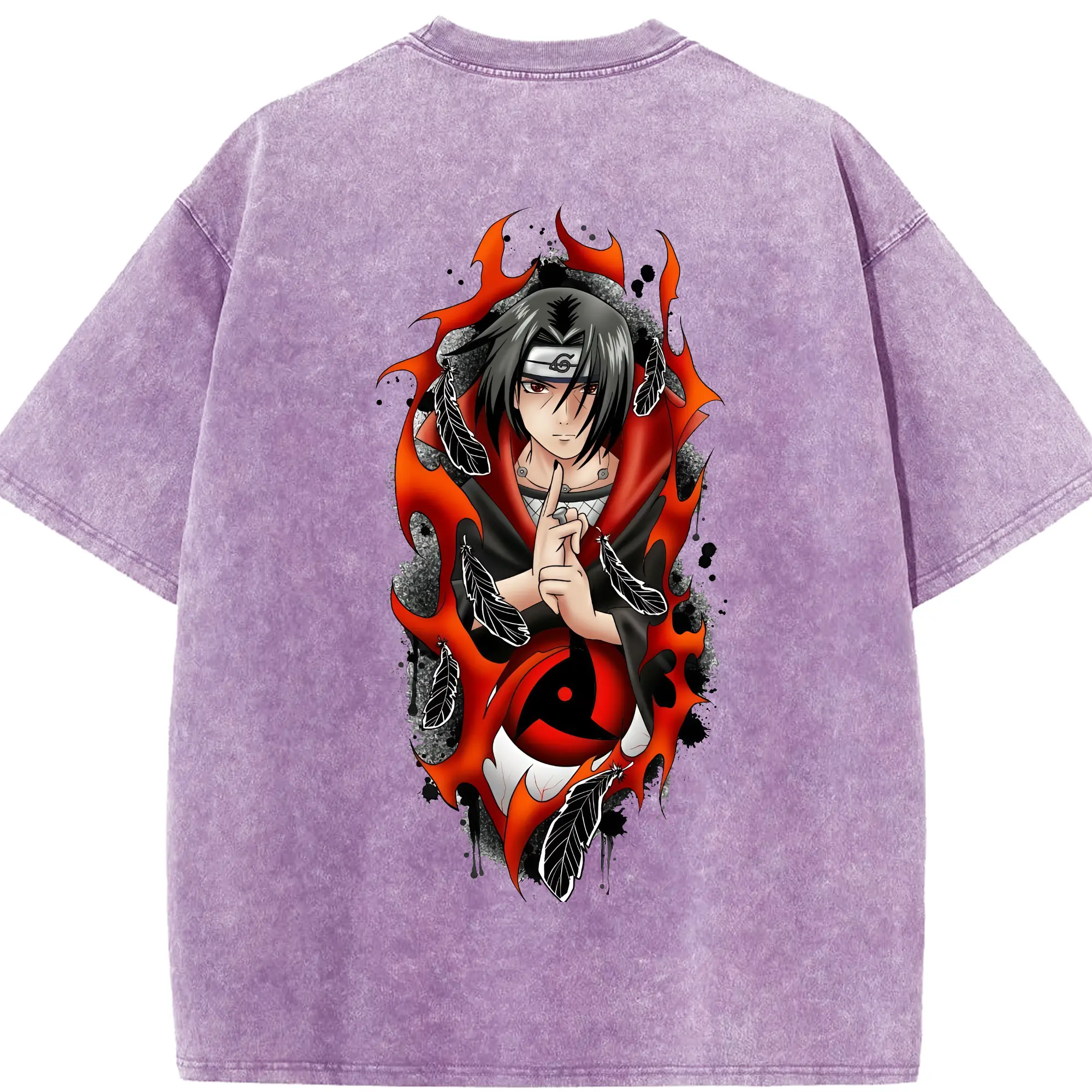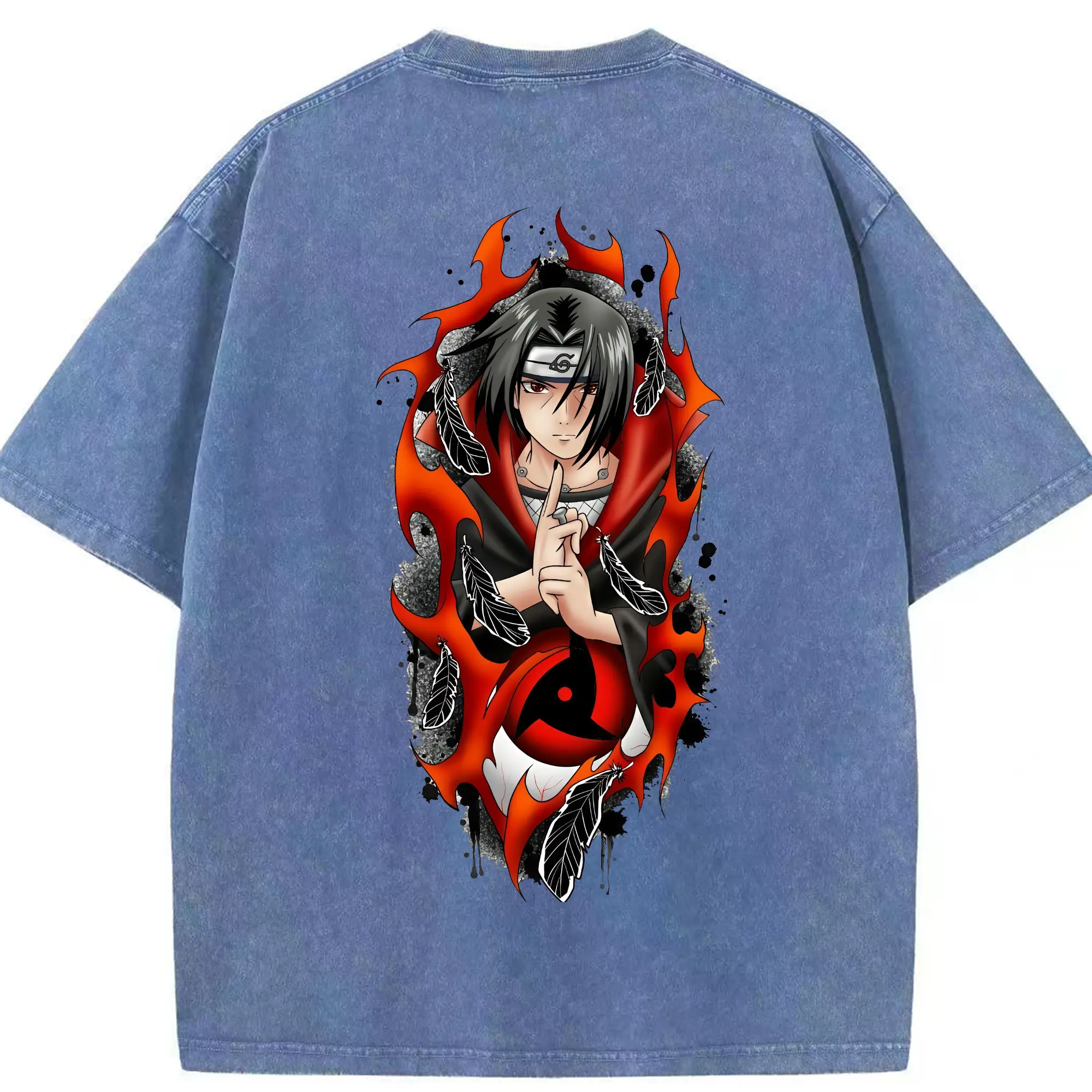 ナルト グッズ うちは イタチ - 綿100% ヴィンテージ風 半袖Tシャツ ・ フロントプリント ・ 柔らか肌触り ・ 通気性 快適 ・ スポーツ カジュアル 外出用