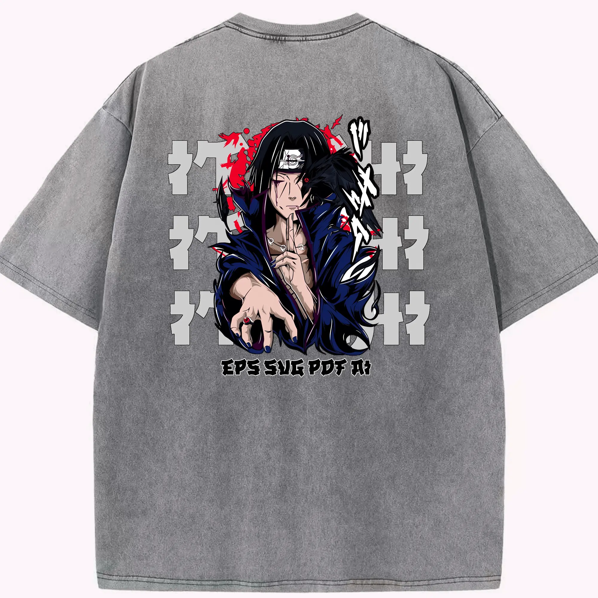 ナルト グッズ うちは イタチ - 綿100% ヴィンテージ風 半袖Tシャツ ・ フロントプリント ・ 柔らか肌触り ・ 通気性 快適 ・ スポーツ カジュアル 外出用