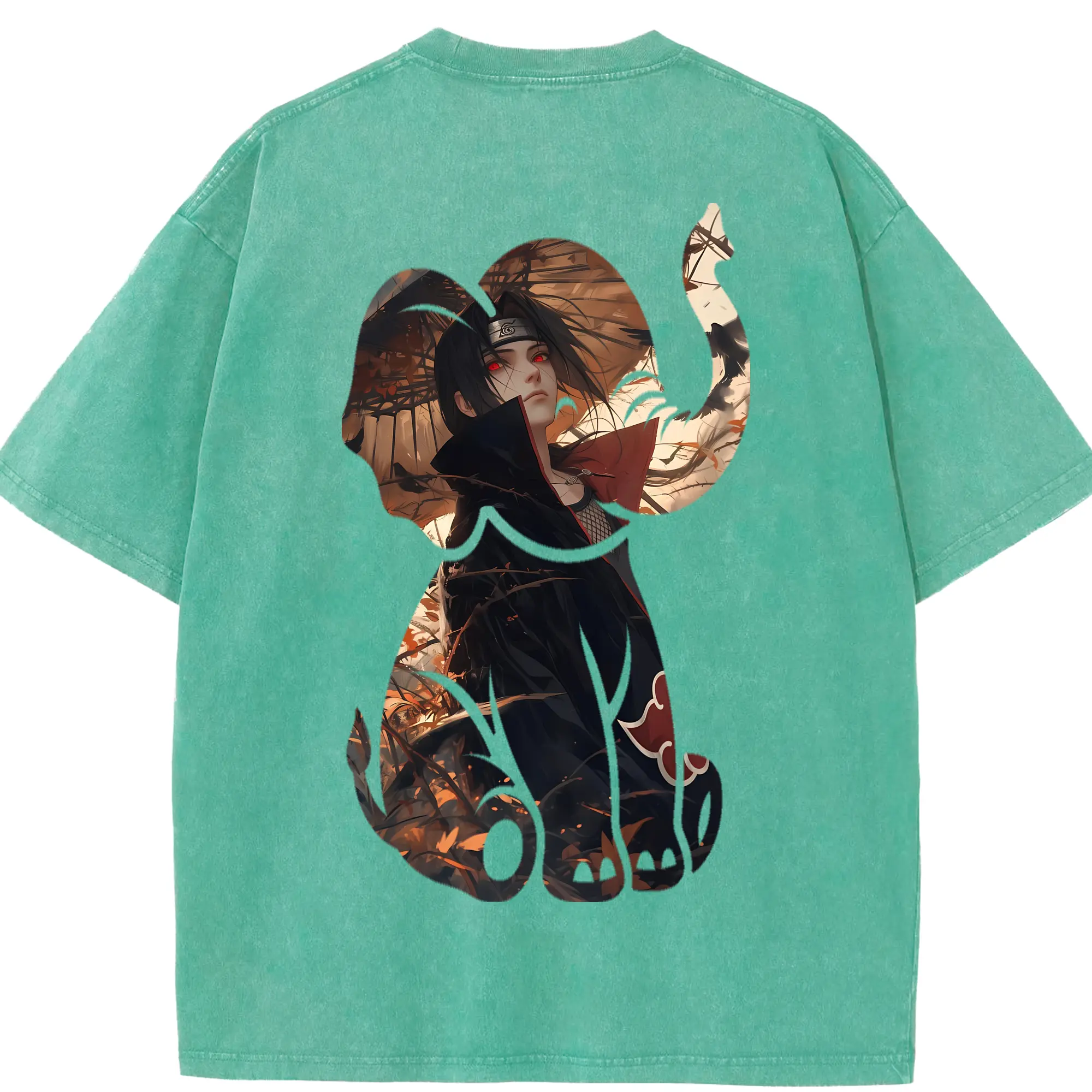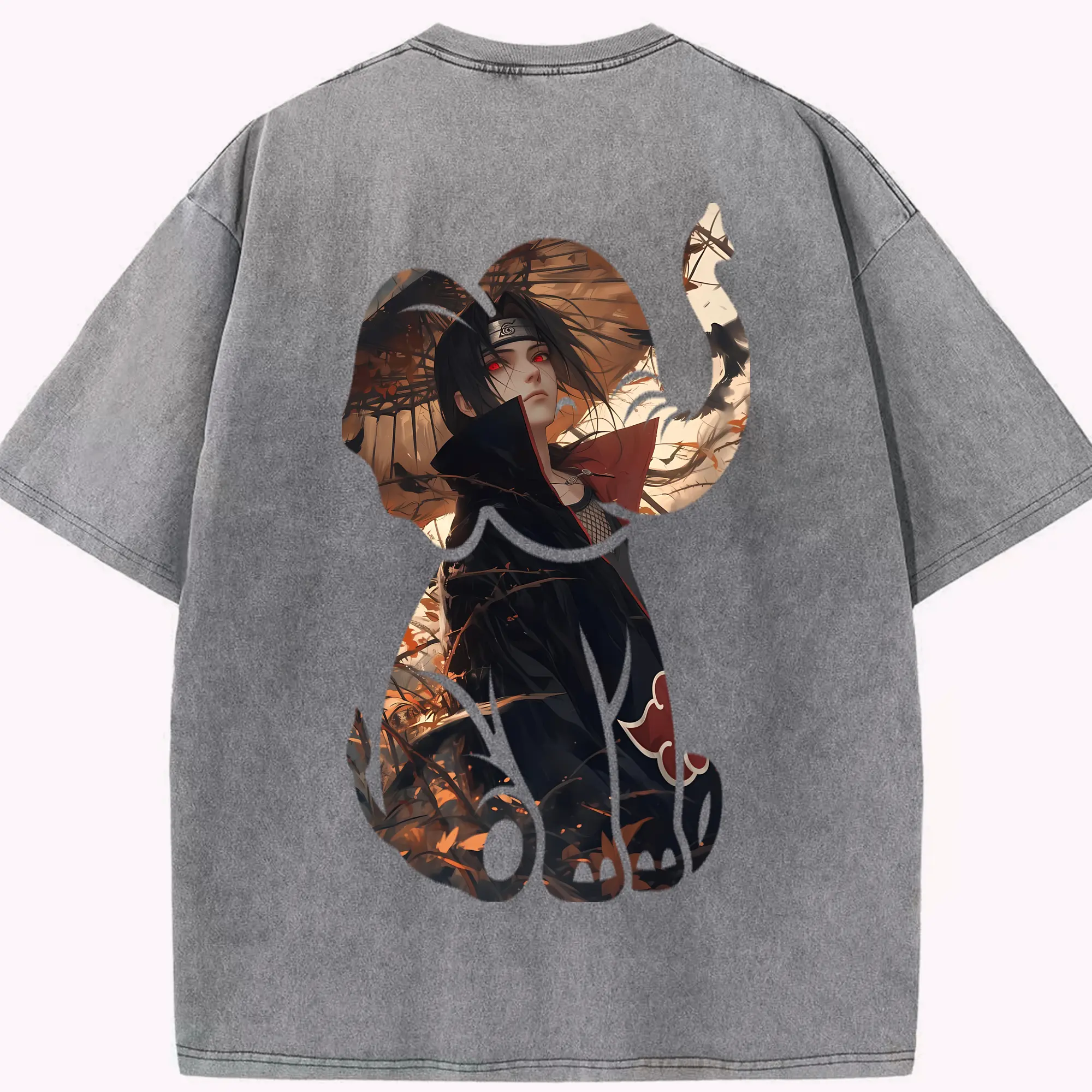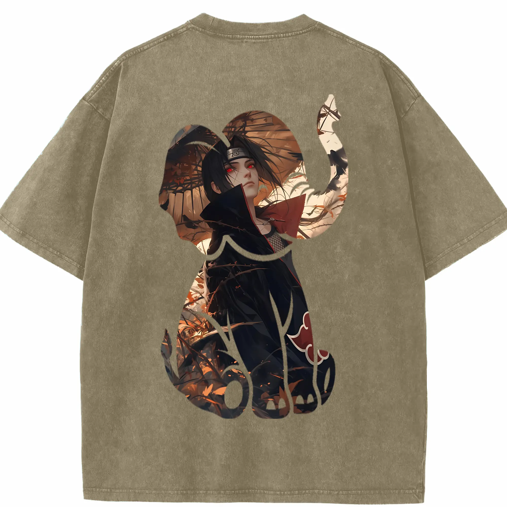 ナルト グッズ うちは イタチ - 綿100% ヴィンテージ風 半袖Tシャツ ・ フロントプリント ・ 柔らか肌触り ・ 通気性 快適 ・ スポーツ カジュアル 外出用