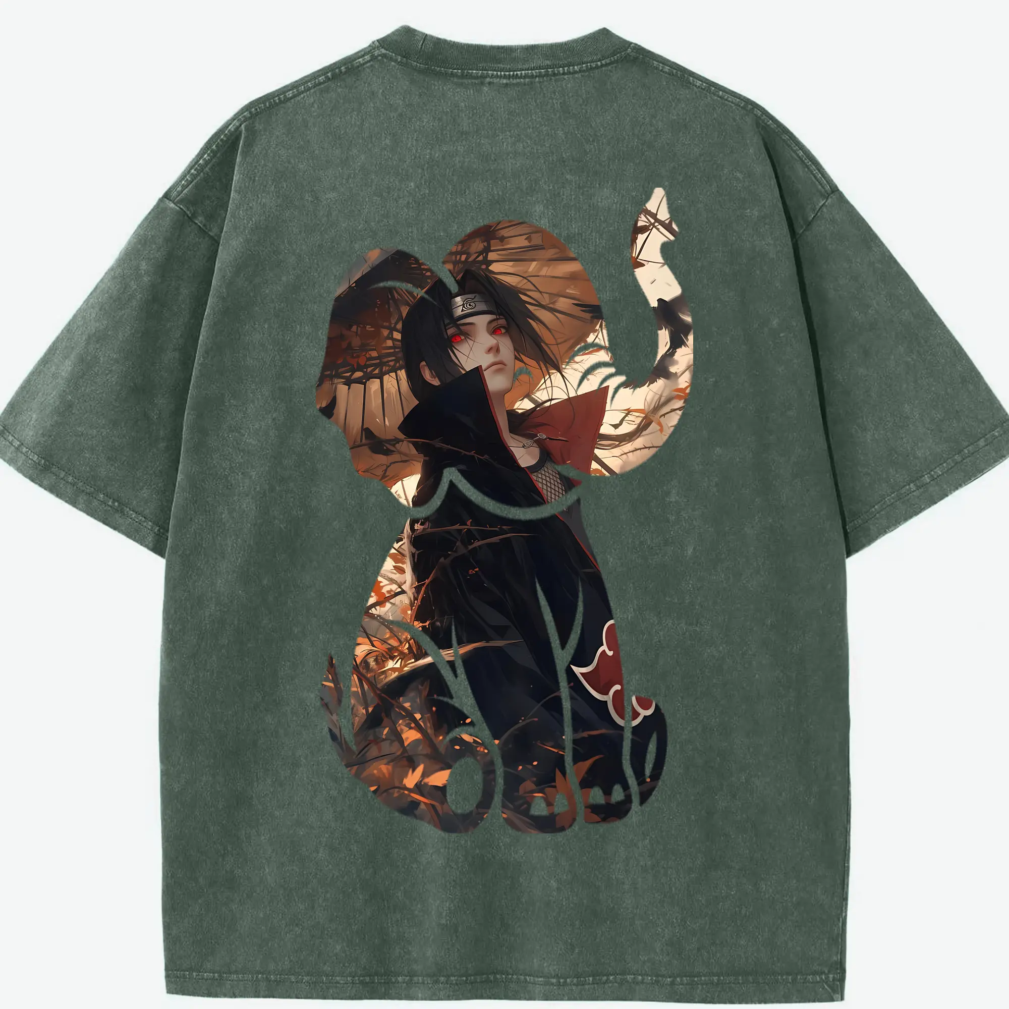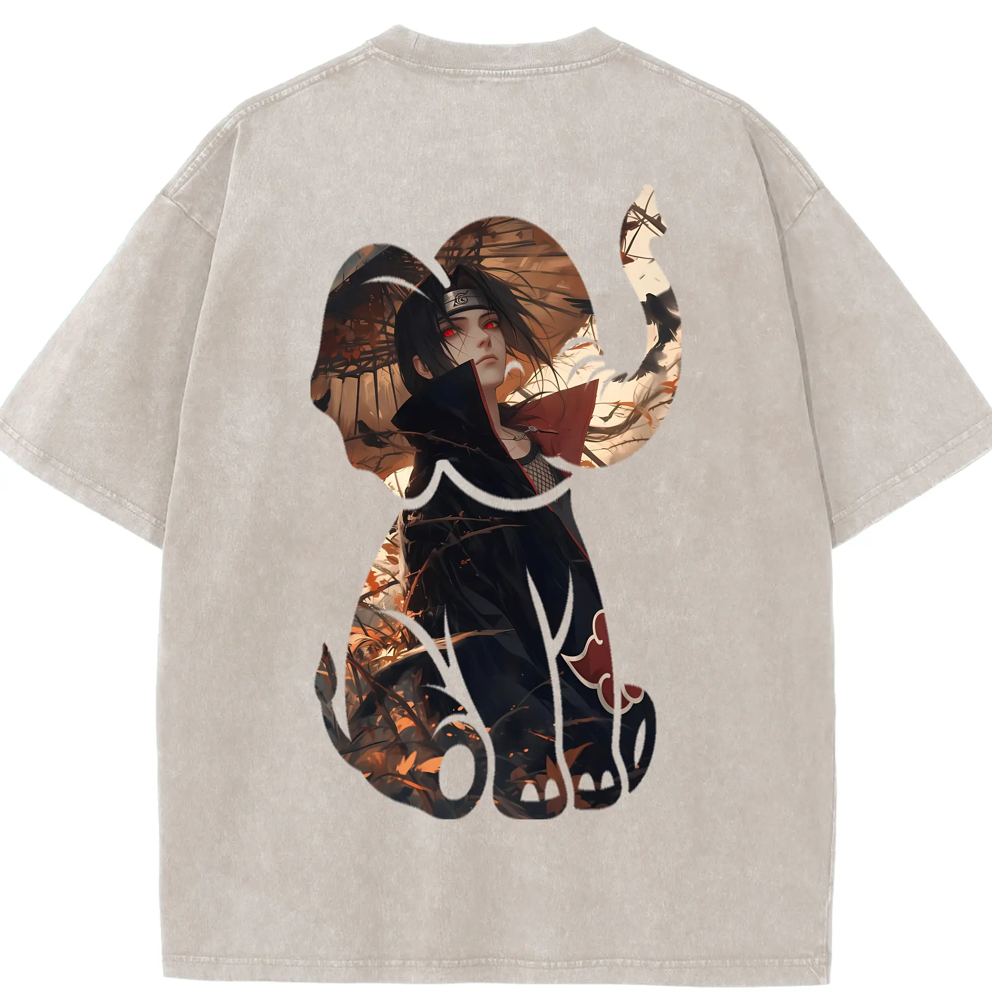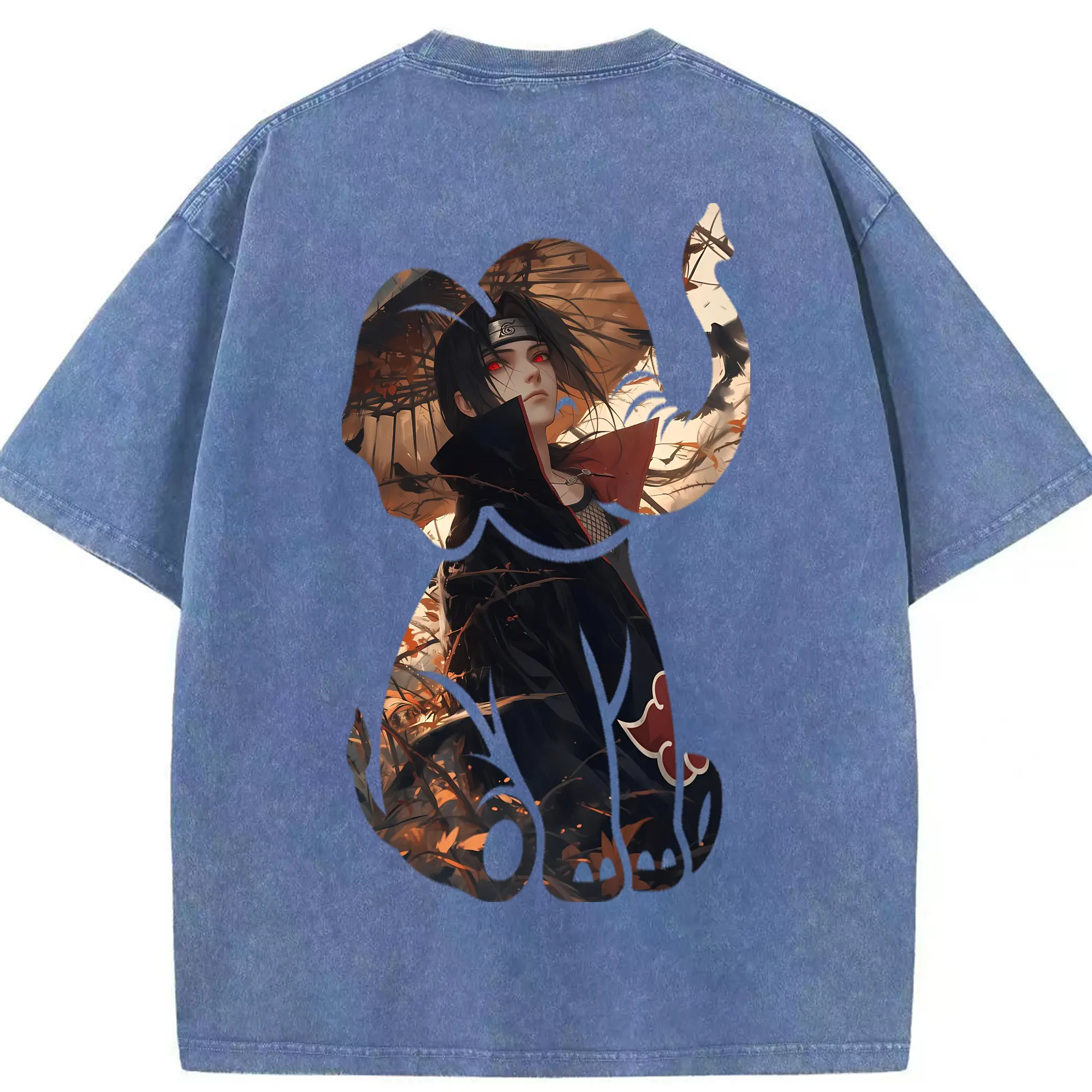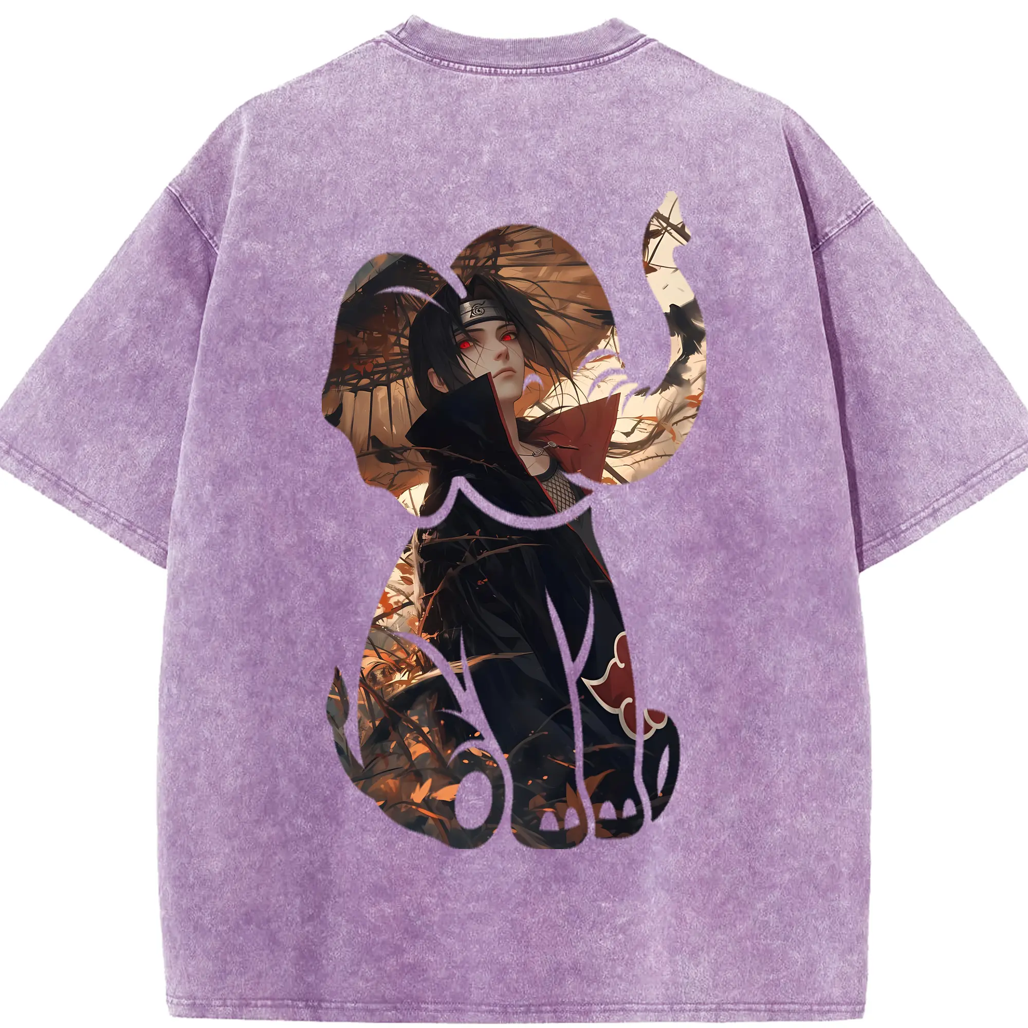 ナルト グッズ うちは イタチ - 綿100% ヴィンテージ風 半袖Tシャツ ・ フロントプリント ・ 柔らか肌触り ・ 通気性 快適 ・ スポーツ カジュアル 外出用