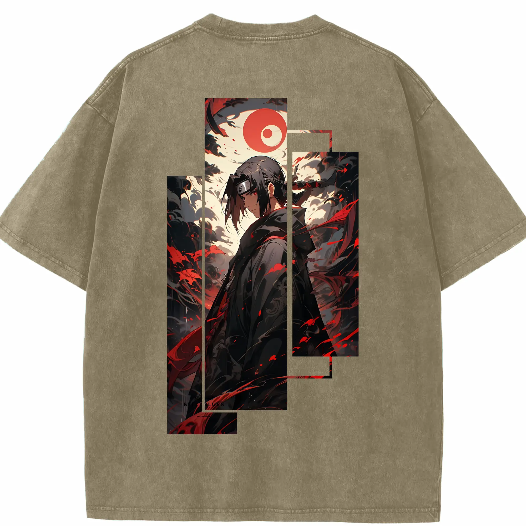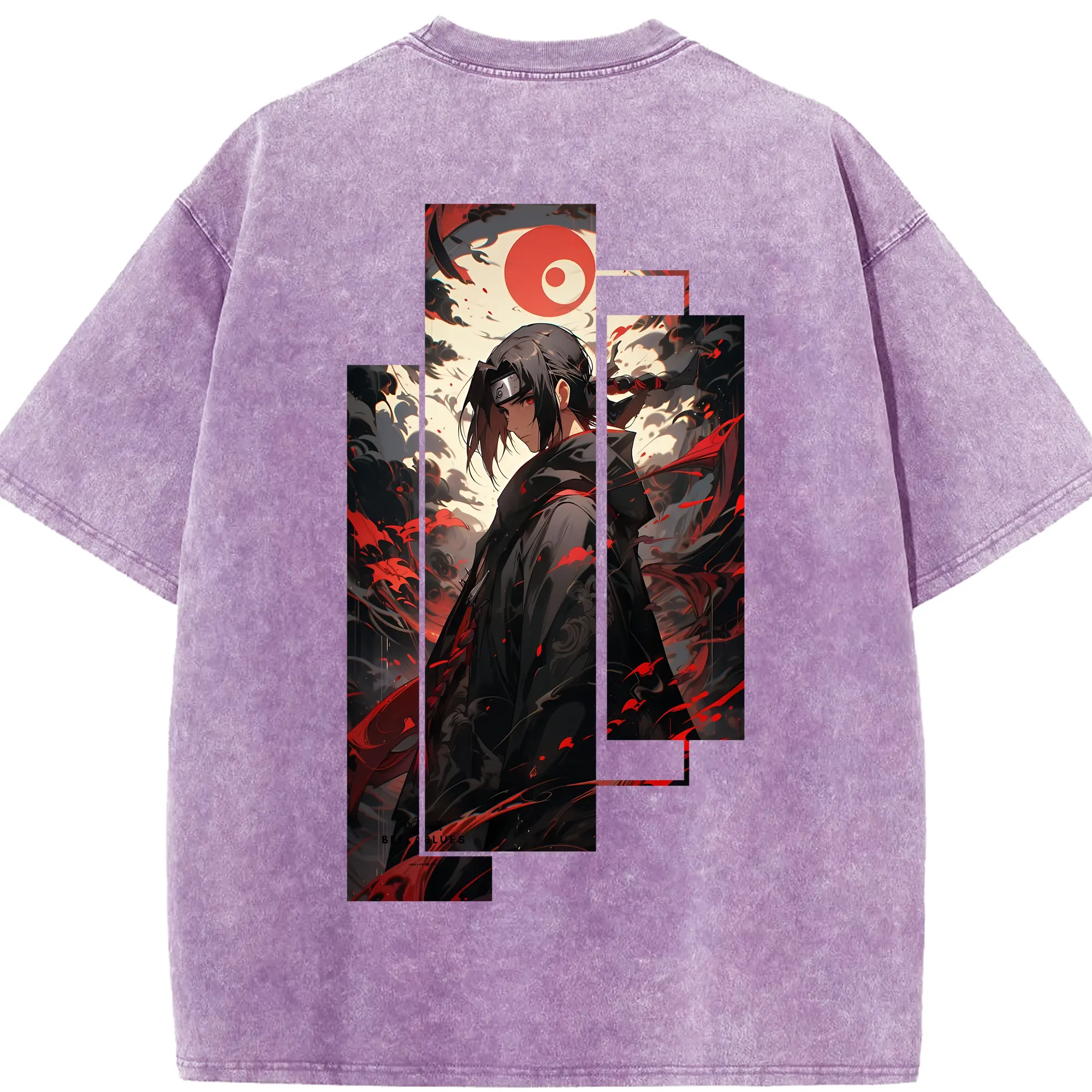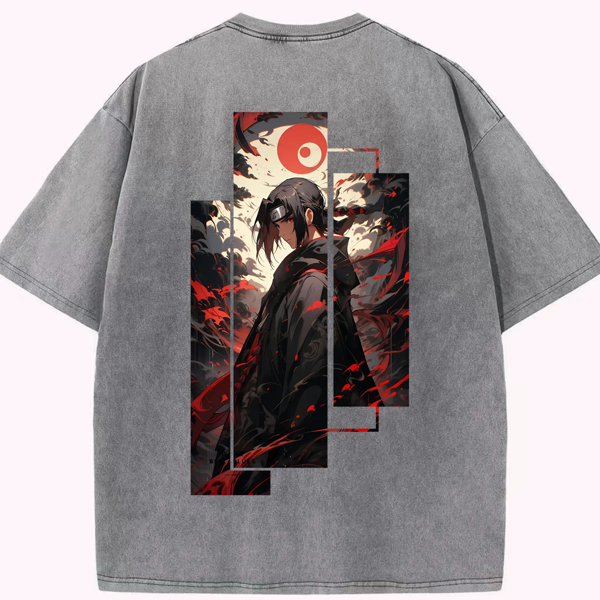 ナルト グッズ うちは イタチ - 綿100% ヴィンテージ風 半袖Tシャツ ・ フロントプリント ・ 柔らか肌触り ・ 通気性 快適 ・ スポーツ カジュアル 外出用