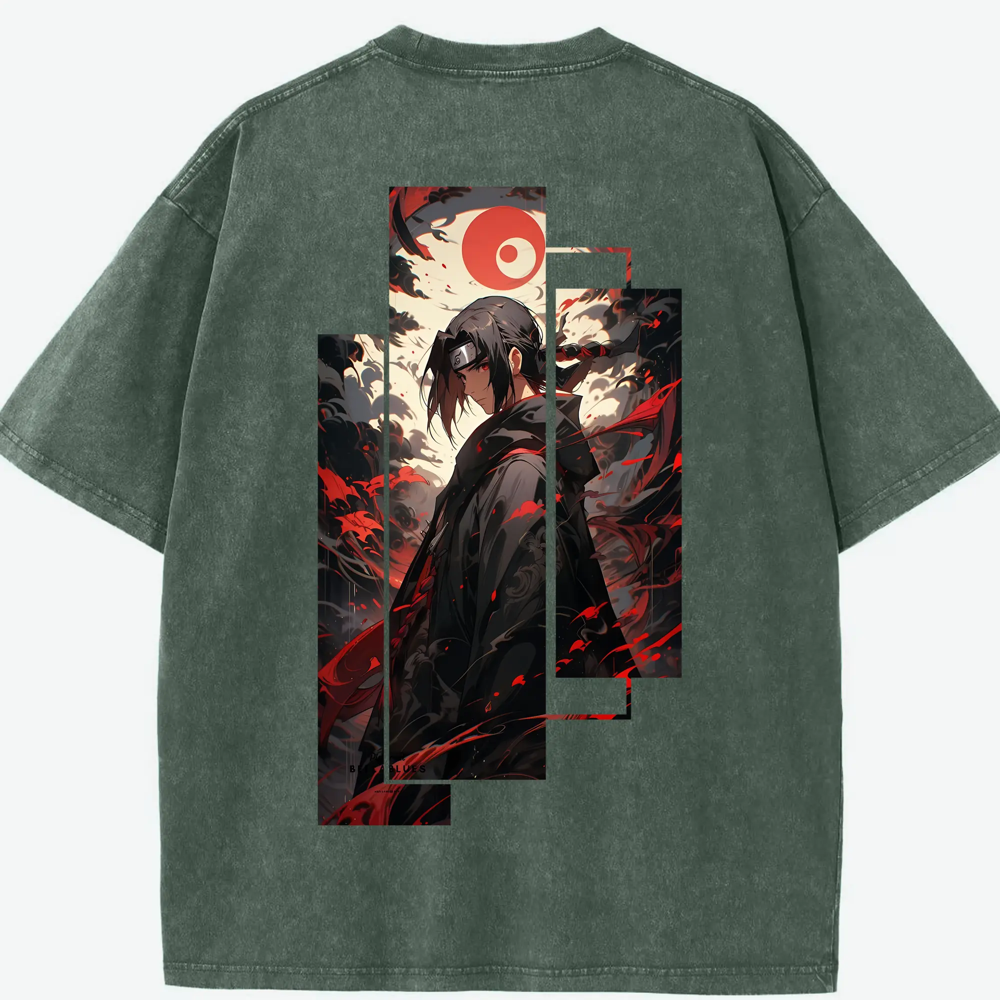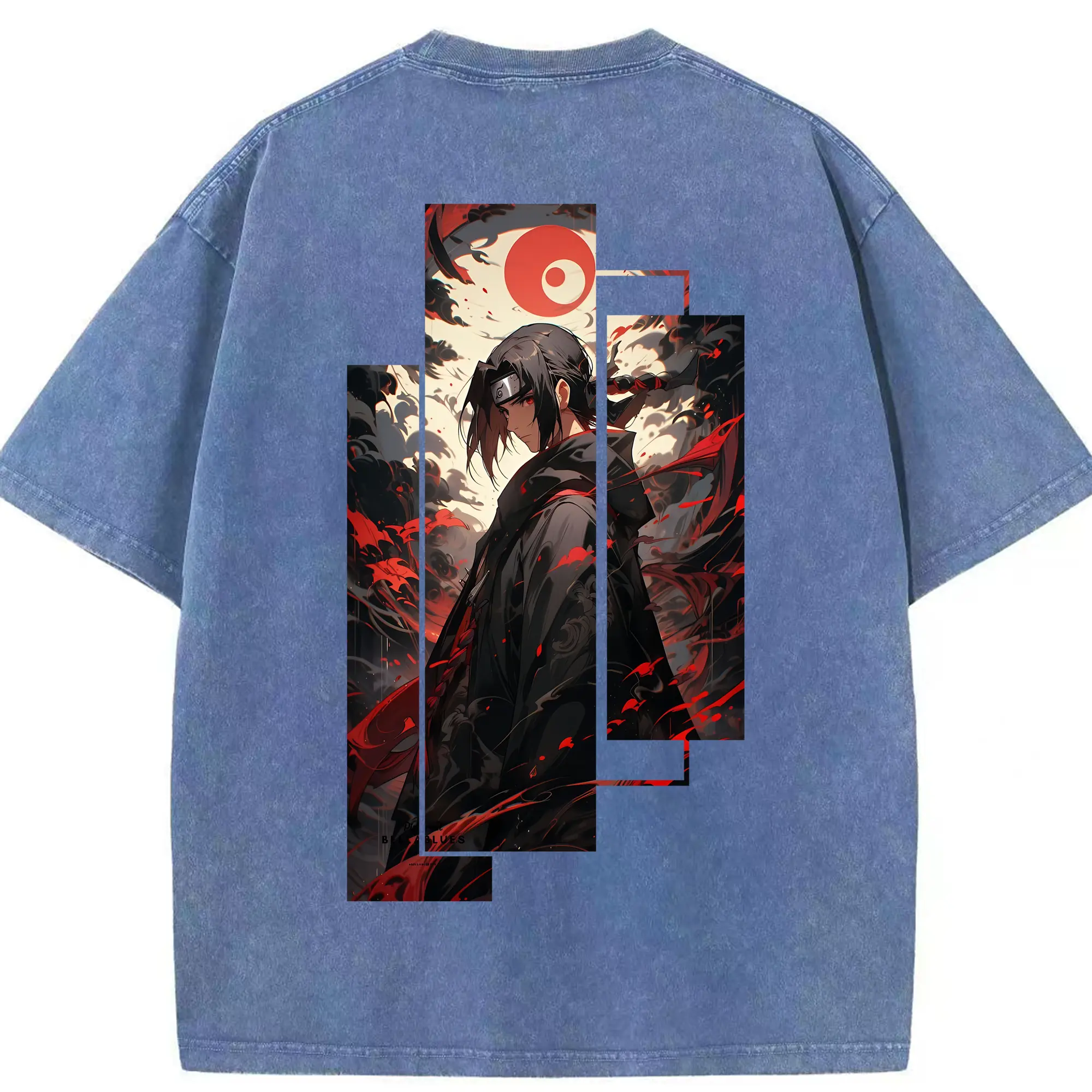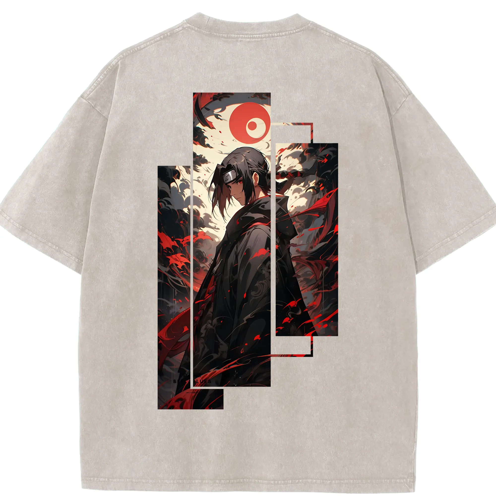 ナルト グッズ うちは イタチ - 綿100% ヴィンテージ風 半袖Tシャツ ・ フロントプリント ・ 柔らか肌触り ・ 通気性 快適 ・ スポーツ カジュアル 外出用
