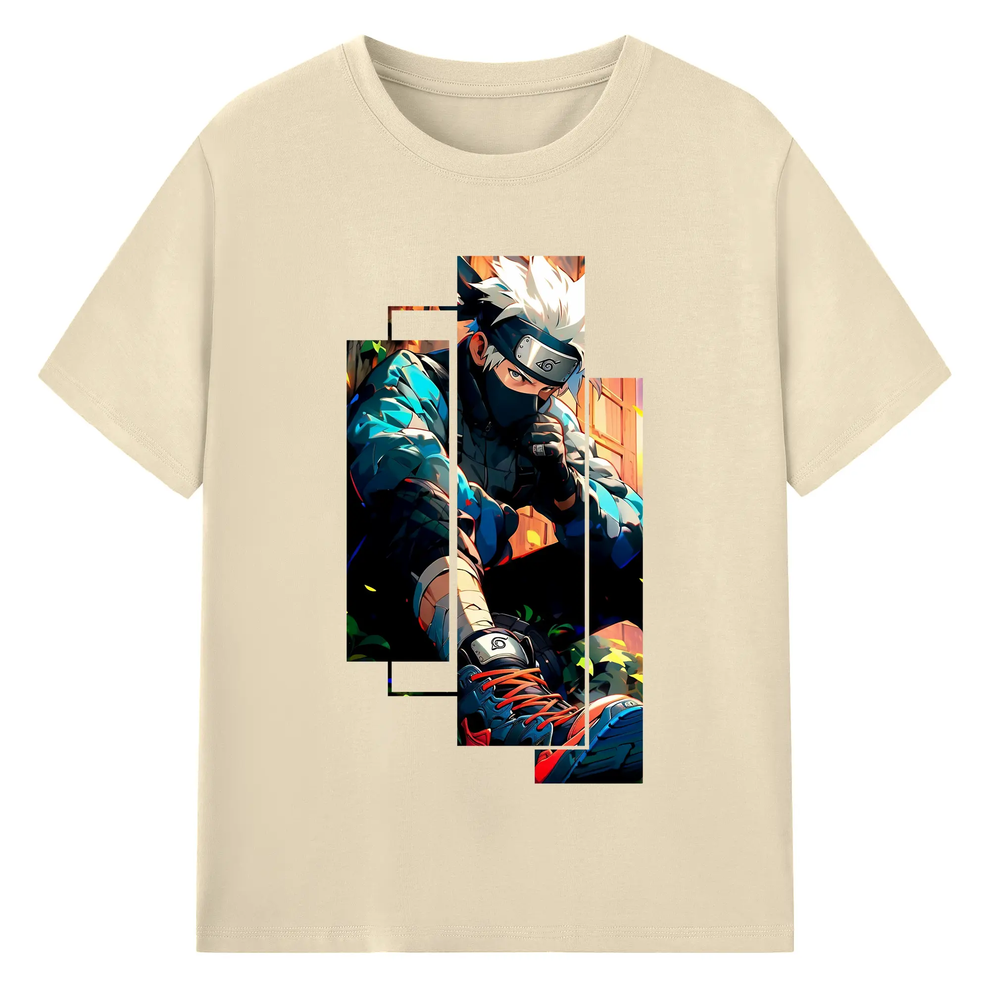 ナルト グッズ はたけ カカシ - 綿100% ヴィンテージ風 半袖Tシャツ ・ フロントプリント ・ 柔らか肌触り ・ 通気性 快適 ・ スポーツ カジュアル 外出用