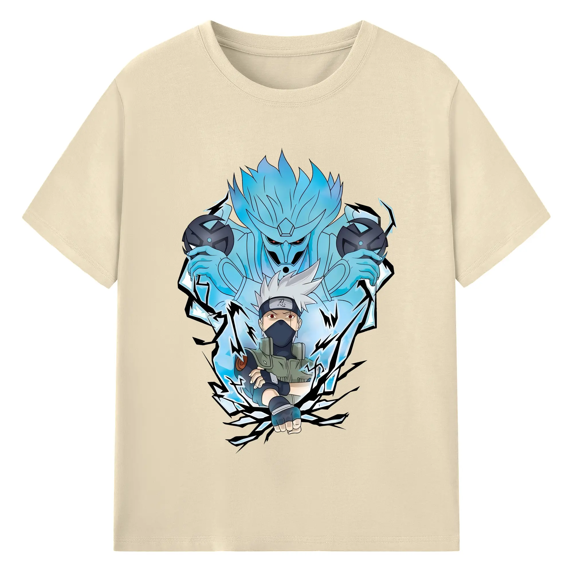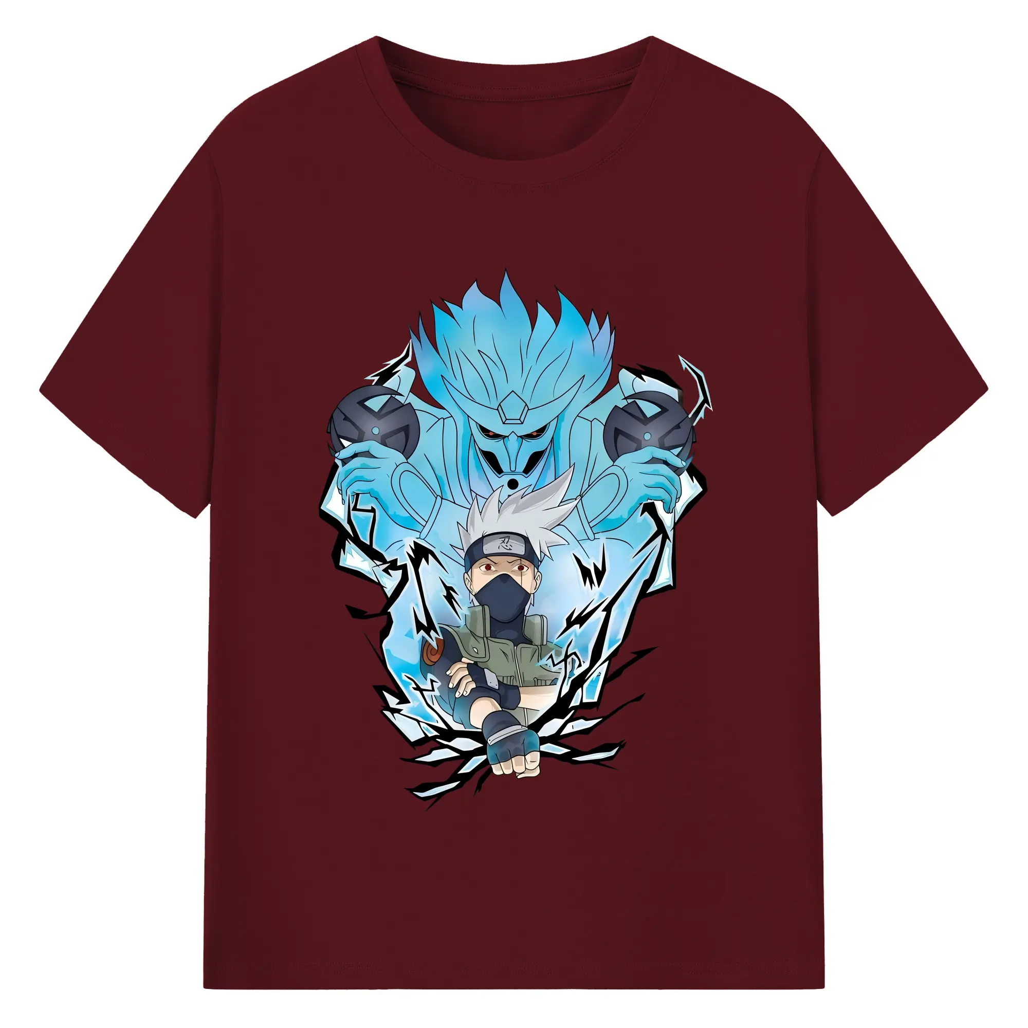ナルト グッズ はたけ カカシ - 綿100% 半袖Tシャツ ・ バックプリント ・ 快適 通気性 ・ 日常使い 散歩 スポーツ用