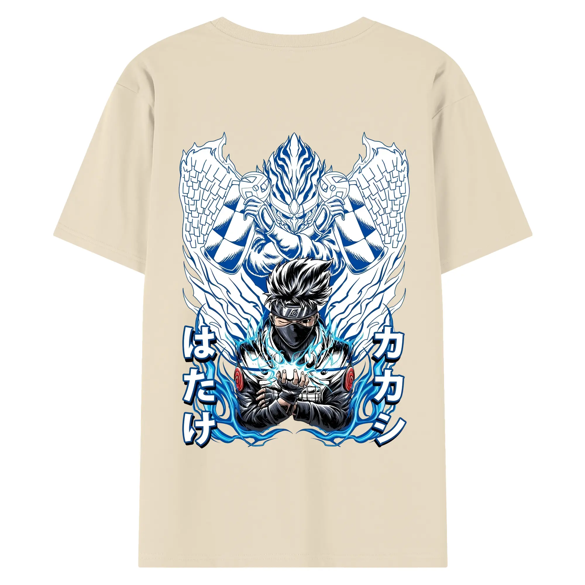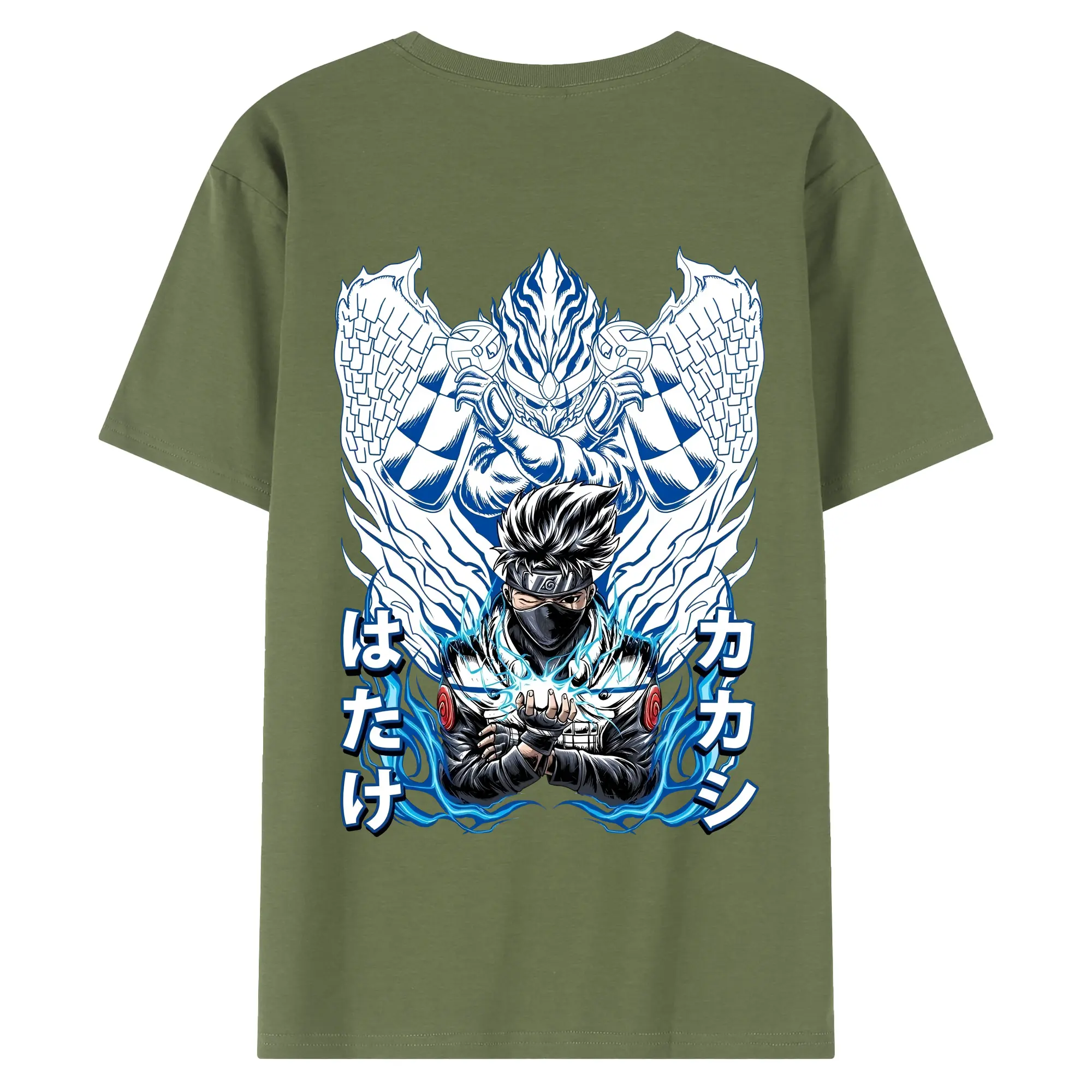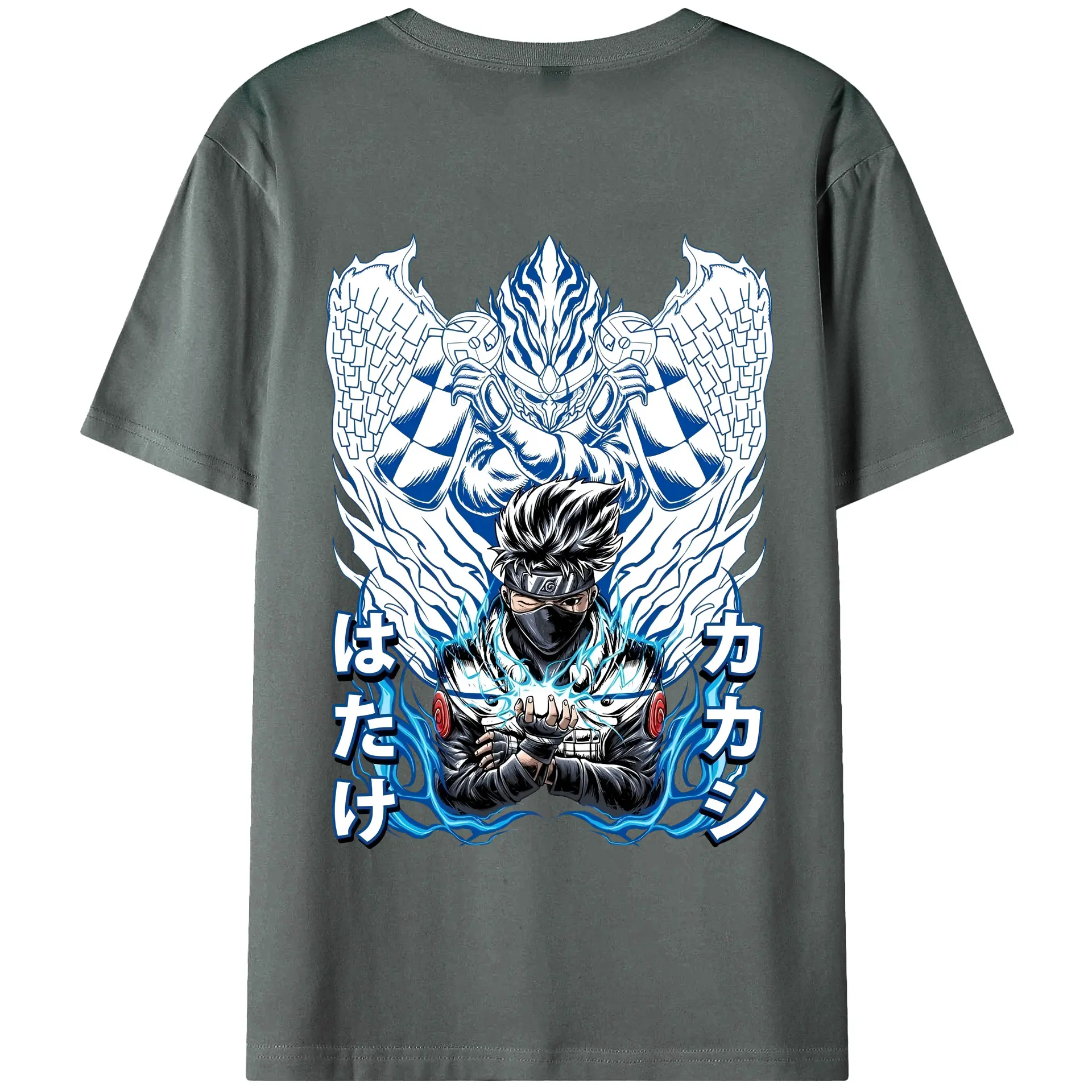 ナルト グッズ はたけ カカシ - 綿100% ヴィンテージ風 半袖Tシャツ ・ 背面プリント ・ 柔らか肌触り ・ 通気性 快適 ・ スポーツ カジュアル 外出用