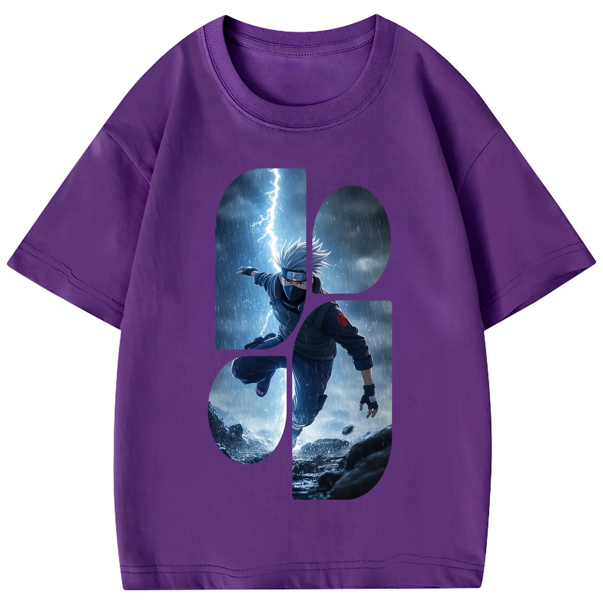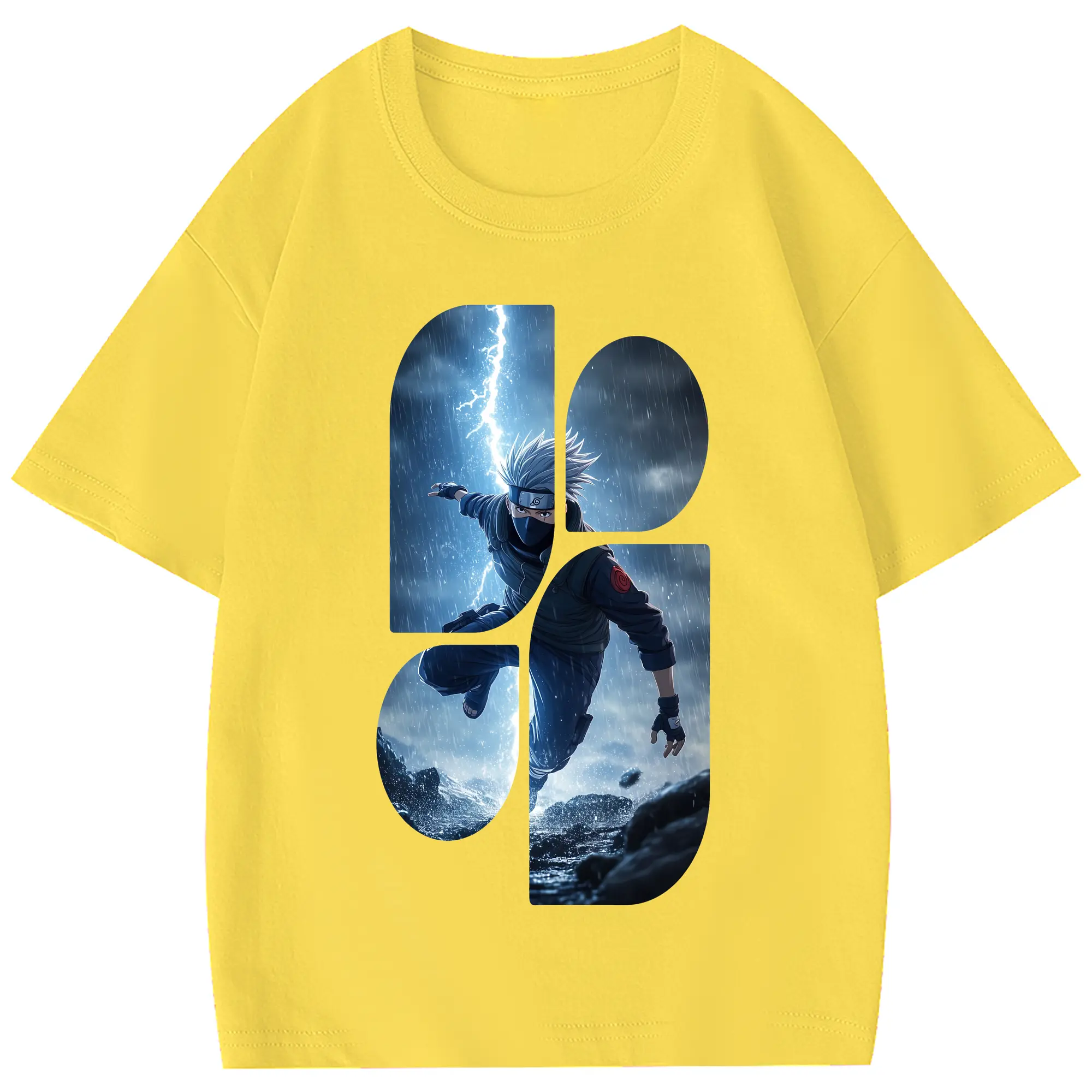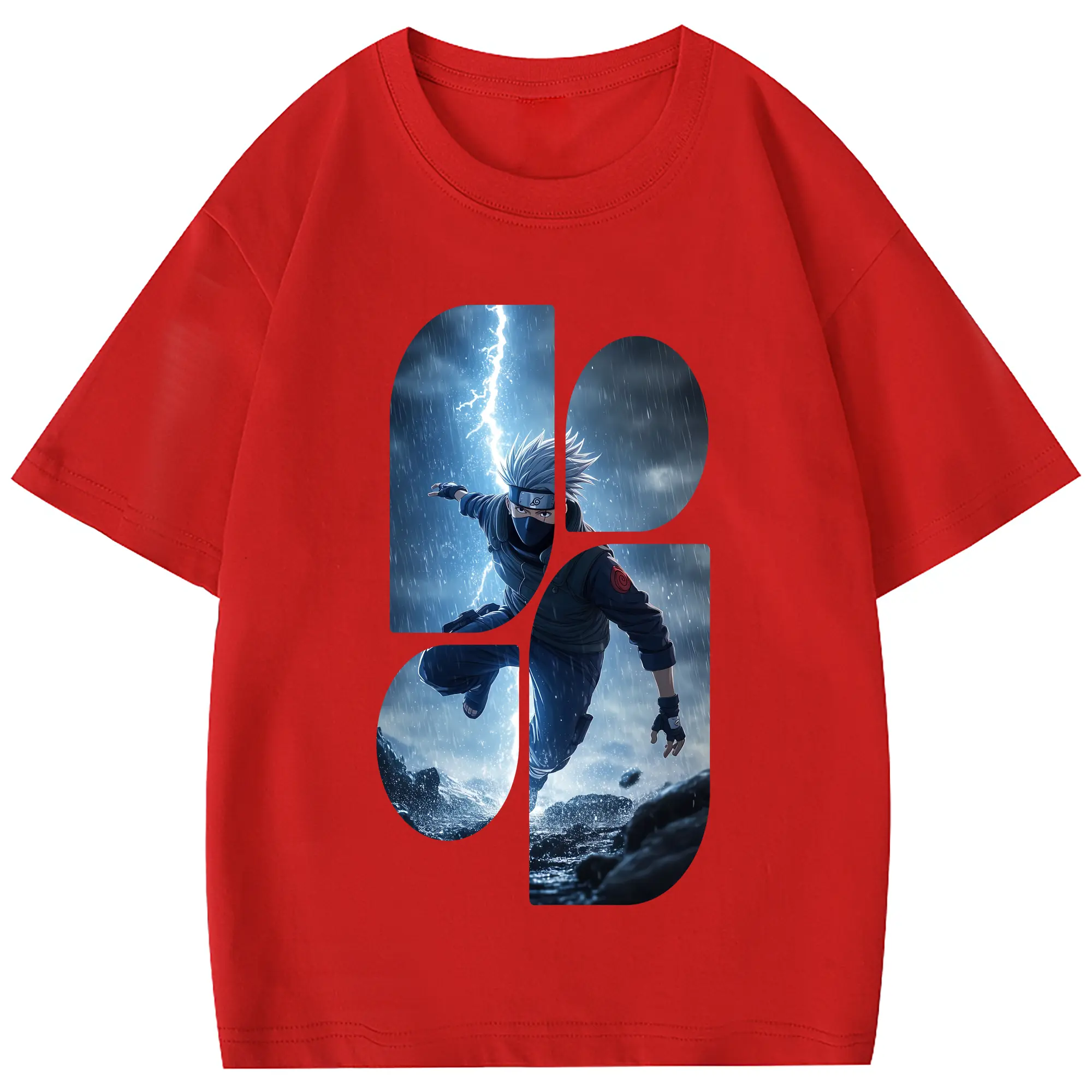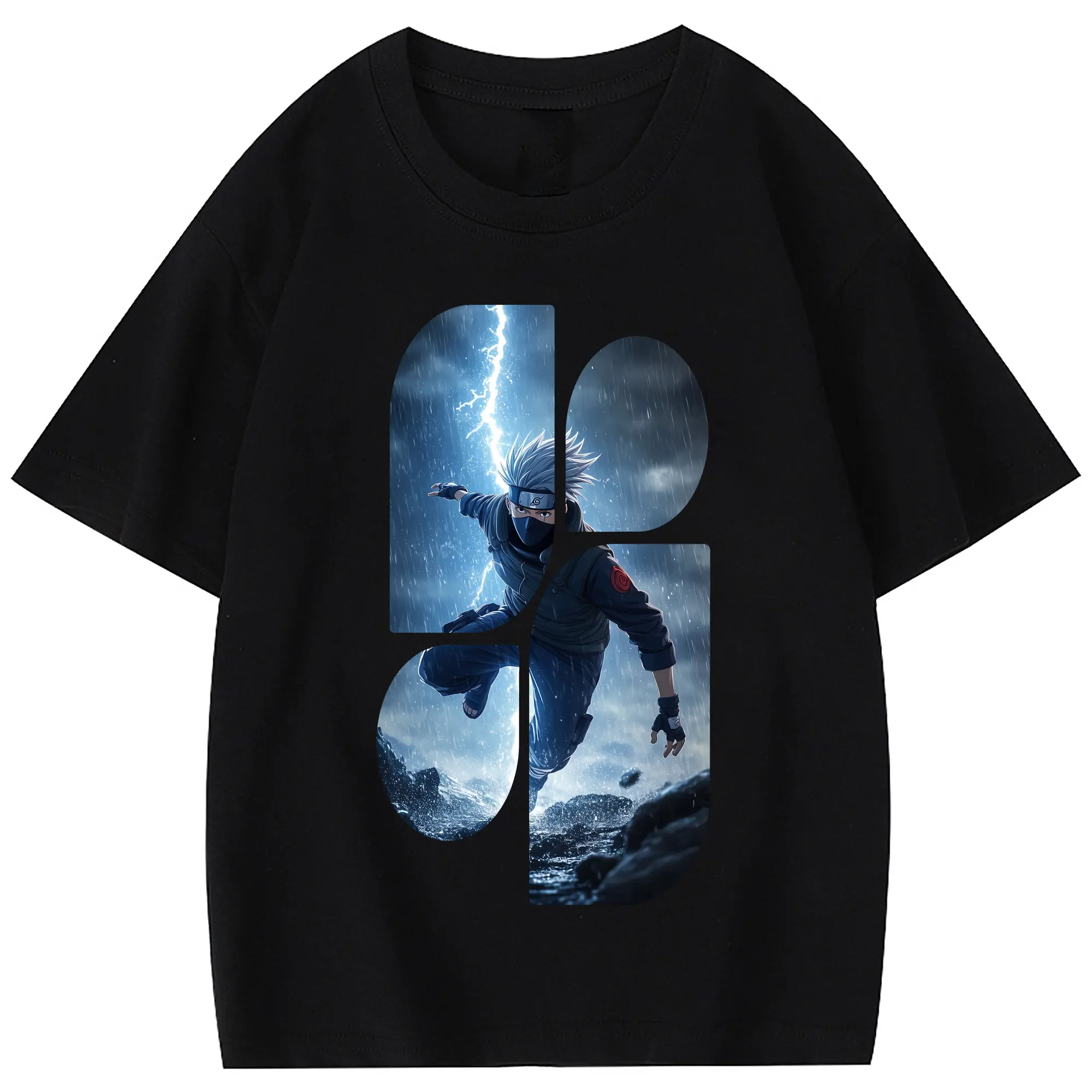 ナルト グッズ はたけ カカシ - 綿100% 半袖Tシャツ ・ フロントプリント ・ 快適 通気性 ・ 日常使い 散歩 スポーツ用