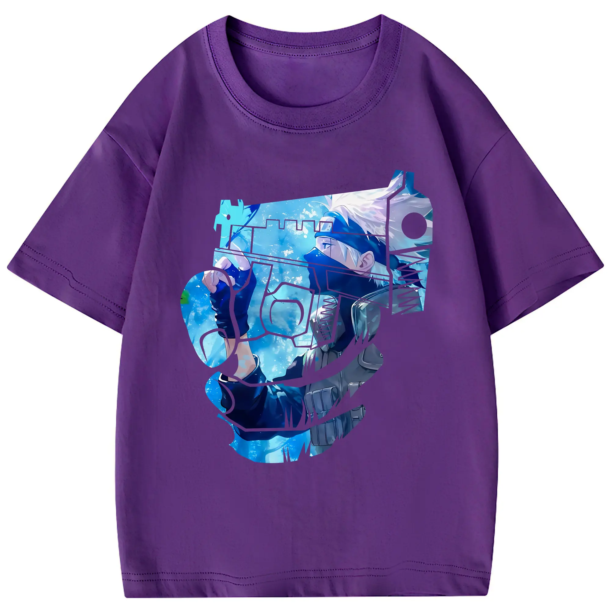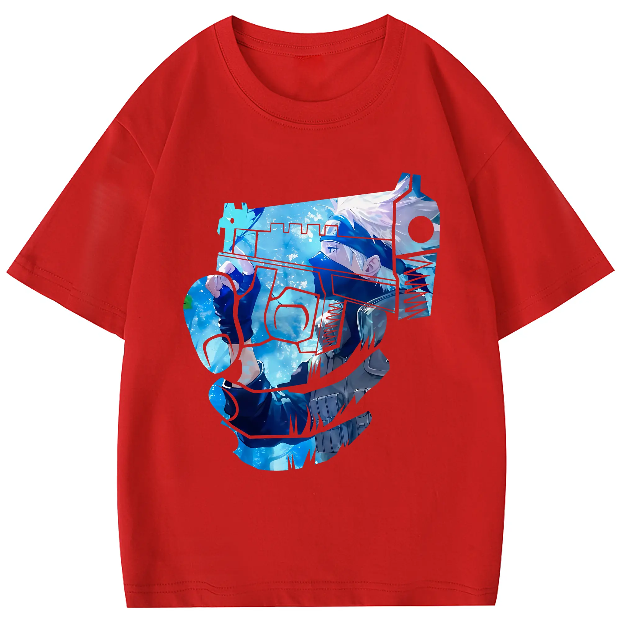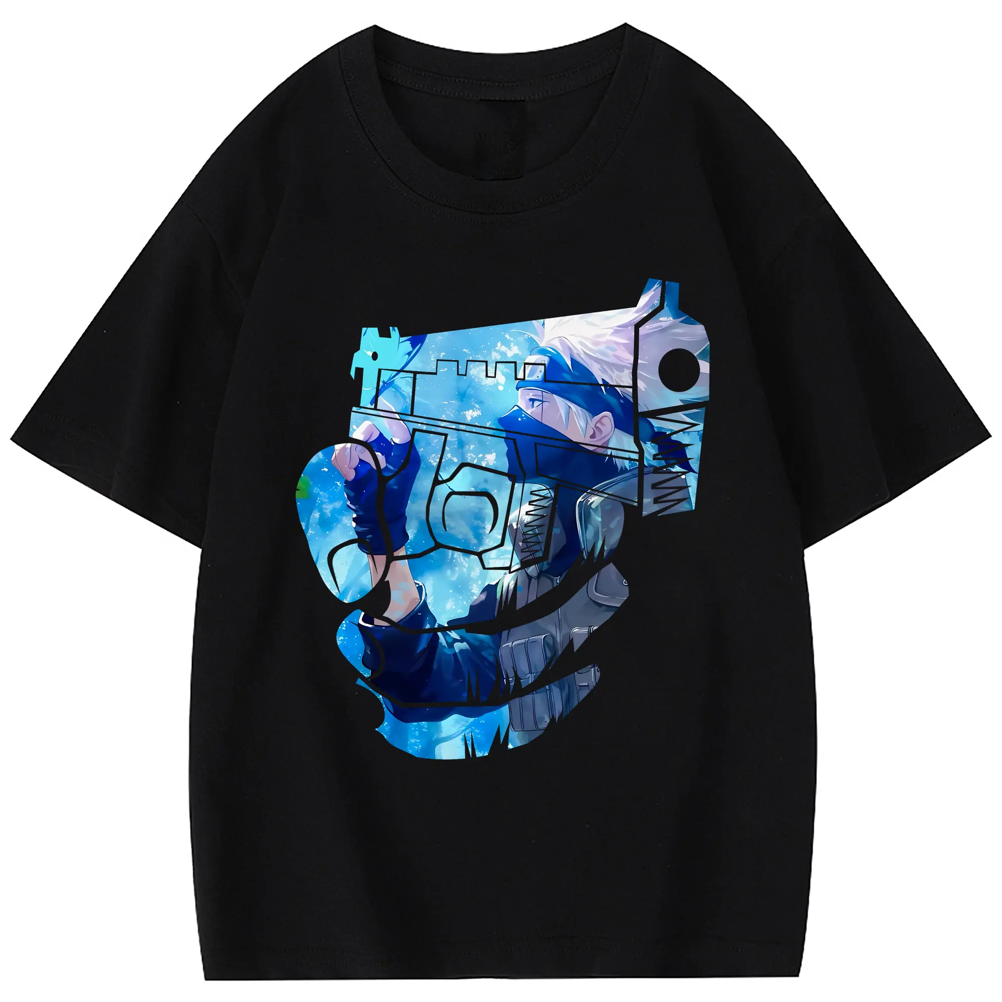ナルト グッズ はたけ カカシ - 綿100% 半袖Tシャツ ・ フロントプリント ・ 快適 通気性 ・ 日常使い 散歩 スポーツ用