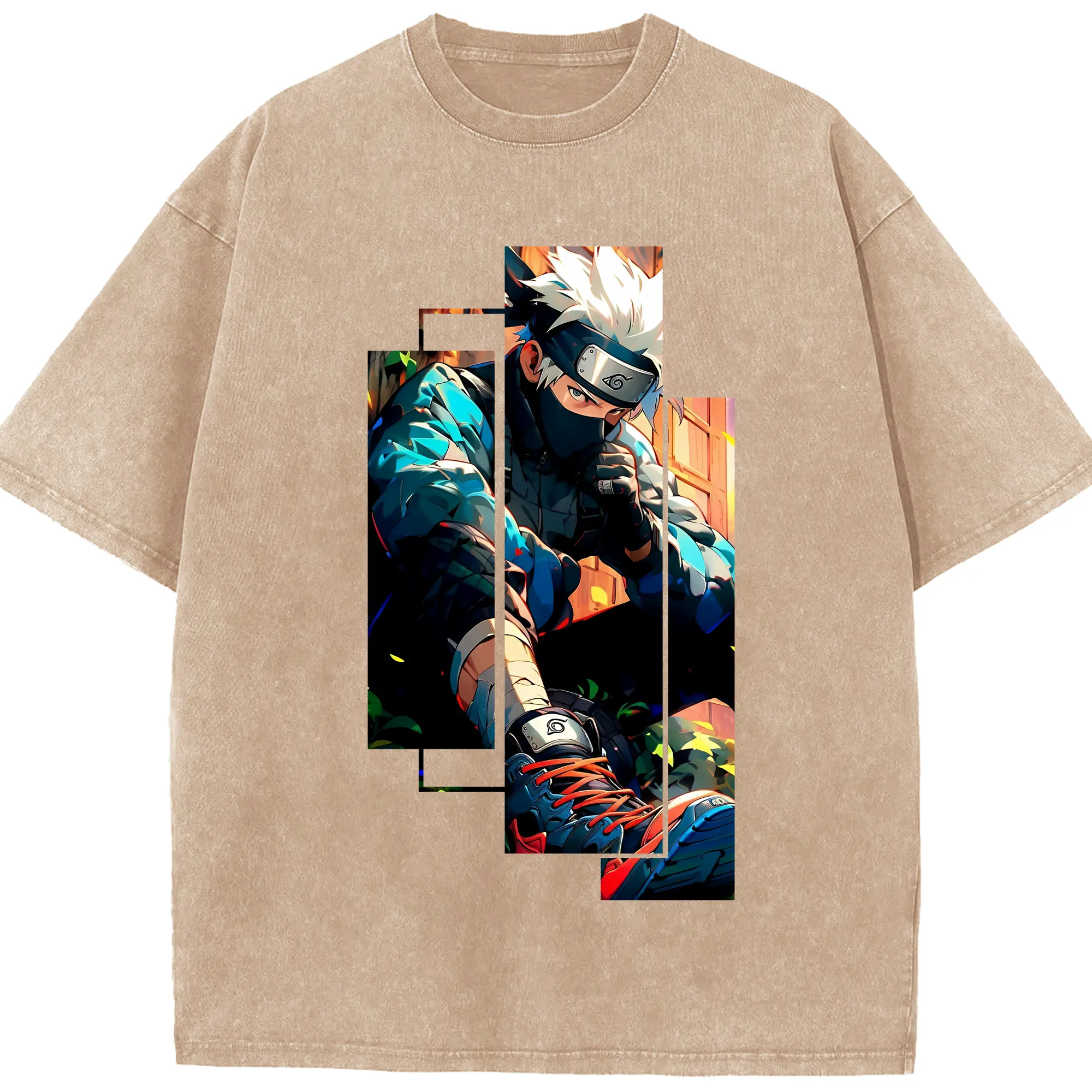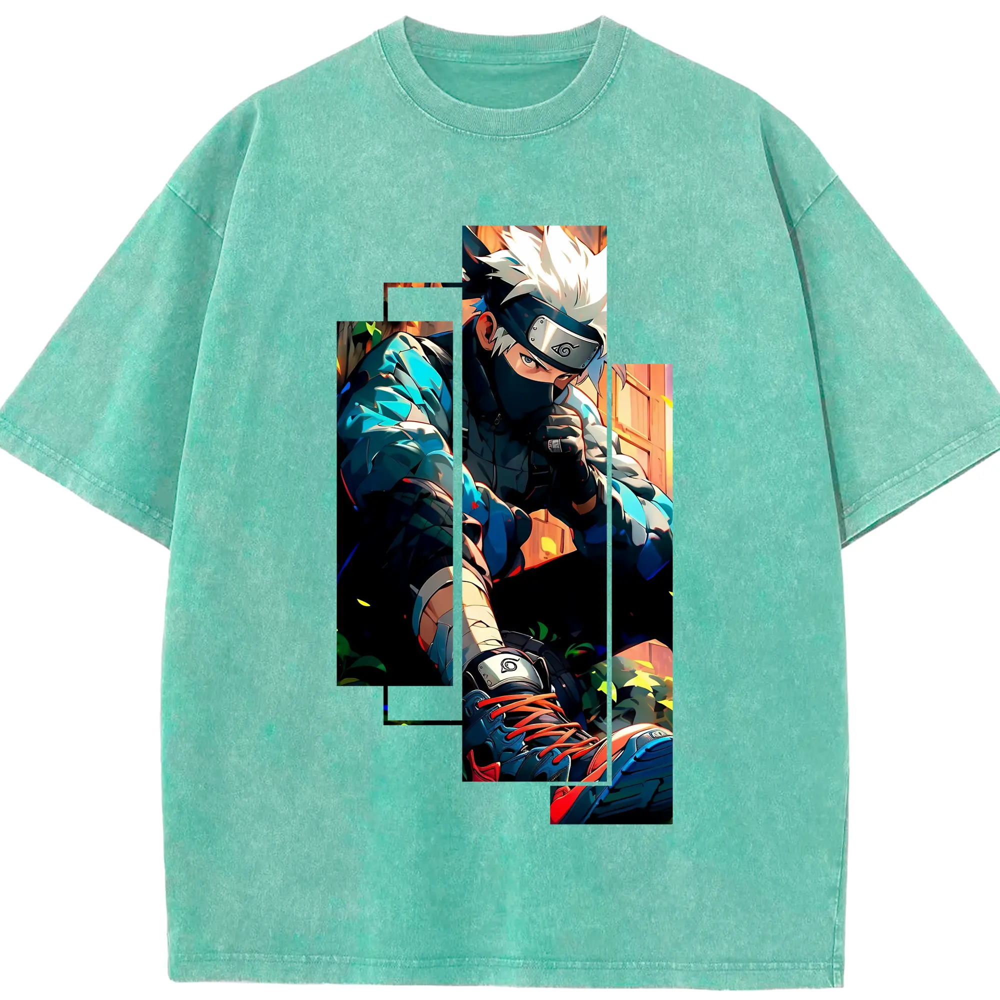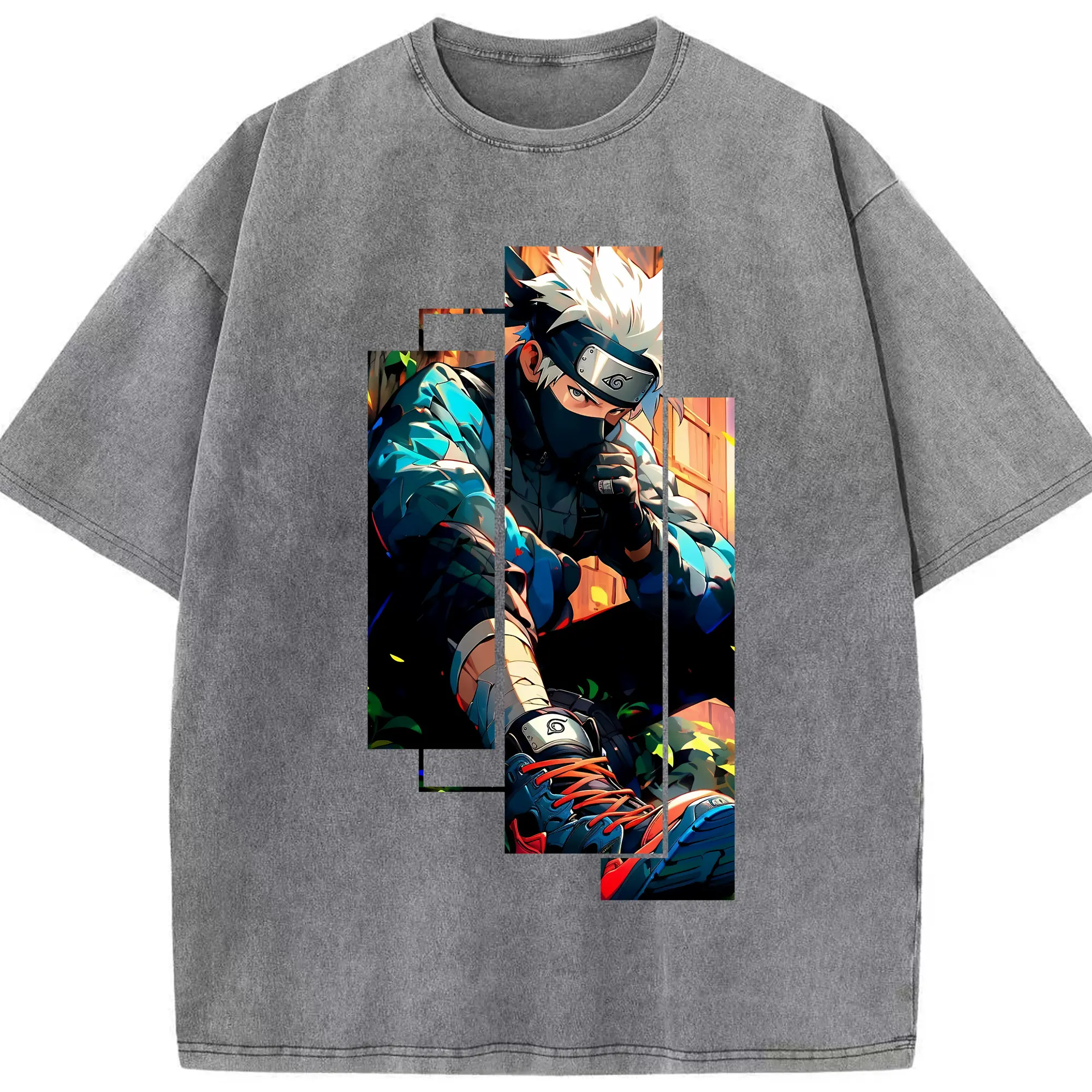 ナルト グッズ はたけ カカシ - 綿100% ヴィンテージ風 半袖Tシャツ ・ 背面プリント ・ 柔らか肌触り ・ 通気性 快適 ・ スポーツ カジュアル 外出用