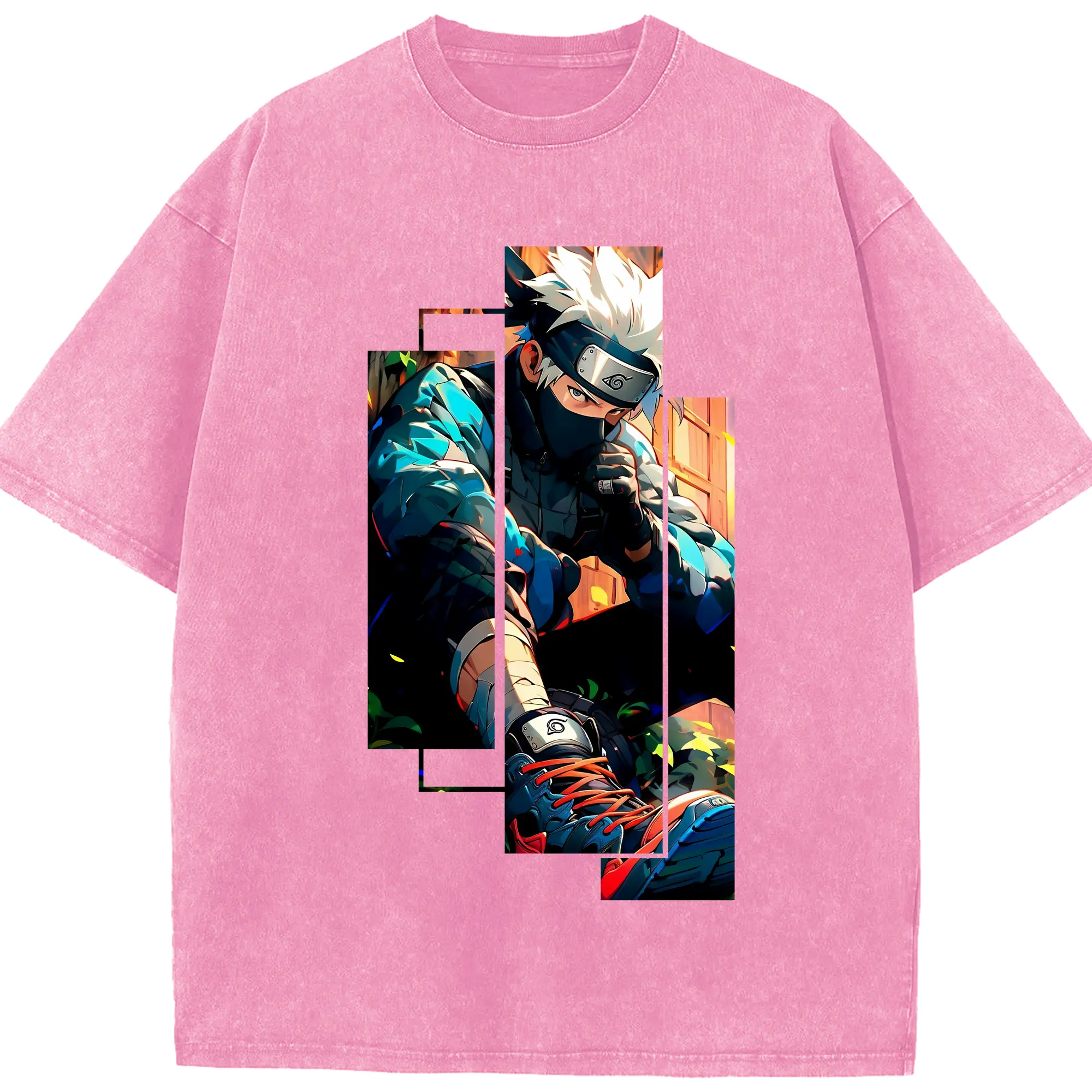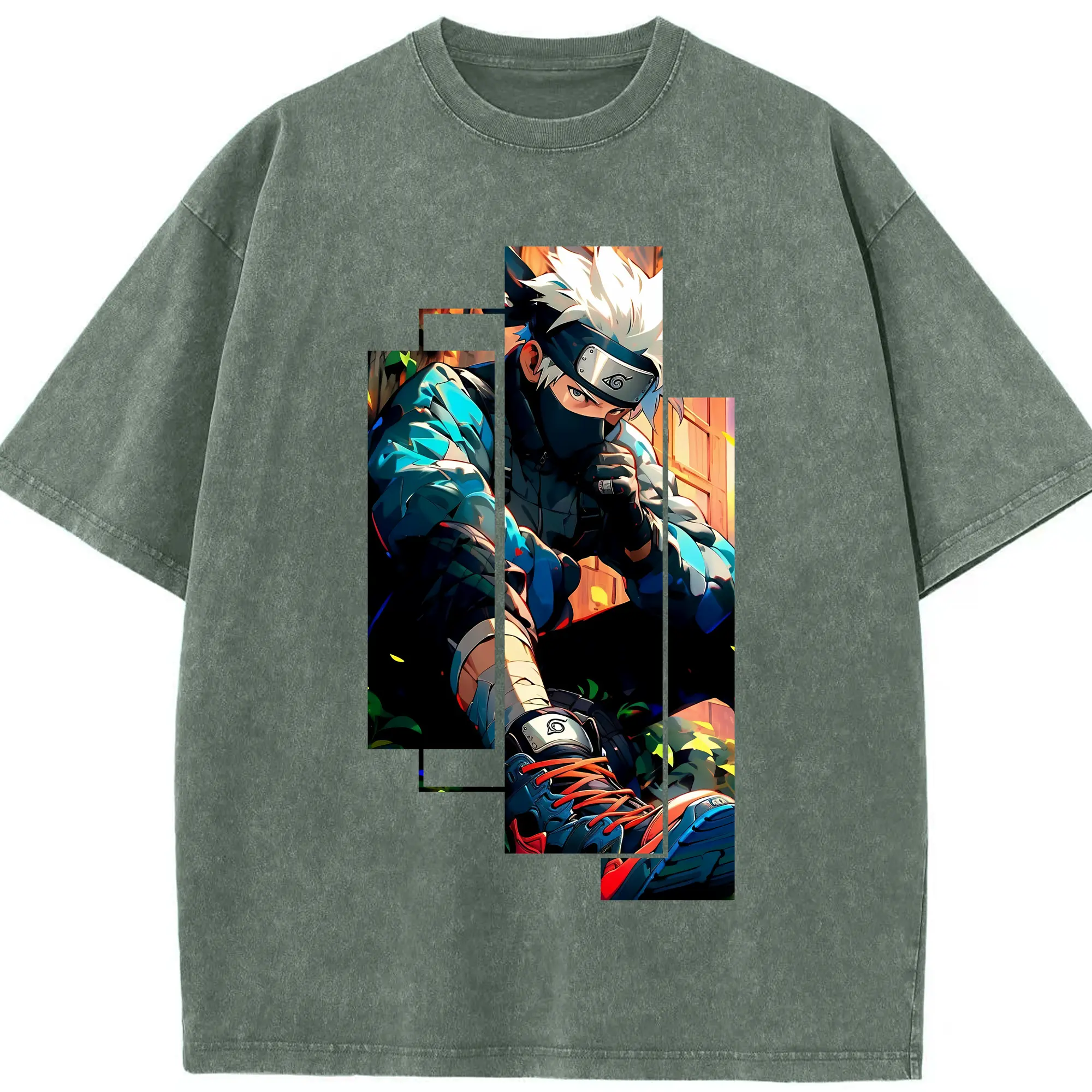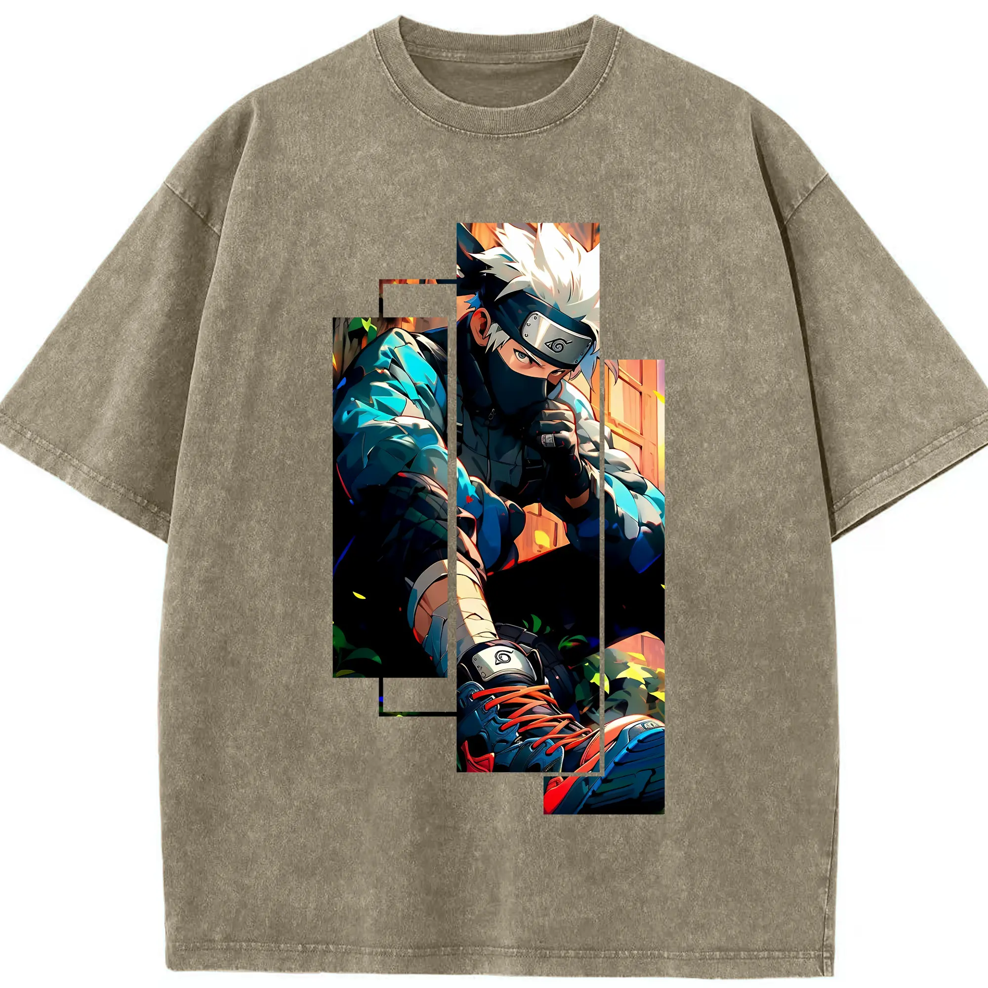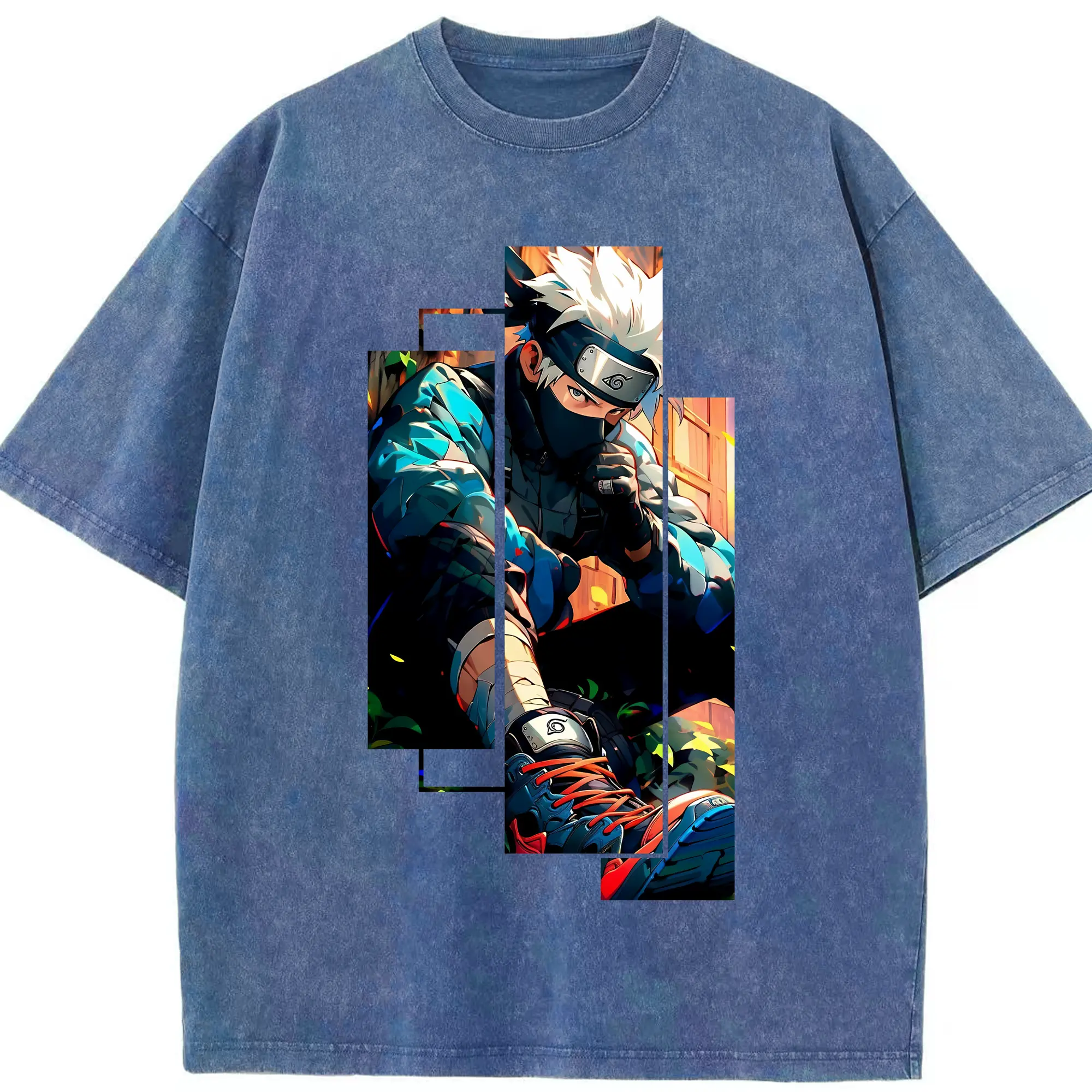 ナルト グッズ はたけ カカシ - 綿100% ヴィンテージ風 半袖Tシャツ ・ 背面プリント ・ 柔らか肌触り ・ 通気性 快適 ・ スポーツ カジュアル 外出用