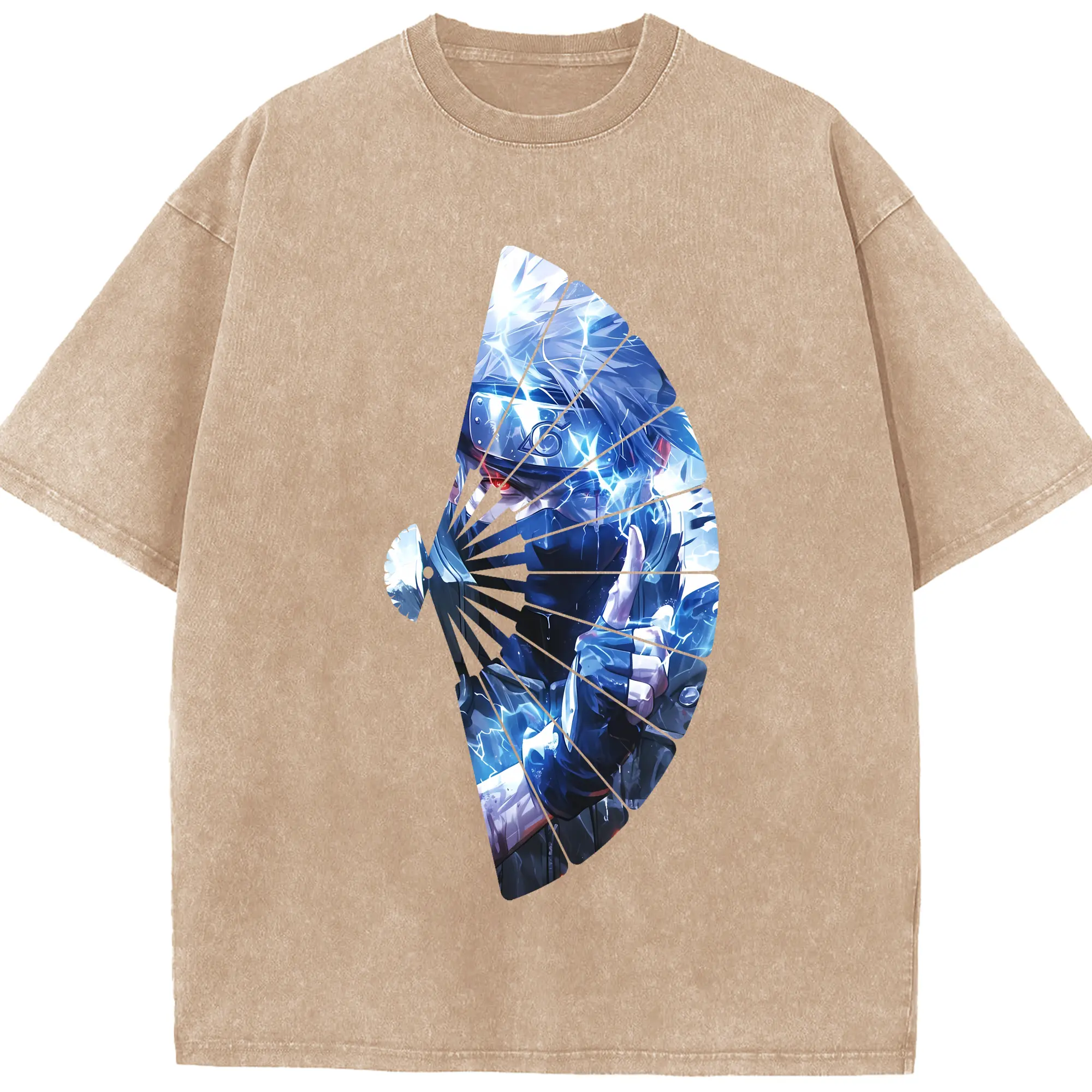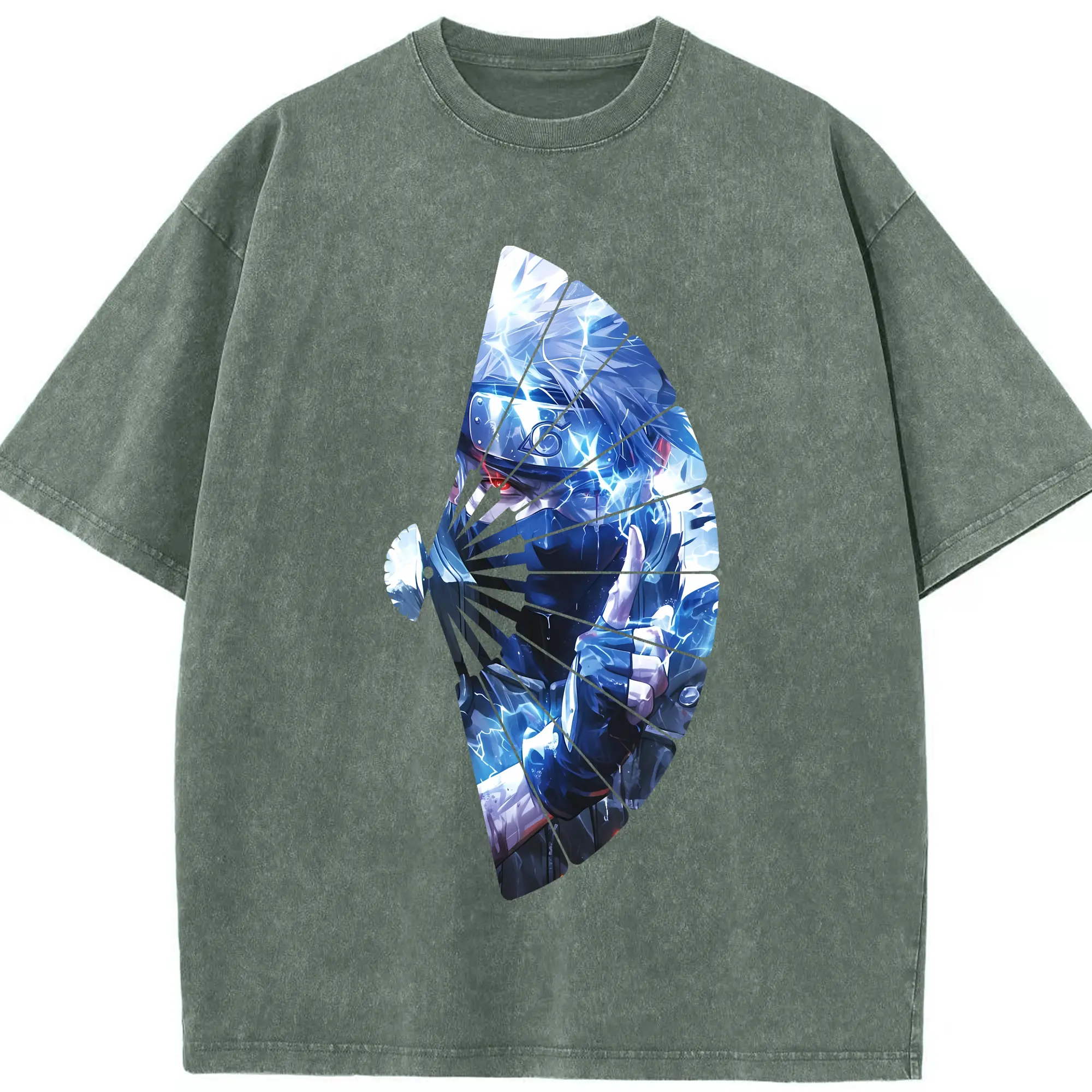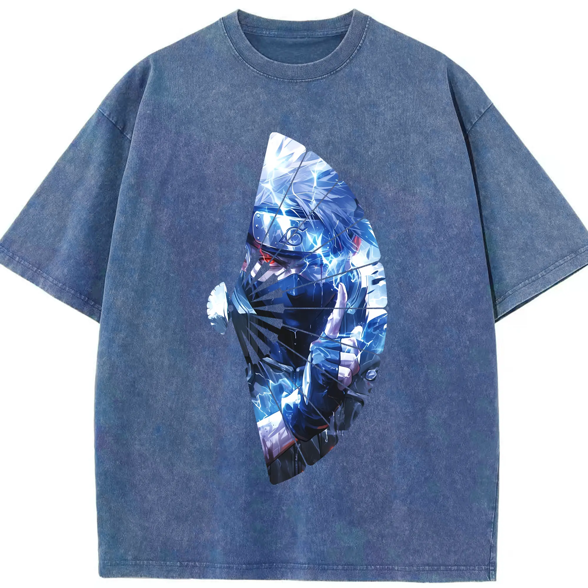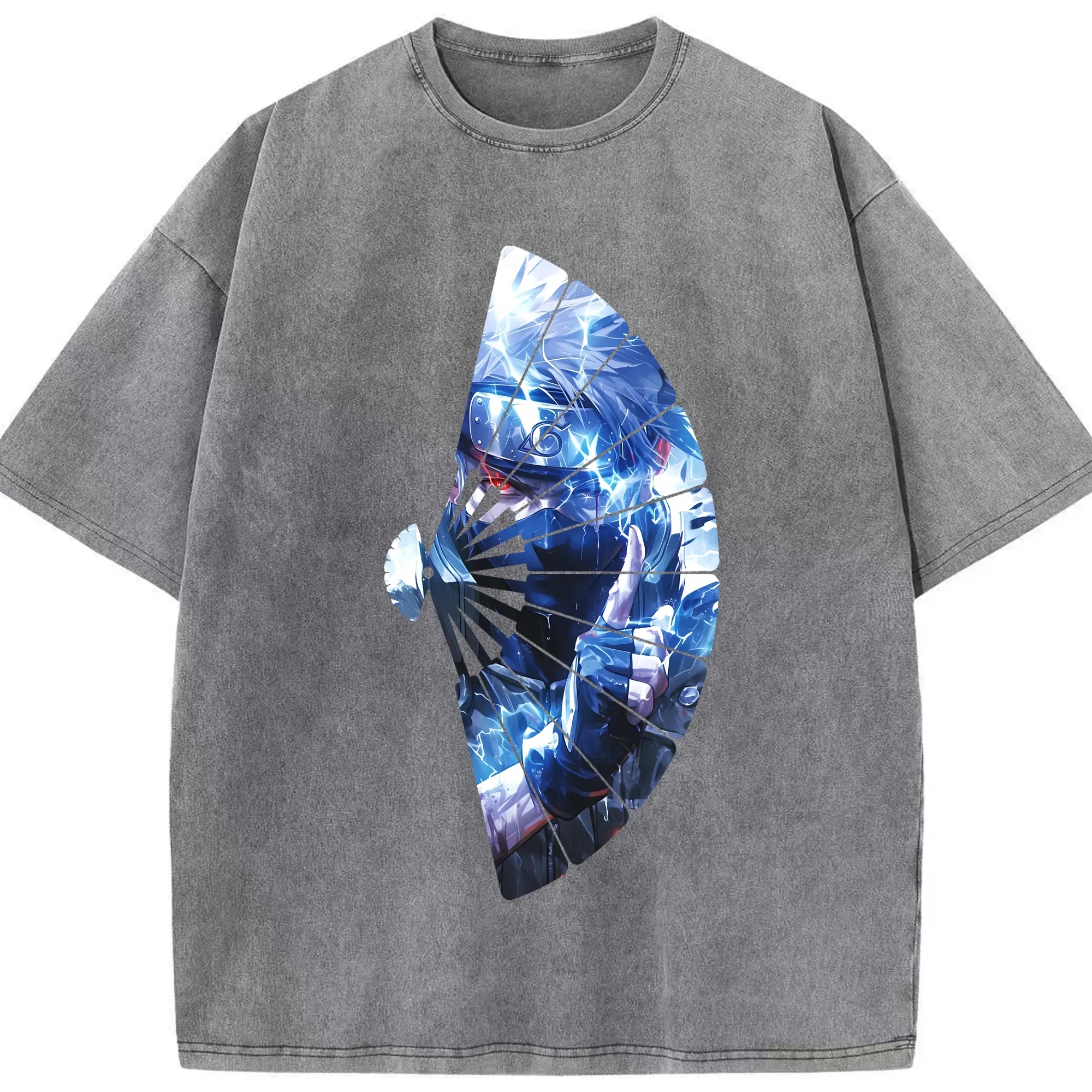 ナルト グッズ はたけ カカシ - 綿100% ヴィンテージ風 半袖Tシャツ ・ 背面プリント ・ 柔らか肌触り ・ 通気性 快適 ・ スポーツ カジュアル 外出用