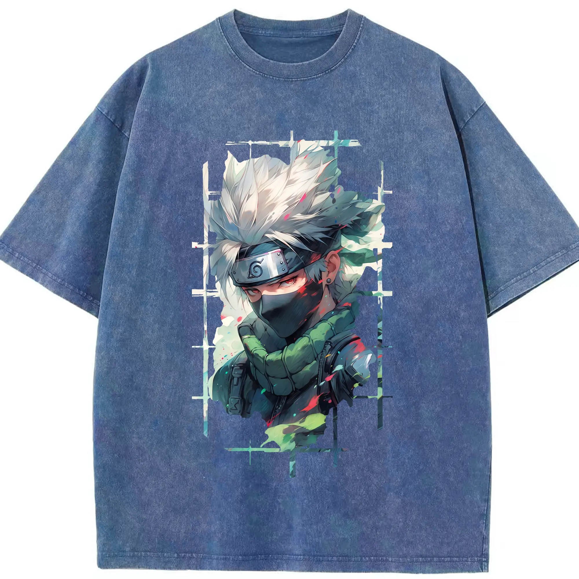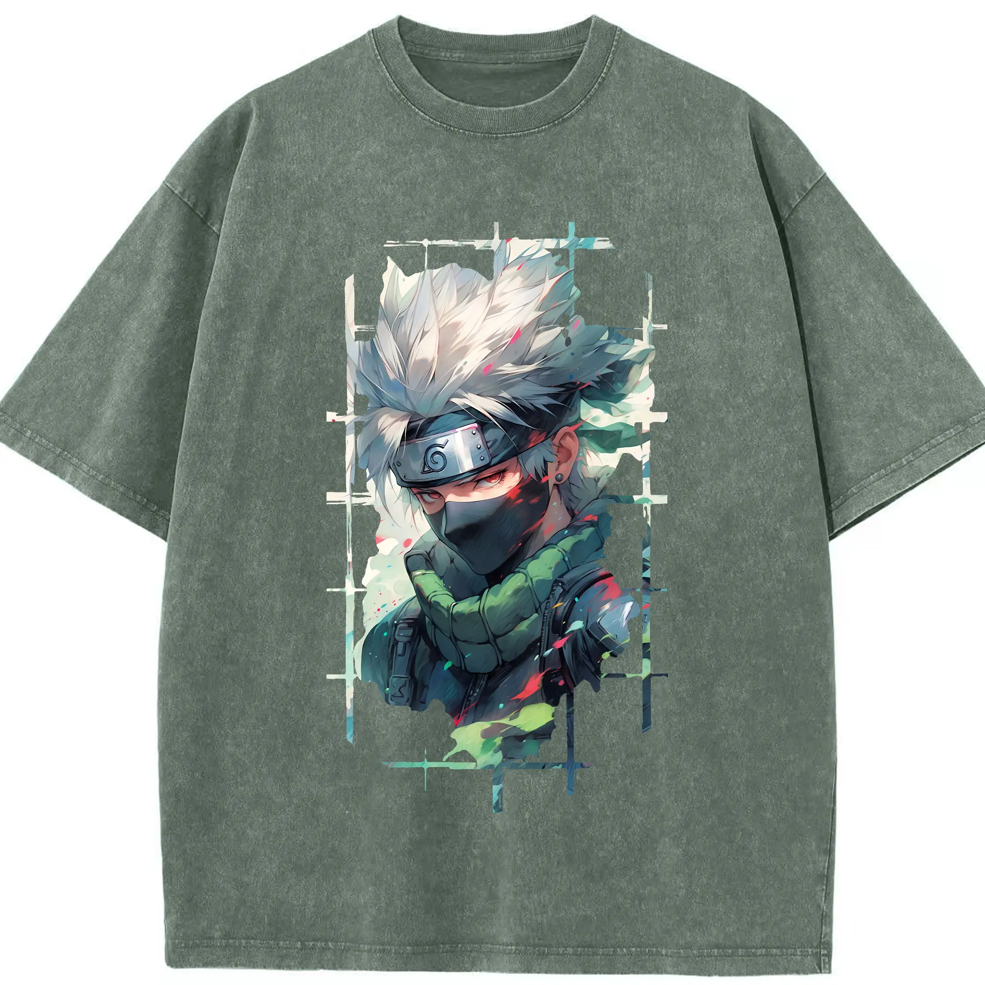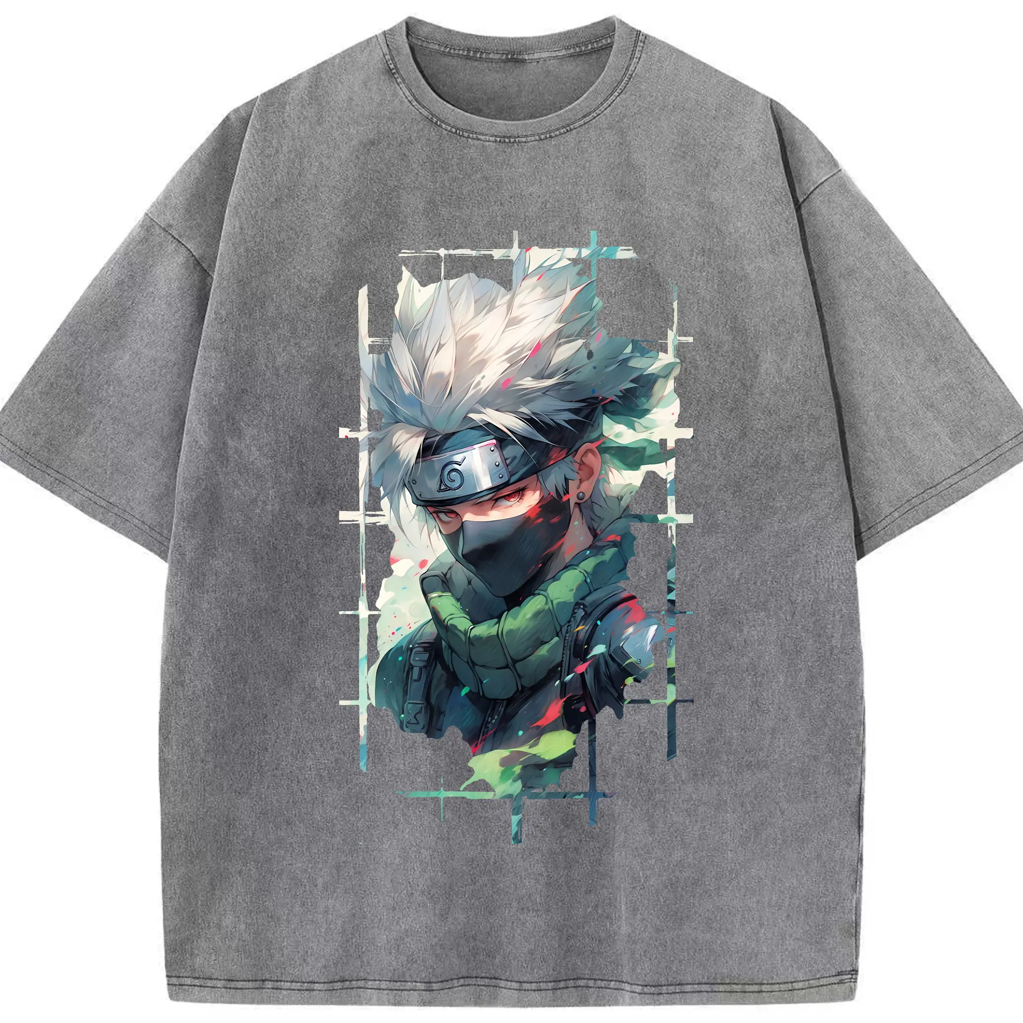 ナルト グッズ はたけ カカシ - 綿100% ヴィンテージ風 半袖Tシャツ ・ 背面プリント ・ 柔らか肌触り ・ 通気性 快適 ・ スポーツ カジュアル 外出用