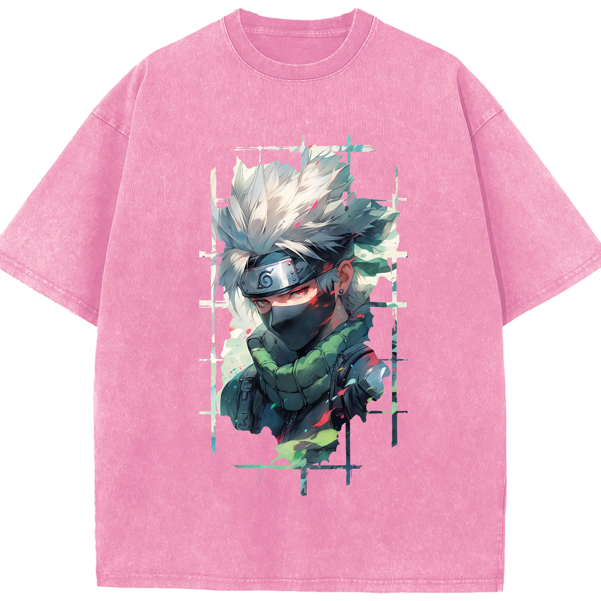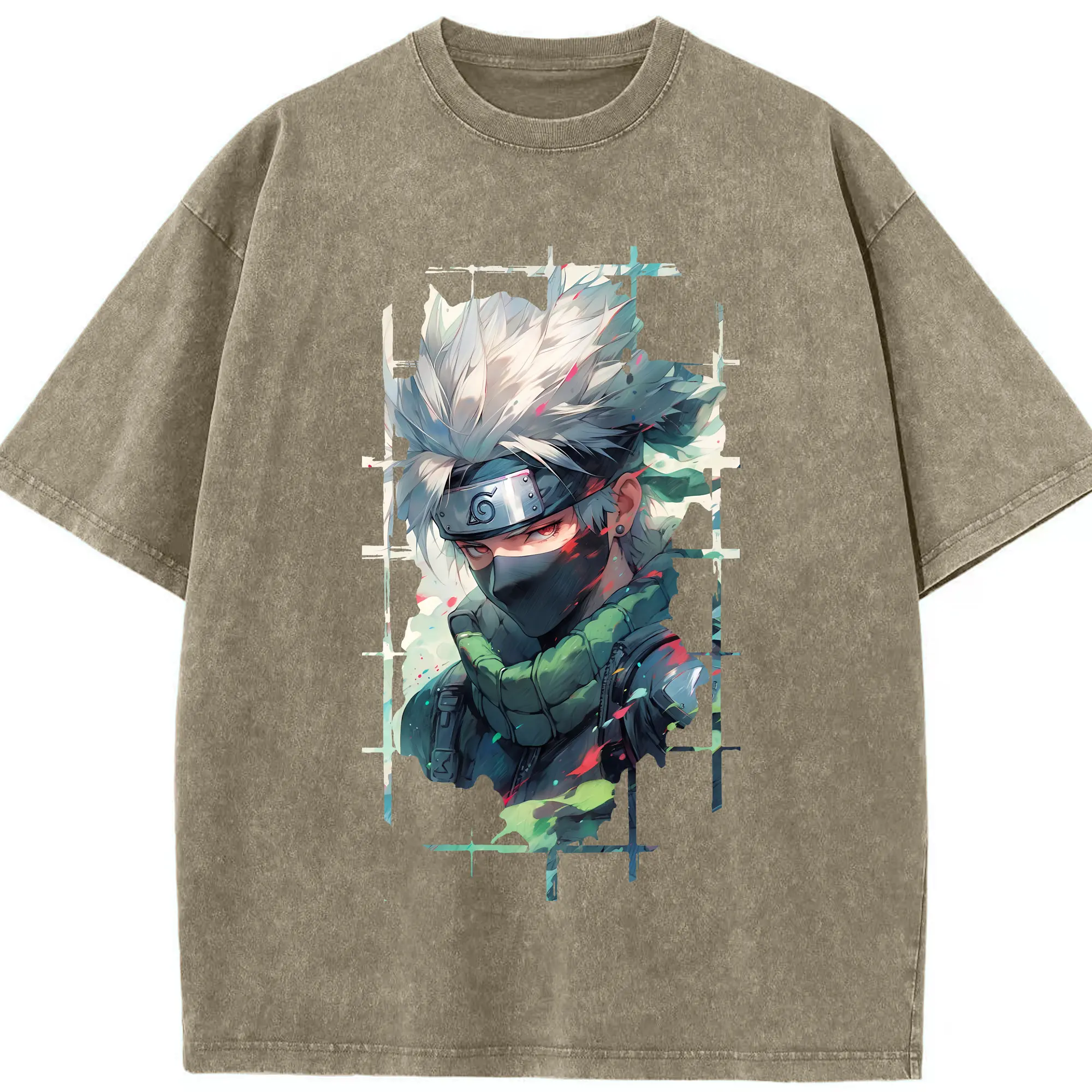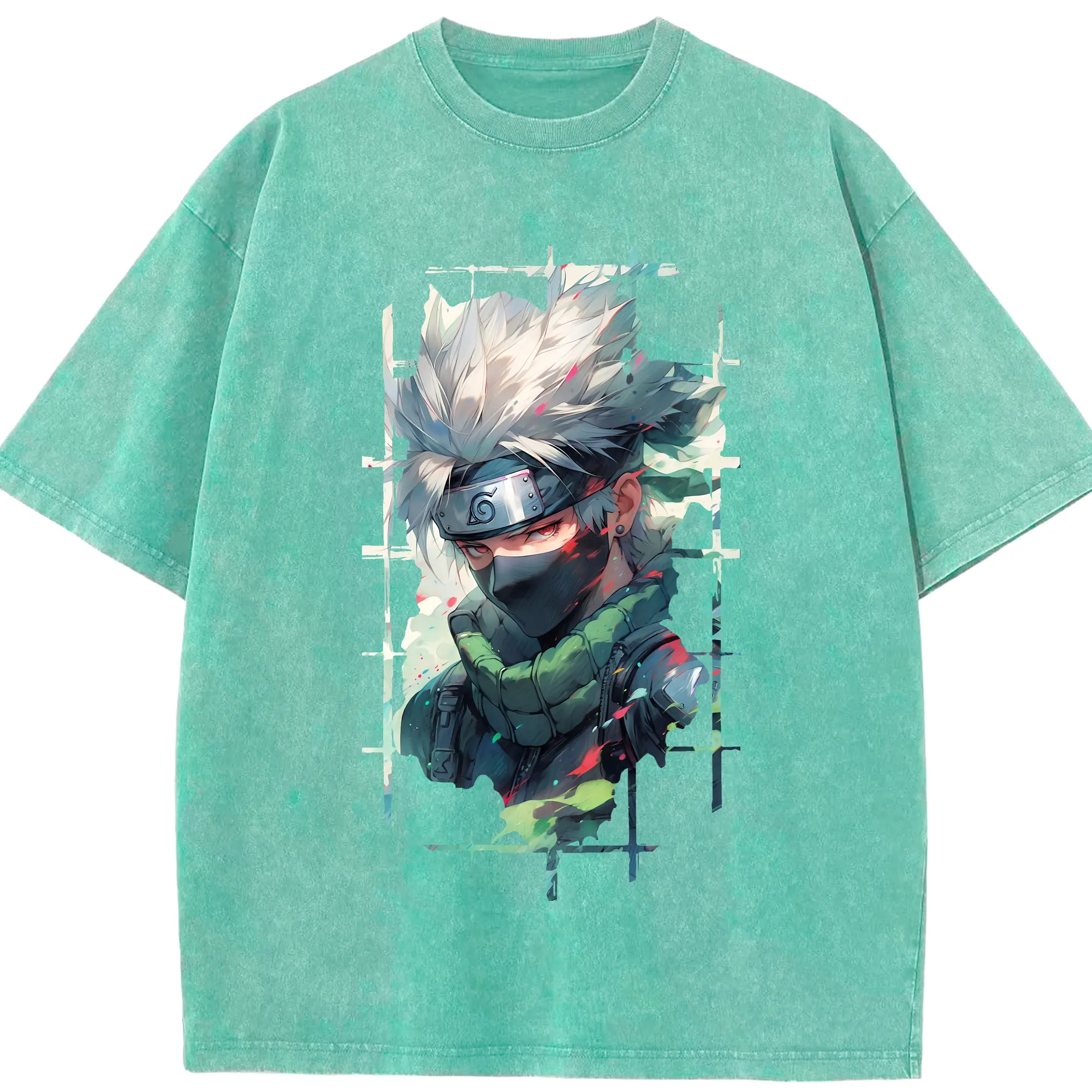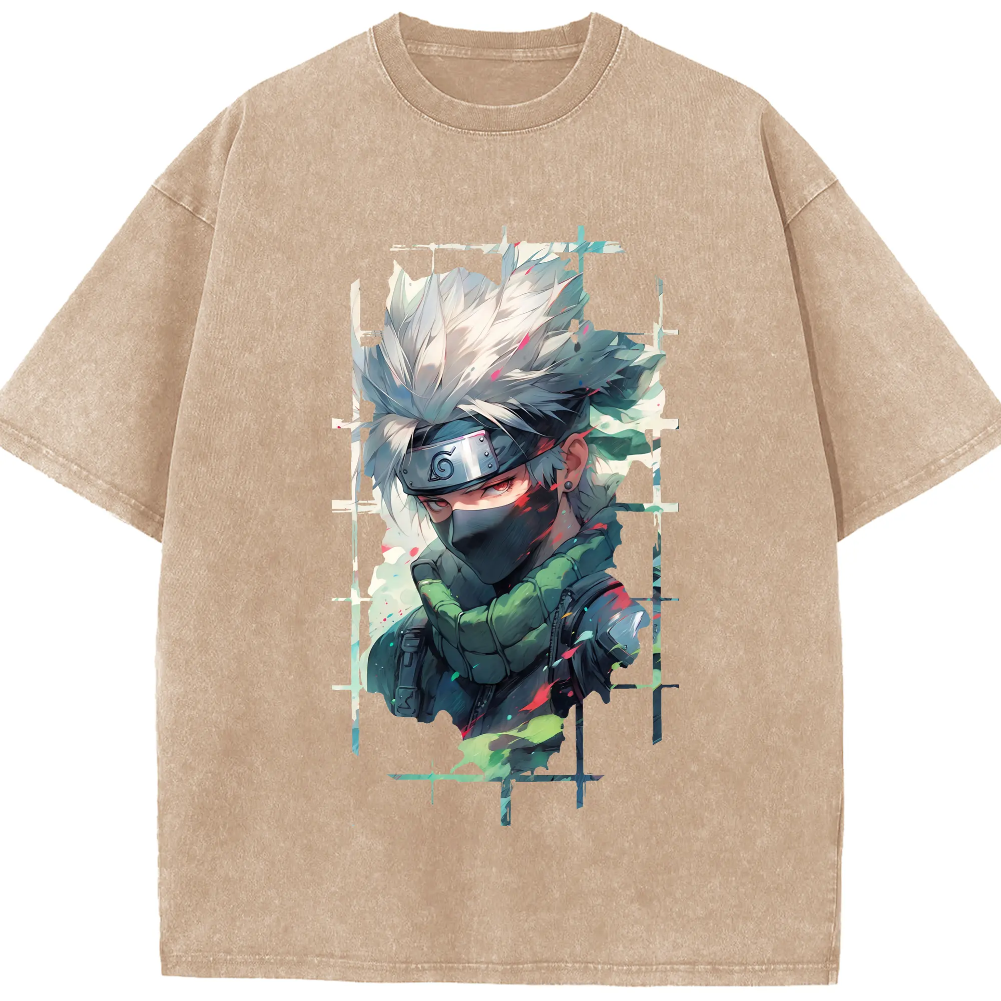 ナルト グッズ はたけ カカシ - 綿100% ヴィンテージ風 半袖Tシャツ ・ 背面プリント ・ 柔らか肌触り ・ 通気性 快適 ・ スポーツ カジュアル 外出用