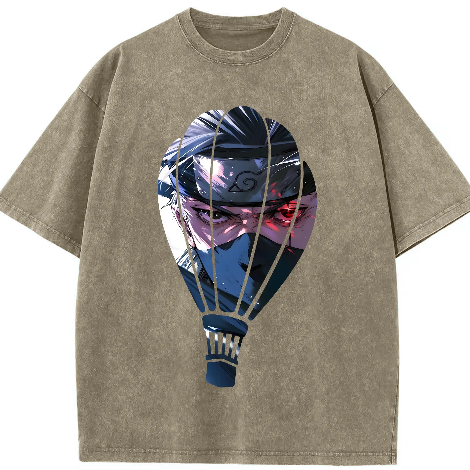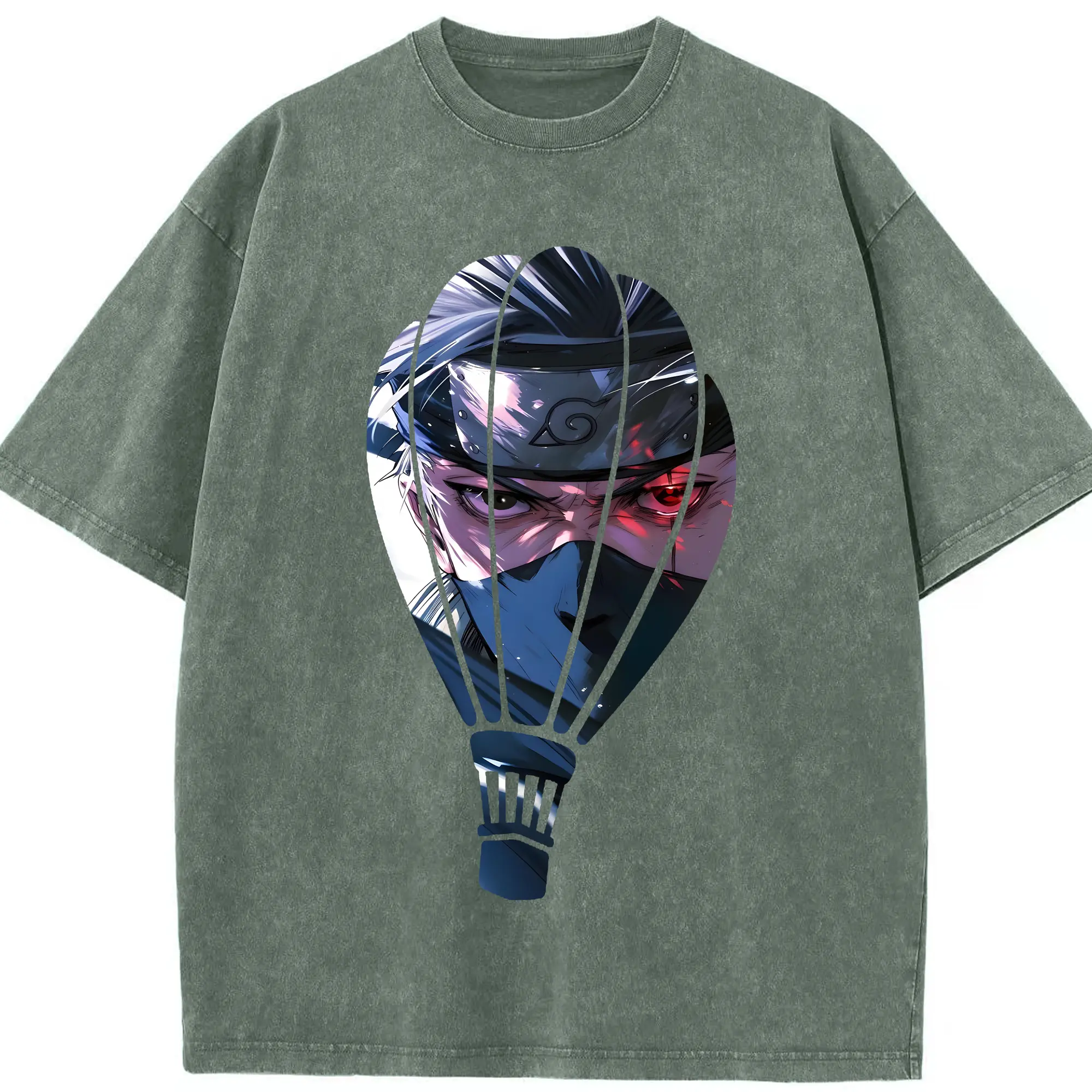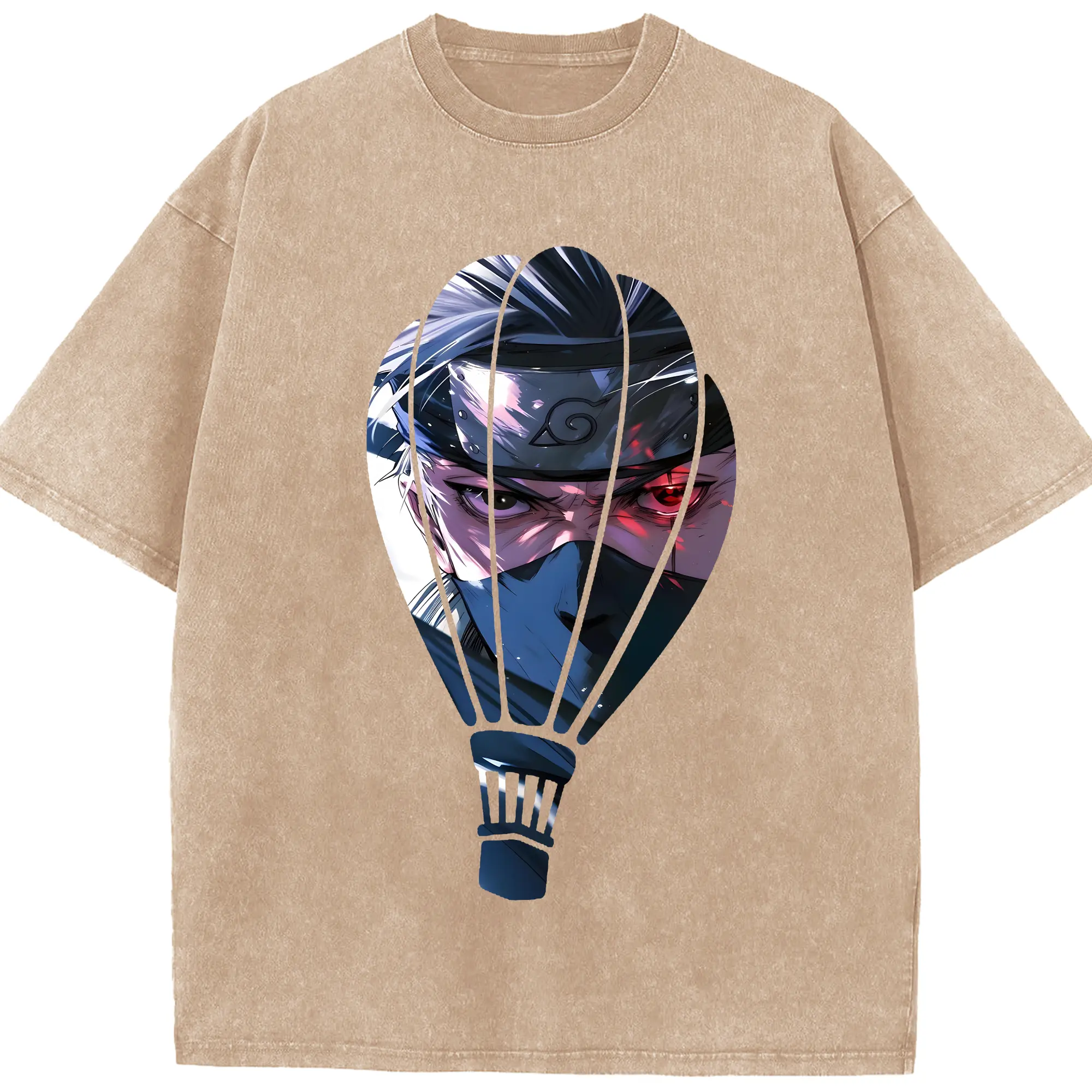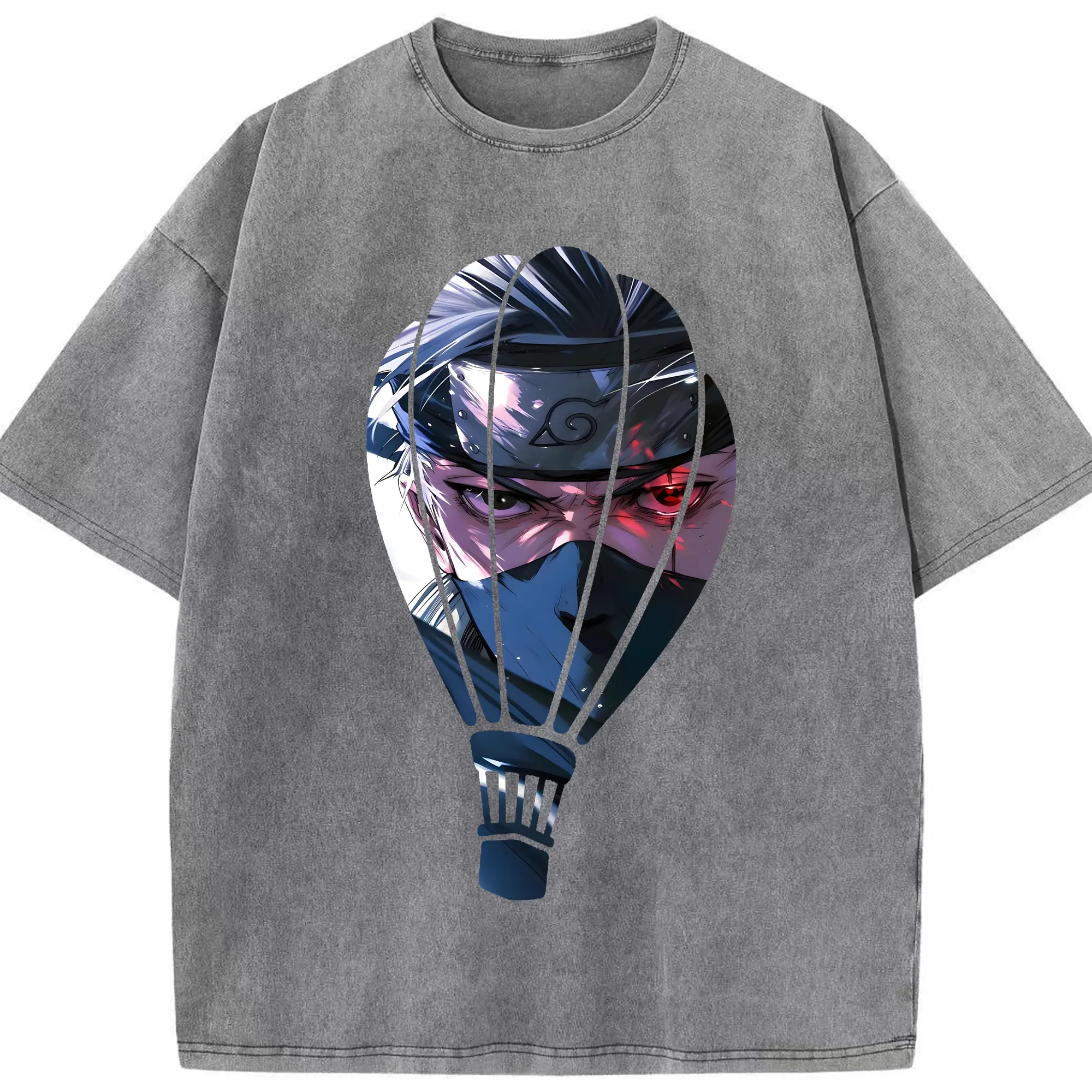 ナルト グッズ はたけ カカシ - 綿100% ヴィンテージ風 半袖Tシャツ ・ 背面プリント ・ 柔らか肌触り ・ 通気性 快適 ・ スポーツ カジュアル 外出用