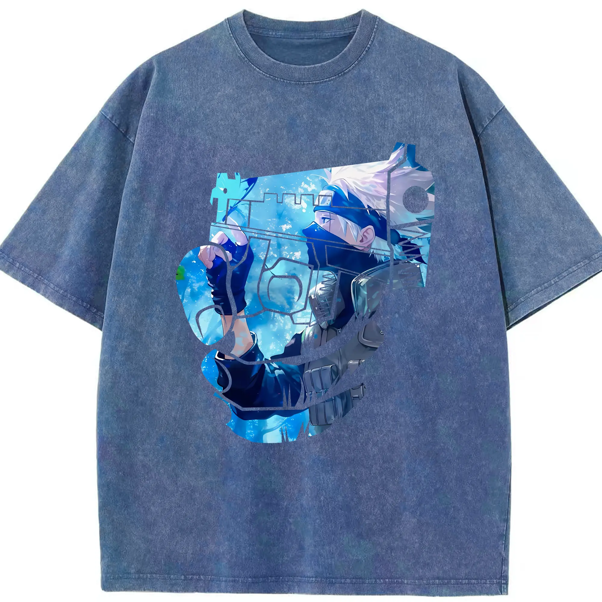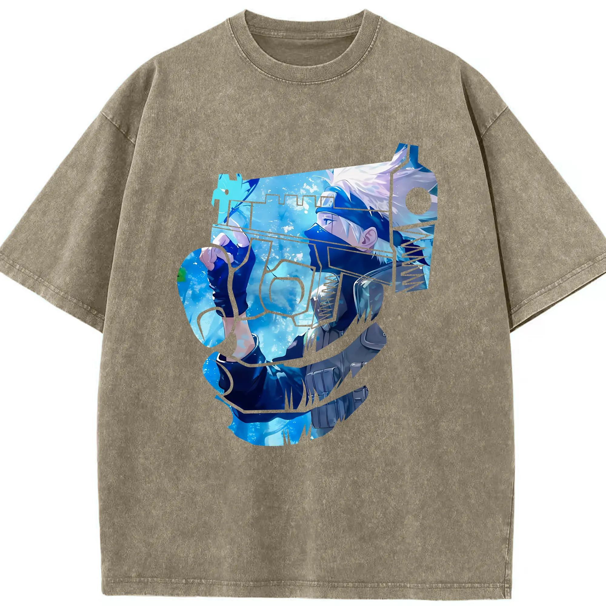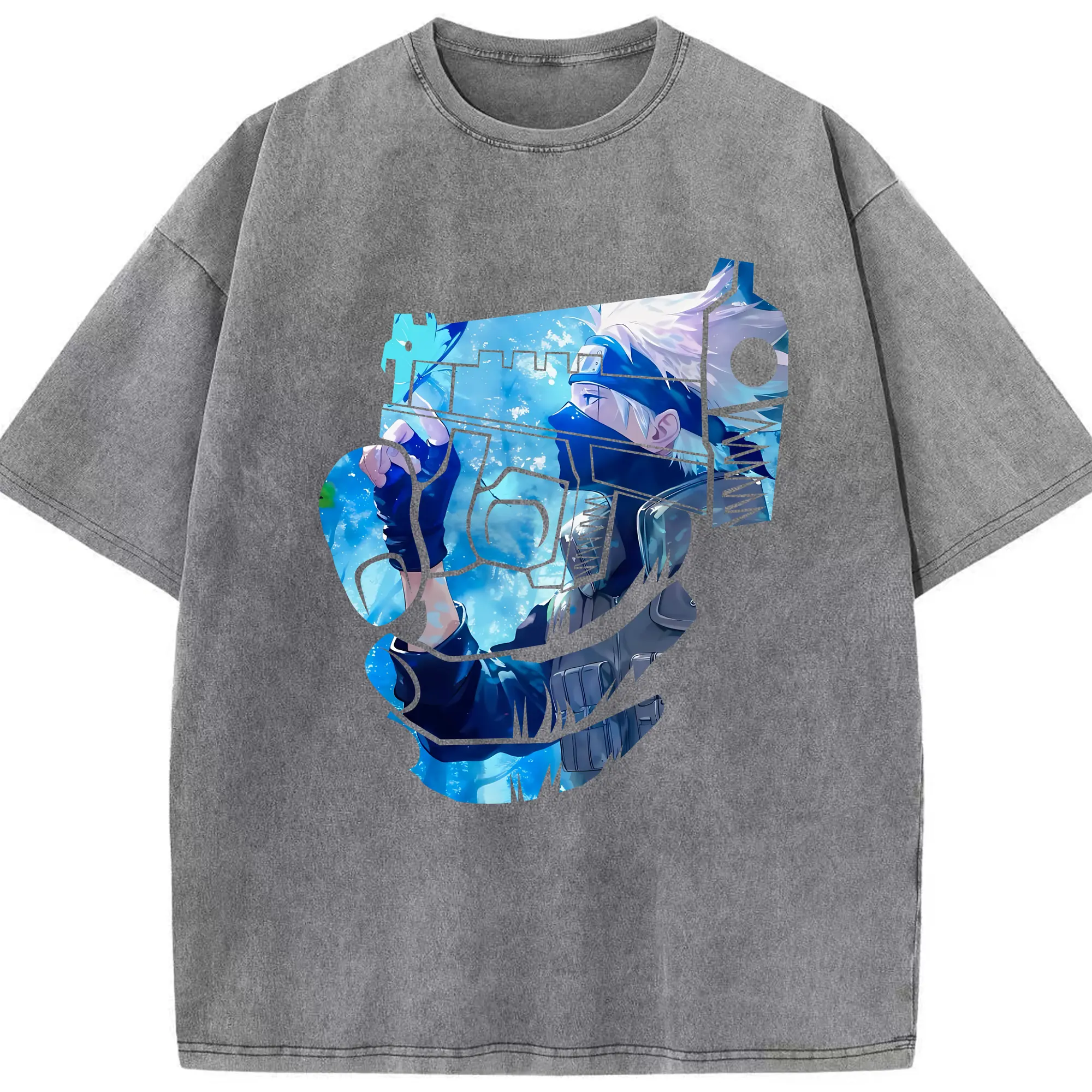 ナルト グッズ はたけ カカシ - 綿100% ヴィンテージ風 半袖Tシャツ ・ 背面プリント ・ 柔らか肌触り ・ 通気性 快適 ・ スポーツ カジュアル 外出用