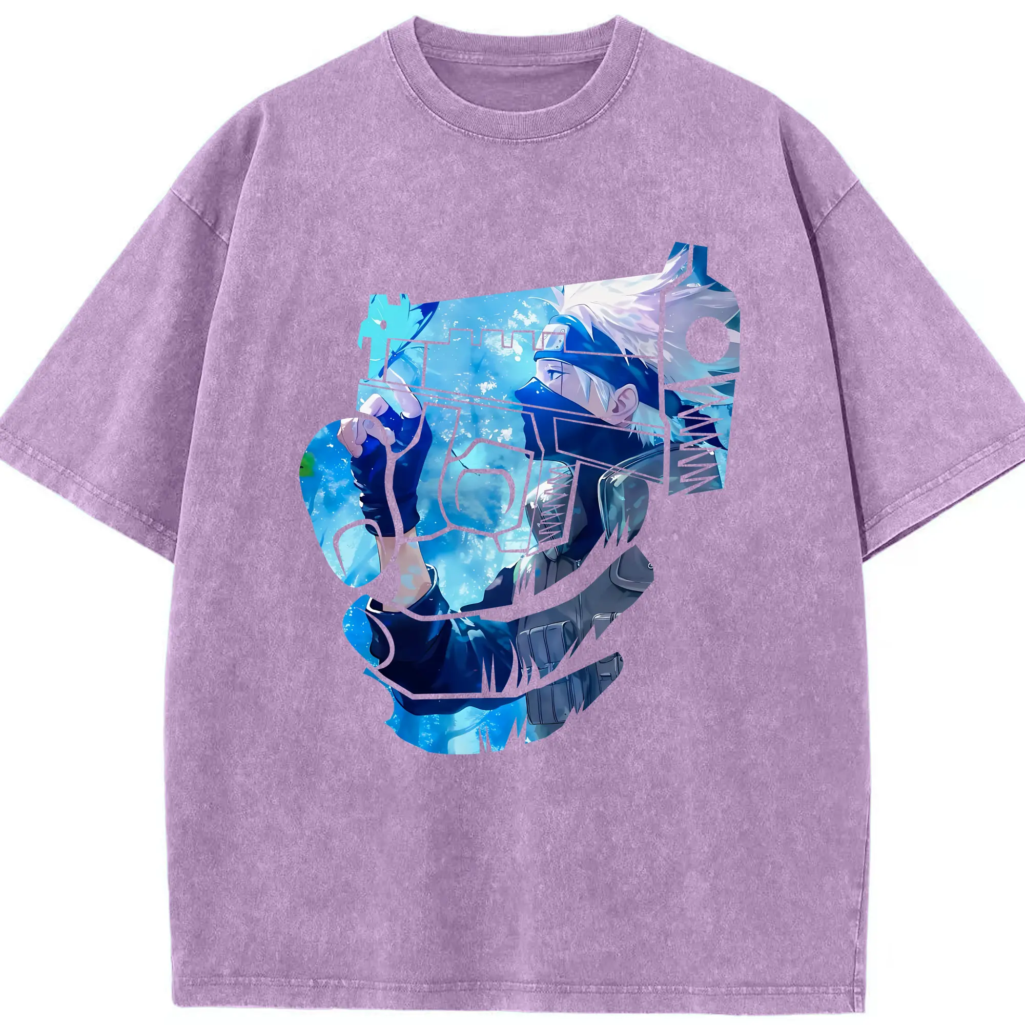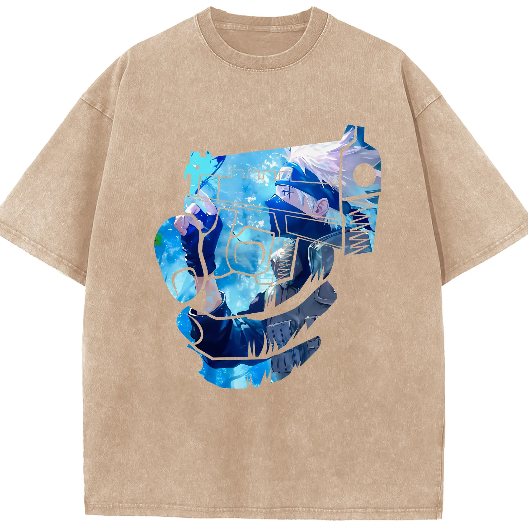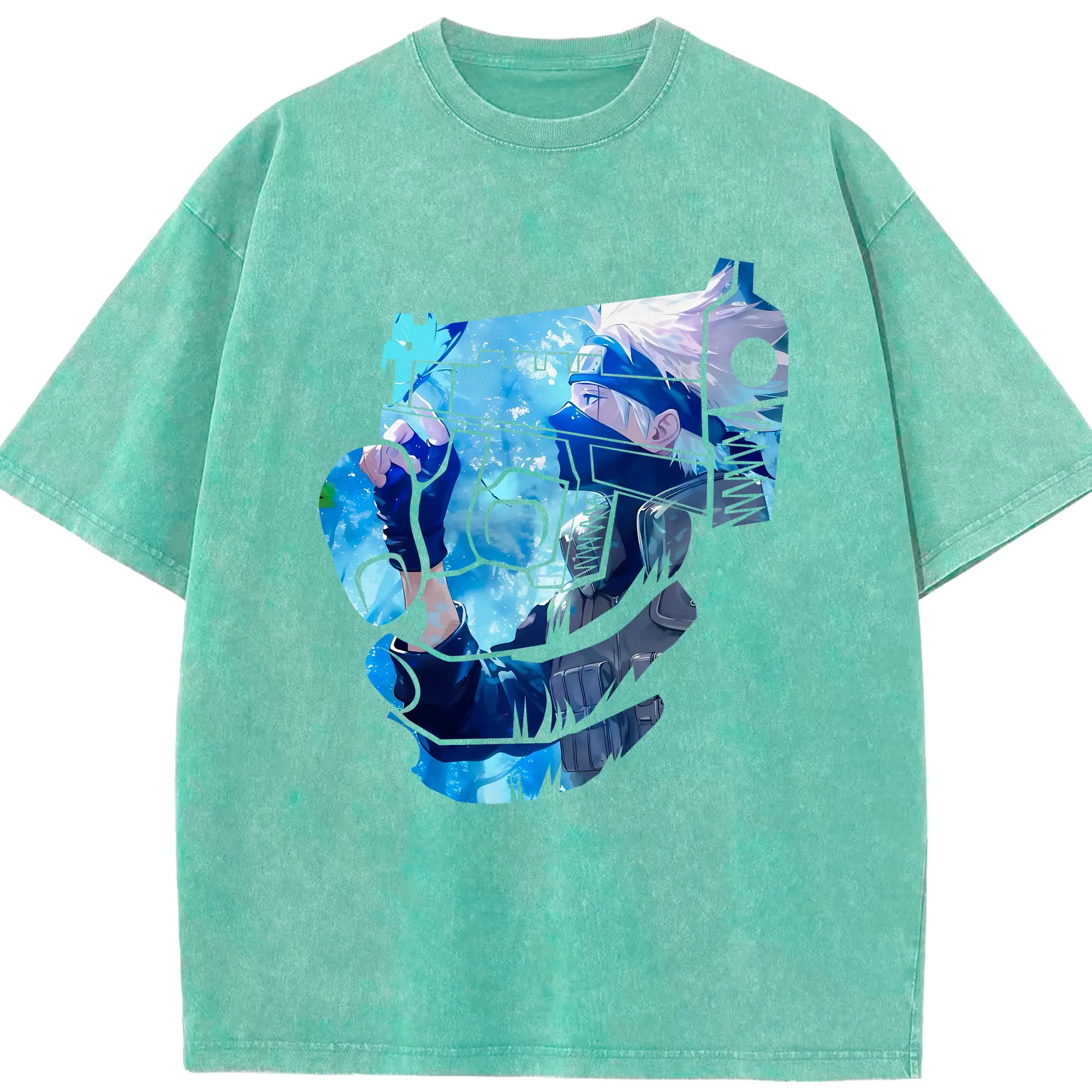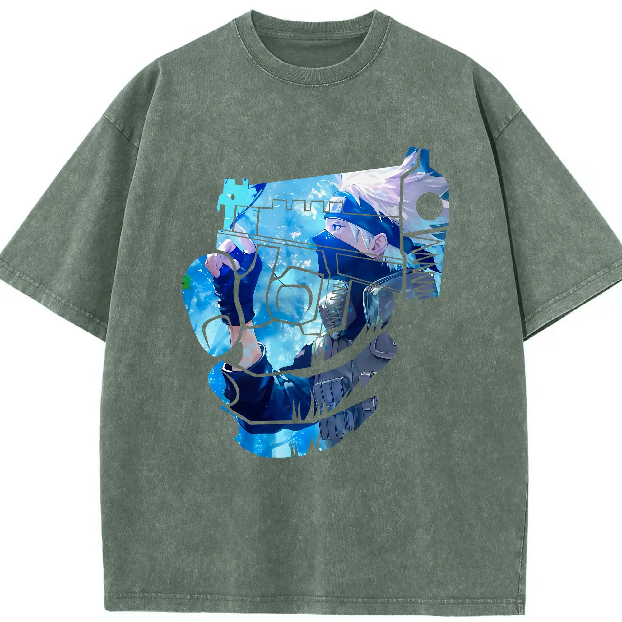 ナルト グッズ はたけ カカシ - 綿100% ヴィンテージ風 半袖Tシャツ ・ 背面プリント ・ 柔らか肌触り ・ 通気性 快適 ・ スポーツ カジュアル 外出用