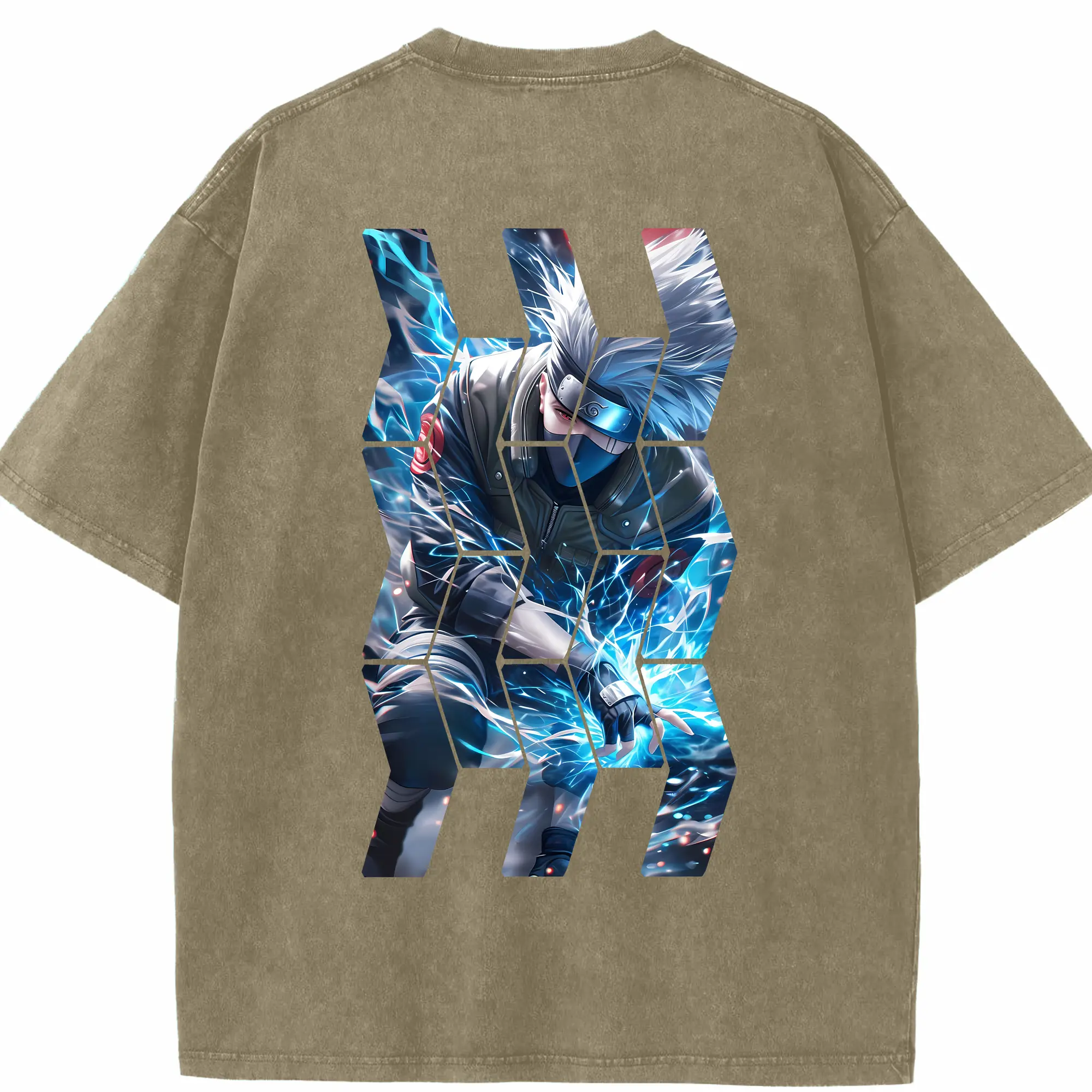 ナルト グッズ はたけ カカシ - 綿100% ヴィンテージ風 半袖Tシャツ ・ フロントプリント ・ 柔らか肌触り ・ 通気性 快適 ・ スポーツ カジュアル 外出用