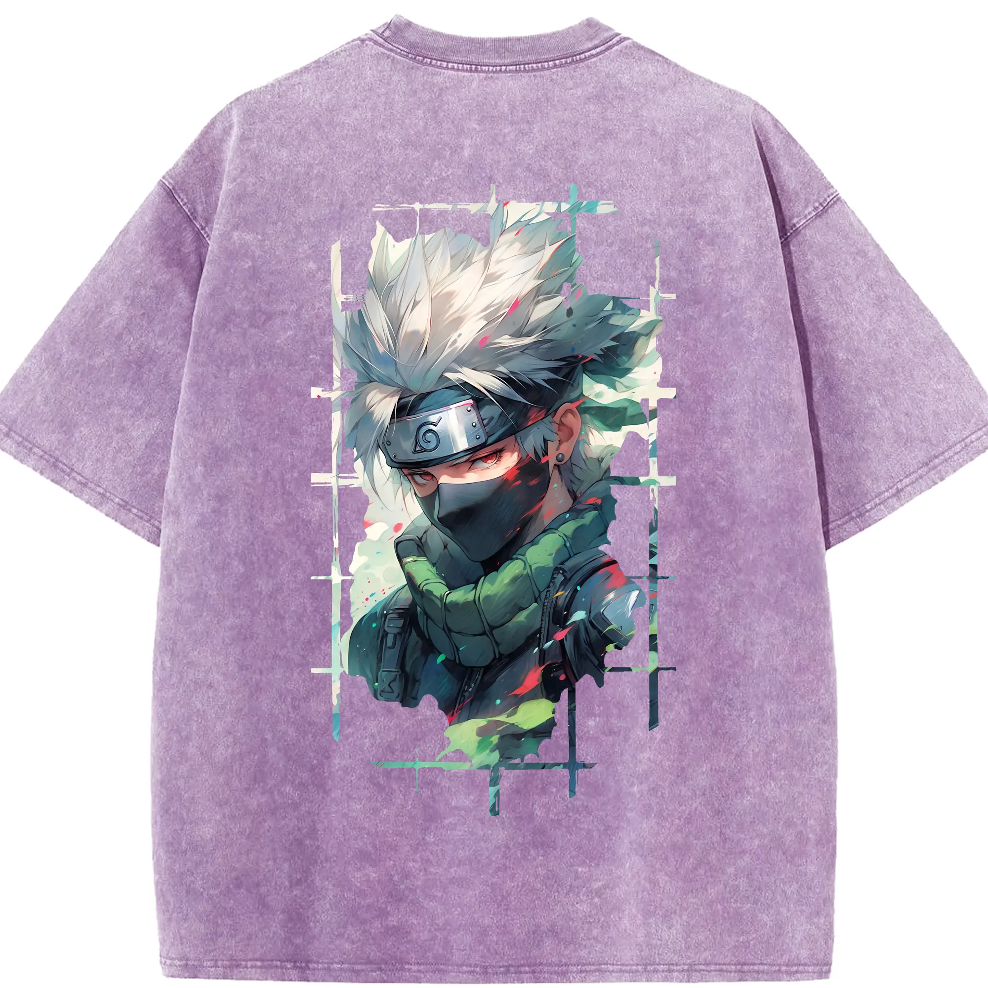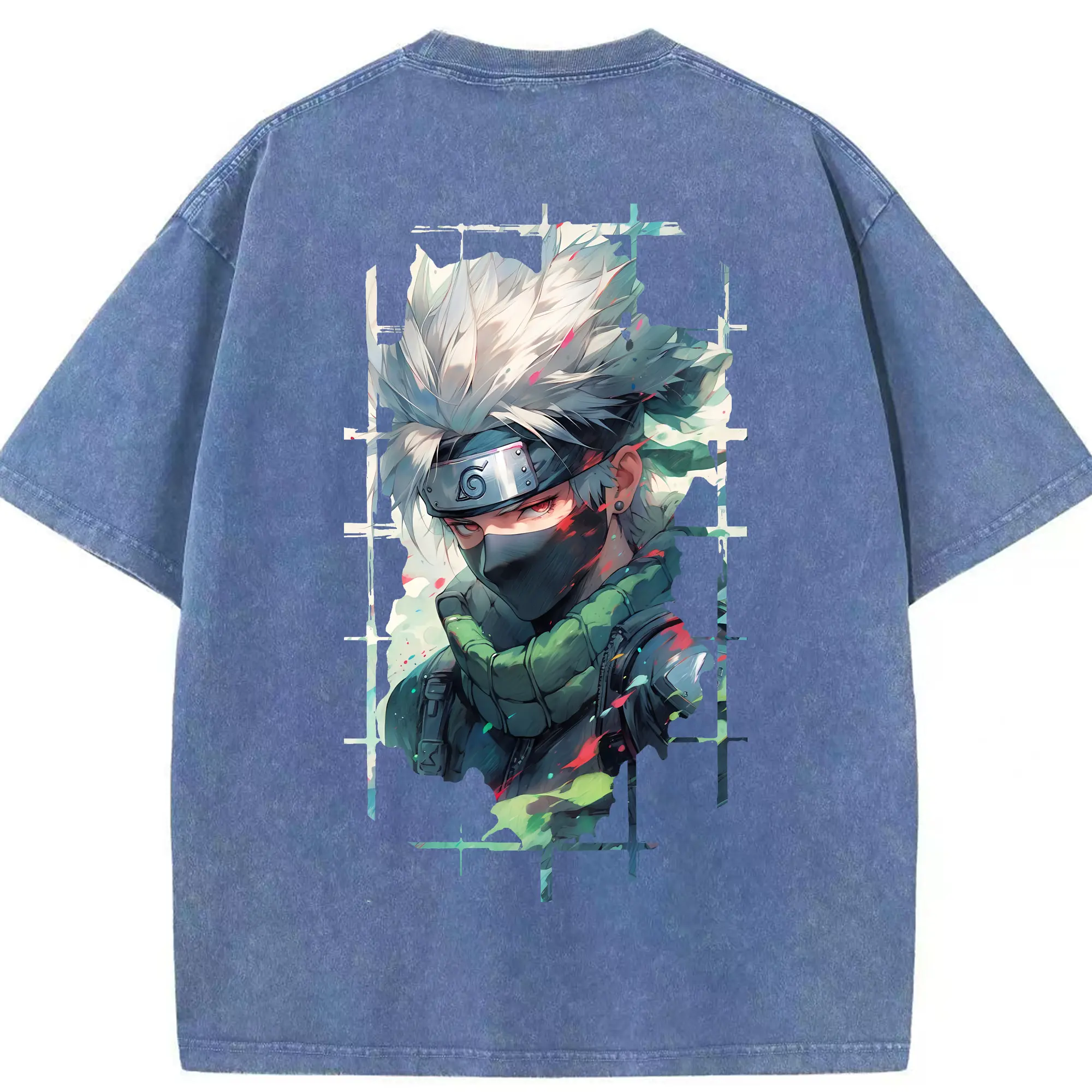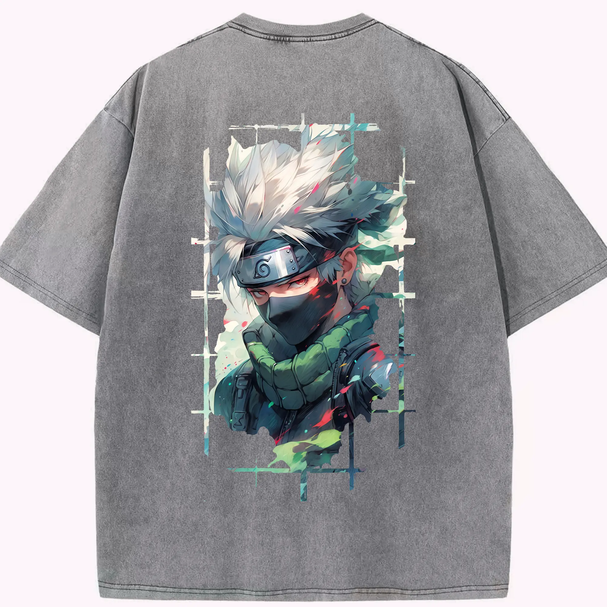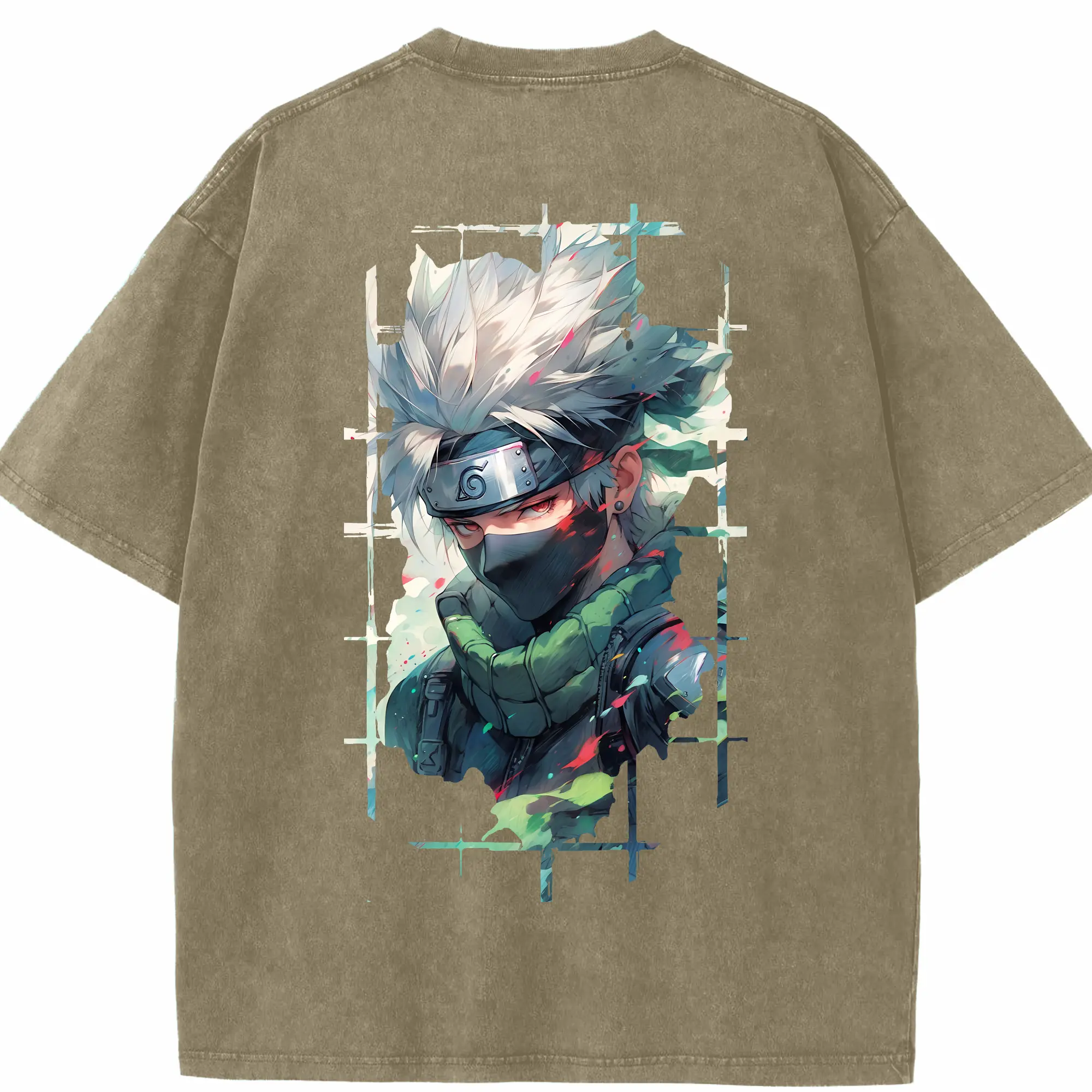 ナルト グッズ はたけ カカシ - 綿100% ヴィンテージ風 半袖Tシャツ ・ フロントプリント ・ 柔らか肌触り ・ 通気性 快適 ・ スポーツ カジュアル 外出用