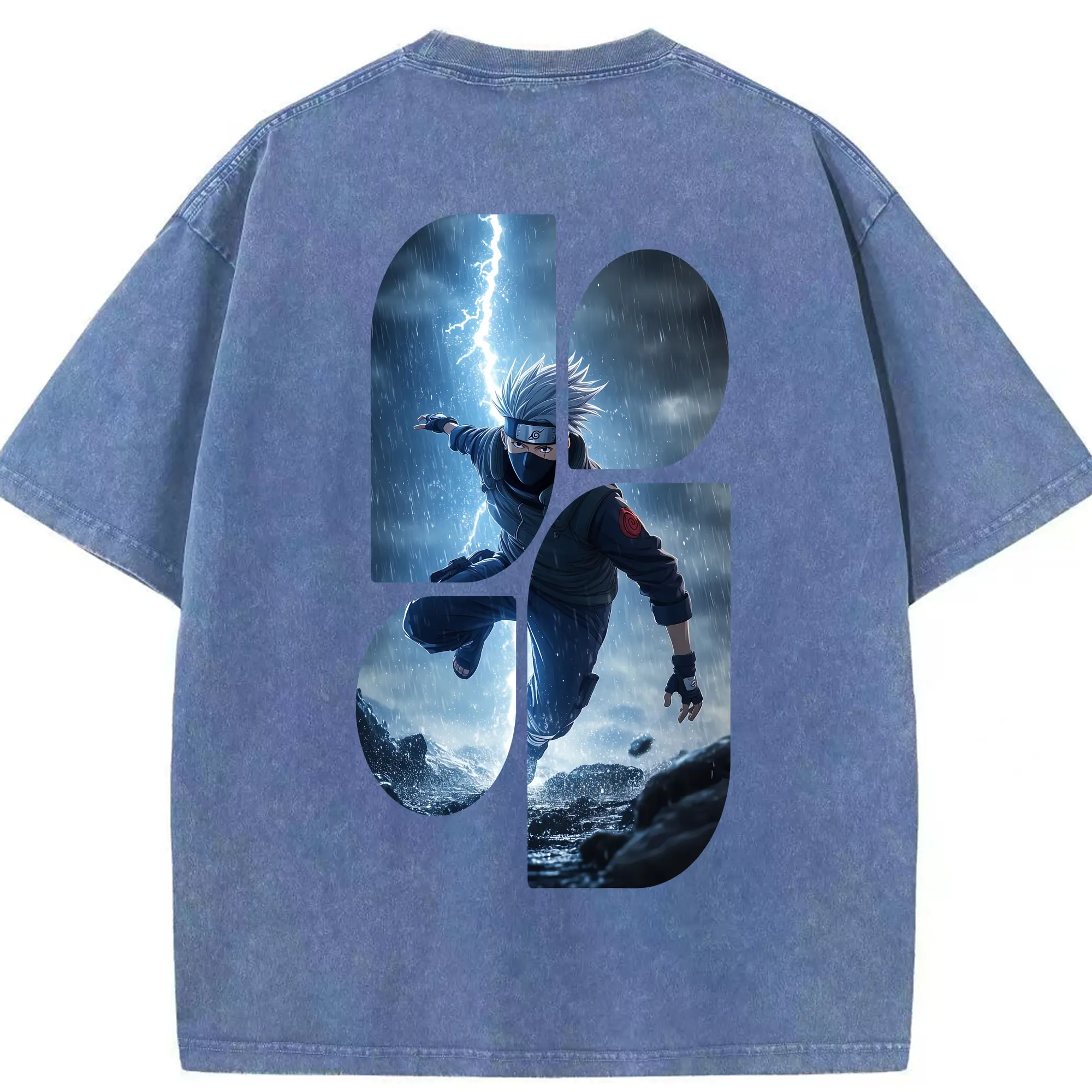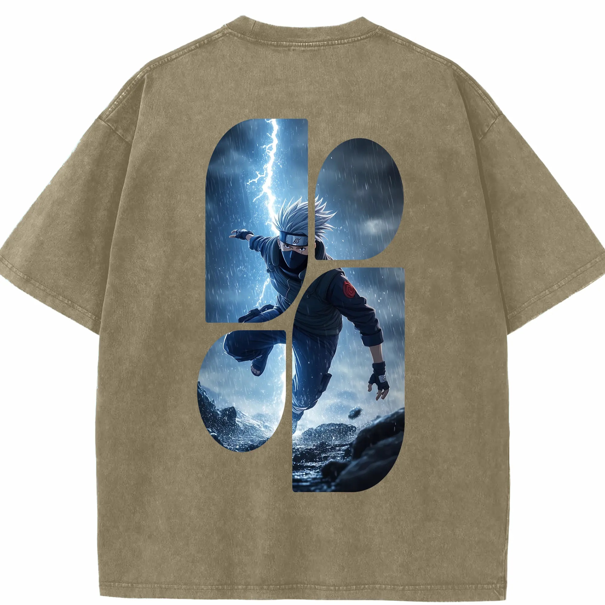 ナルト グッズ はたけ カカシ - 綿100% ヴィンテージ風 半袖Tシャツ ・ フロントプリント ・ 柔らか肌触り ・ 通気性 快適 ・ スポーツ カジュアル 外出用