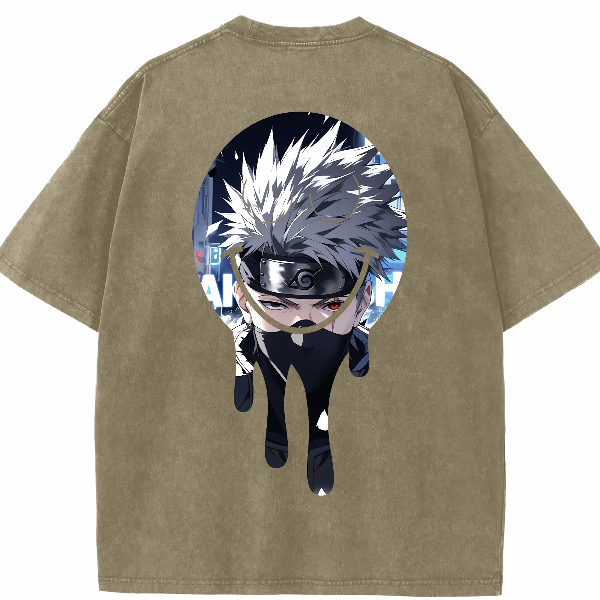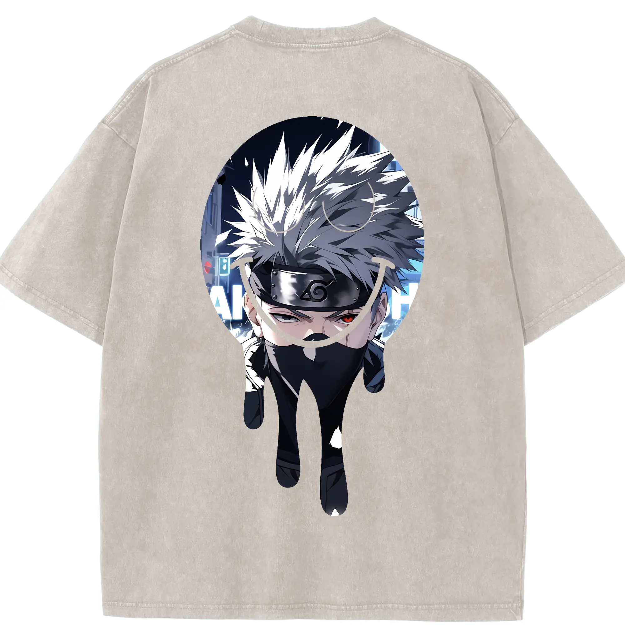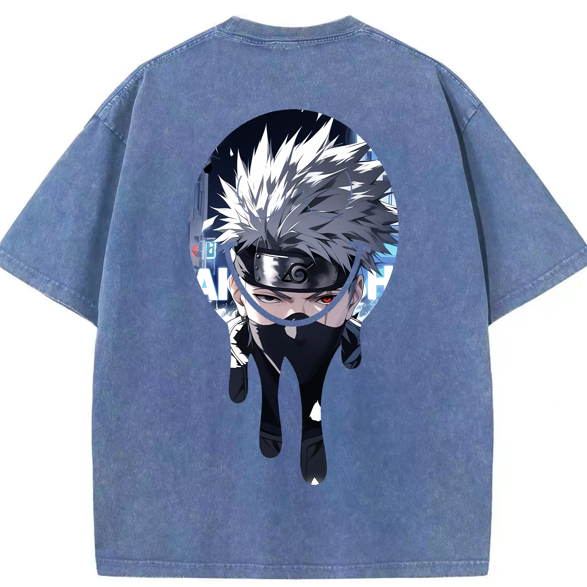 ナルト グッズ はたけ カカシ - 綿100% ヴィンテージ風 半袖Tシャツ ・ フロントプリント ・ 柔らか肌触り ・ 通気性 快適 ・ スポーツ カジュアル 外出用