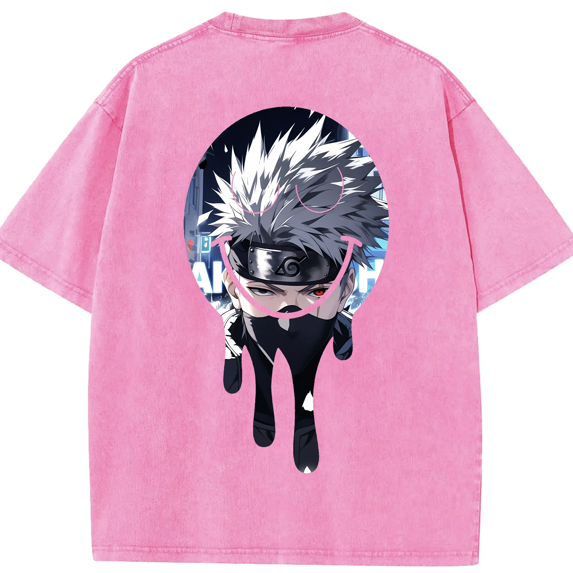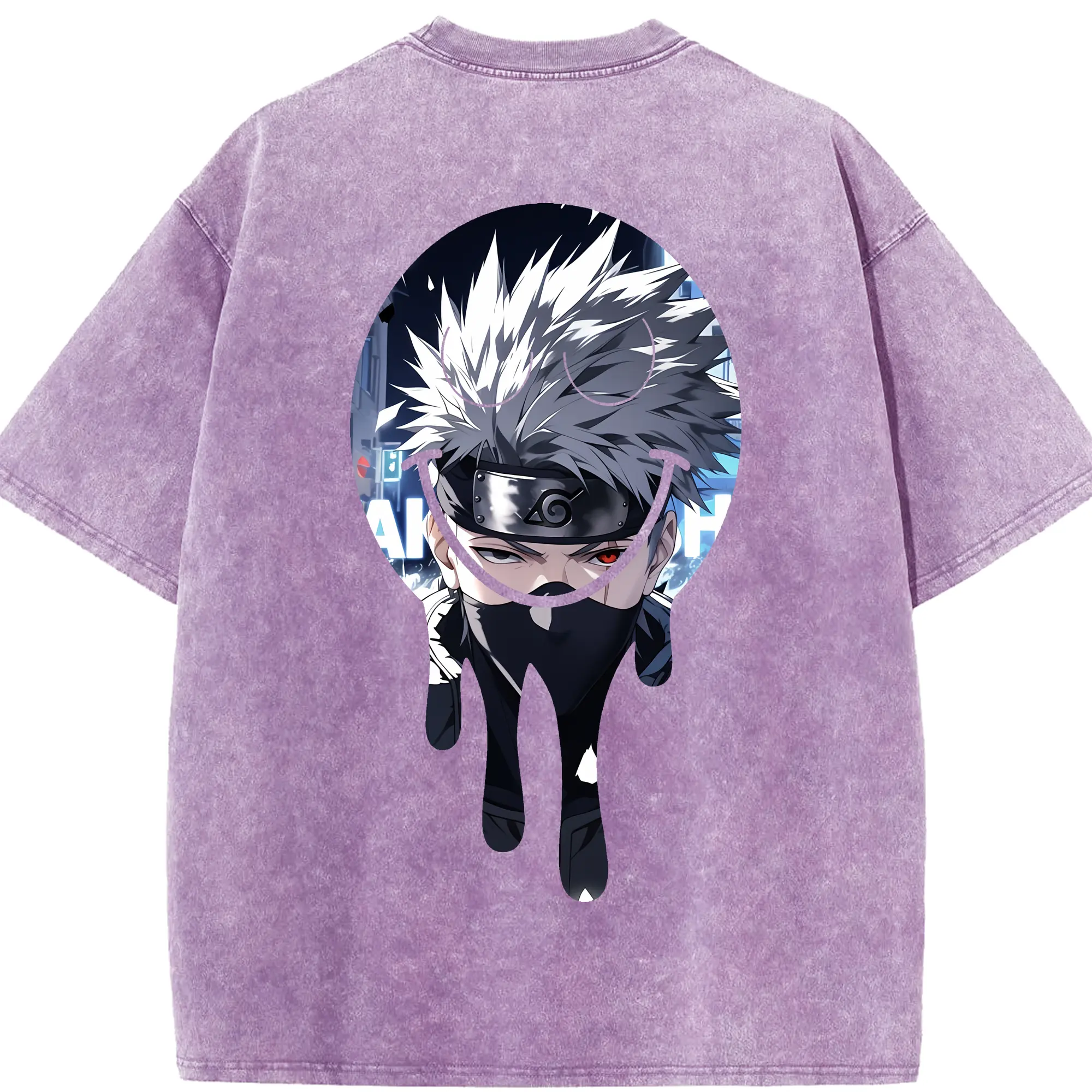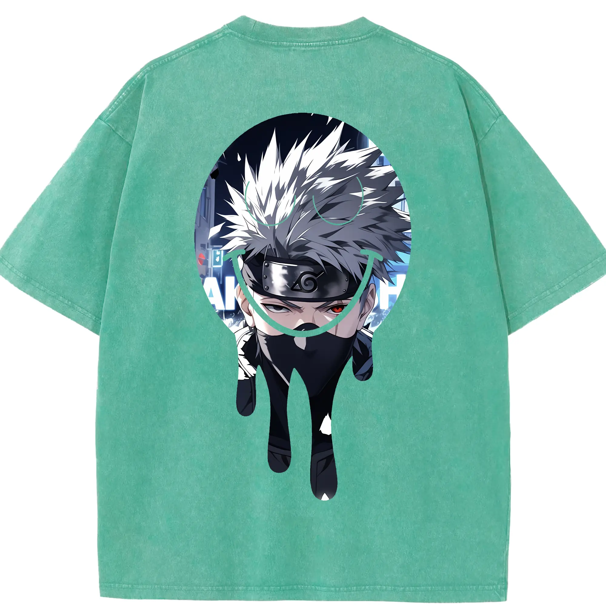 ナルト グッズ はたけ カカシ - 綿100% ヴィンテージ風 半袖Tシャツ ・ フロントプリント ・ 柔らか肌触り ・ 通気性 快適 ・ スポーツ カジュアル 外出用