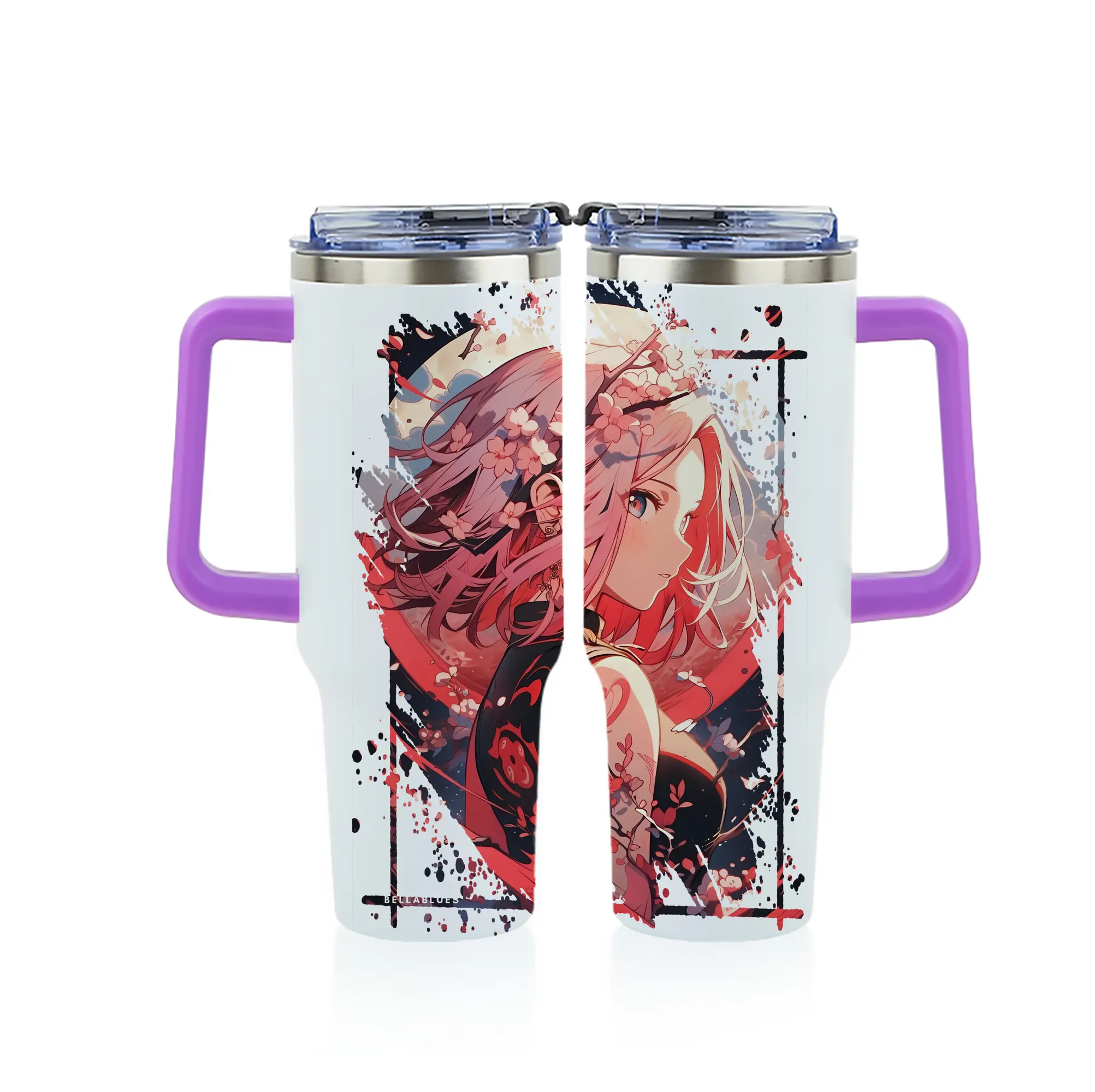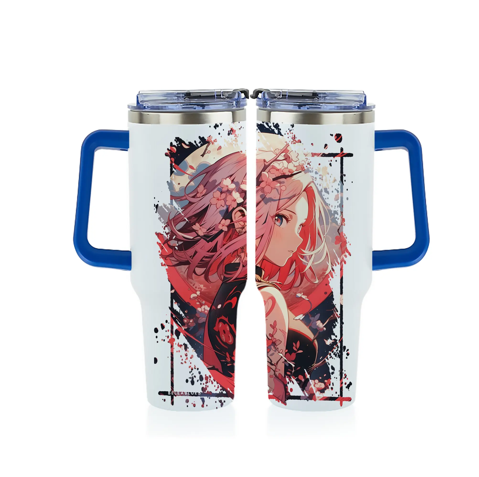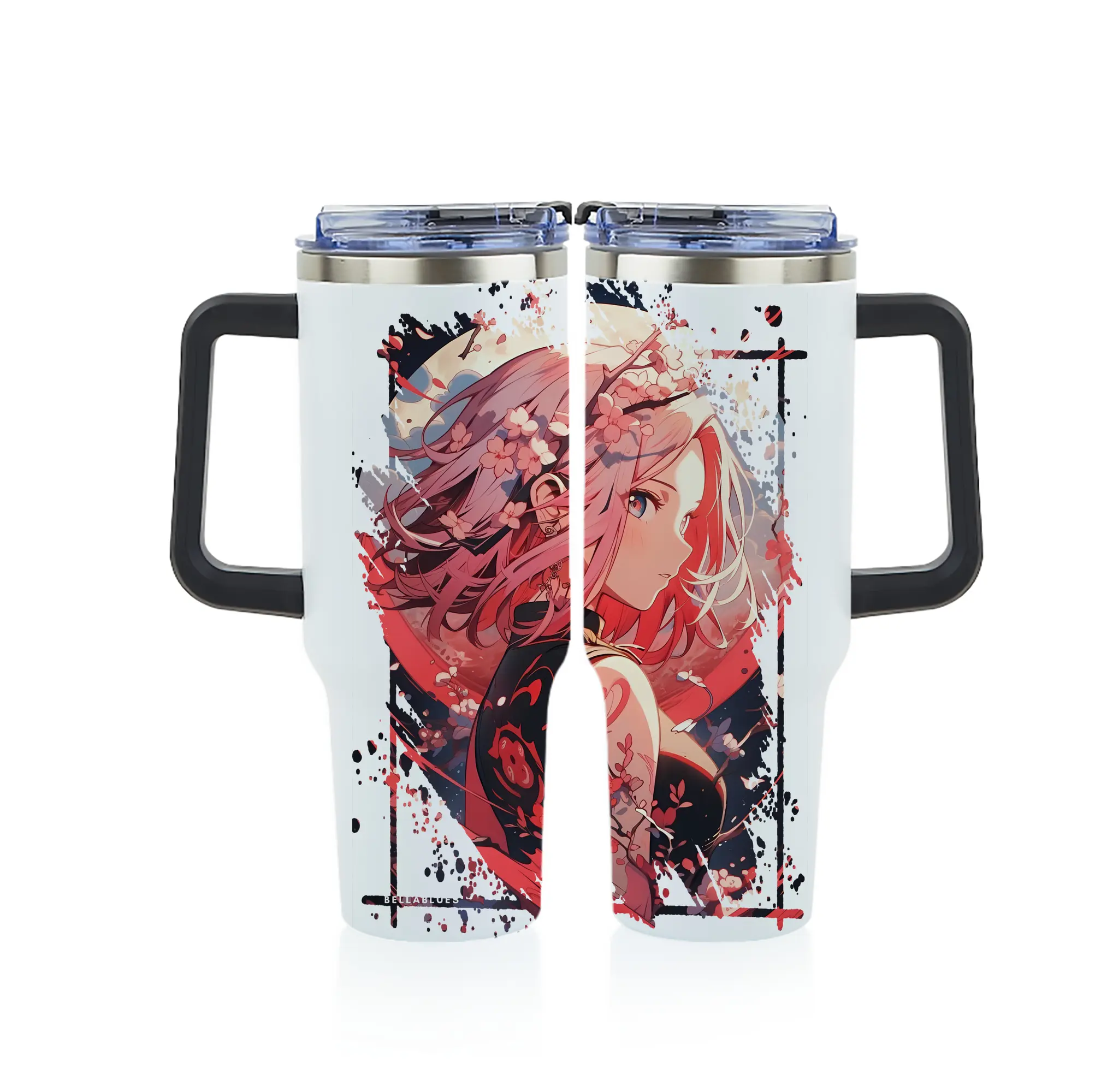 ナルト グッズ はるの さくら - 1200mL フルプリント車用タンブラー ・ 304ステンレス 内側 ・ 201ステンレス 外側 ・ 保温 保冷 ・ 通勤 ドライブ アウトドア用