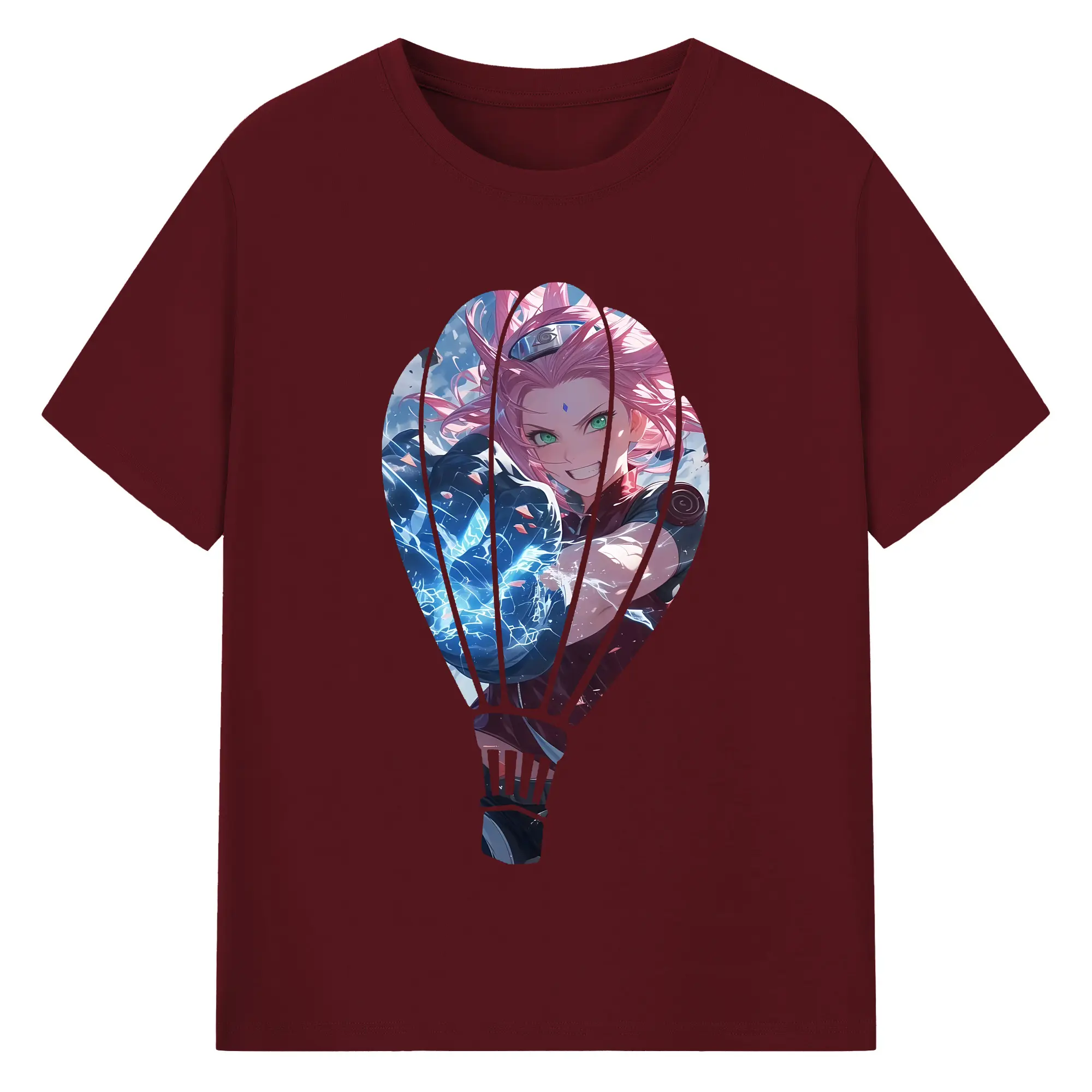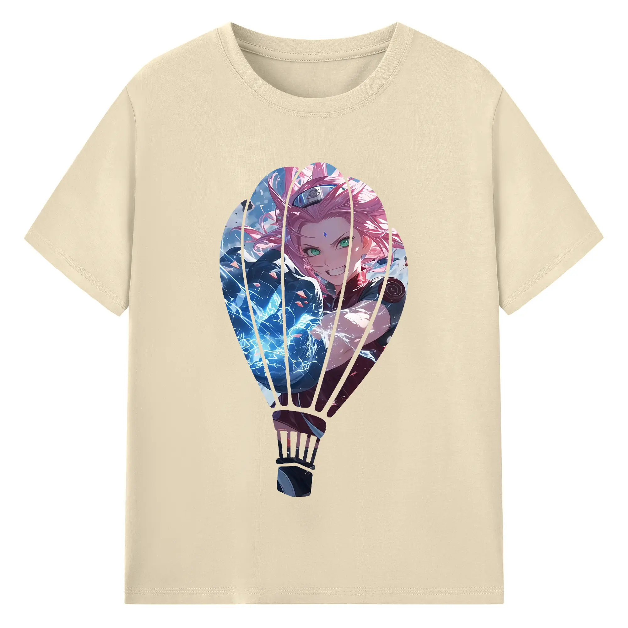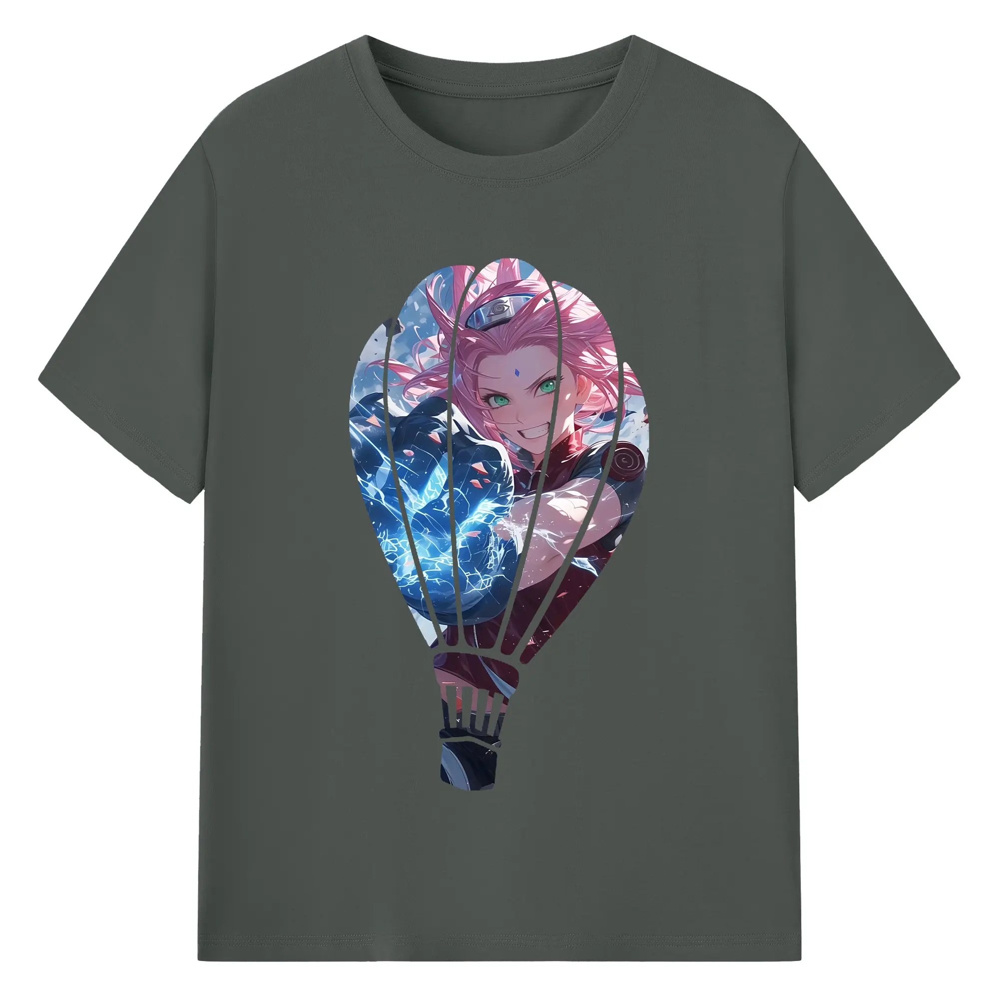 ナルト グッズ はるの さくら - 綿100% ヴィンテージ風 半袖Tシャツ ・ フロントプリント ・ 柔らか肌触り ・ 通気性 快適 ・ スポーツ カジュアル 外出用