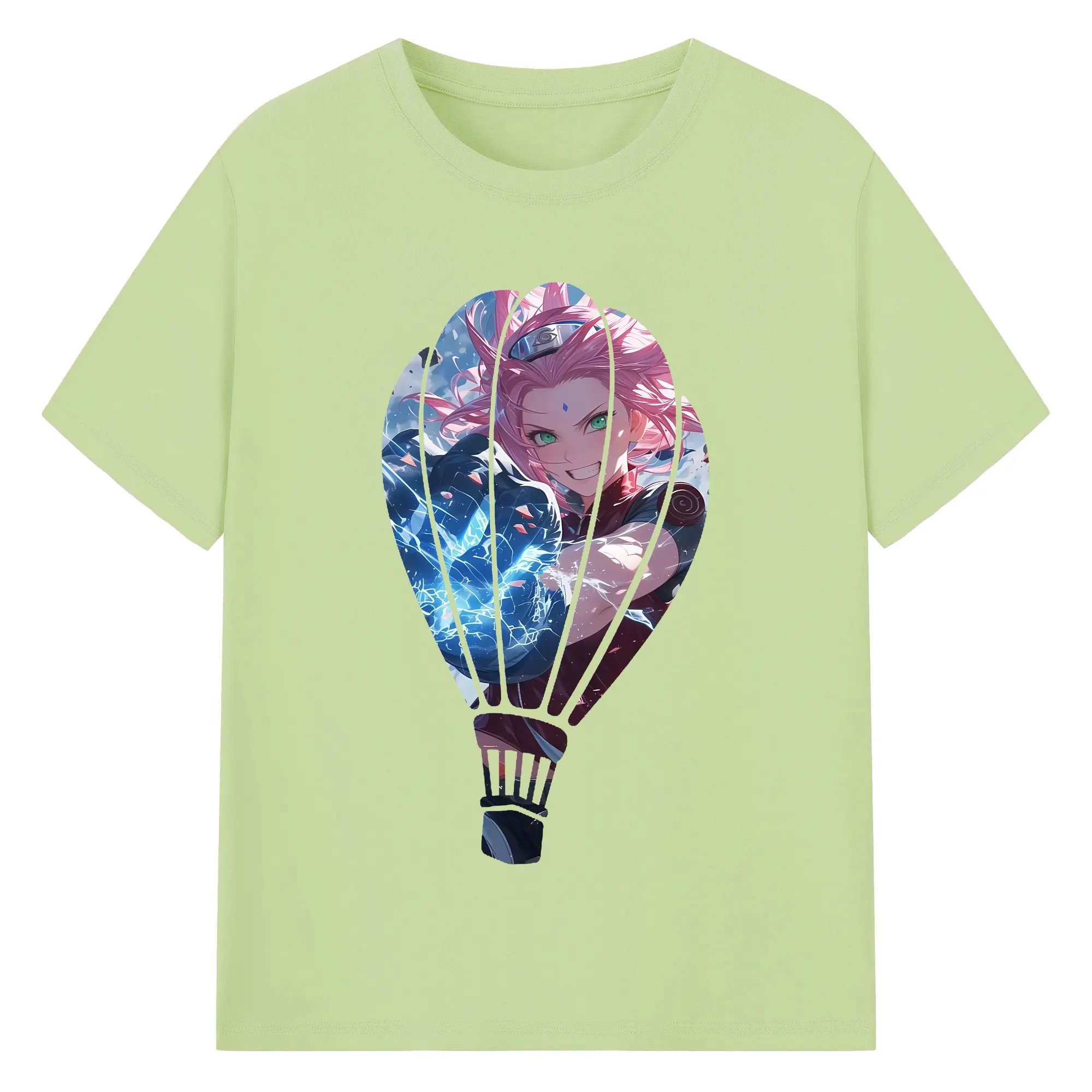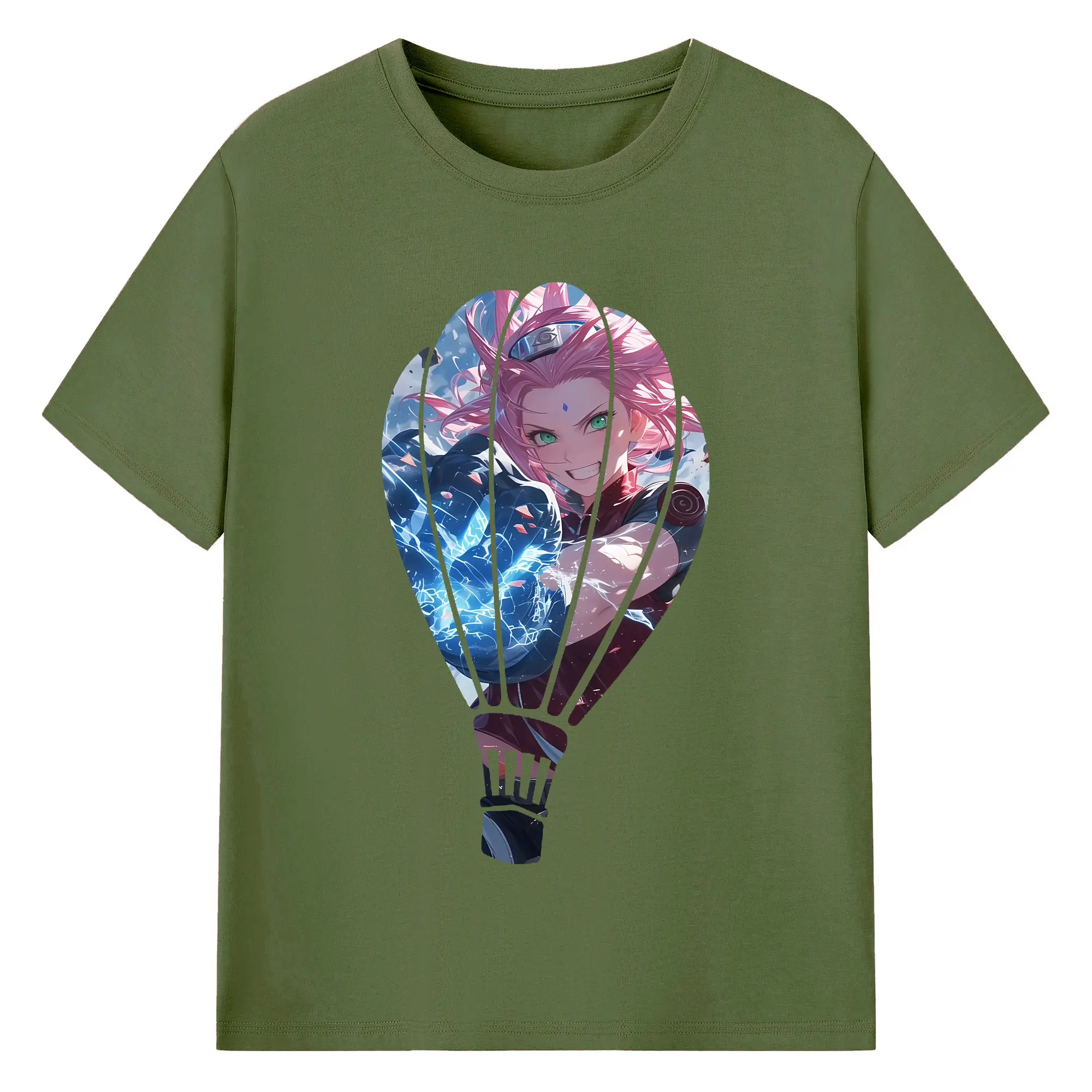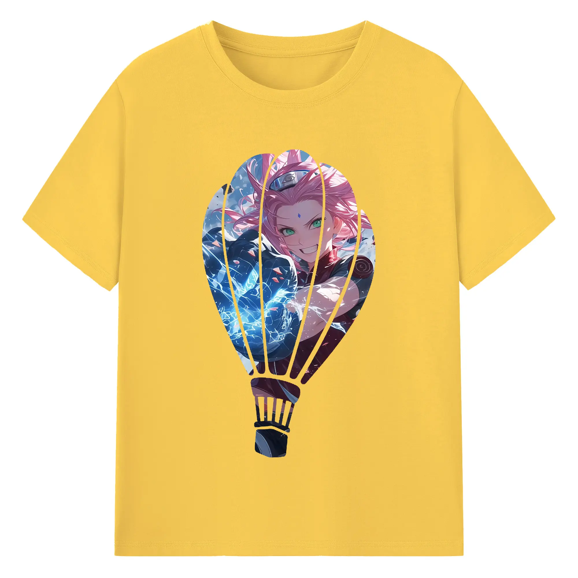ナルト グッズ はるの さくら - 綿100% ヴィンテージ風 半袖Tシャツ ・ フロントプリント ・ 柔らか肌触り ・ 通気性 快適 ・ スポーツ カジュアル 外出用
