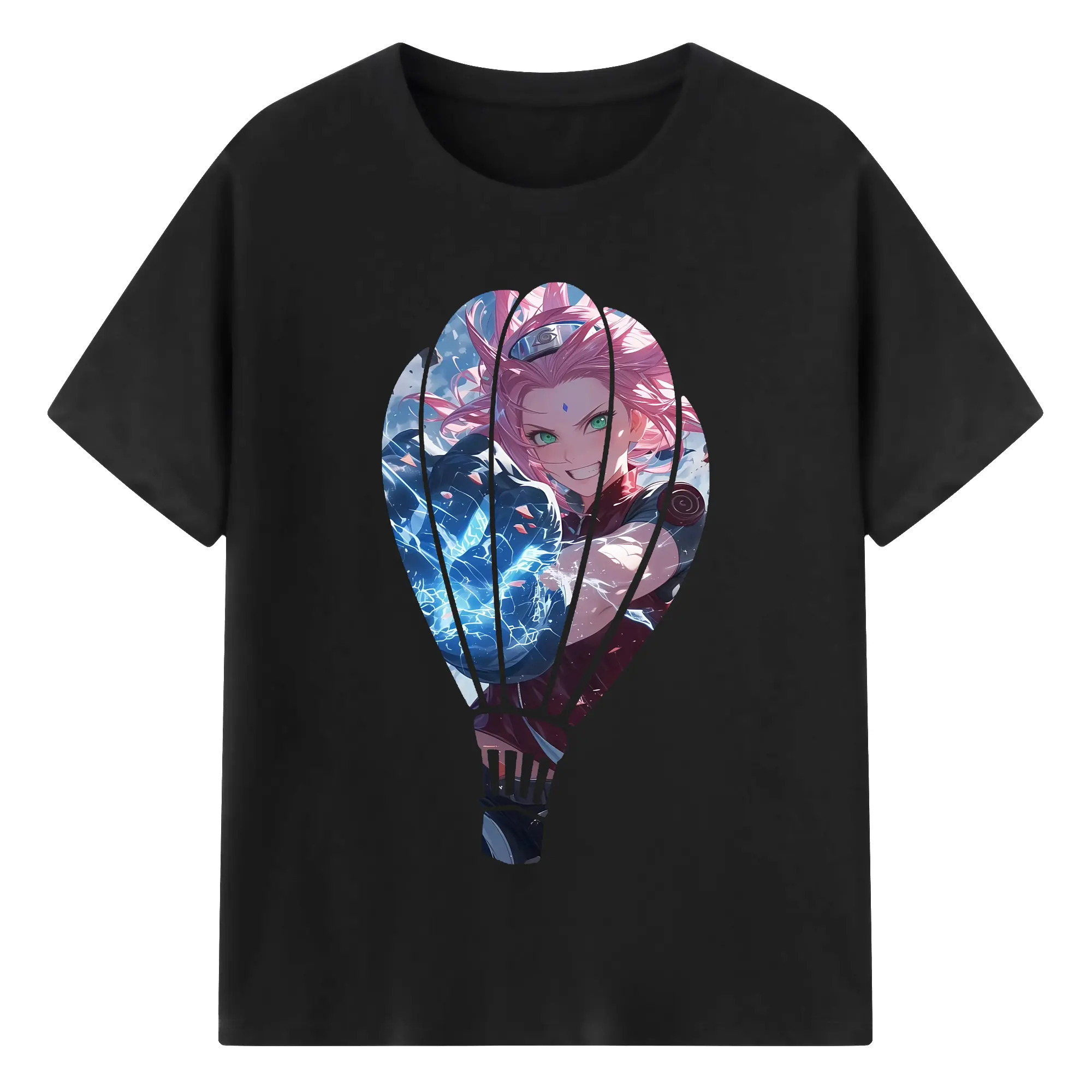 ナルト グッズ はるの さくら - 綿100% 半袖Tシャツ ・ バックプリント ・ 快適 通気性 ・ 日常使い 散歩 スポーツ用