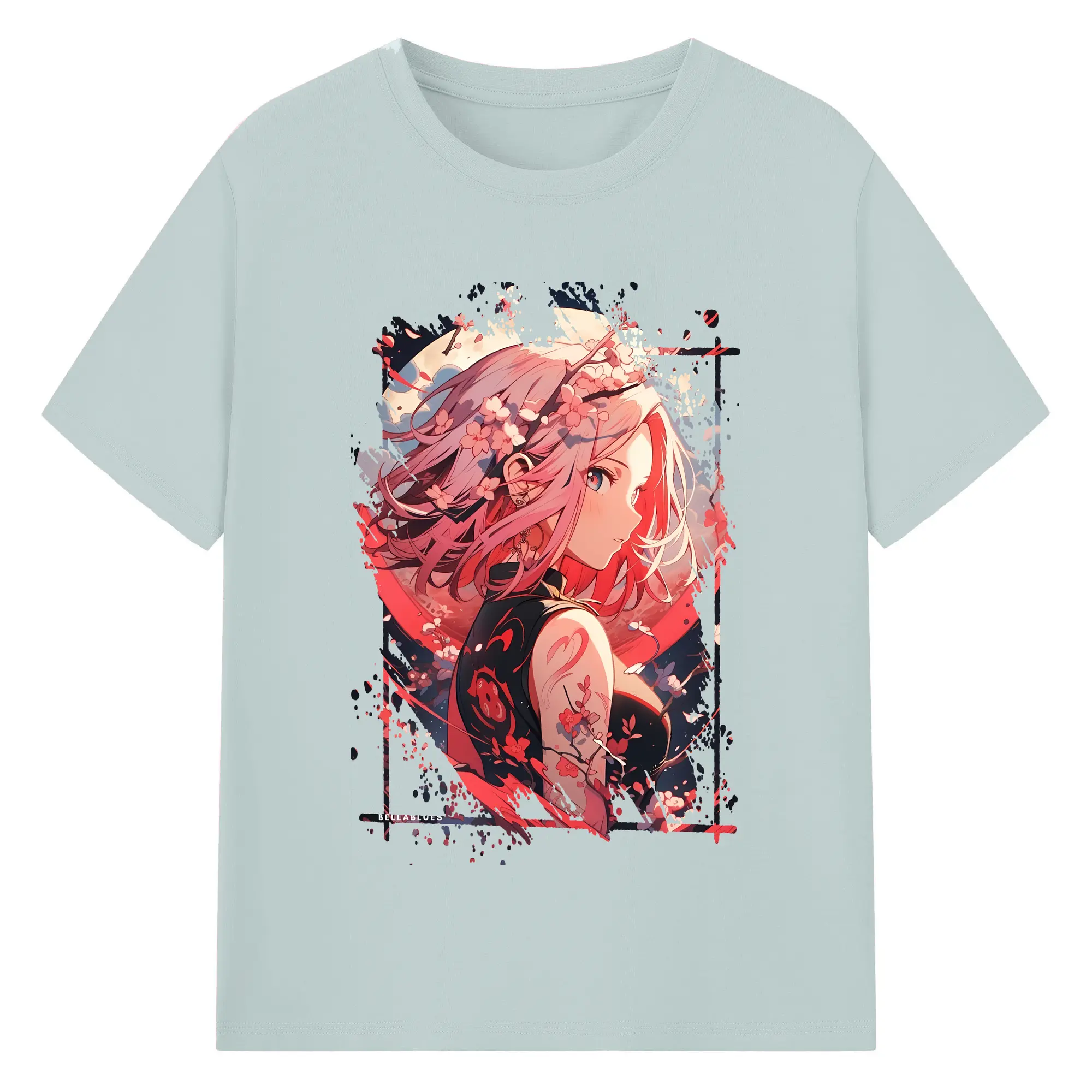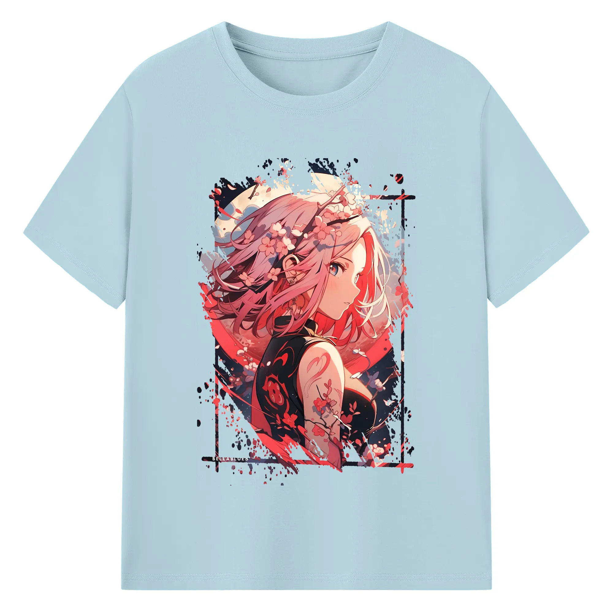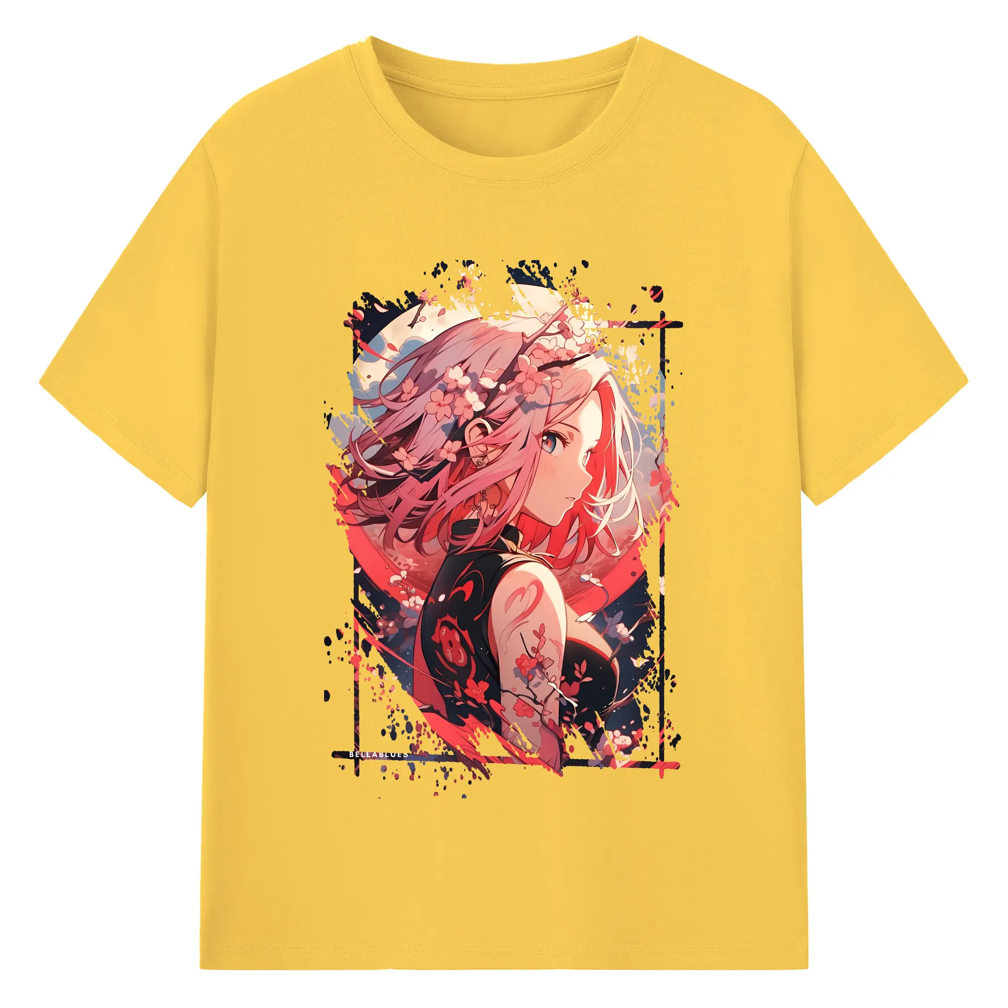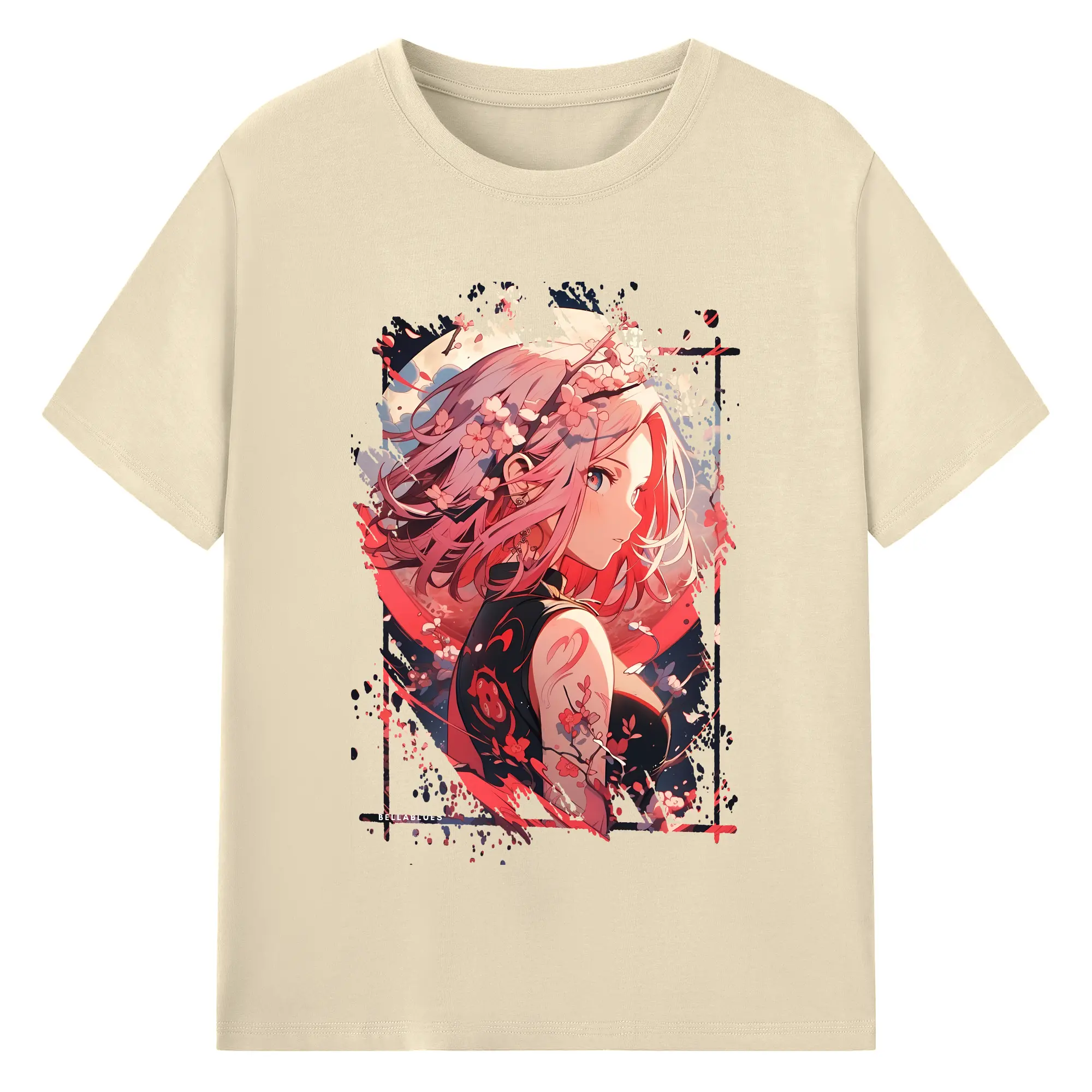 ナルト グッズ はるの さくら - 綿100% ヴィンテージ風 半袖Tシャツ ・ フロントプリント ・ 柔らか肌触り ・ 通気性 快適 ・ スポーツ カジュアル 外出用