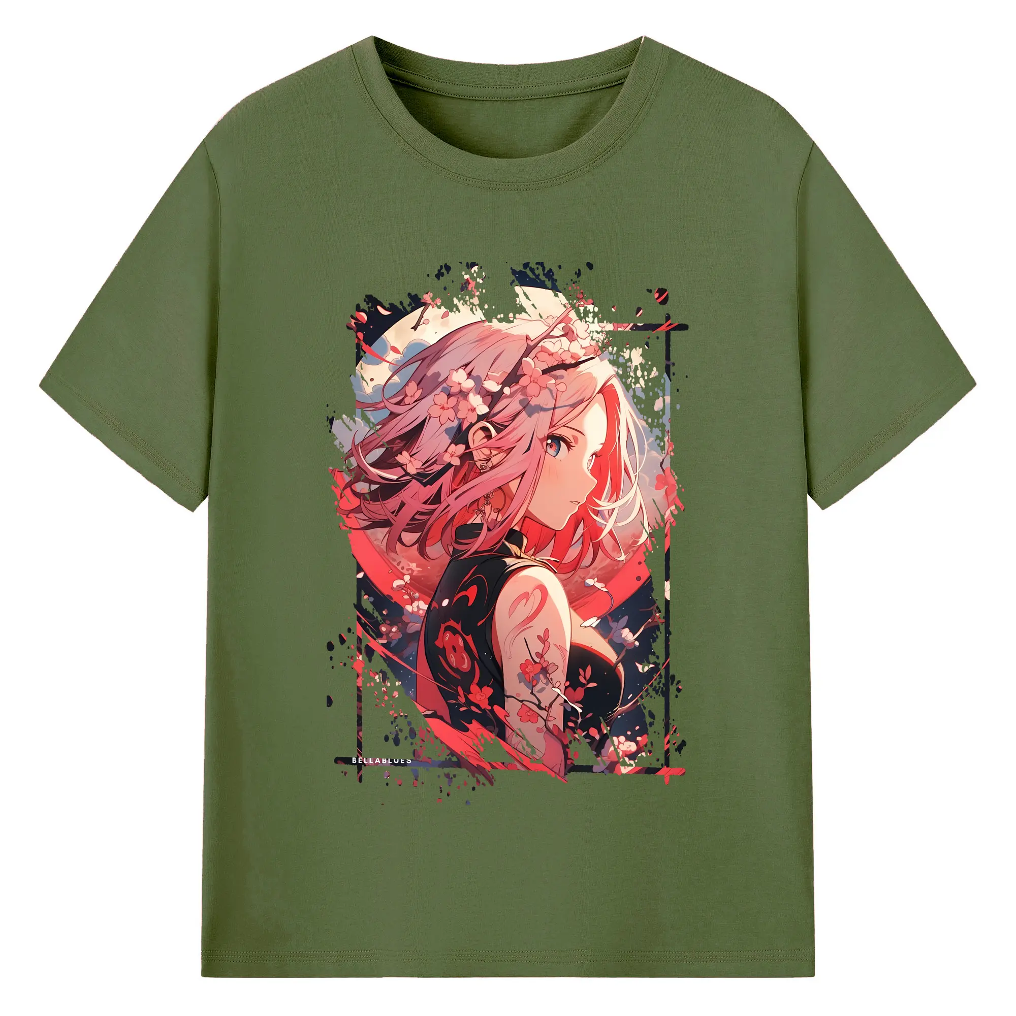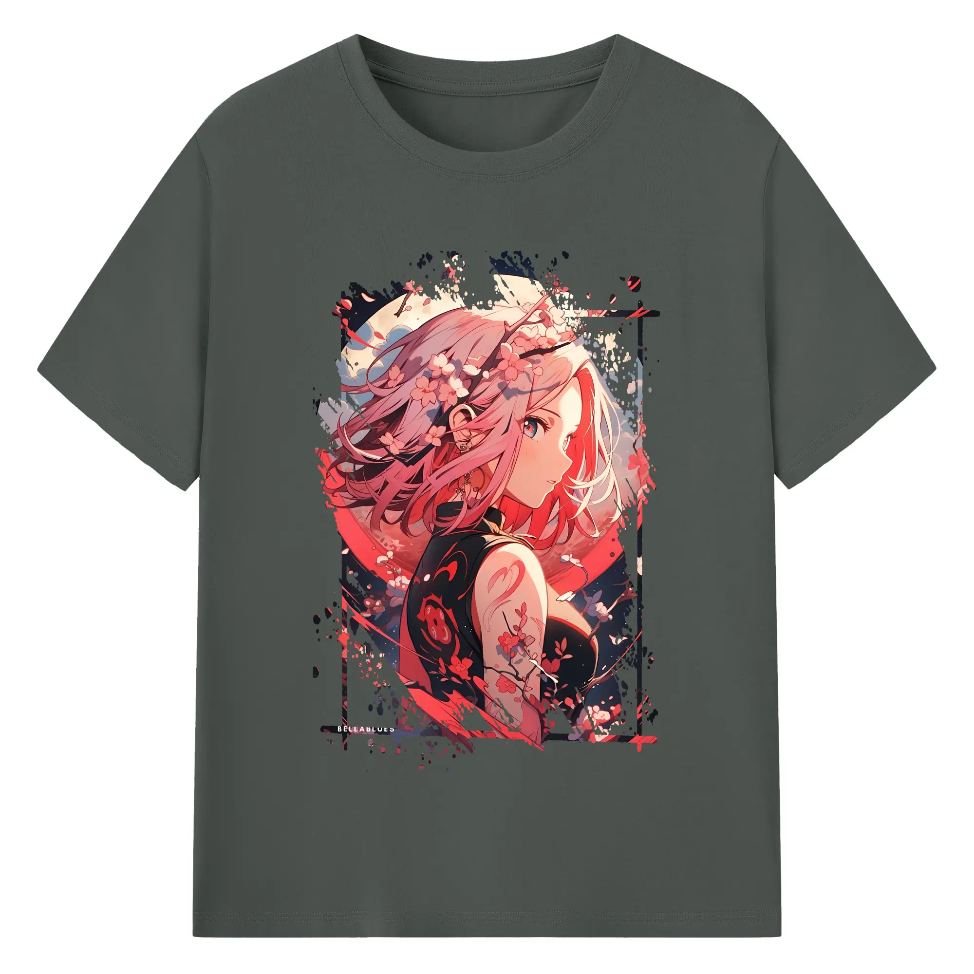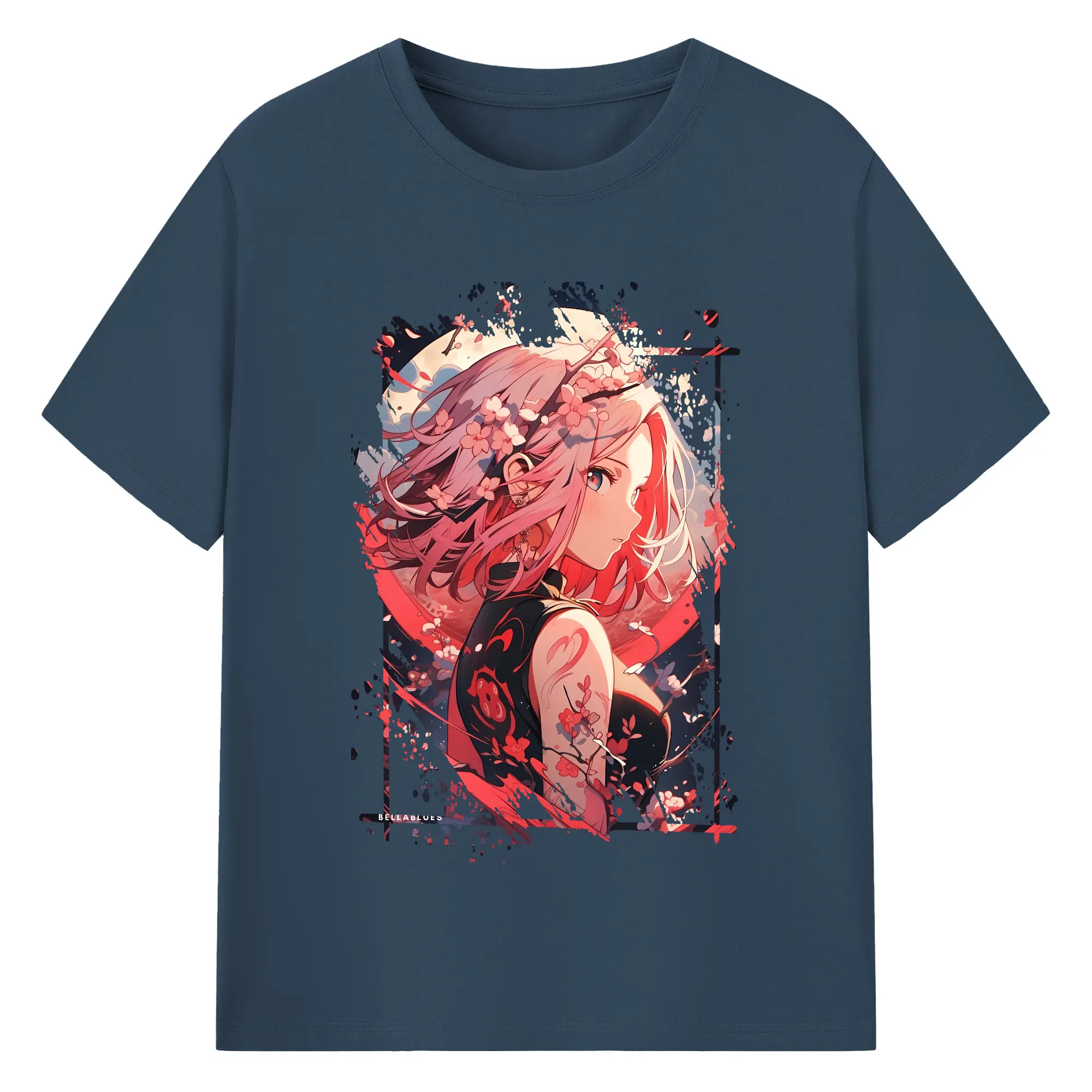 ナルト グッズ はるの さくら - 綿100% ヴィンテージ風 半袖Tシャツ ・ フロントプリント ・ 柔らか肌触り ・ 通気性 快適 ・ スポーツ カジュアル 外出用