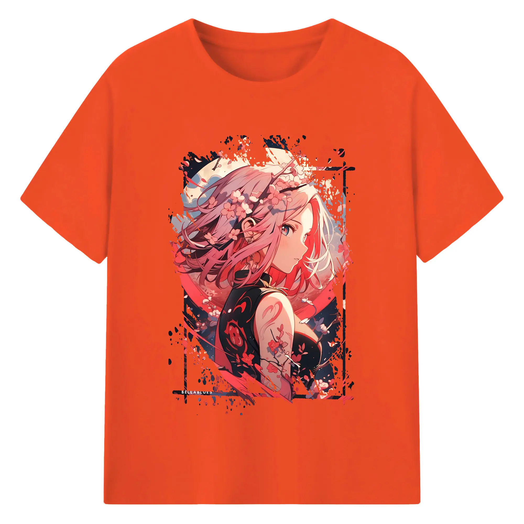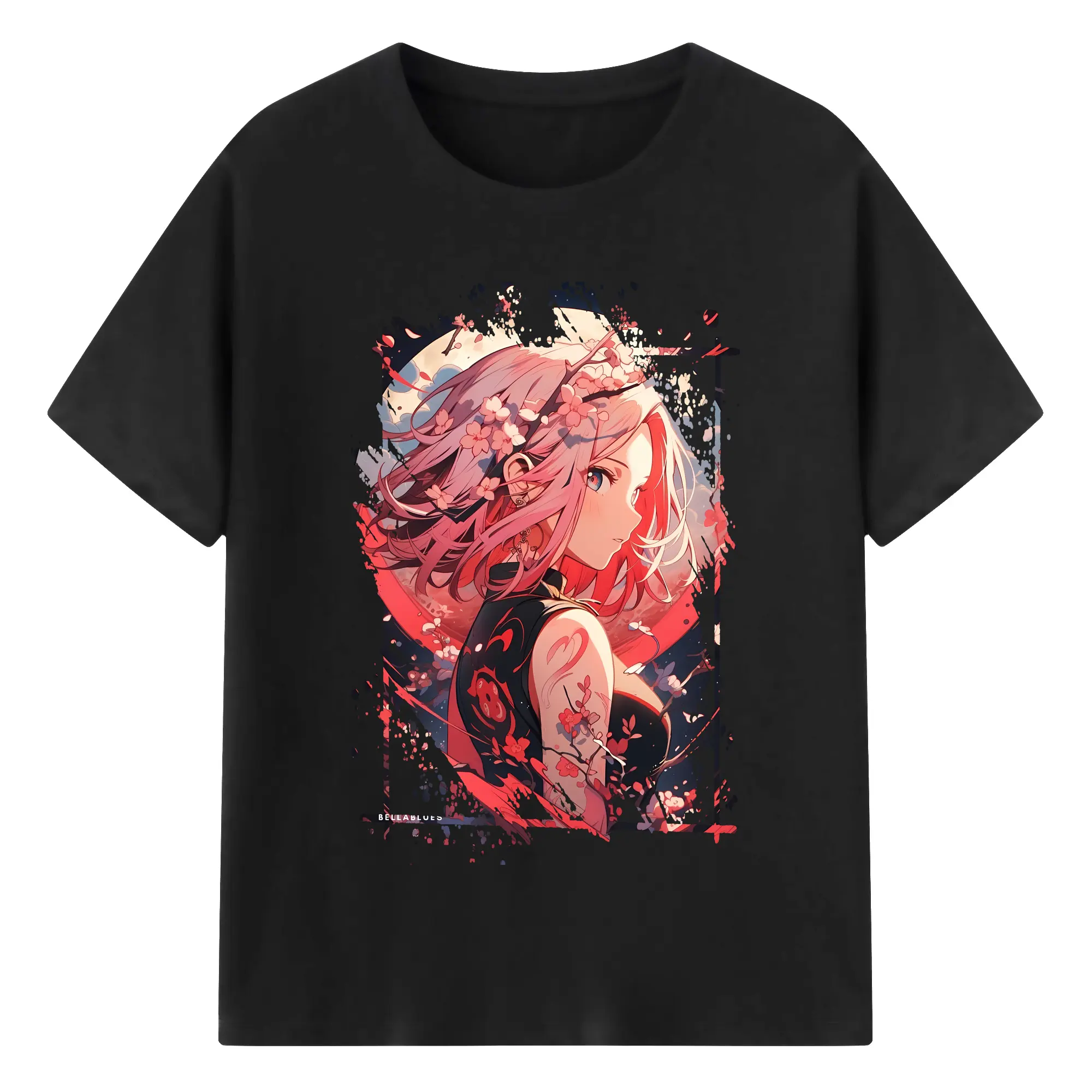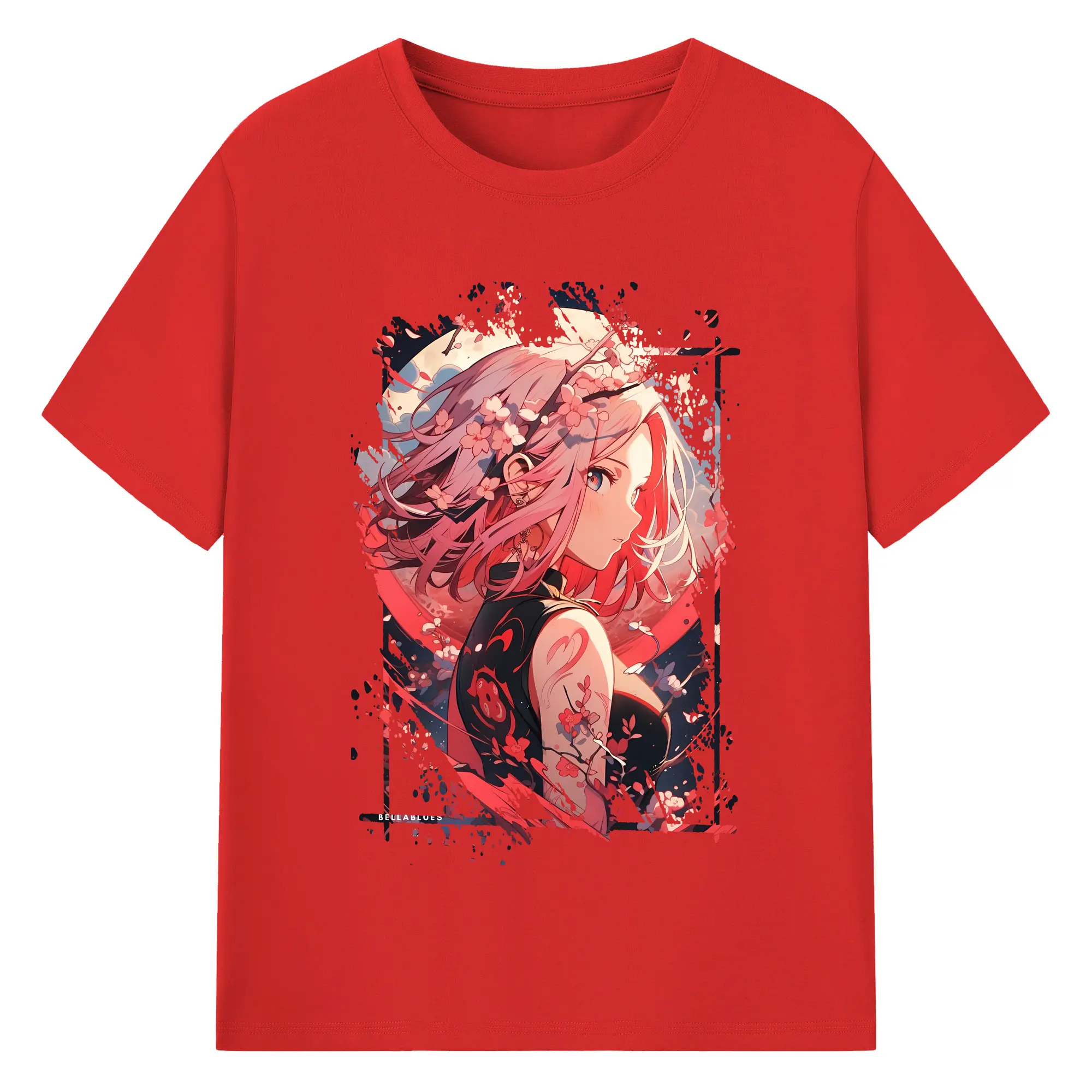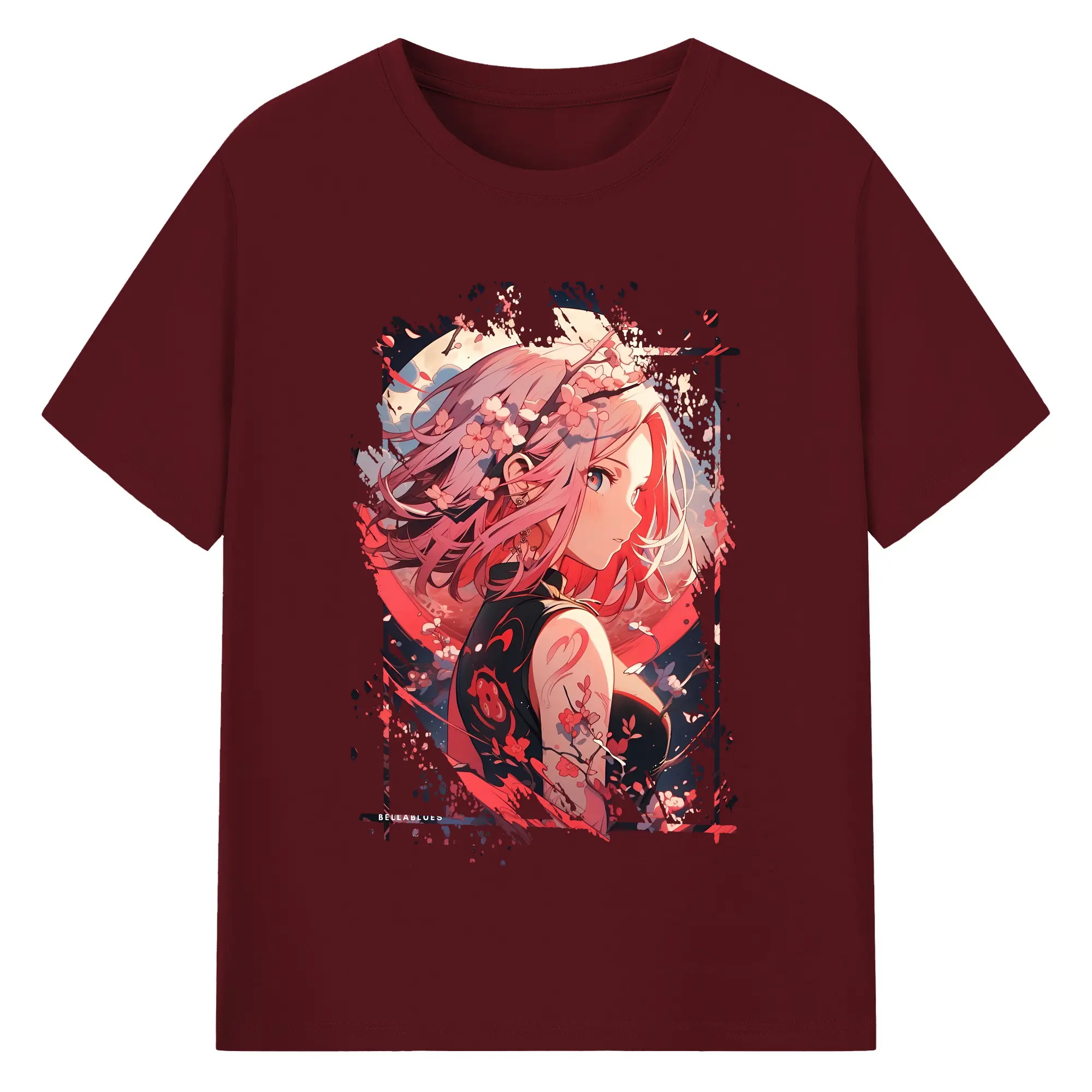 ナルト グッズ はるの さくら - 綿100% ヴィンテージ風 半袖Tシャツ ・ フロントプリント ・ 柔らか肌触り ・ 通気性 快適 ・ スポーツ カジュアル 外出用
