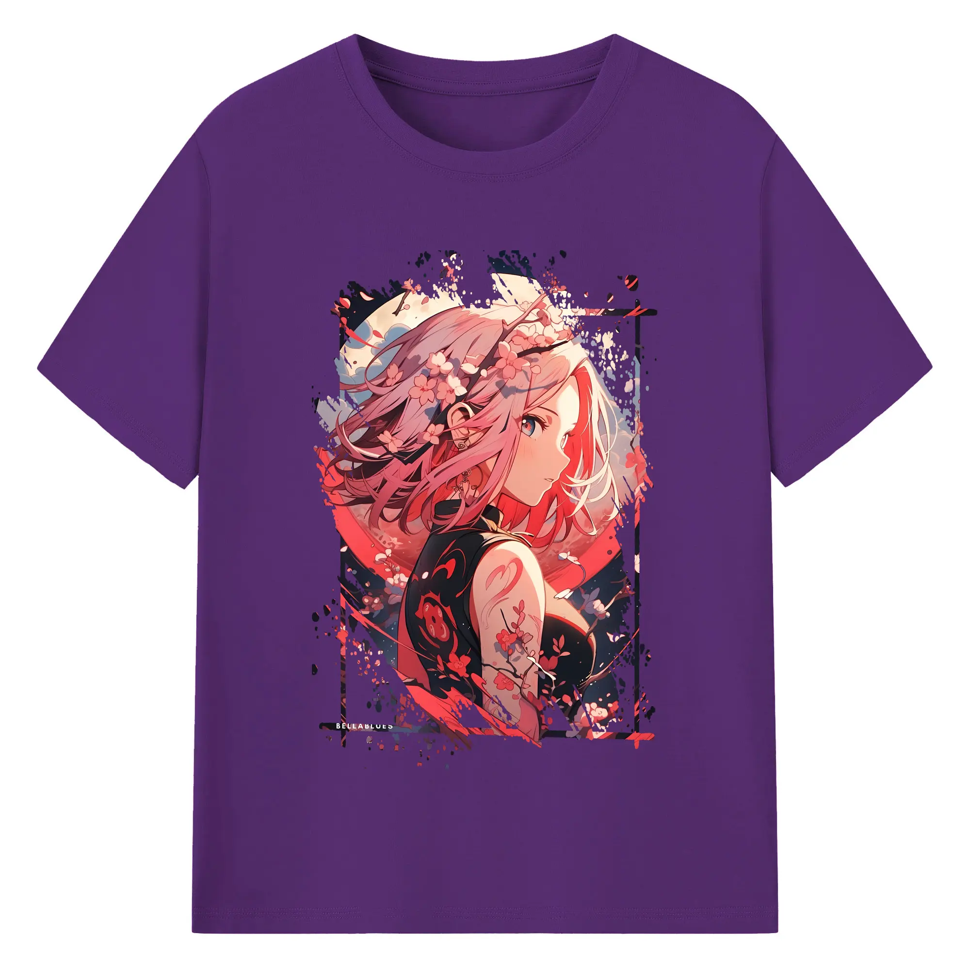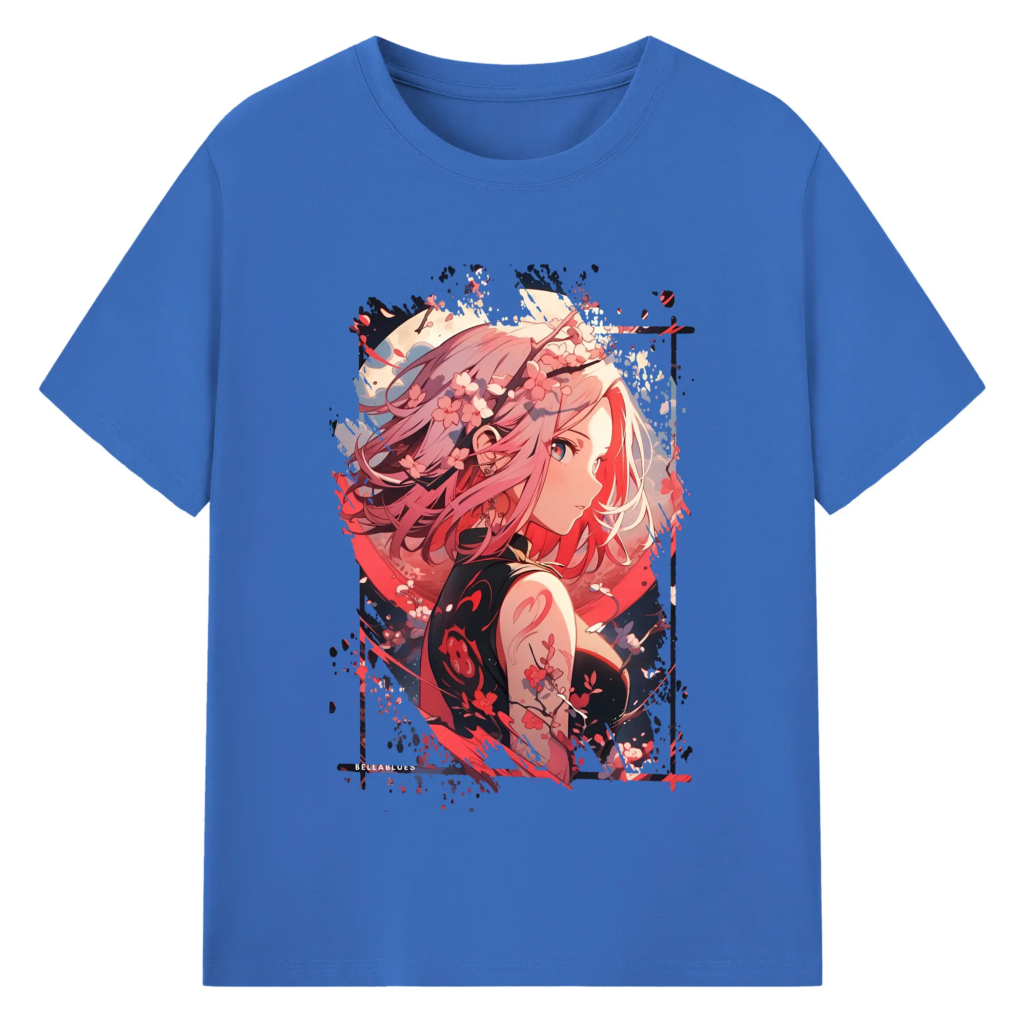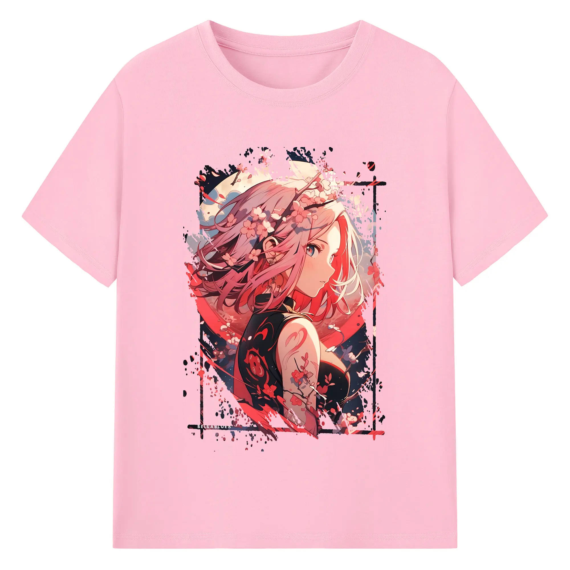 ナルト グッズ はるの さくら - 綿100% 半袖Tシャツ ・ バックプリント ・ 快適 通気性 ・ 日常使い 散歩 スポーツ用