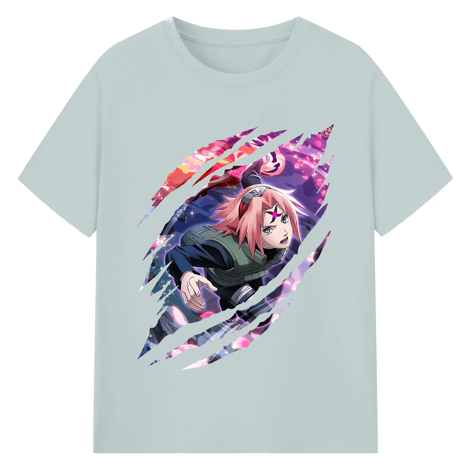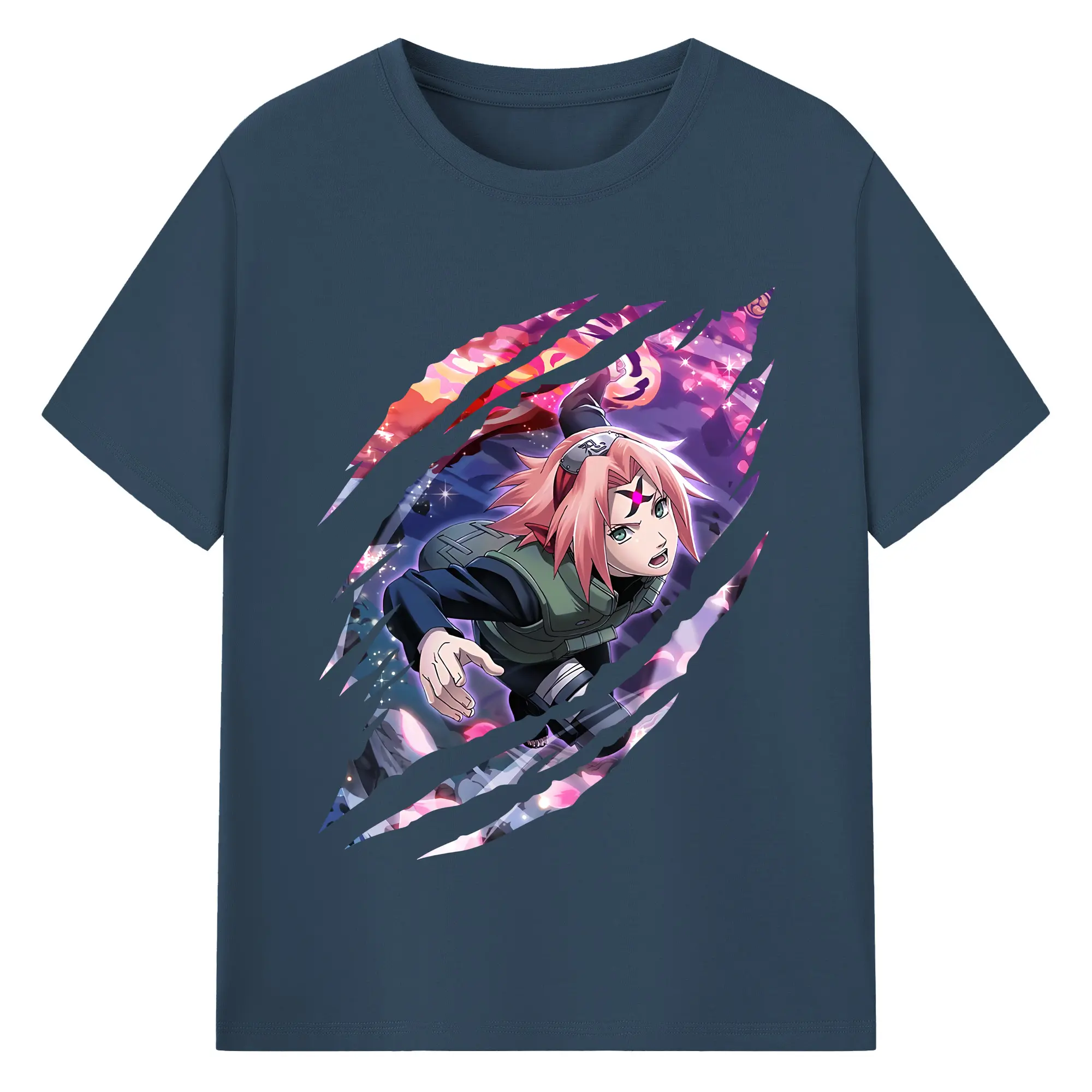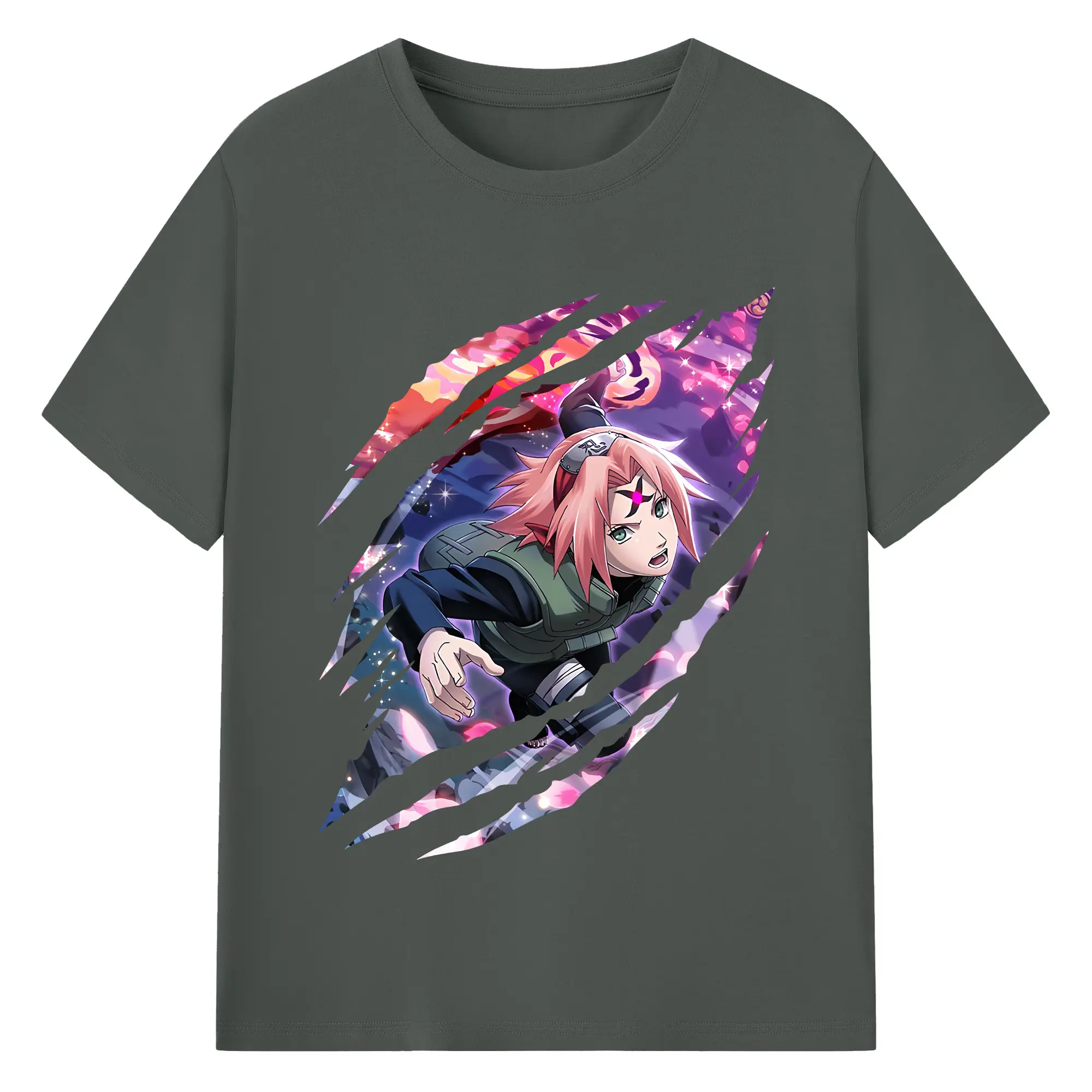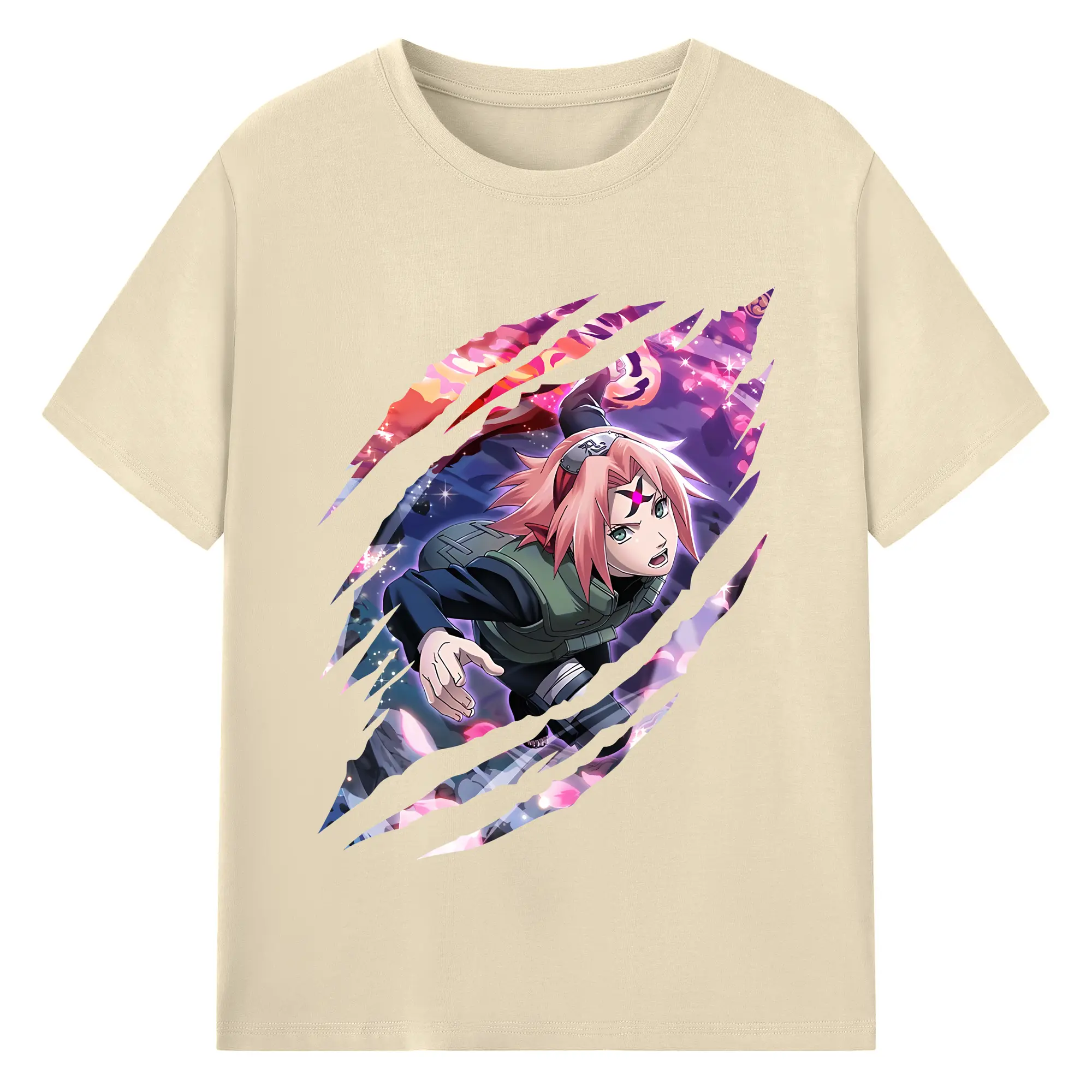 ナルト グッズ はるの さくら - 綿100% ヴィンテージ風 半袖Tシャツ ・ フロントプリント ・ 柔らか肌触り ・ 通気性 快適 ・ スポーツ カジュアル 外出用