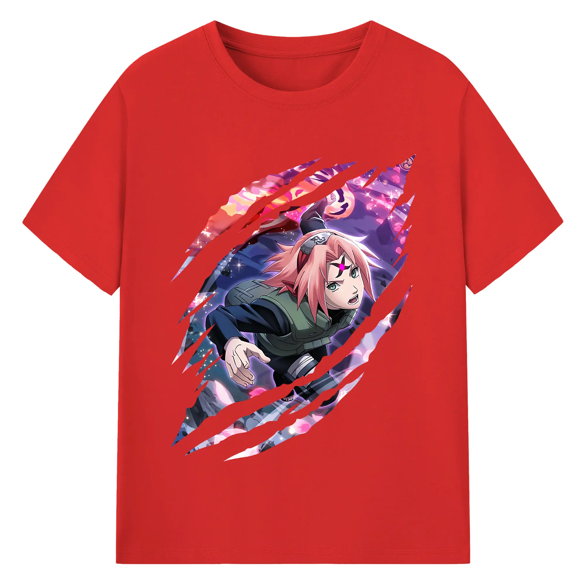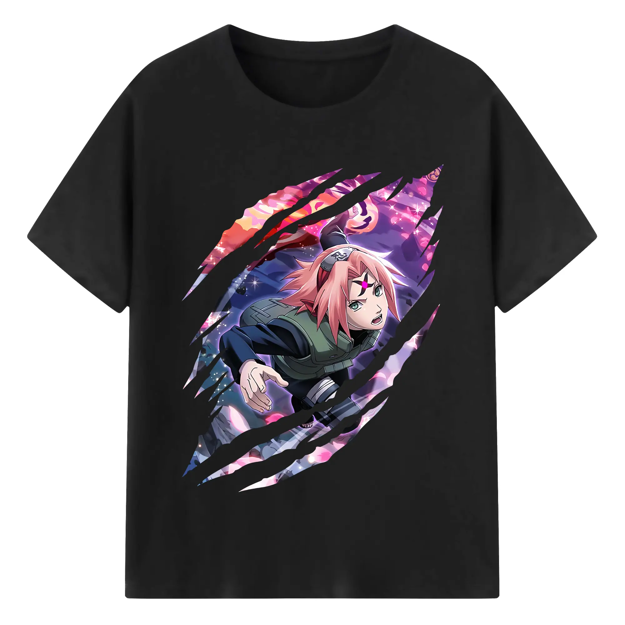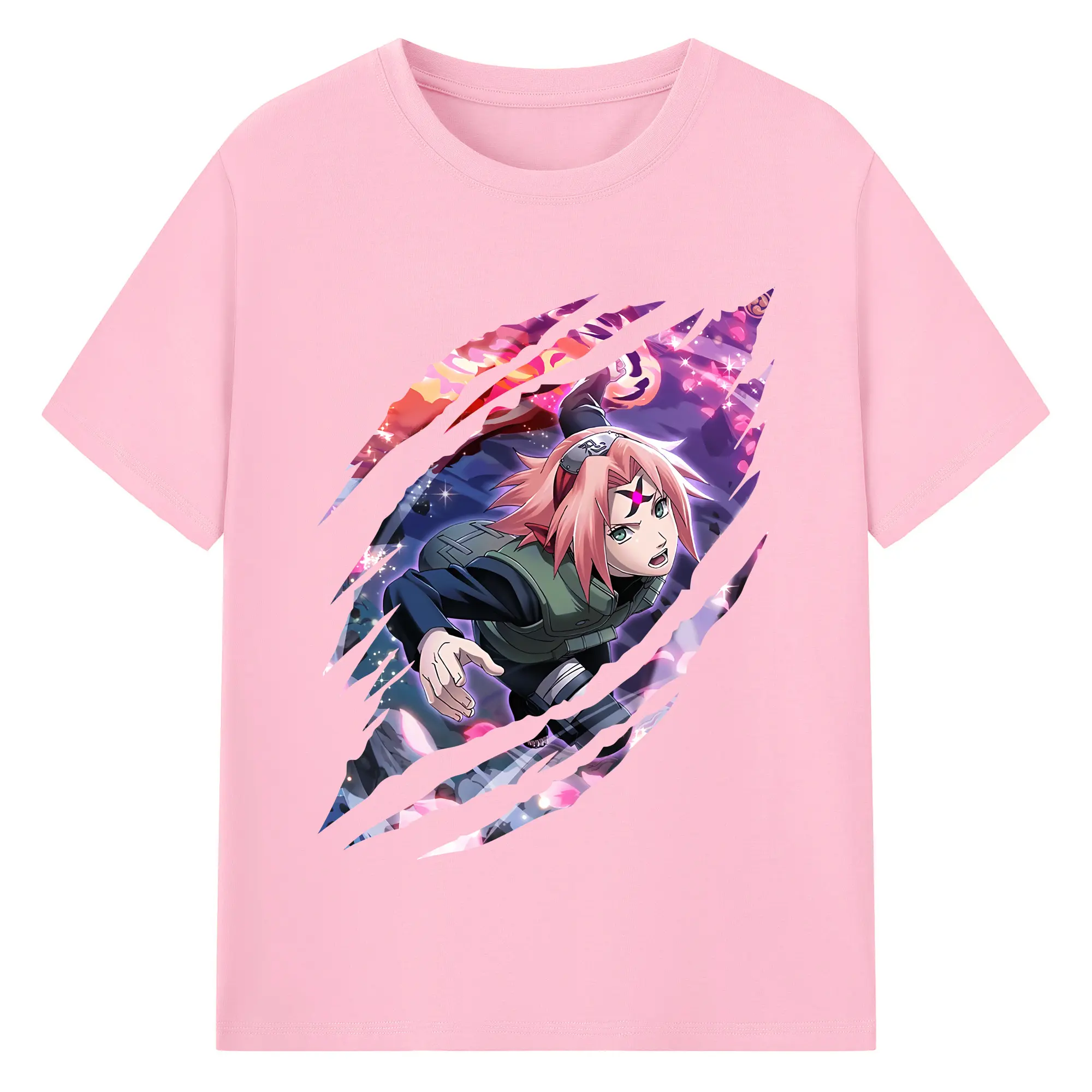 ナルト グッズ はるの さくら - 綿100% 半袖Tシャツ ・ バックプリント ・ 快適 通気性 ・ 日常使い 散歩 スポーツ用