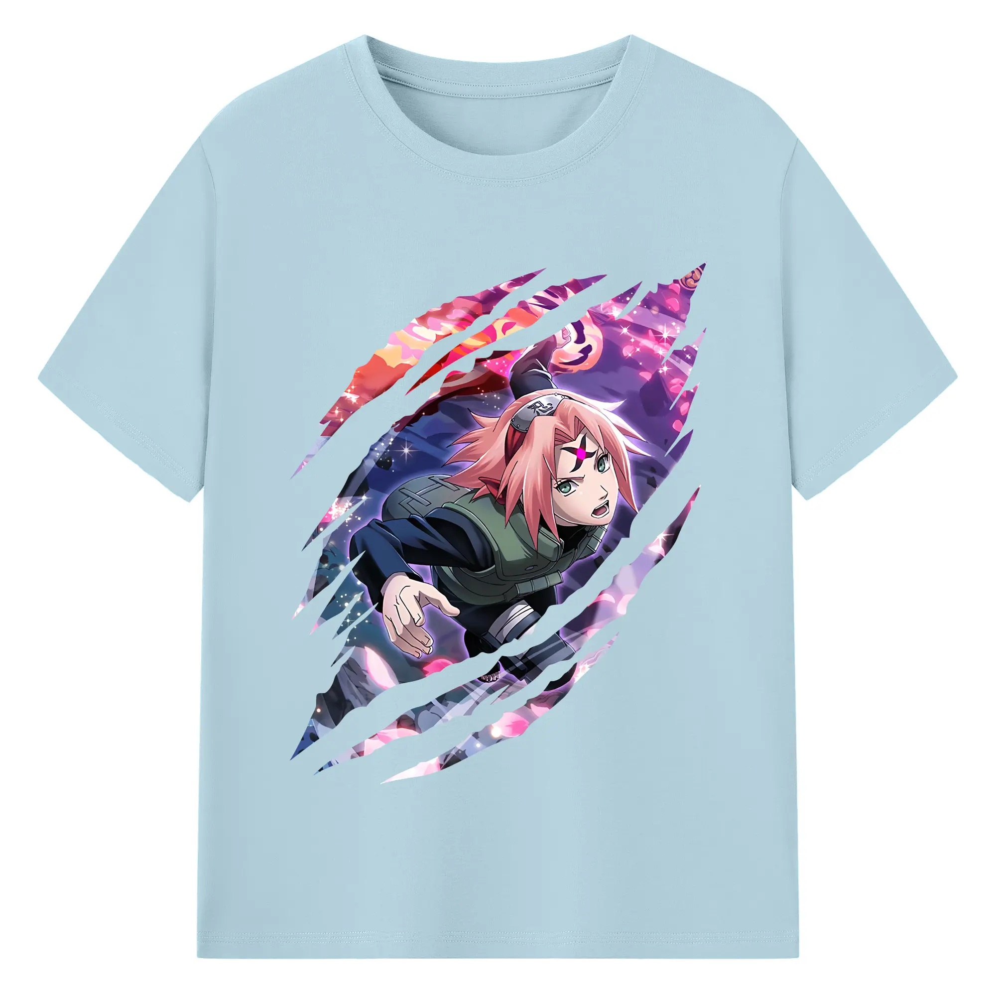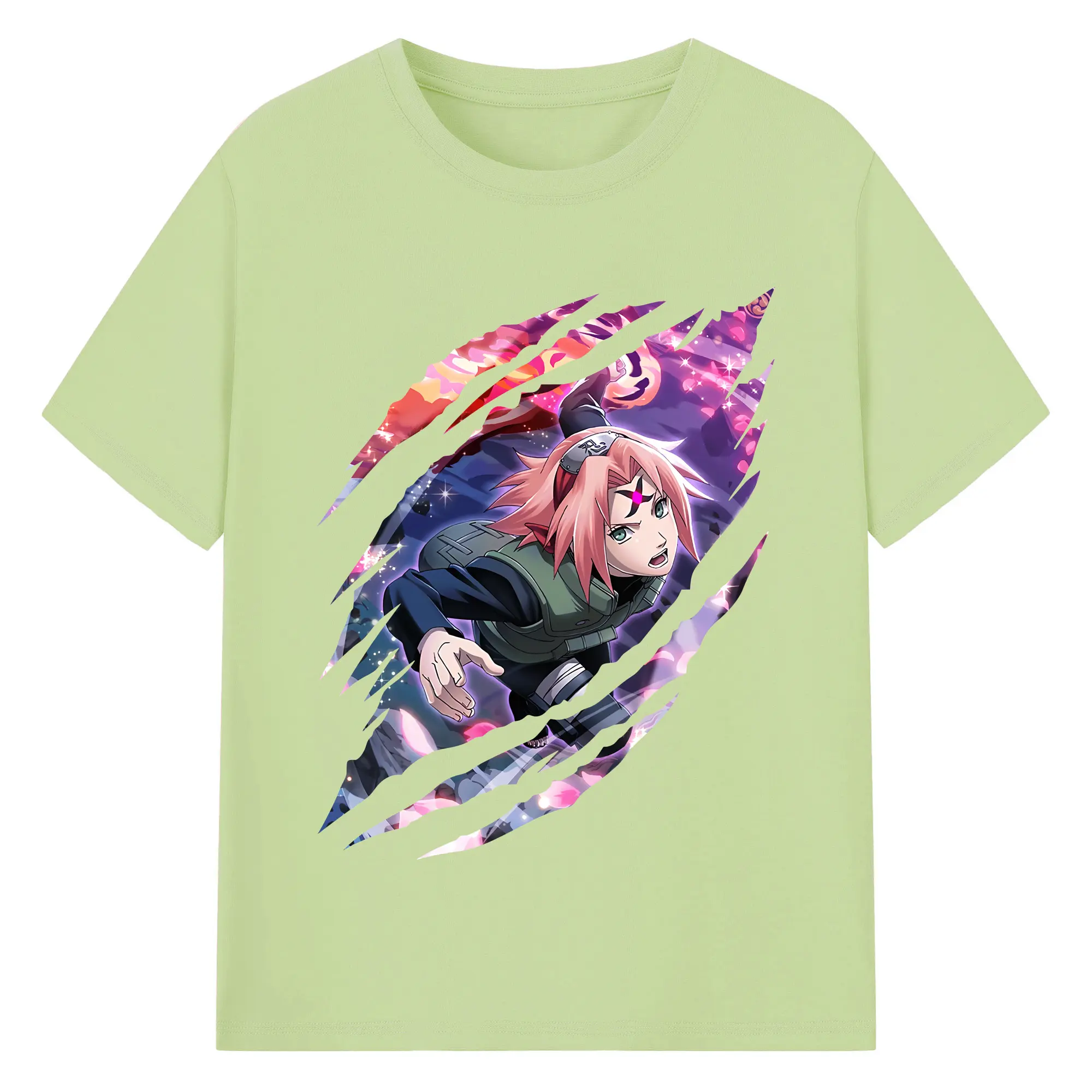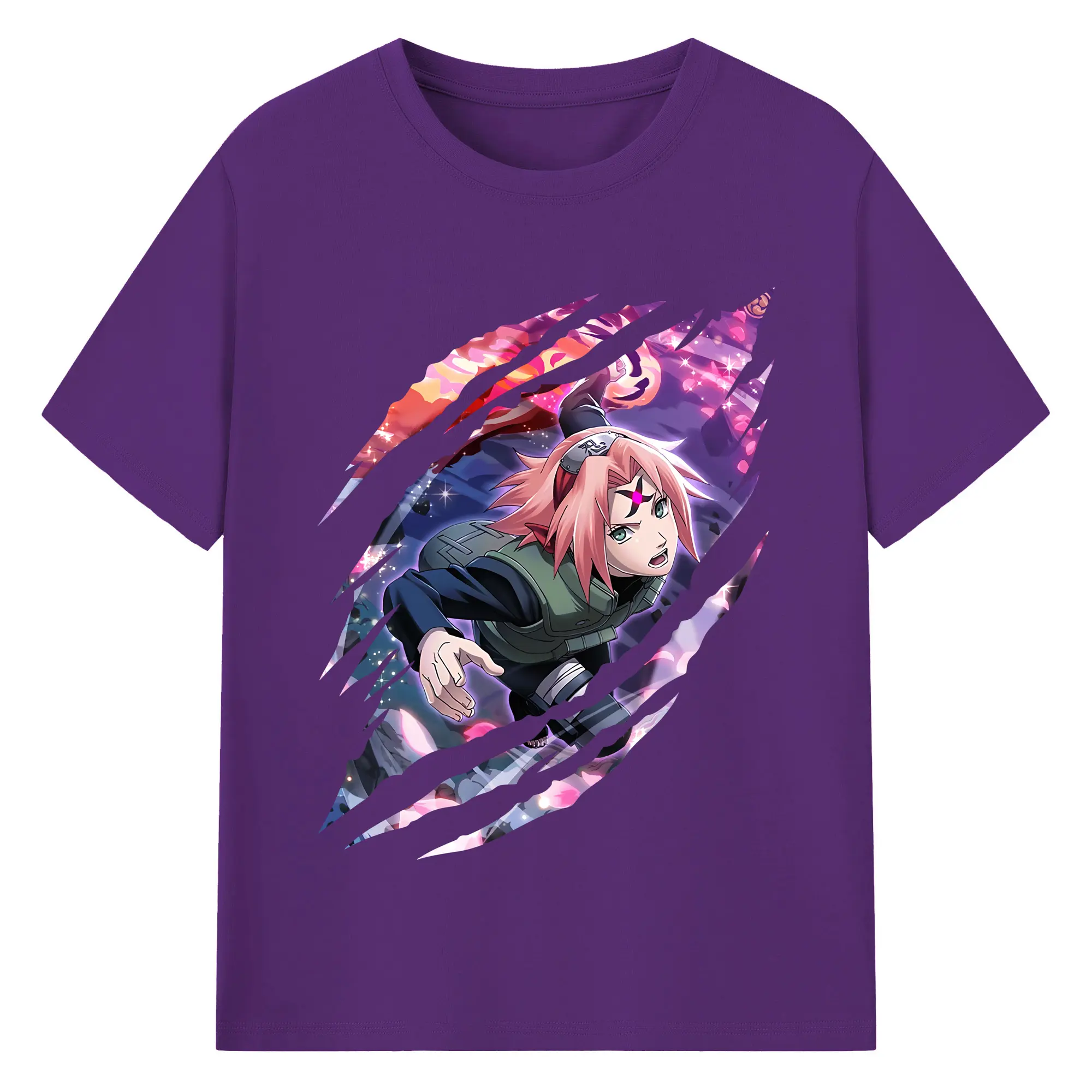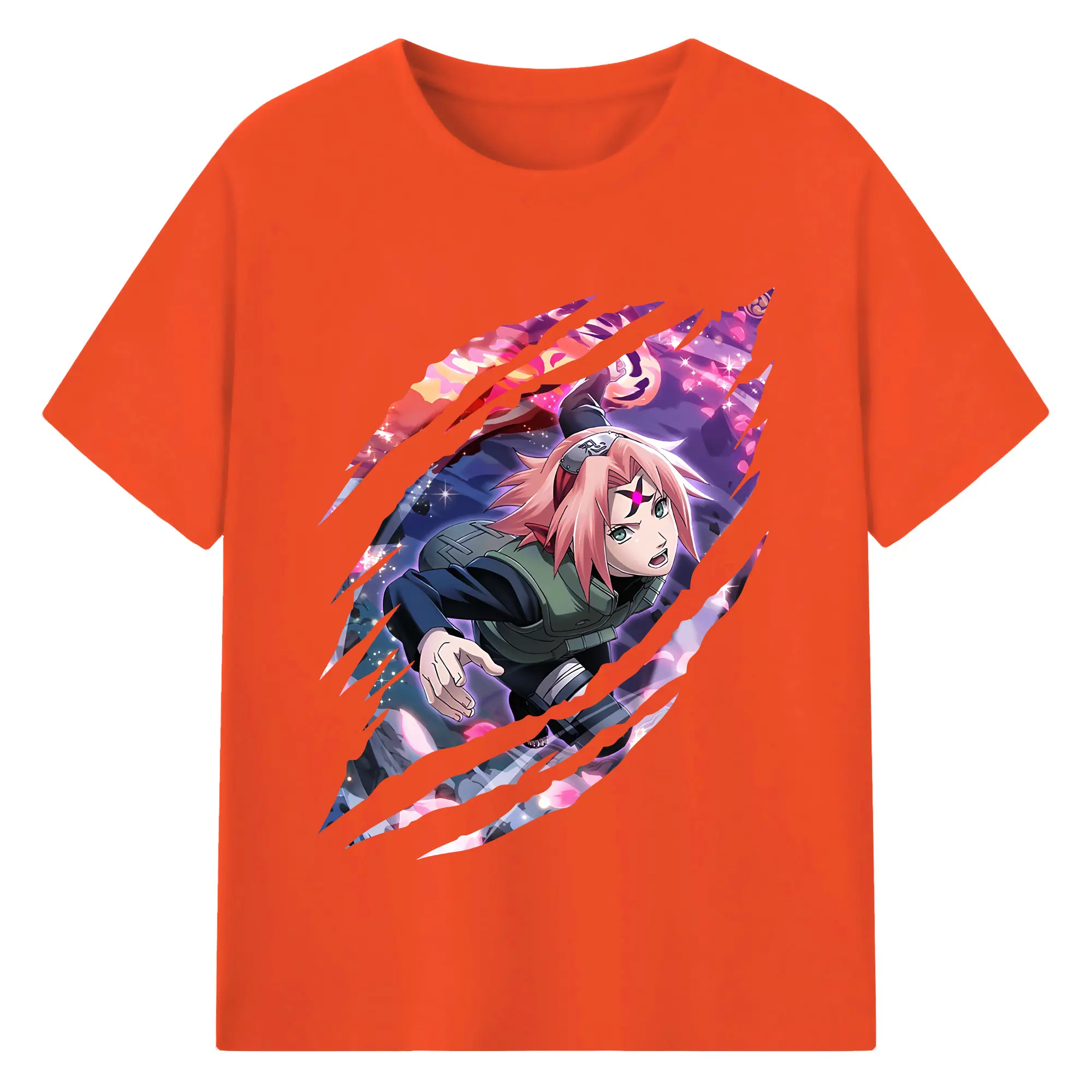 ナルト グッズ はるの さくら - 綿100% 半袖Tシャツ ・ バックプリント ・ 快適 通気性 ・ 日常使い 散歩 スポーツ用
