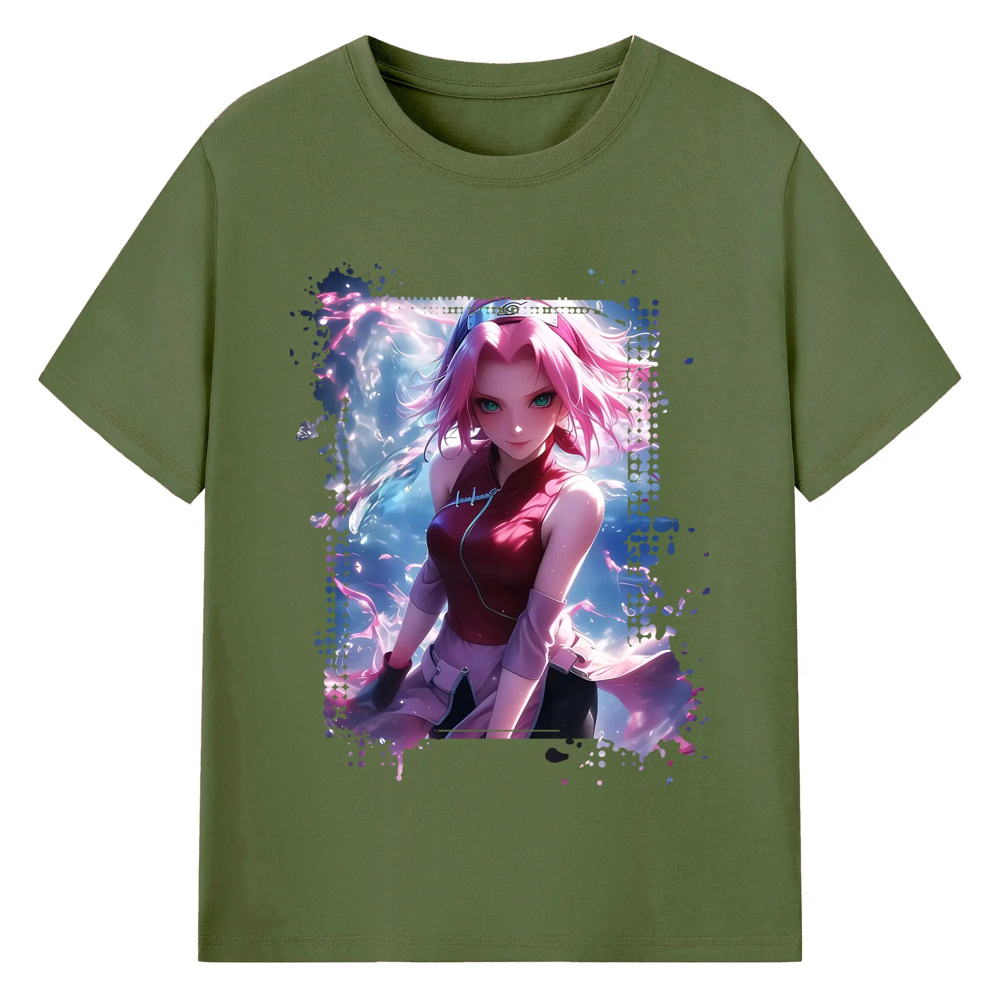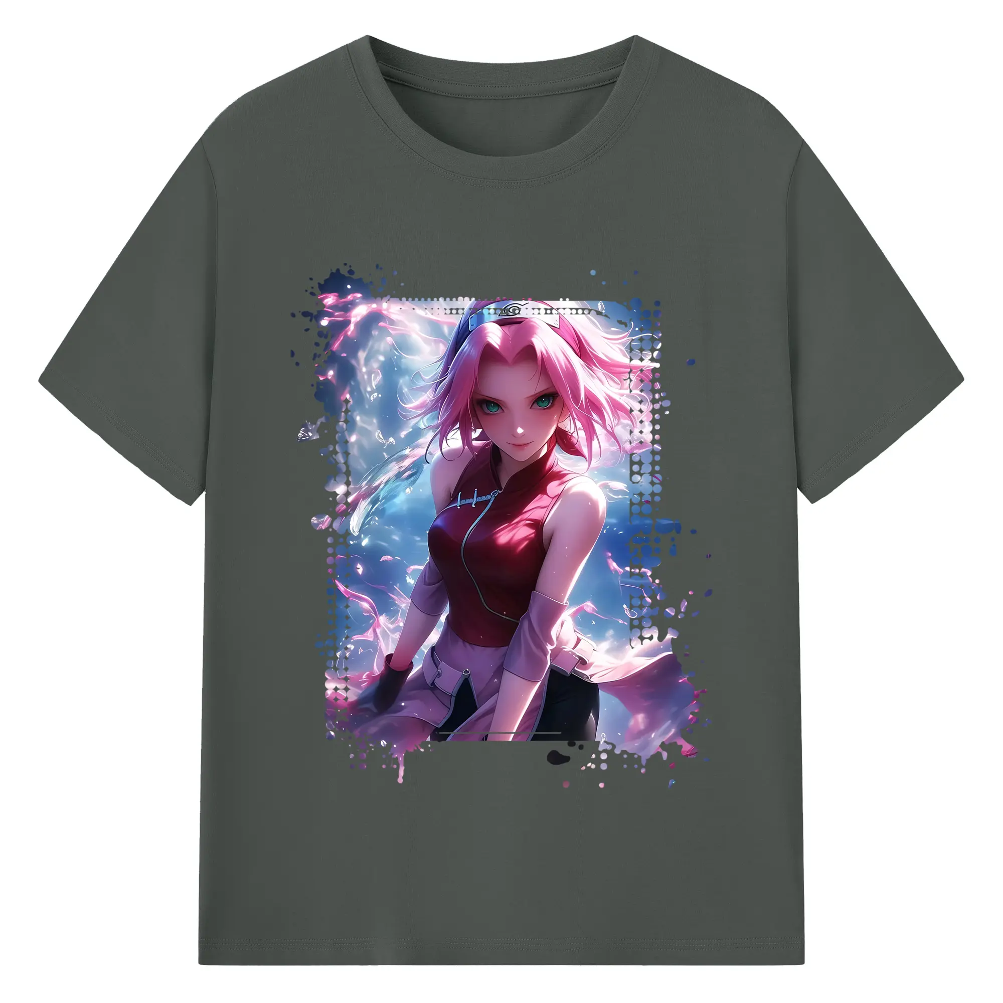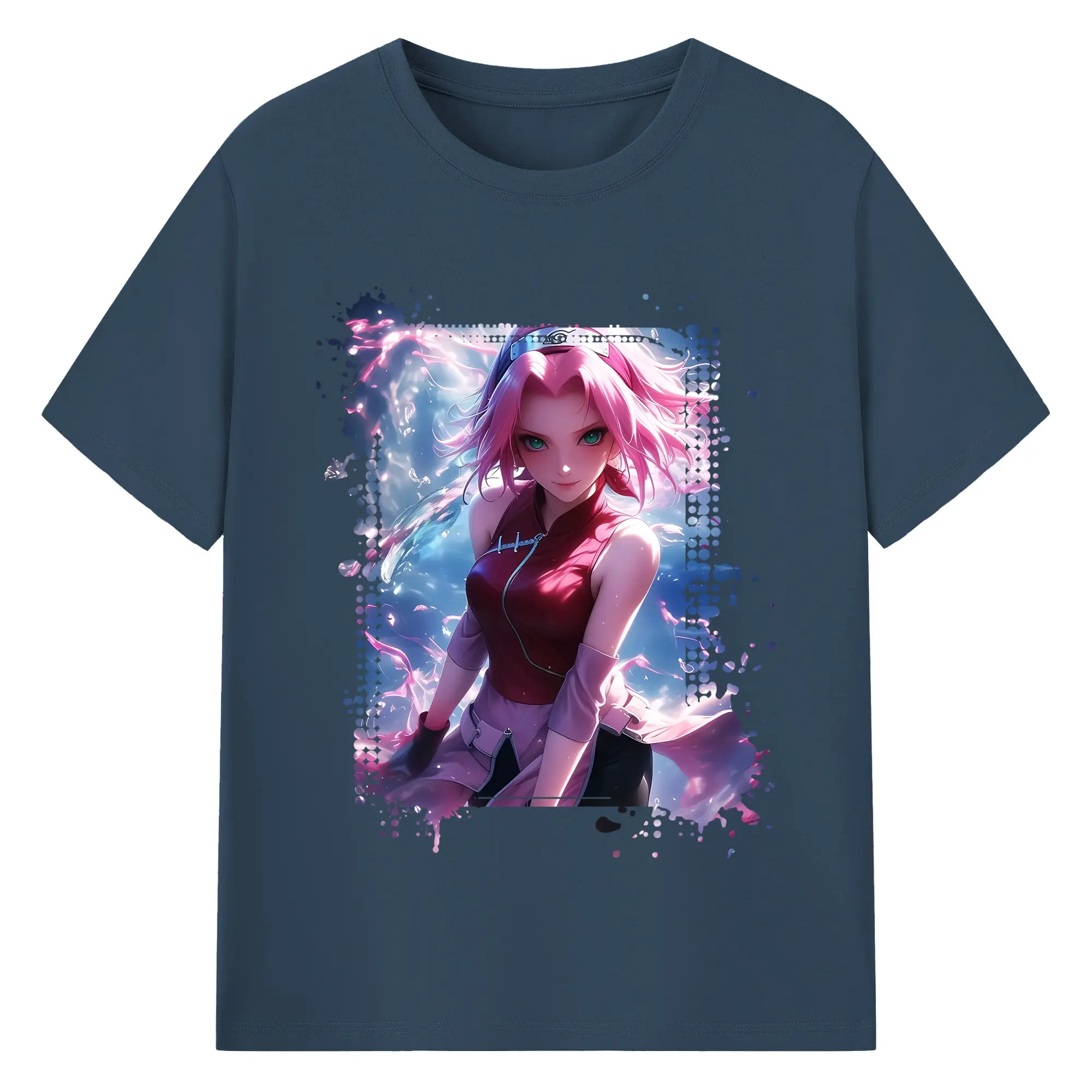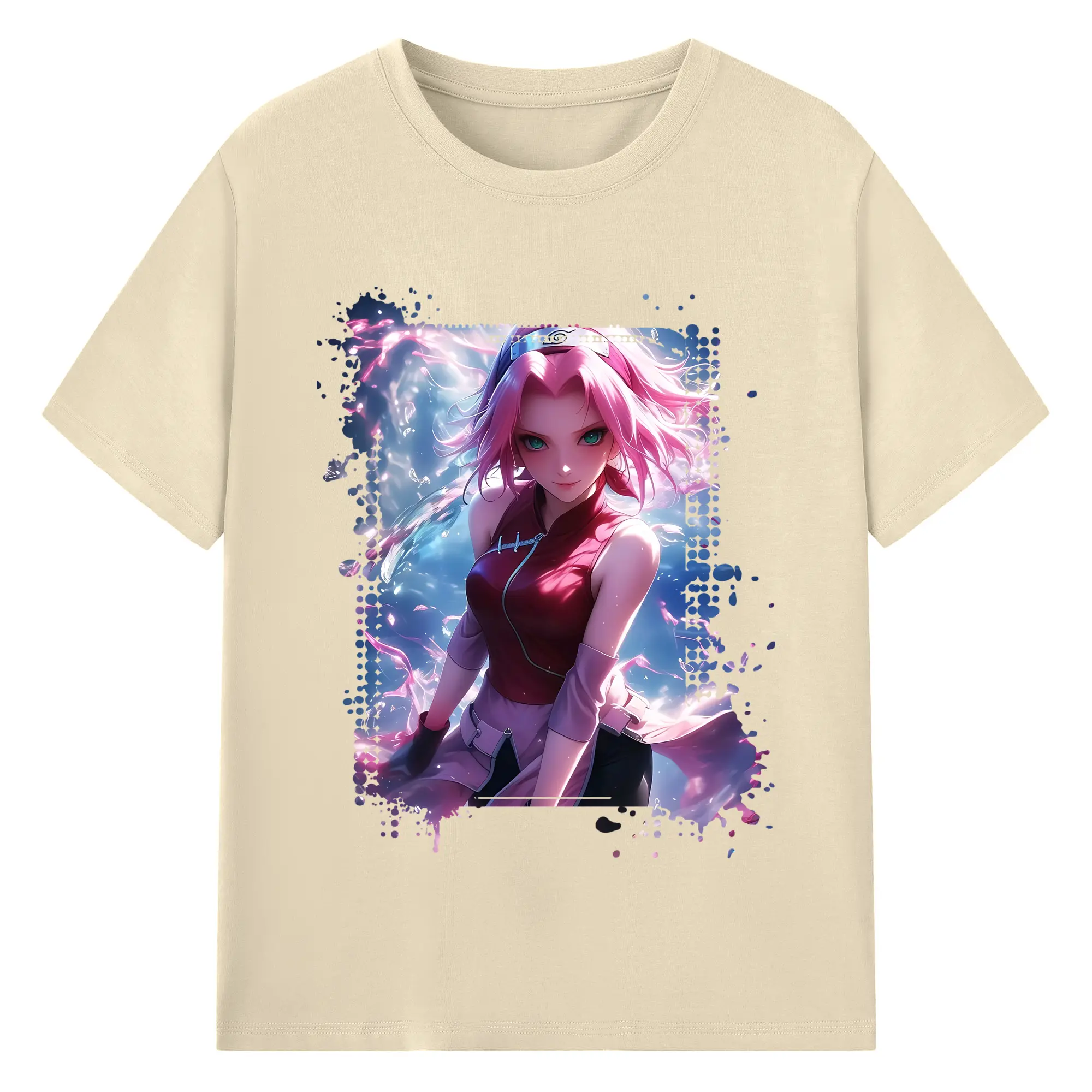 ナルト グッズ はるの さくら - 綿100% ヴィンテージ風 半袖Tシャツ ・ フロントプリント ・ 柔らか肌触り ・ 通気性 快適 ・ スポーツ カジュアル 外出用