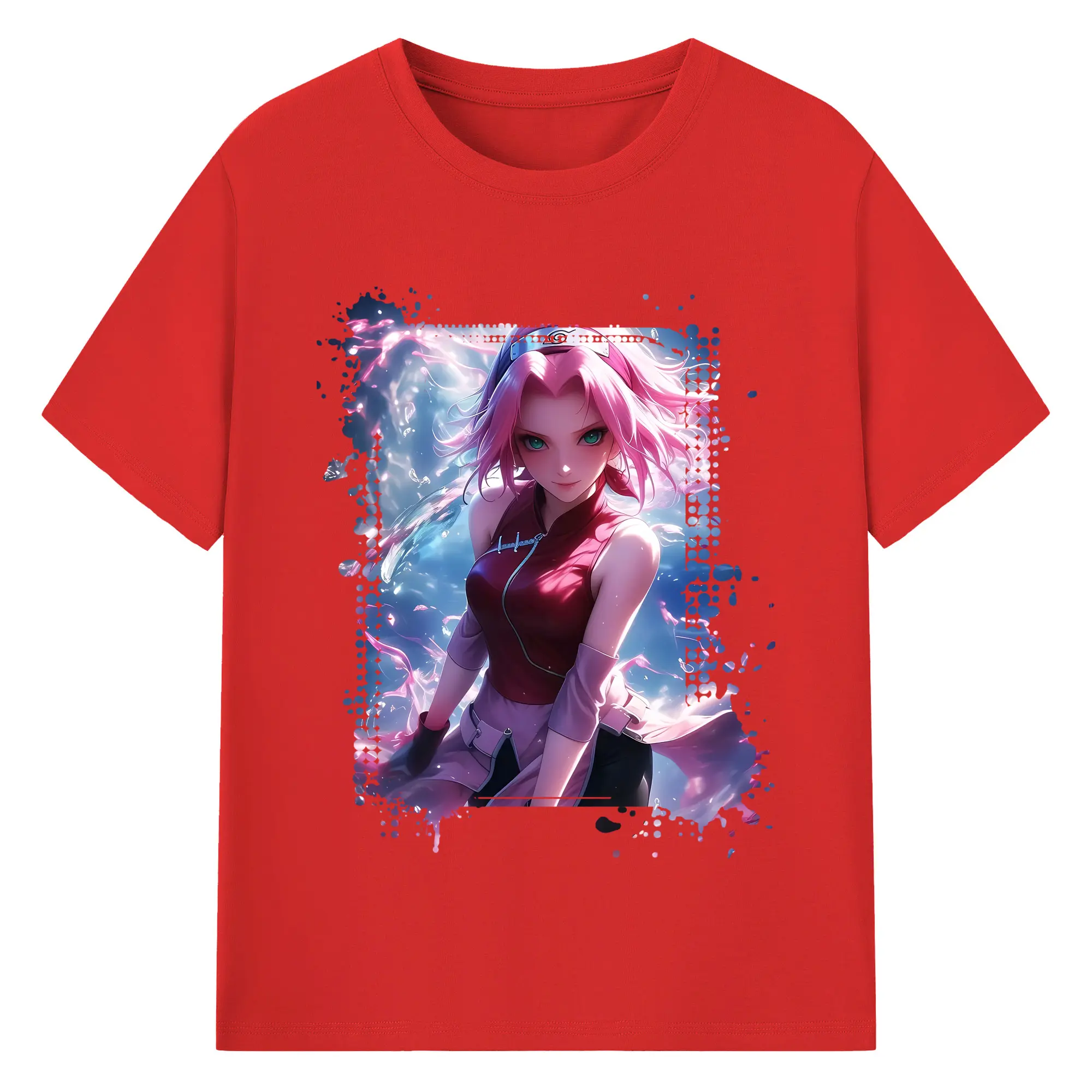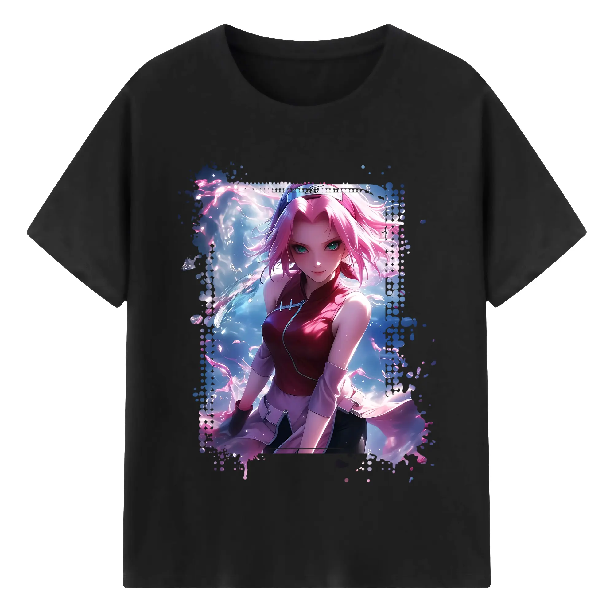 ナルト グッズ はるの さくら - 綿100% 半袖Tシャツ ・ バックプリント ・ 快適 通気性 ・ 日常使い 散歩 スポーツ用