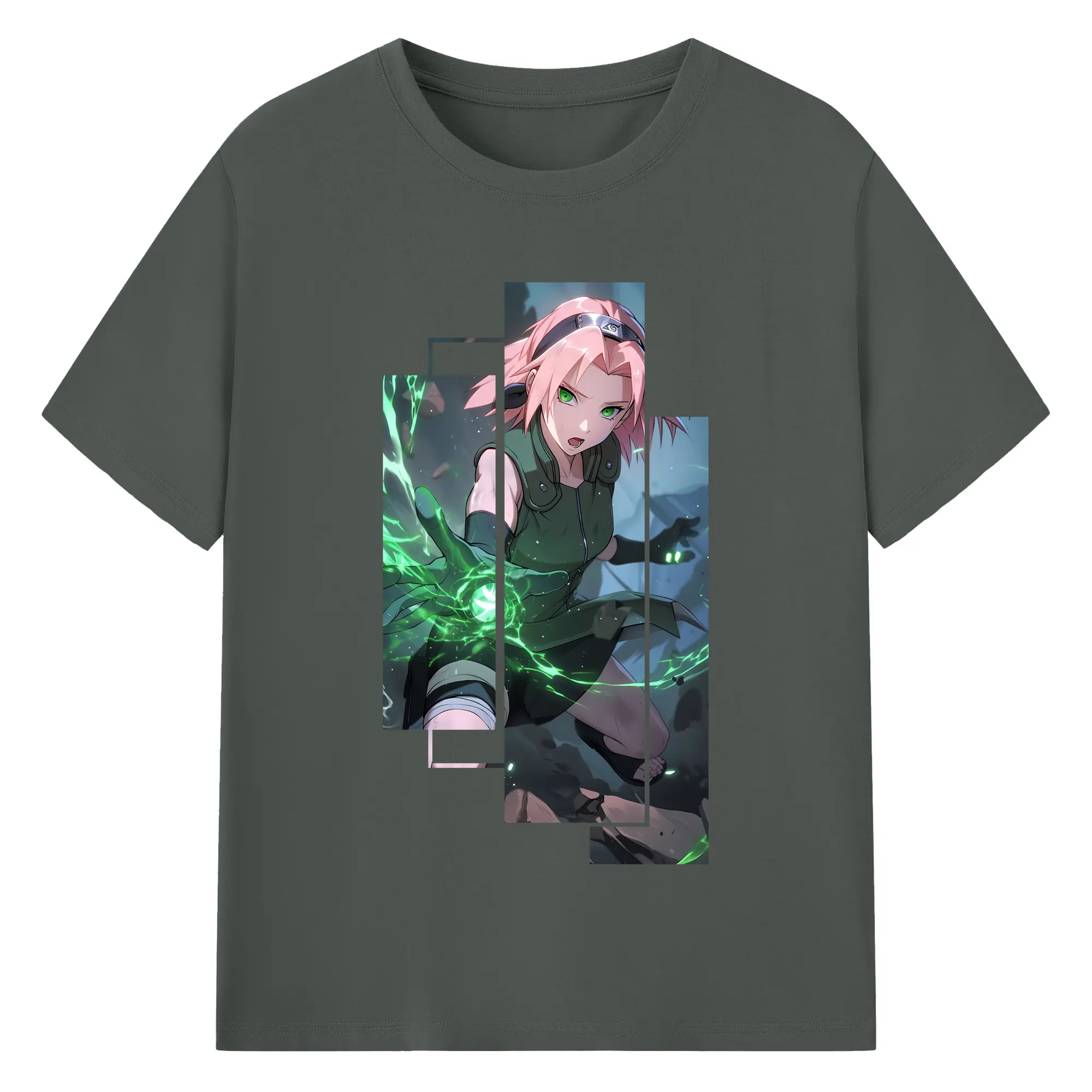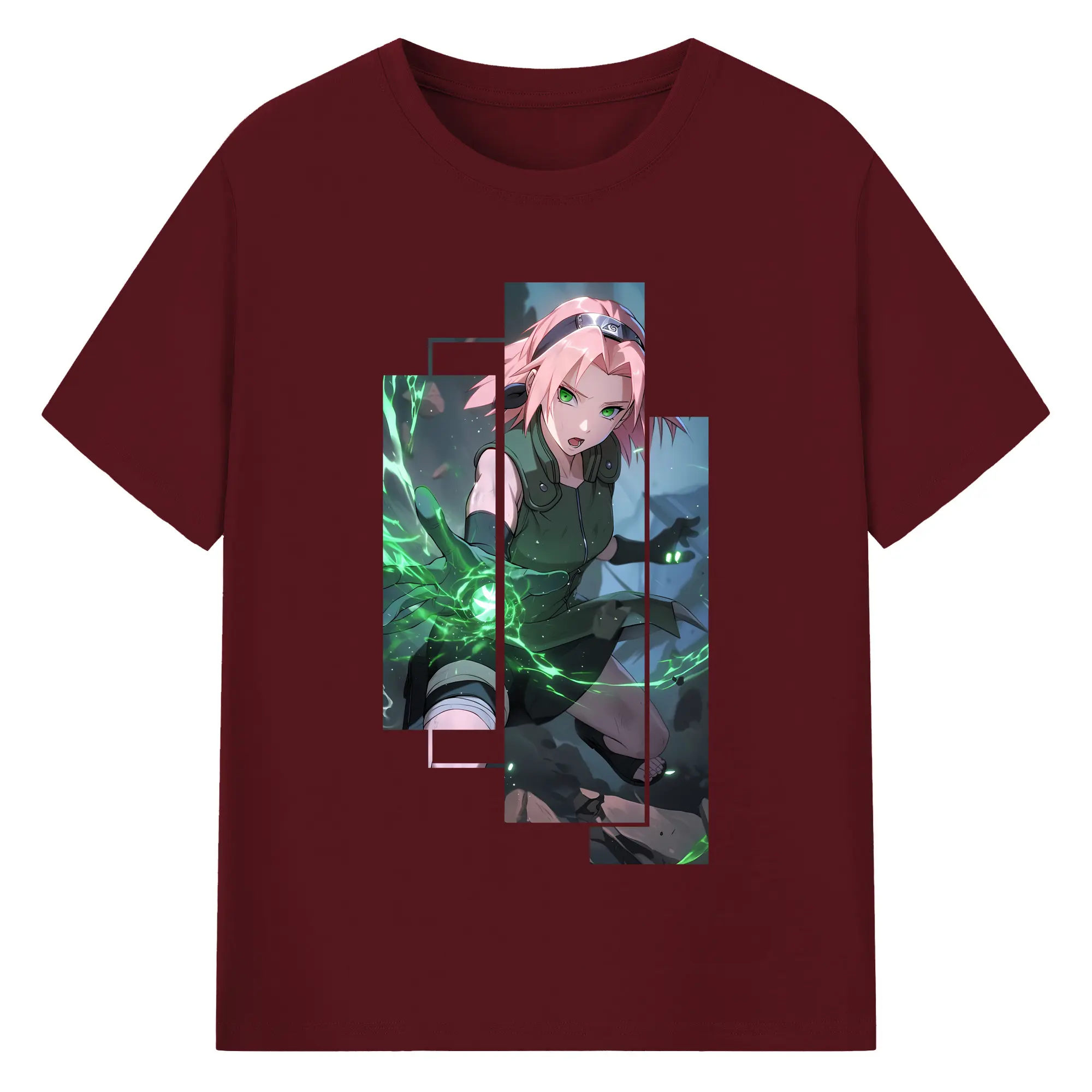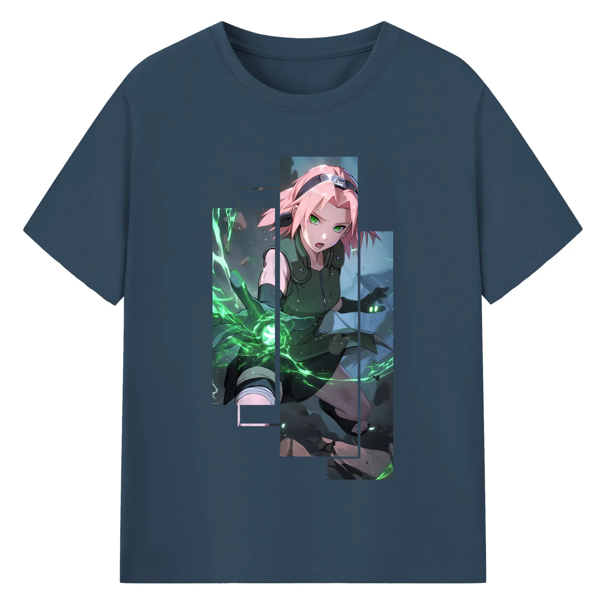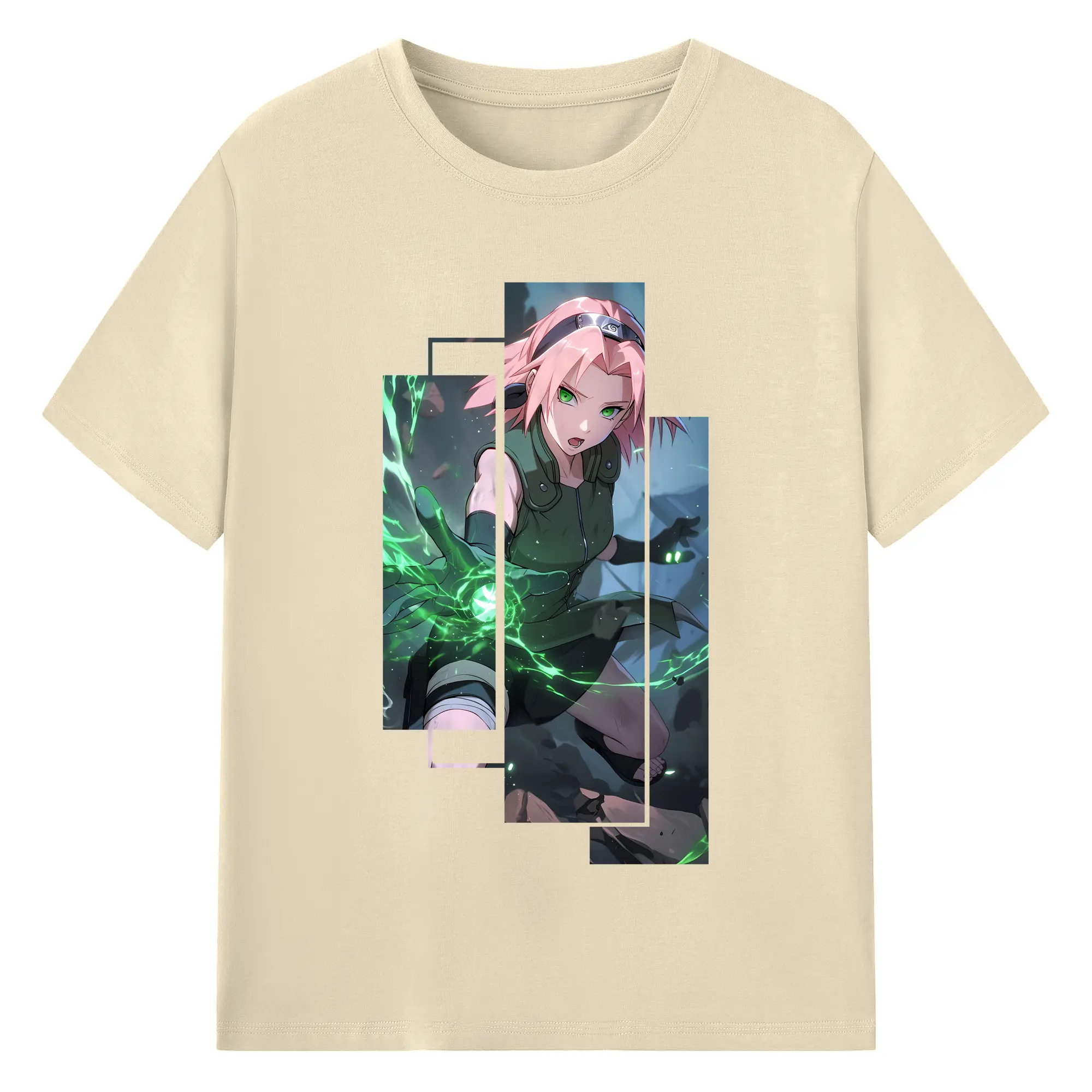 ナルト グッズ はるの さくら - 綿100% ヴィンテージ風 半袖Tシャツ ・ フロントプリント ・ 柔らか肌触り ・ 通気性 快適 ・ スポーツ カジュアル 外出用