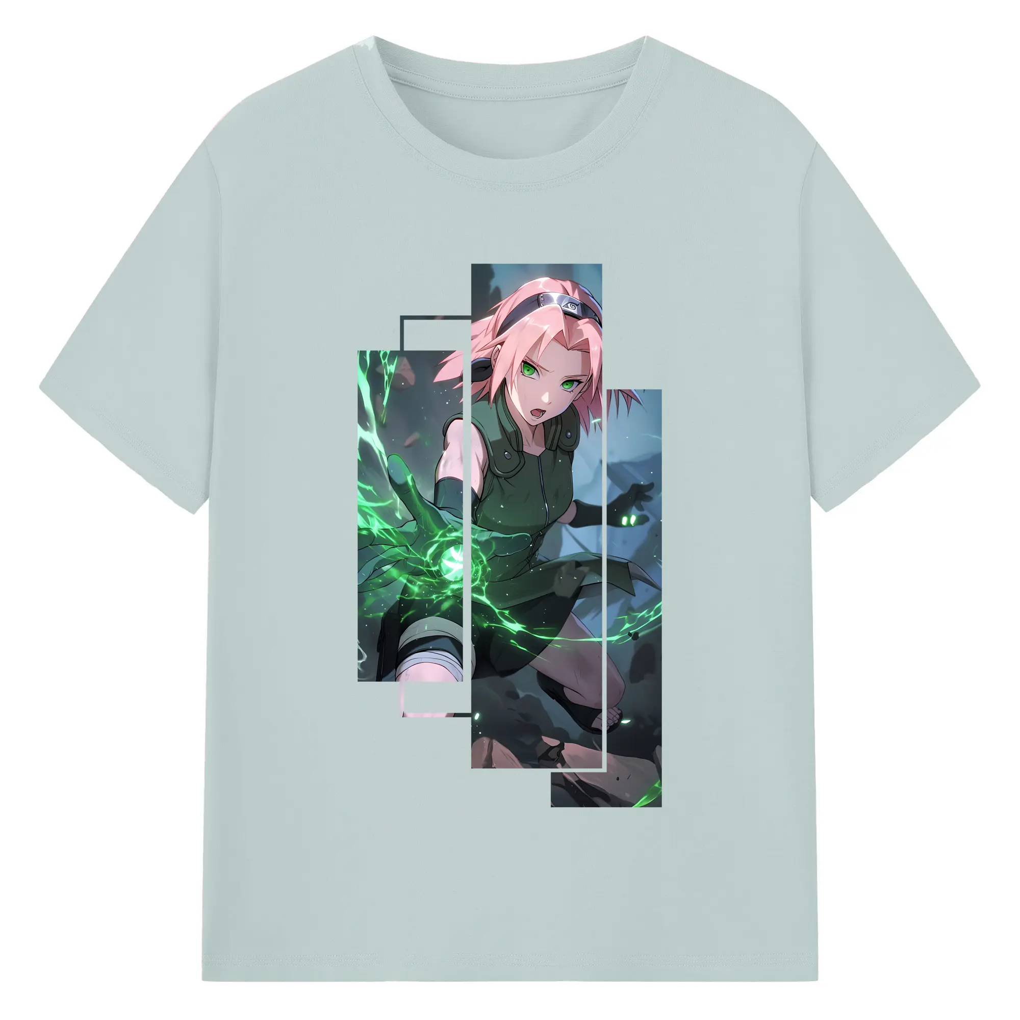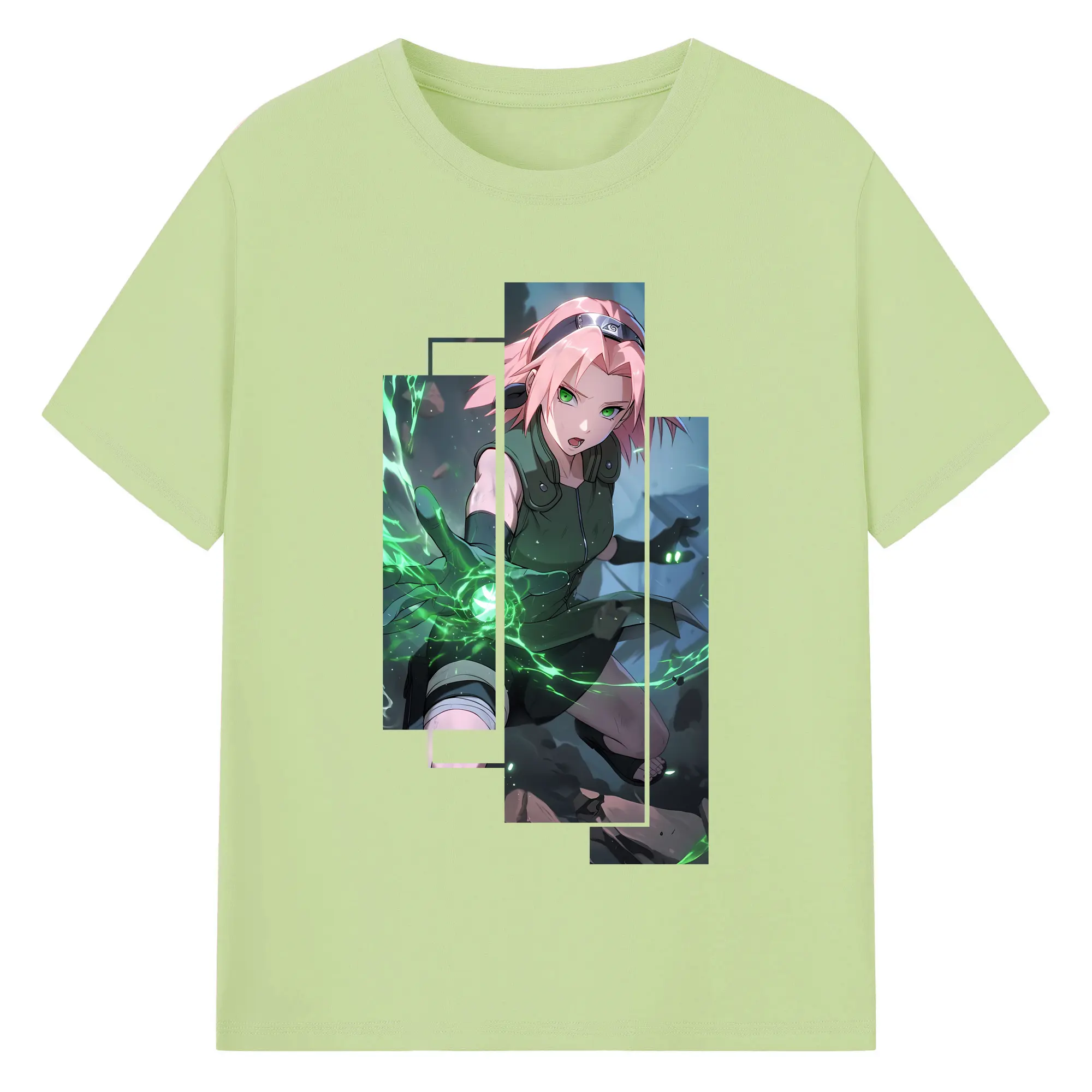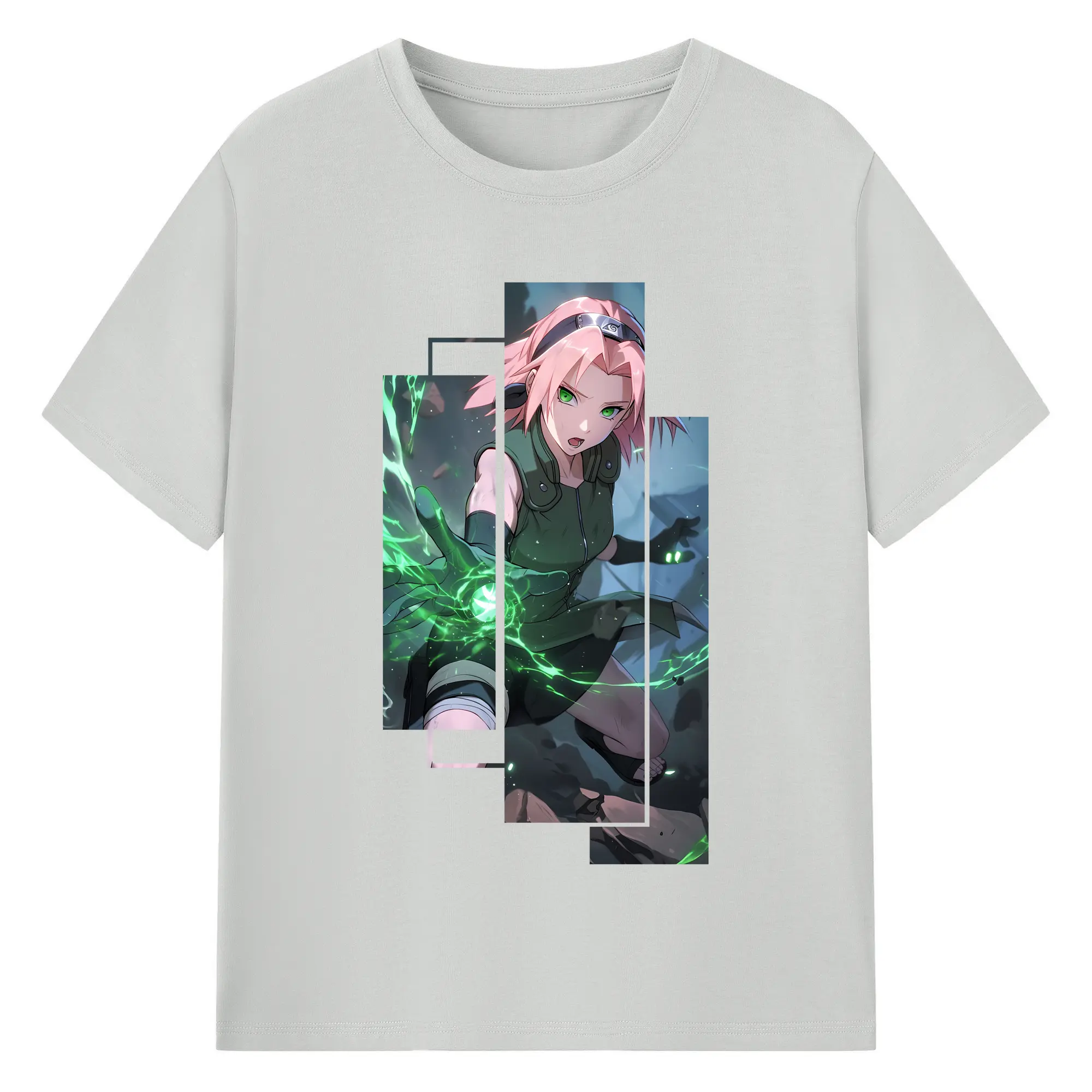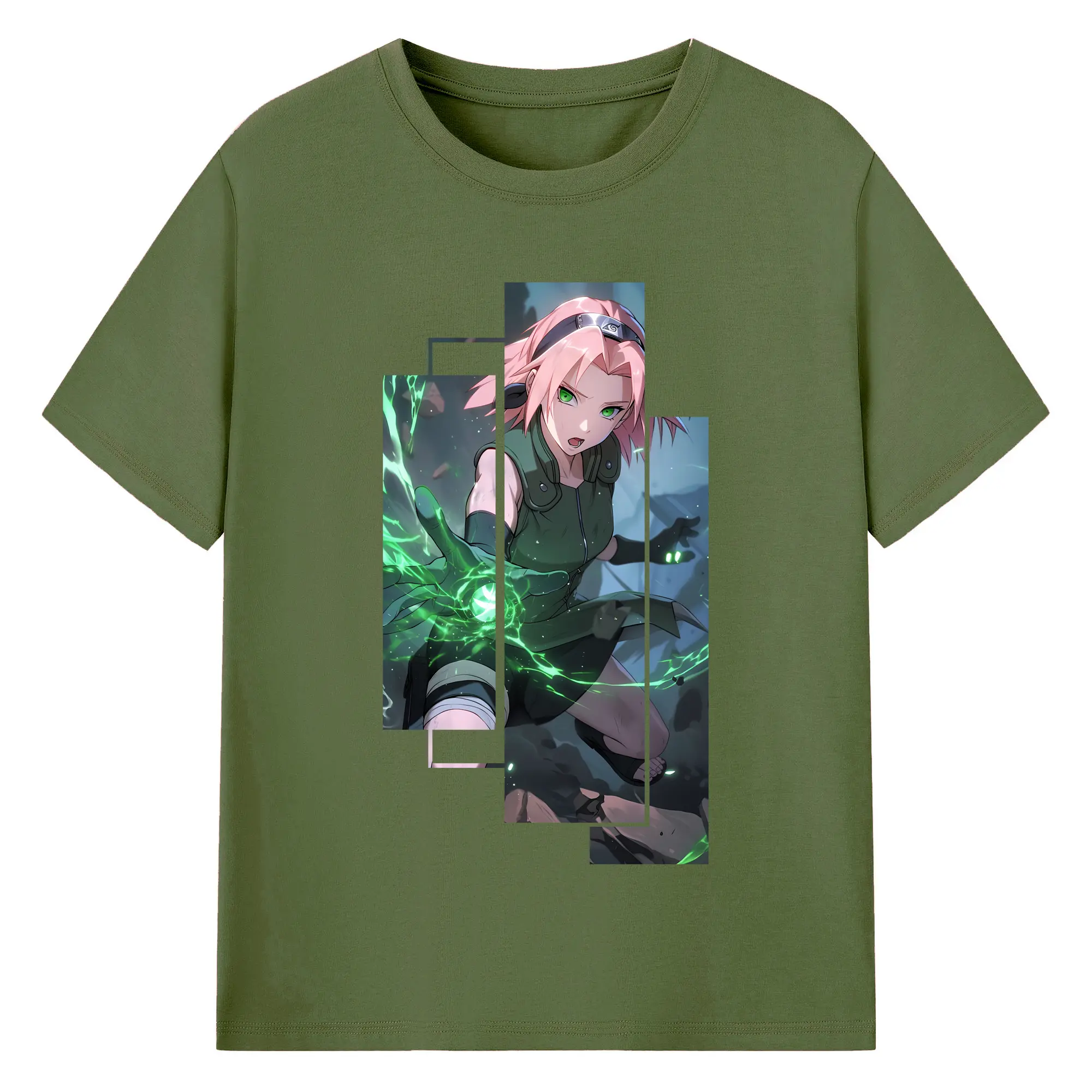 ナルト グッズ はるの さくら - 綿100% ヴィンテージ風 半袖Tシャツ ・ フロントプリント ・ 柔らか肌触り ・ 通気性 快適 ・ スポーツ カジュアル 外出用