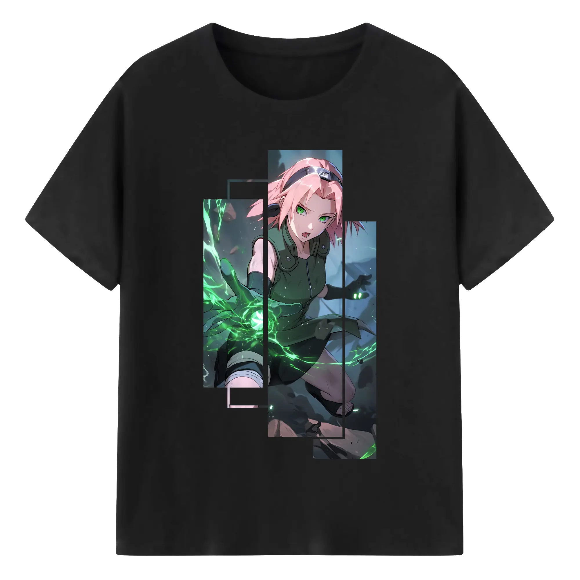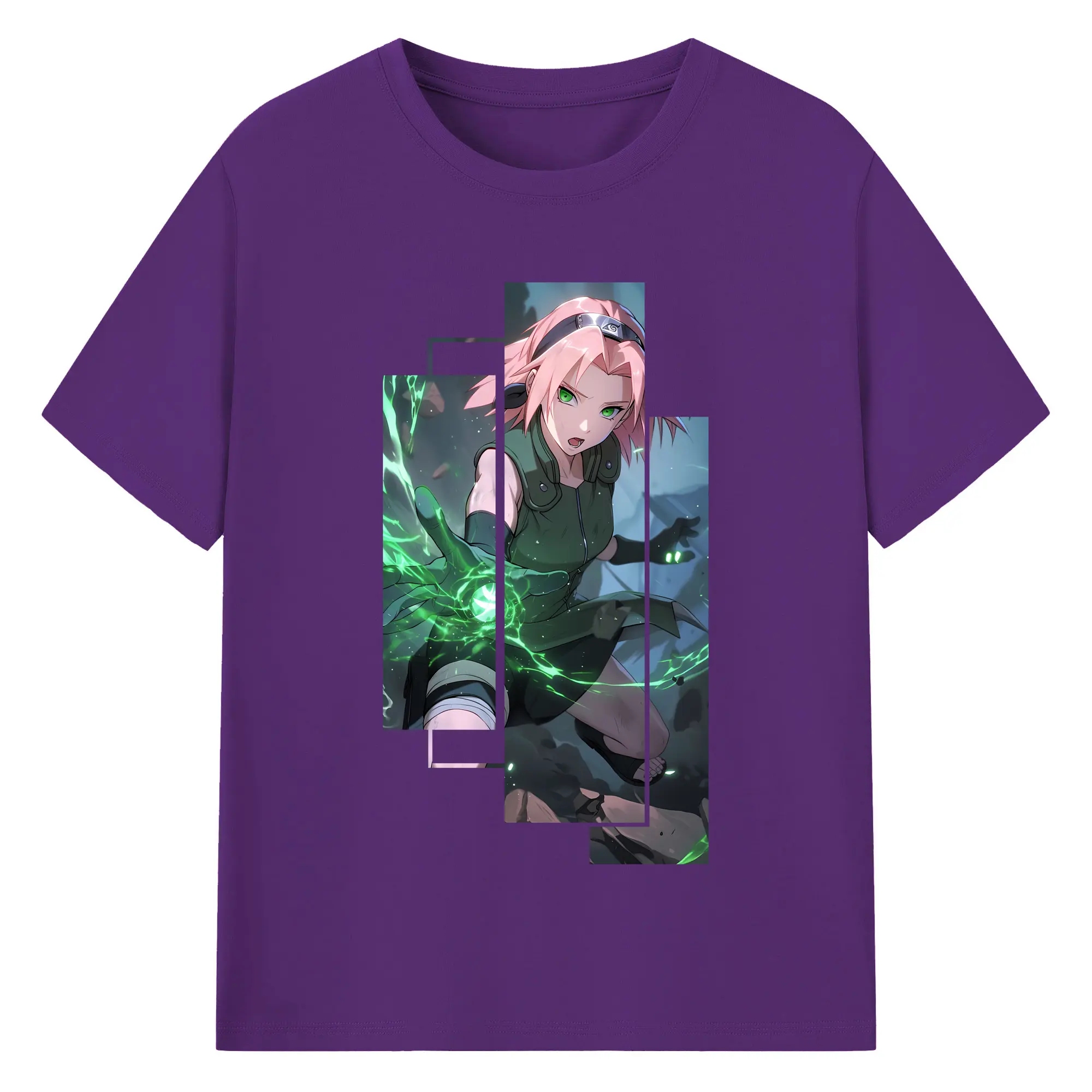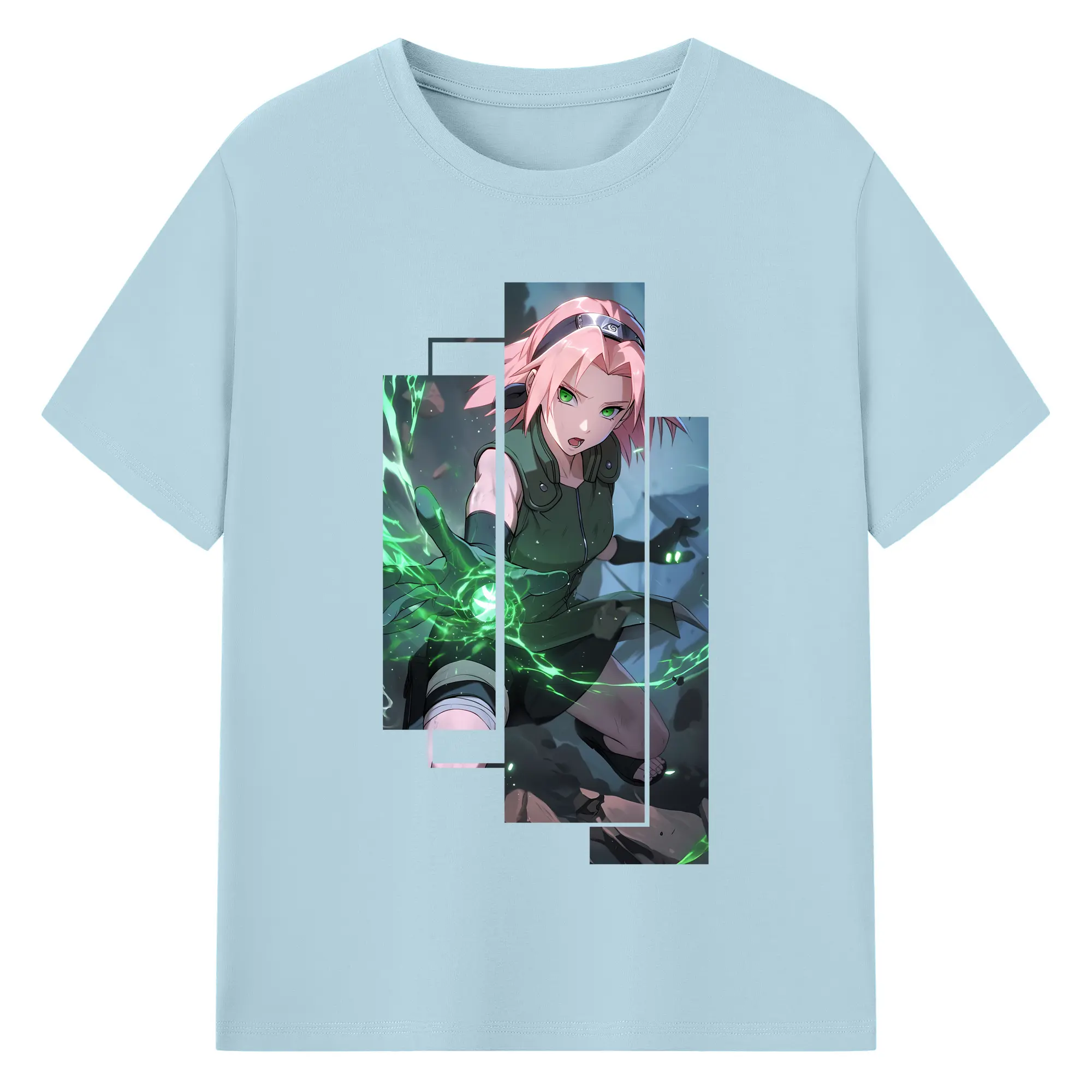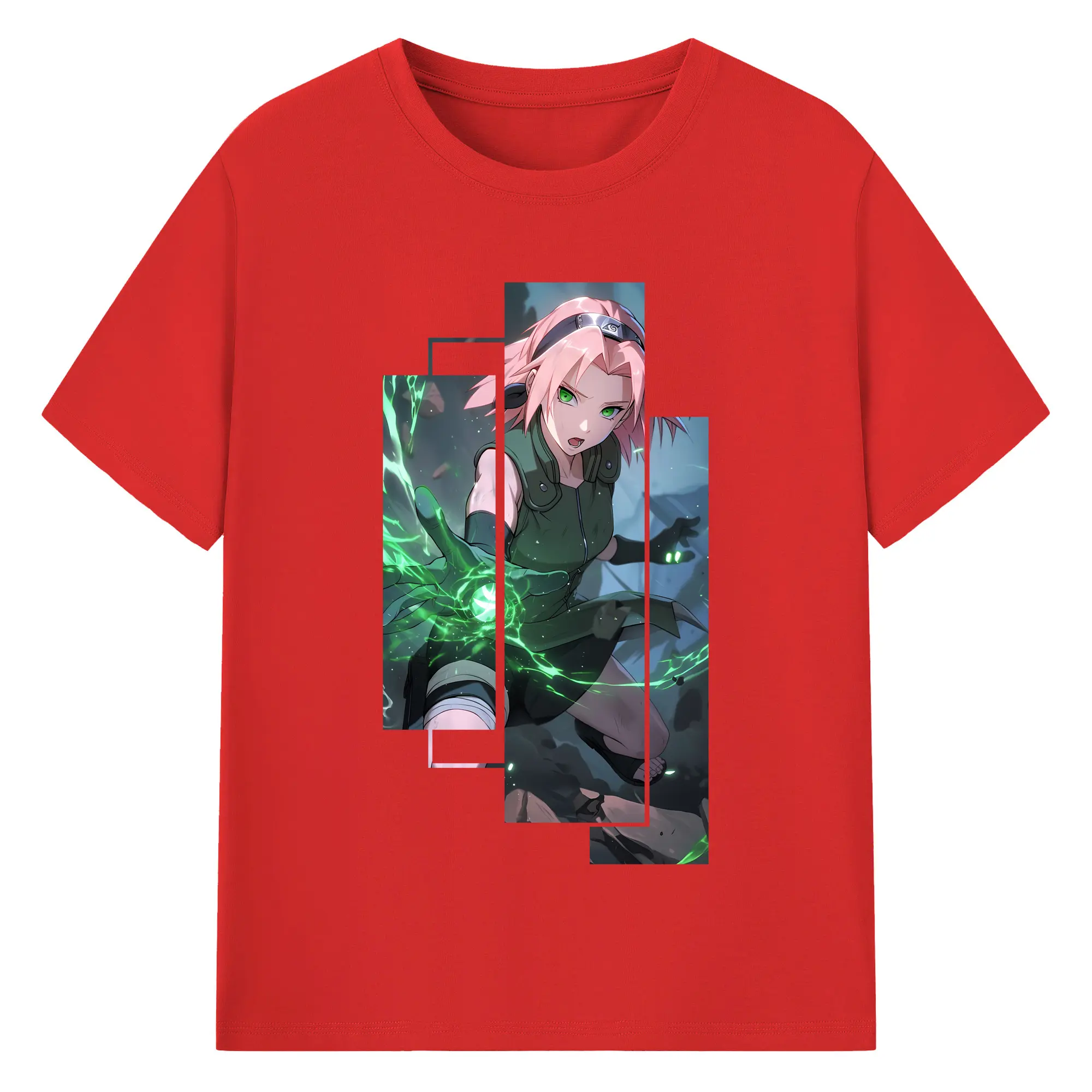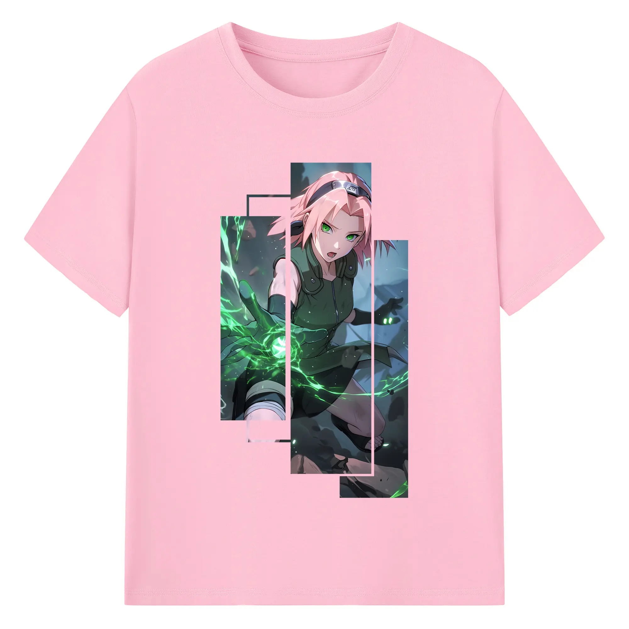 ナルト グッズ はるの さくら - 綿100% 半袖Tシャツ ・ バックプリント ・ 快適 通気性 ・ 日常使い 散歩 スポーツ用