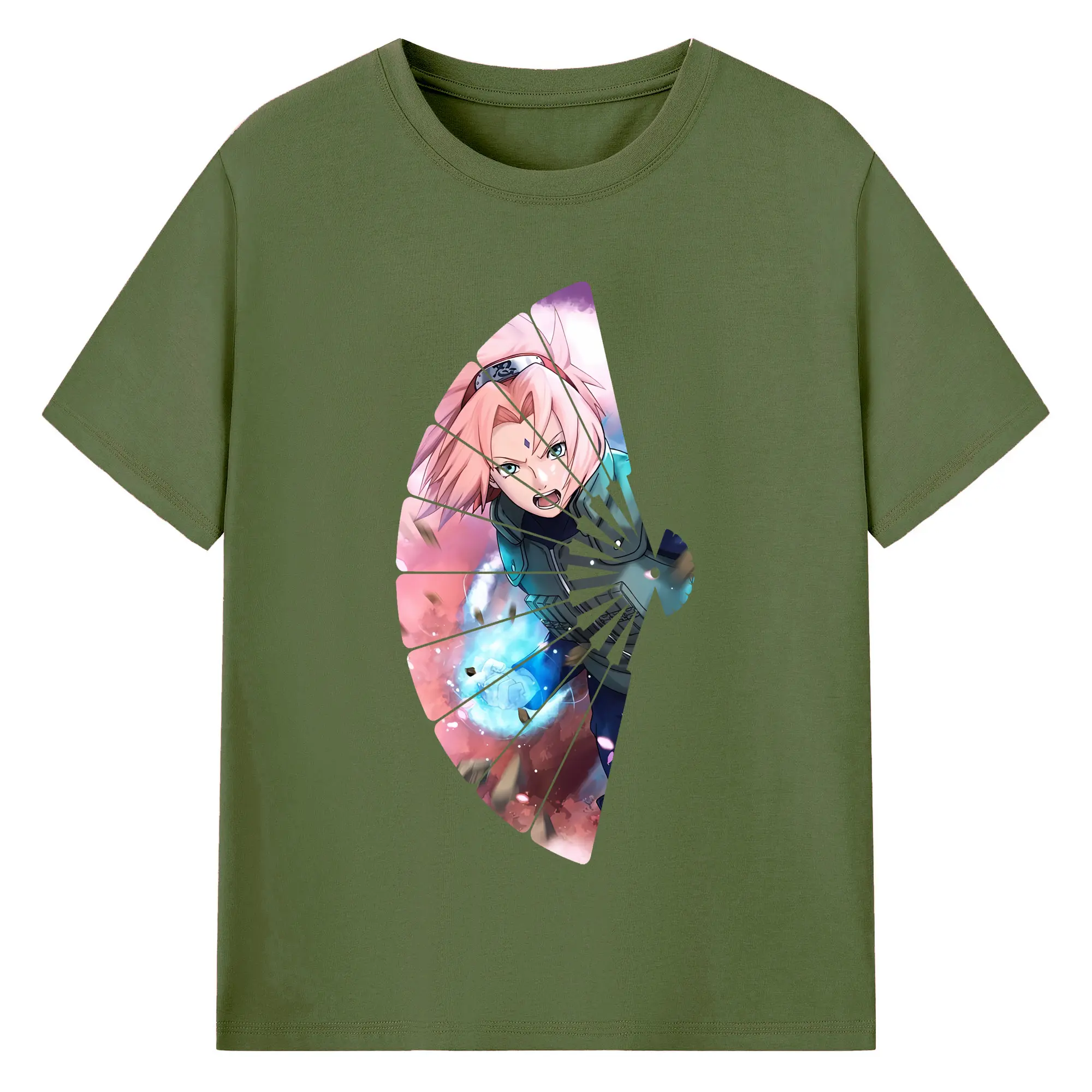 ナルト グッズ はるの さくら - 綿100% ヴィンテージ風 半袖Tシャツ ・ フロントプリント ・ 柔らか肌触り ・ 通気性 快適 ・ スポーツ カジュアル 外出用