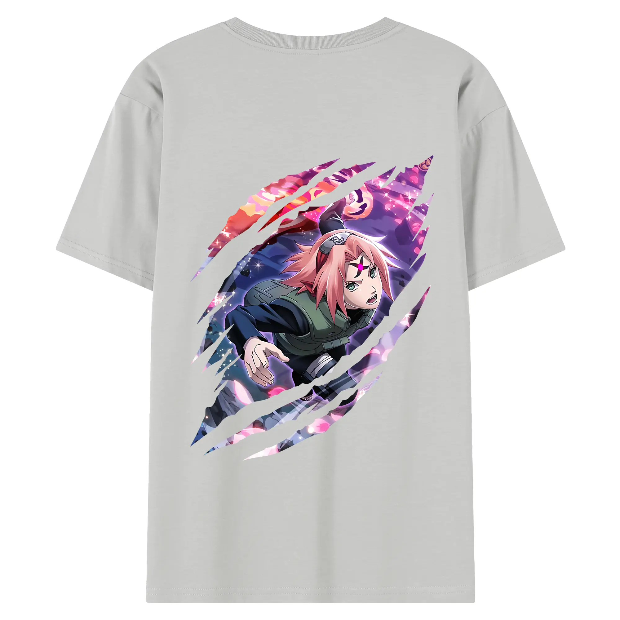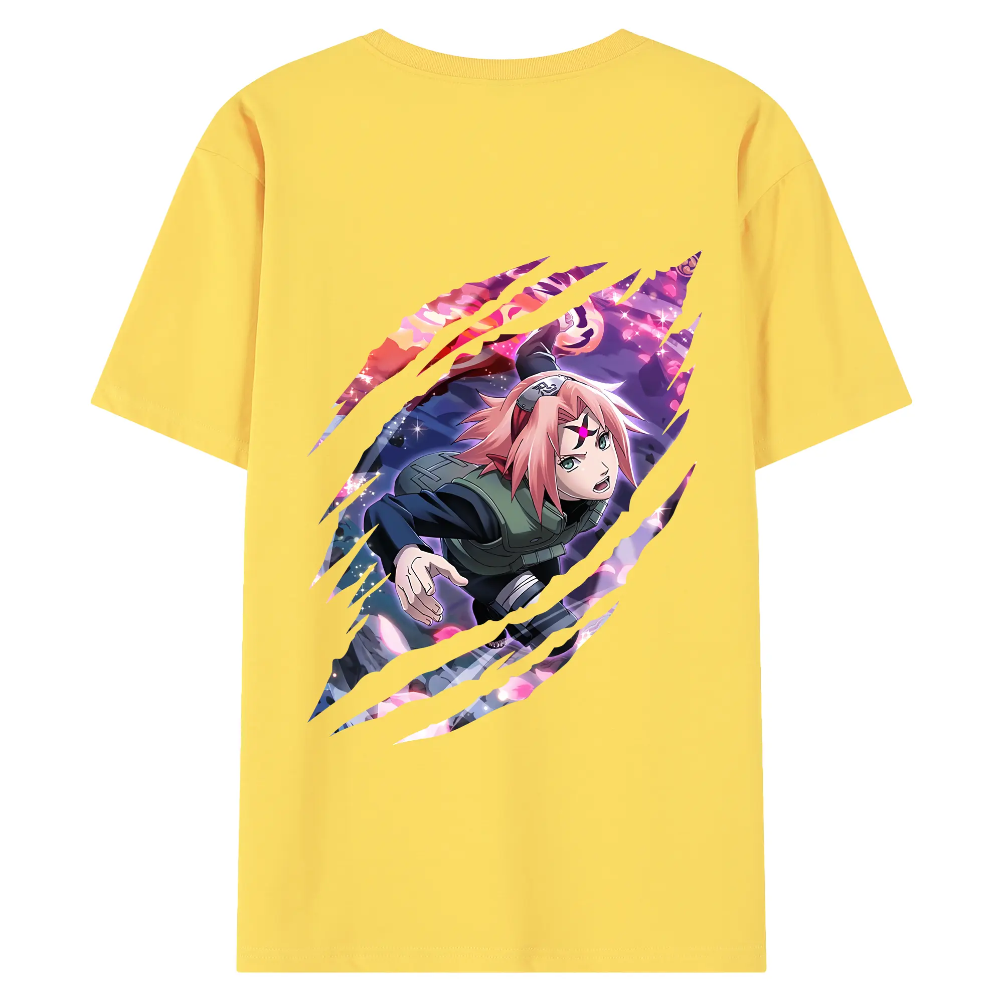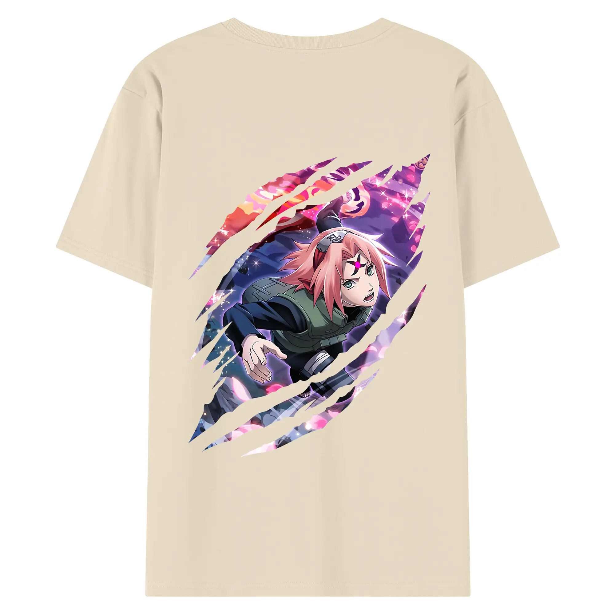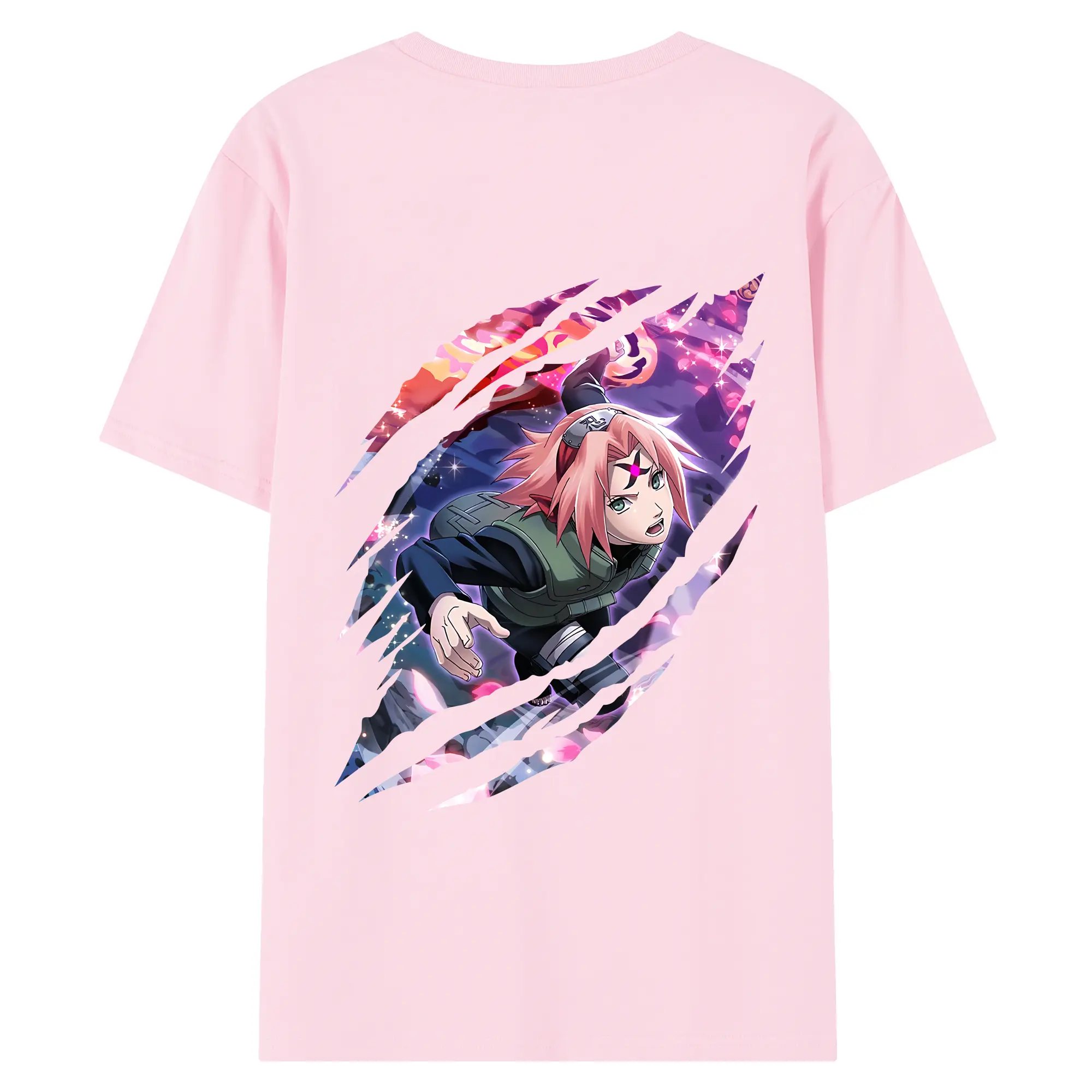 ナルト グッズ はるの さくら - 綿100% ヴィンテージ風 半袖Tシャツ ・ 背面プリント ・ 柔らか肌触り ・ 通気性 快適 ・ スポーツ カジュアル 外出用
