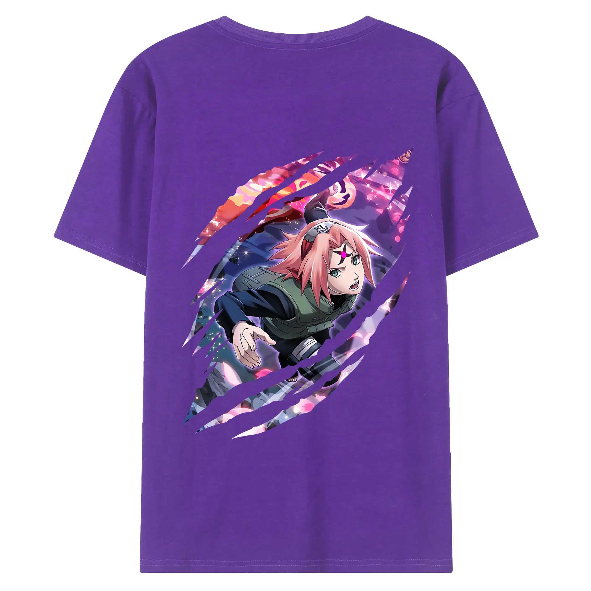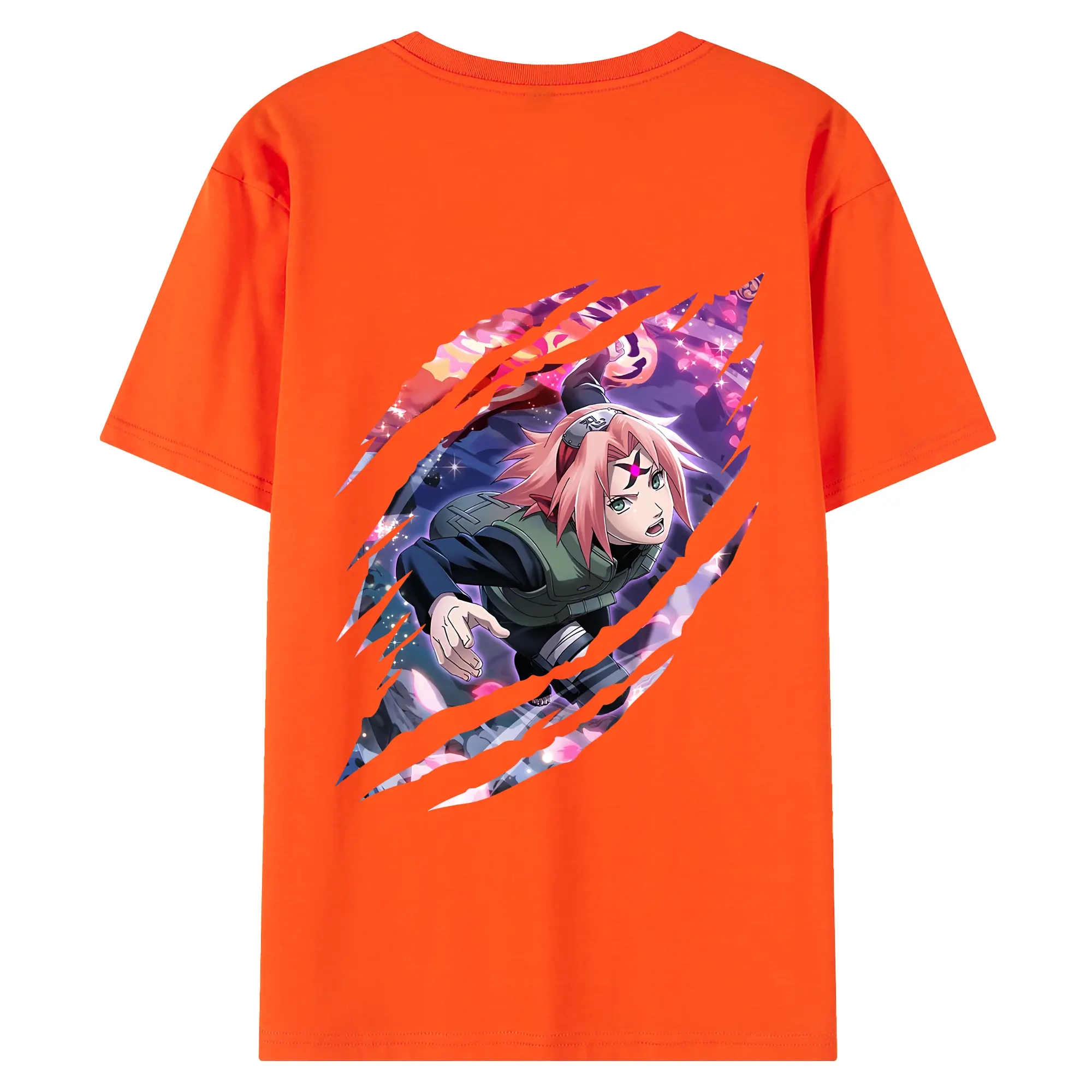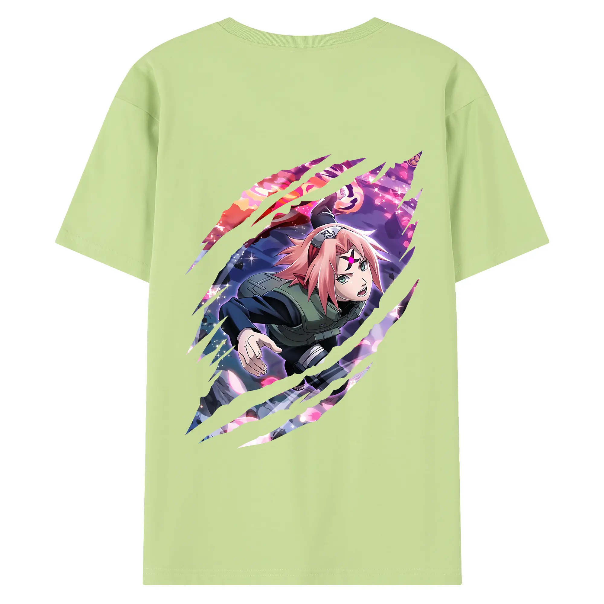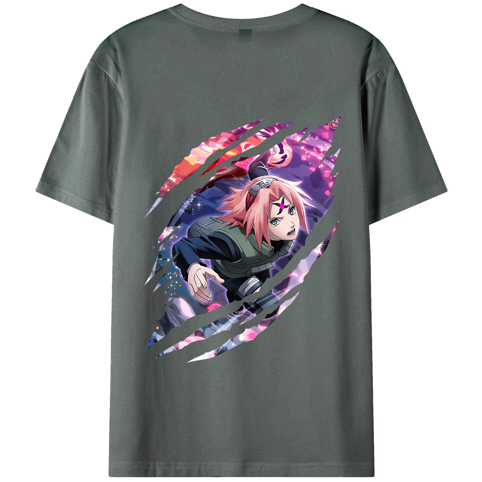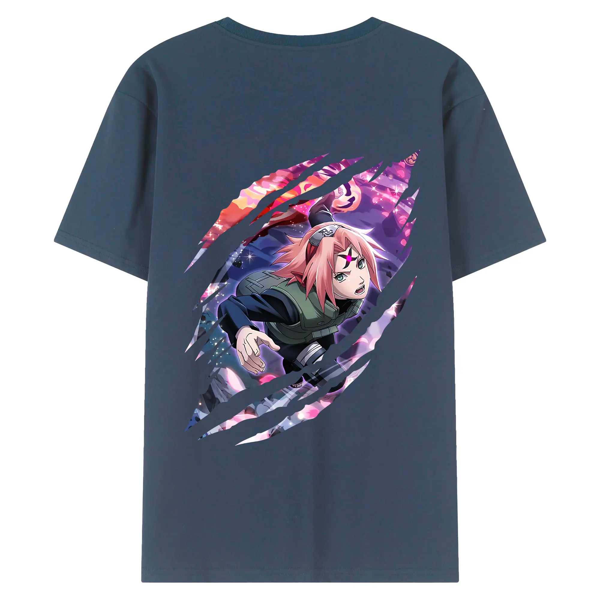 ナルト グッズ はるの さくら - 綿100% ヴィンテージ風 半袖Tシャツ ・ 背面プリント ・ 柔らか肌触り ・ 通気性 快適 ・ スポーツ カジュアル 外出用