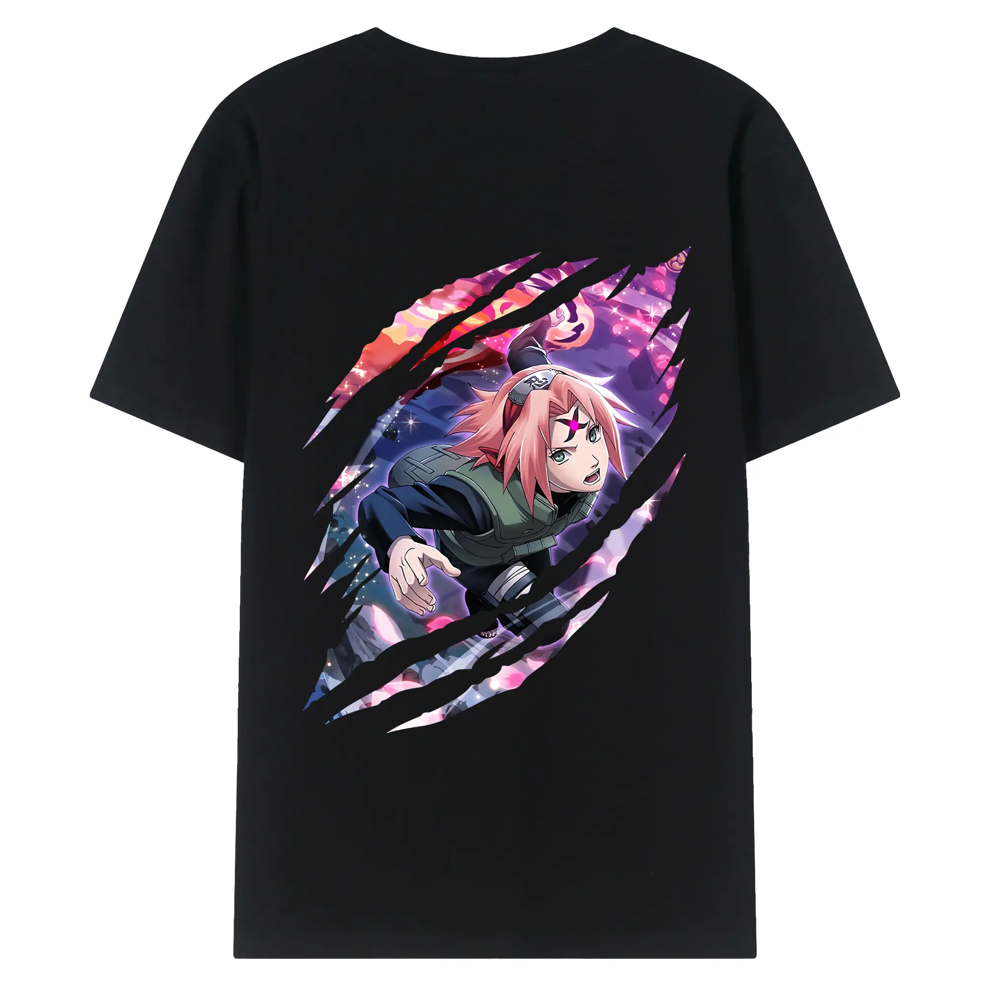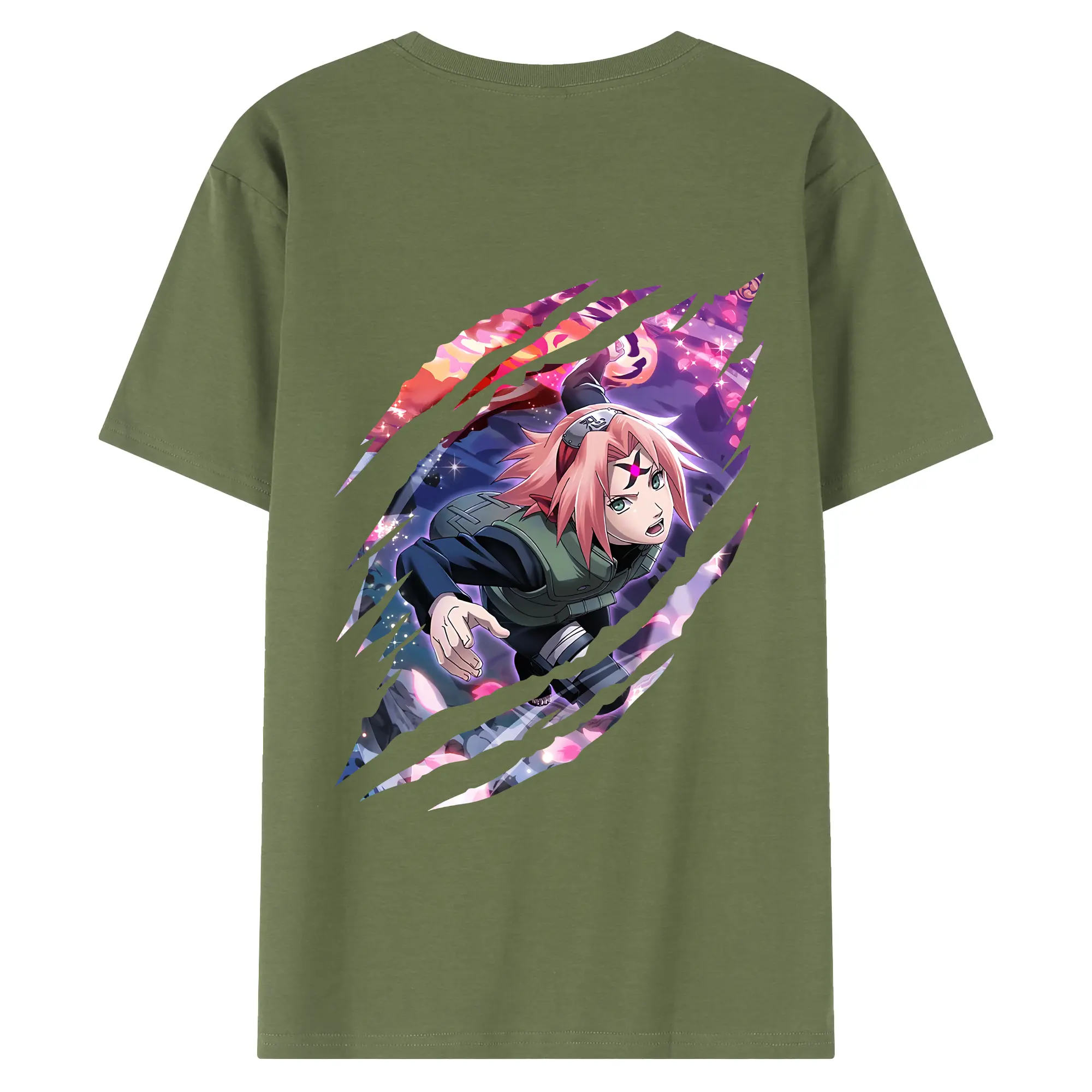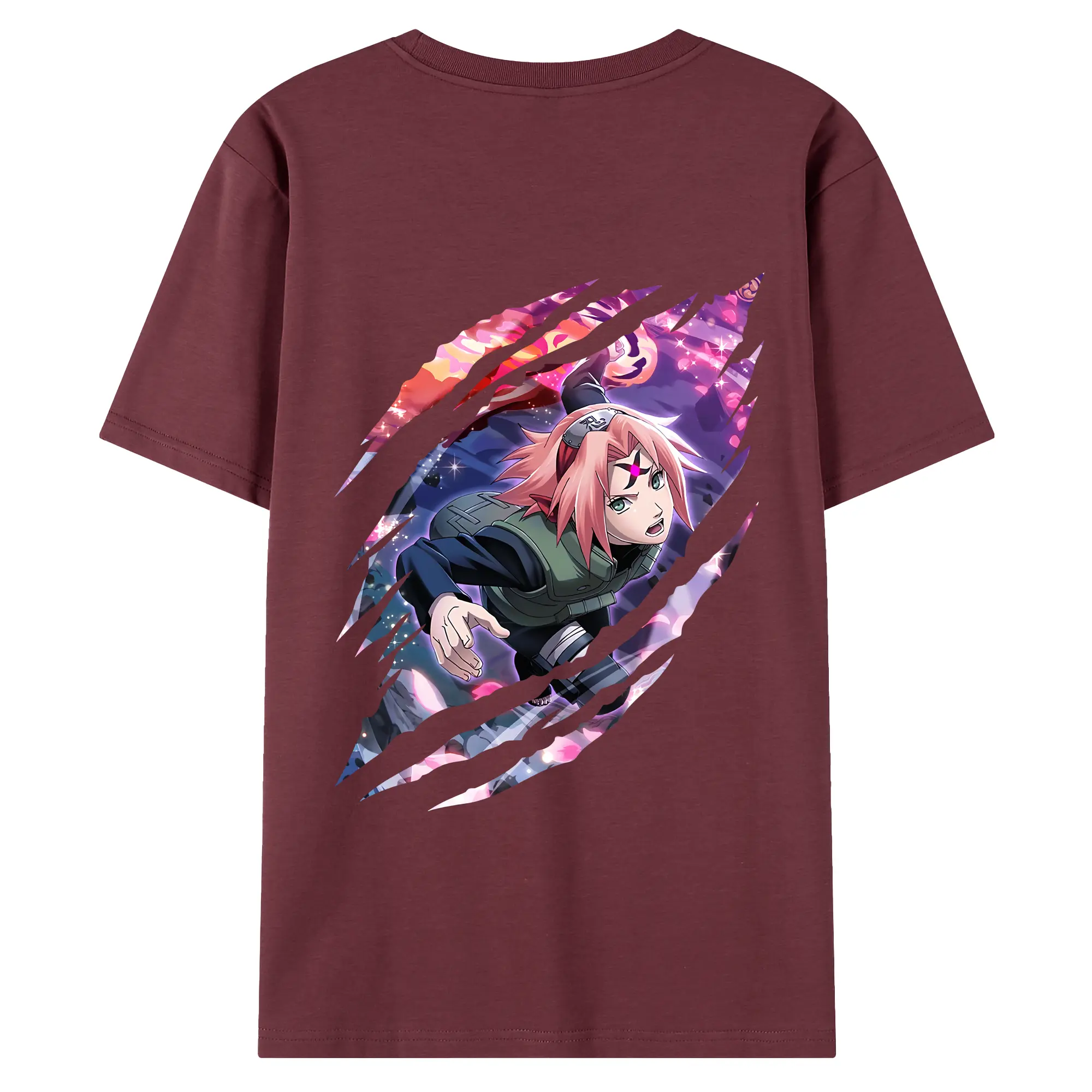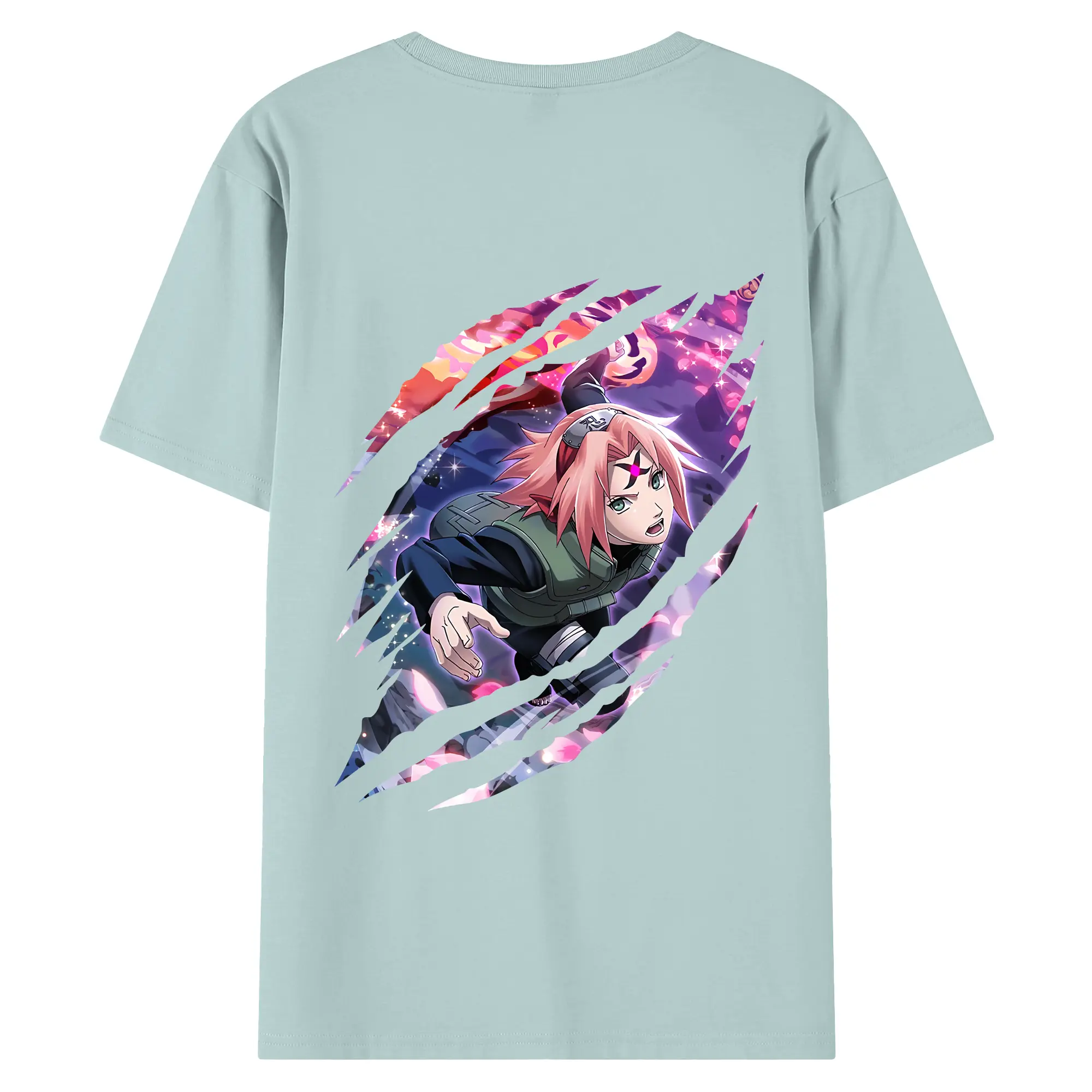 ナルト グッズ はるの さくら - 綿100% ヴィンテージ風 半袖Tシャツ ・ 背面プリント ・ 柔らか肌触り ・ 通気性 快適 ・ スポーツ カジュアル 外出用