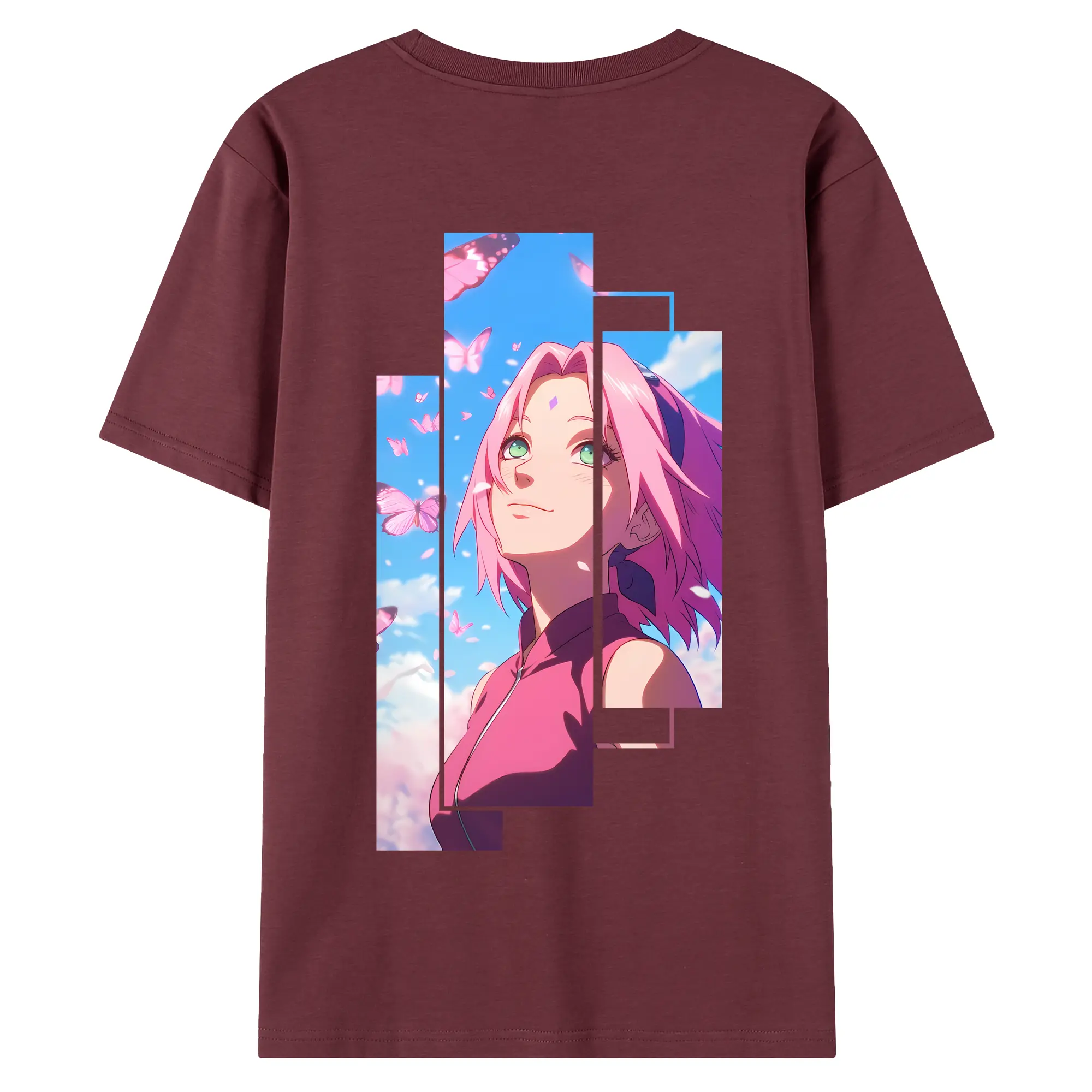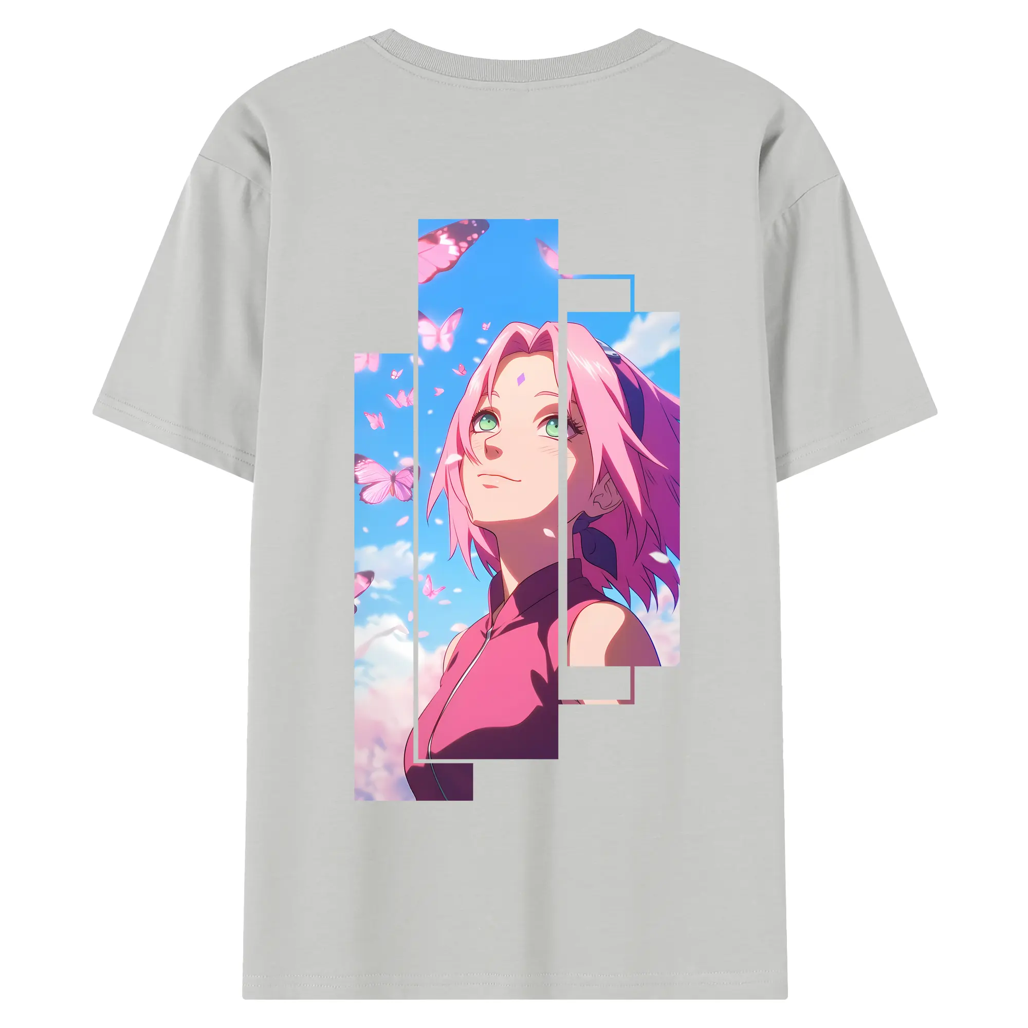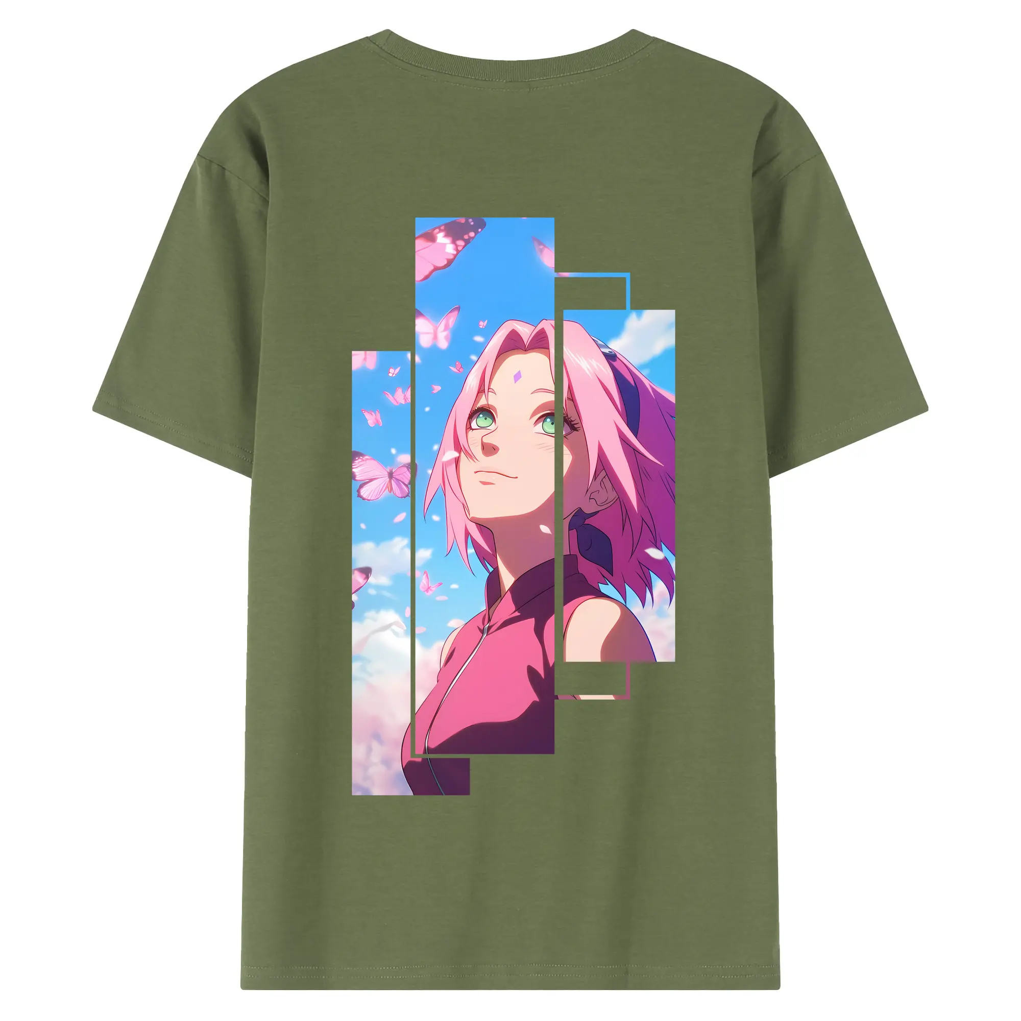 ナルト グッズ はるの さくら - 綿100% ヴィンテージ風 半袖Tシャツ ・ 背面プリント ・ 柔らか肌触り ・ 通気性 快適 ・ スポーツ カジュアル 外出用