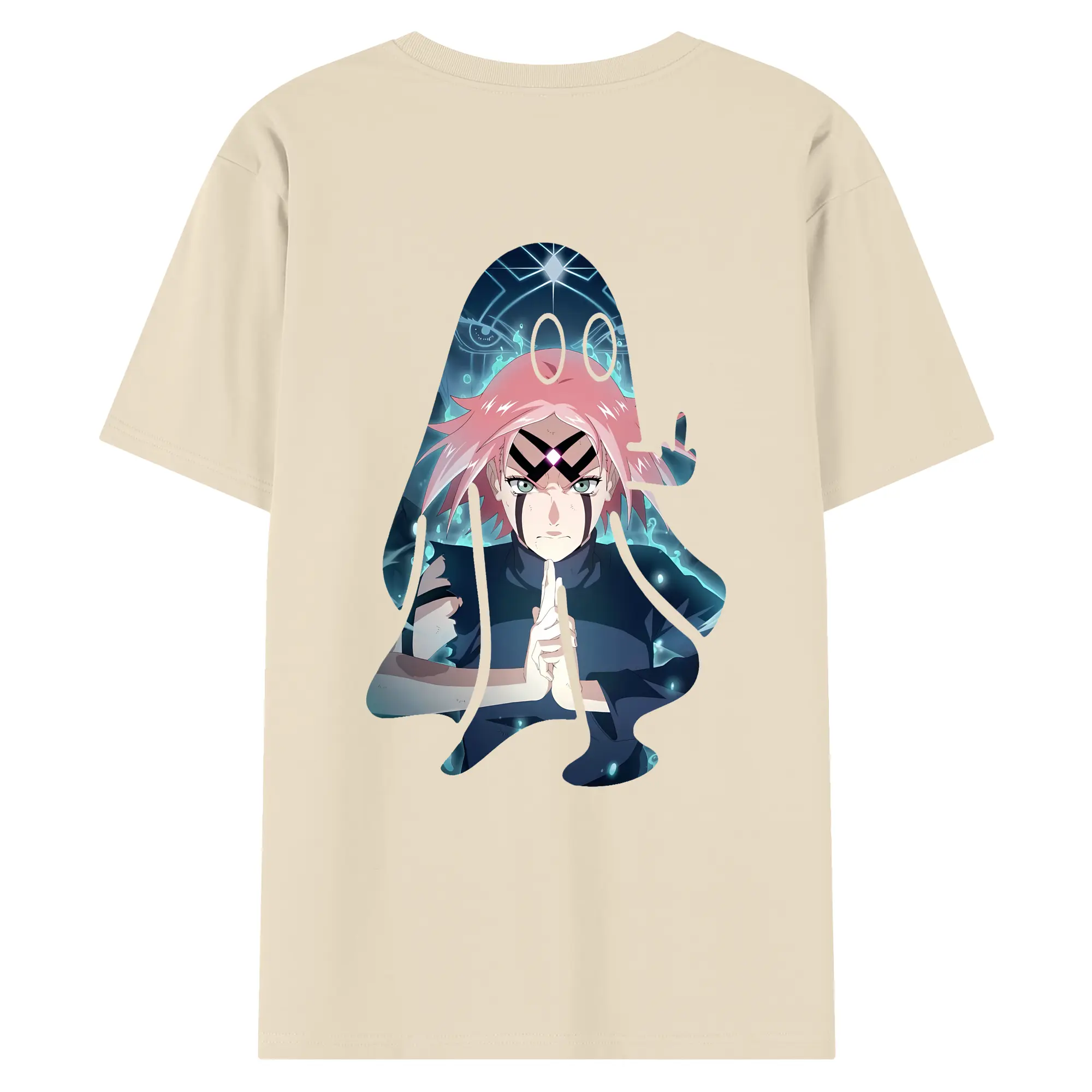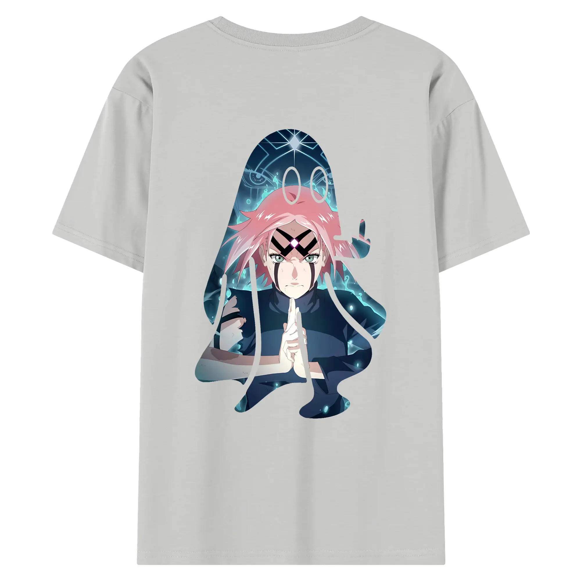 ナルト グッズ はるの さくら - 綿100% ヴィンテージ風 半袖Tシャツ ・ 背面プリント ・ 柔らか肌触り ・ 通気性 快適 ・ スポーツ カジュアル 外出用