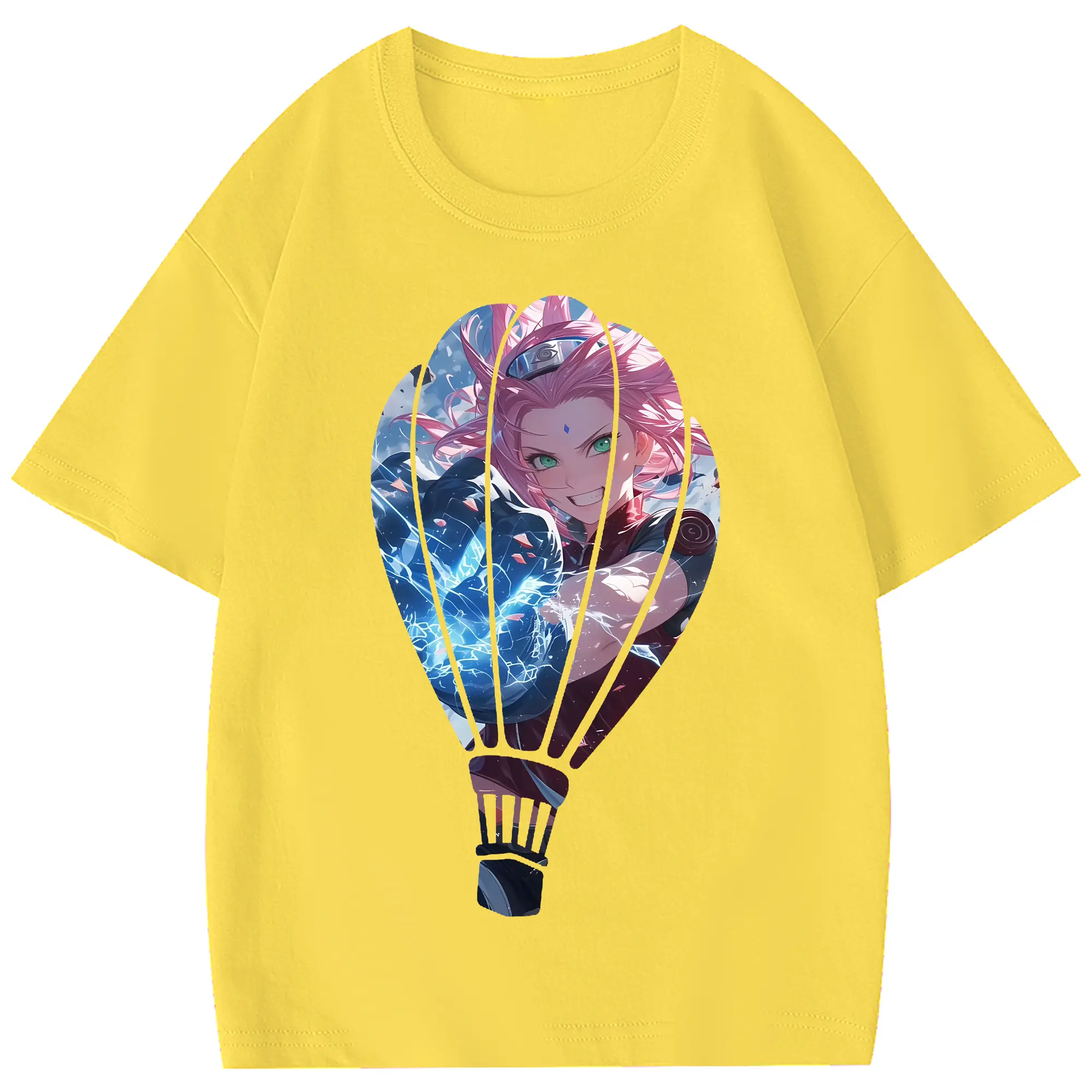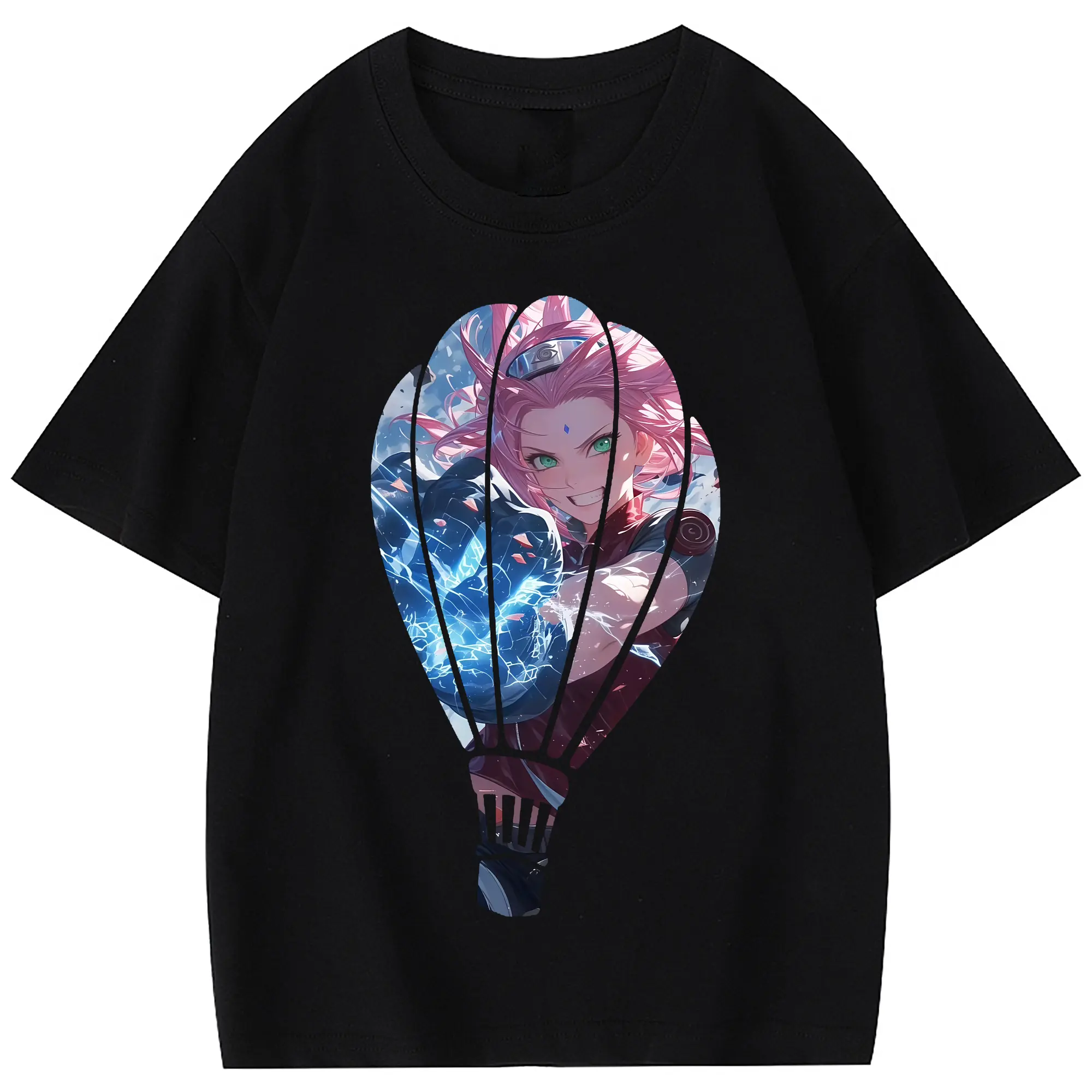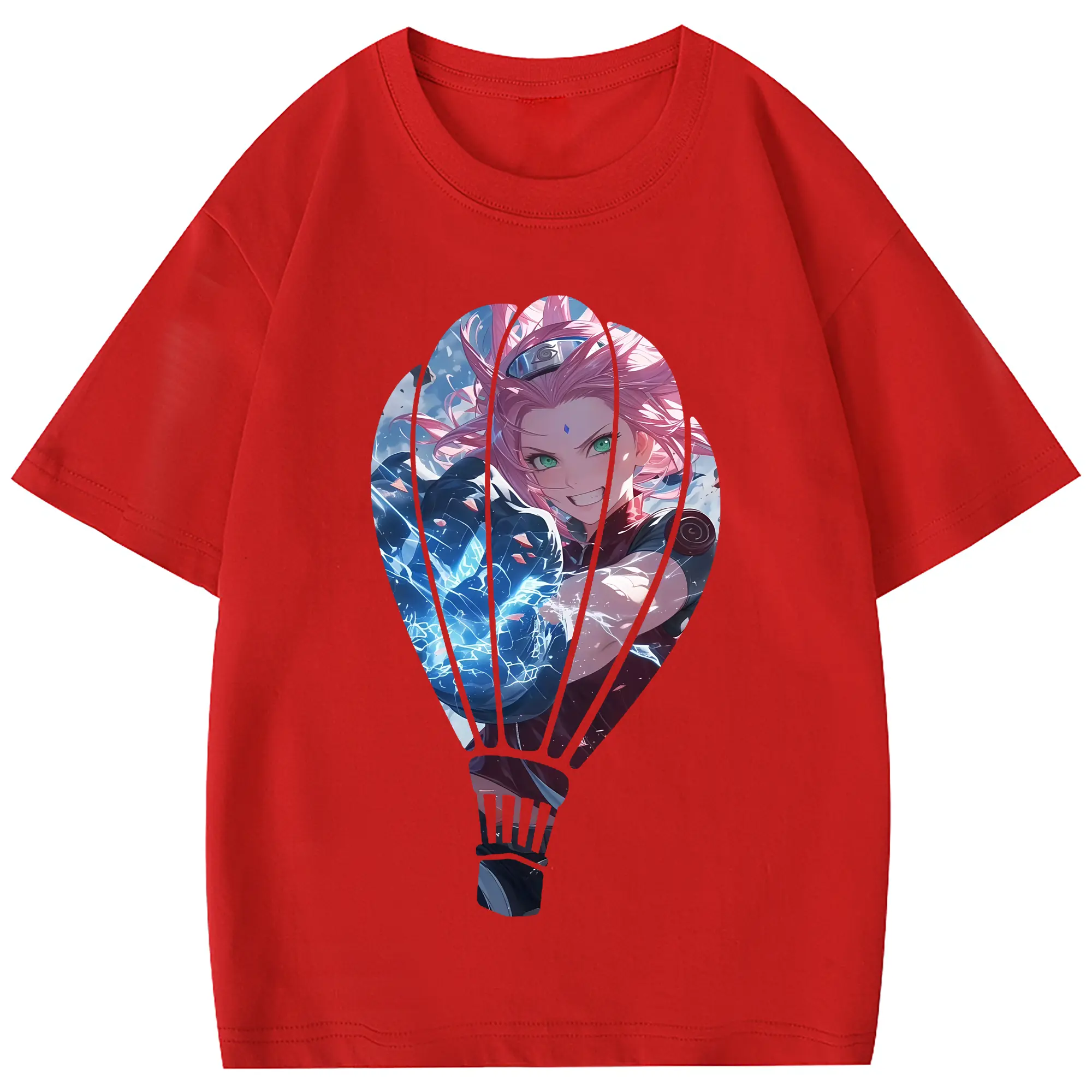 ナルト グッズ はるの さくら - 綿100% 半袖Tシャツ ・ フロントプリント ・ 快適 通気性 ・ 日常使い 散歩 スポーツ用